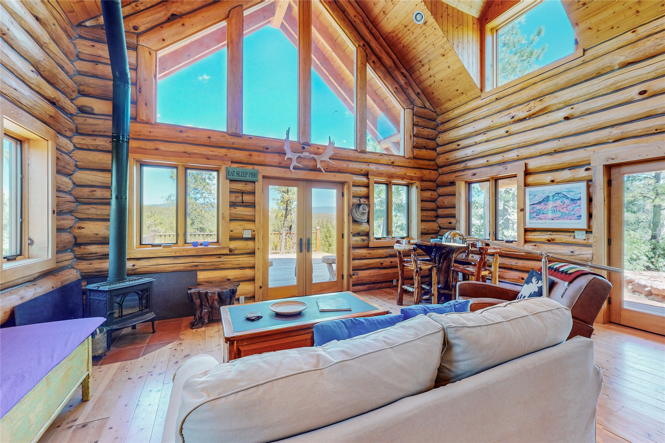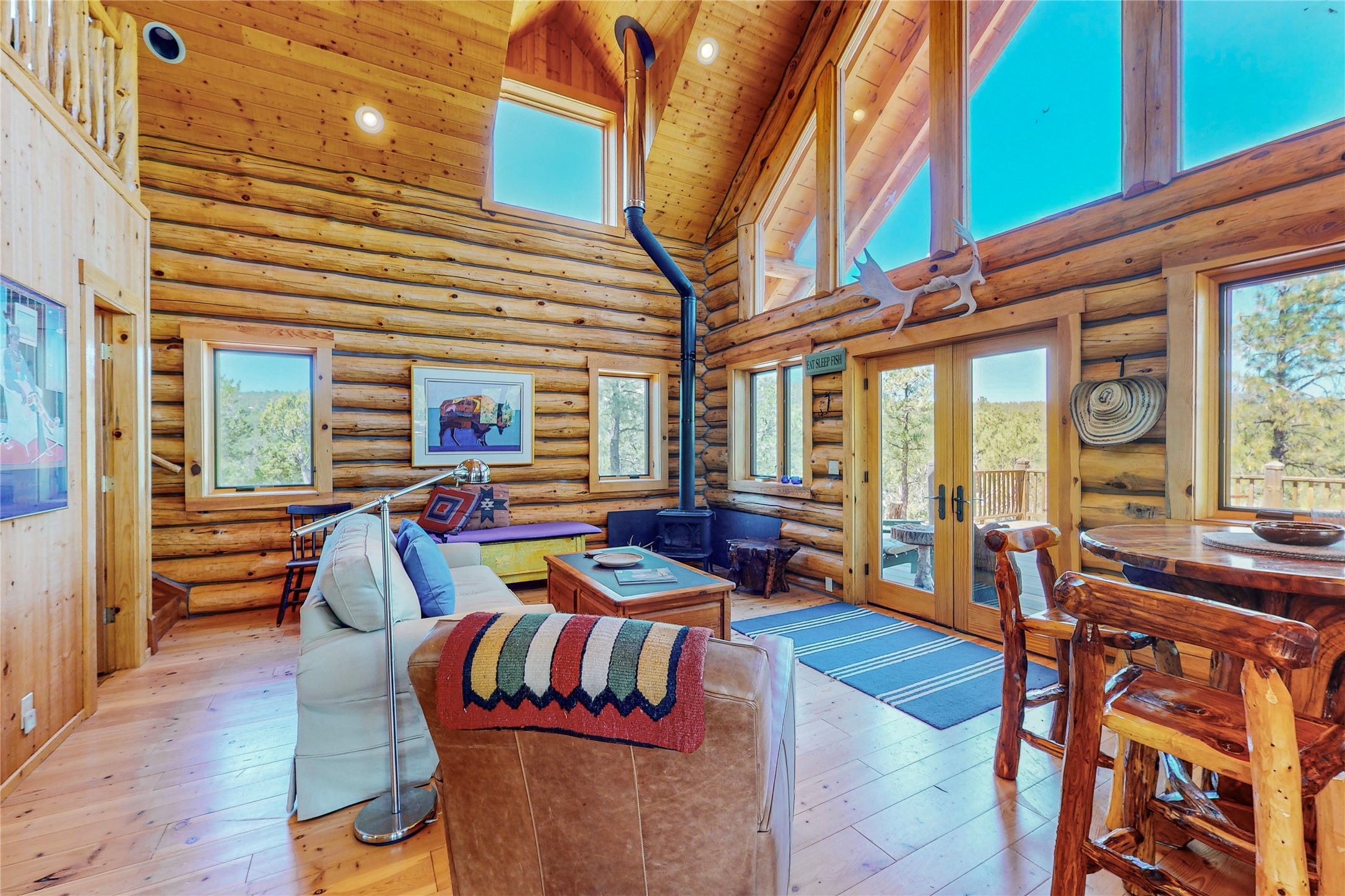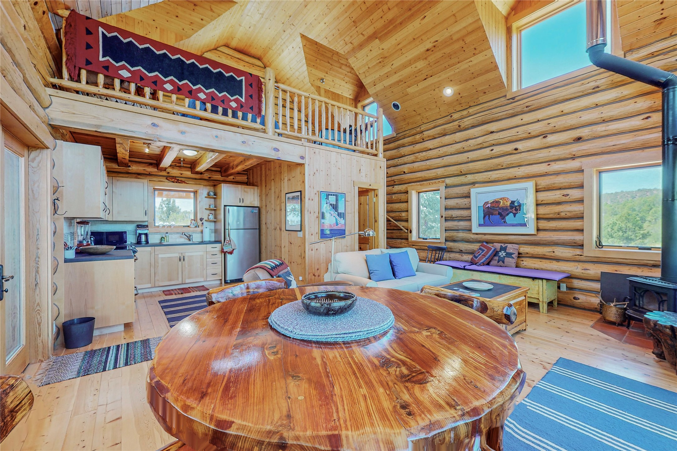 VERY RARE, amazing custom built log cabin with stunning 360 views offered to sale for the first time. Located at the top of Los Altos de Cicuye a portion of the property we have been told was the sacred Medicine hill for the Pecos Pueblo and the remains of a Kiva are present. The home was built by Pecos Trail Contractors, the premier builder in the area and the details of the construction are significant. Properties such as this one are rarely available For folks seeking a quality, log cabin please consider Los Altos de Cicuye.