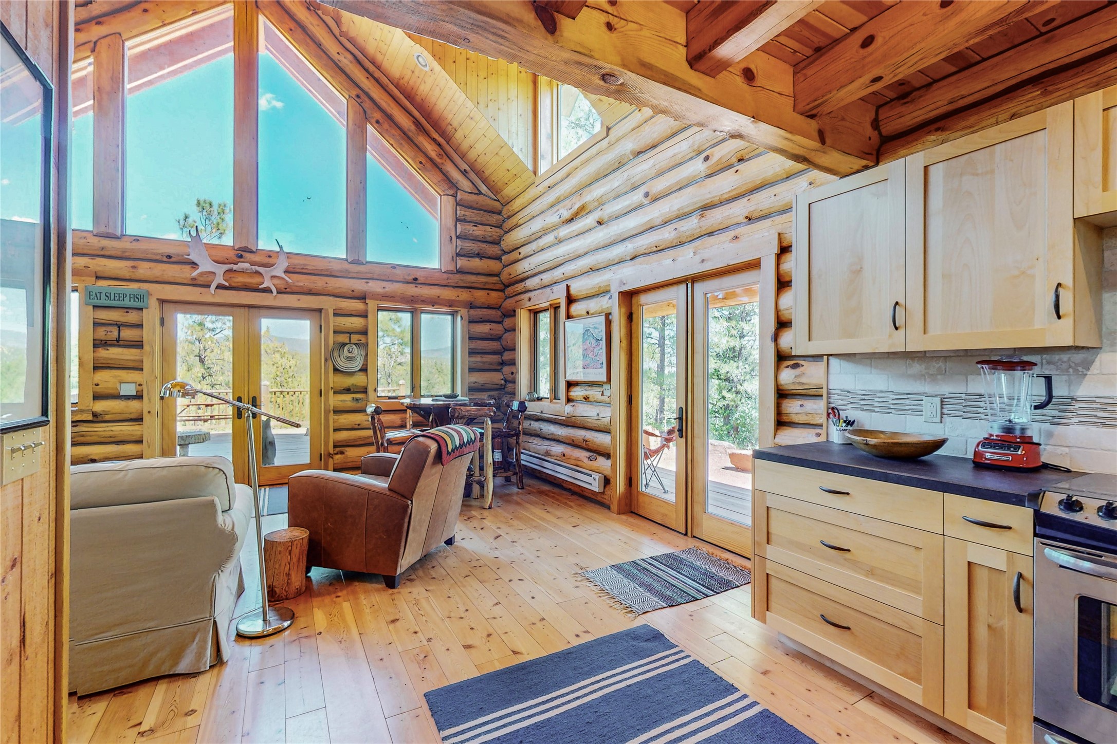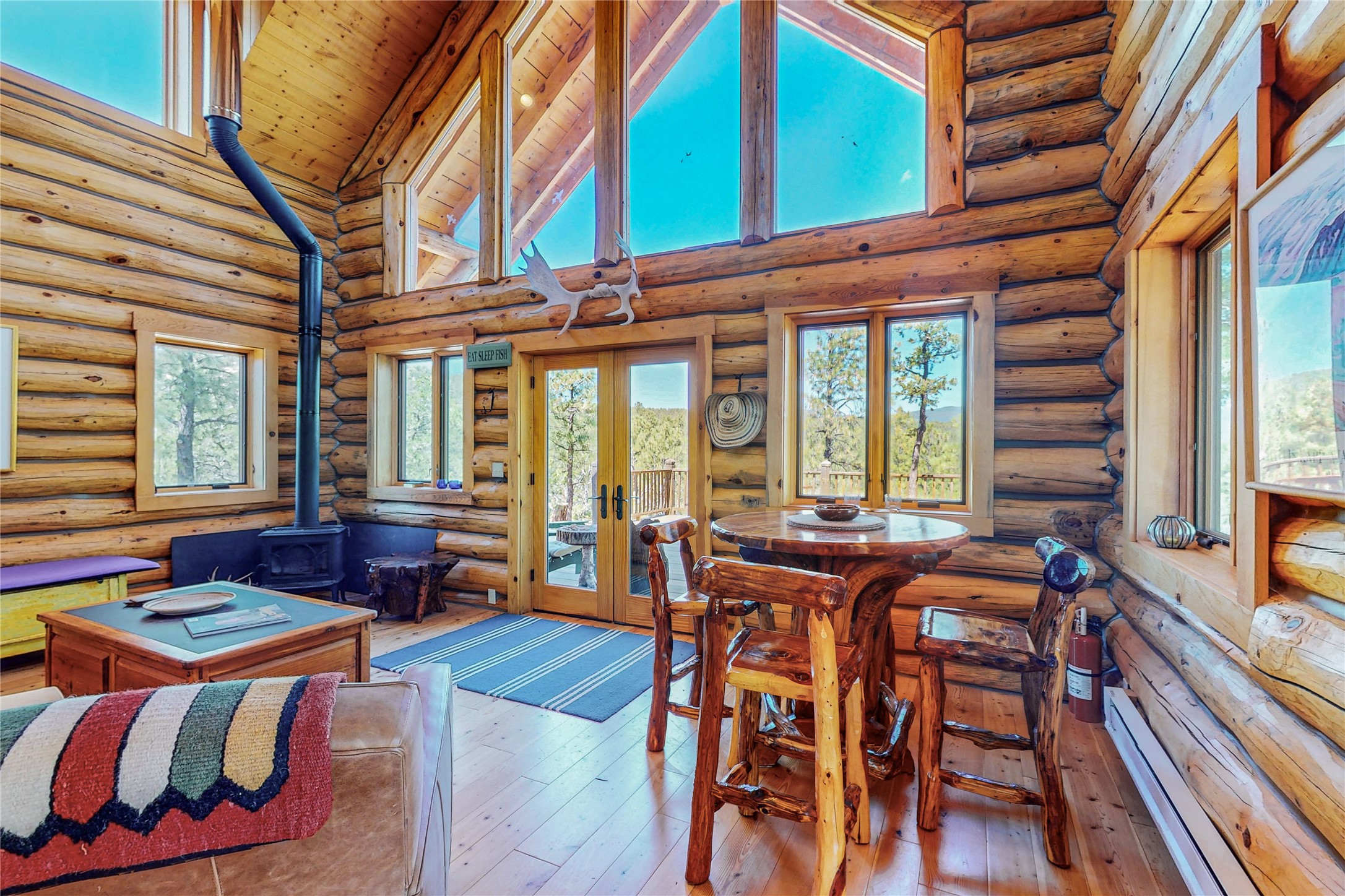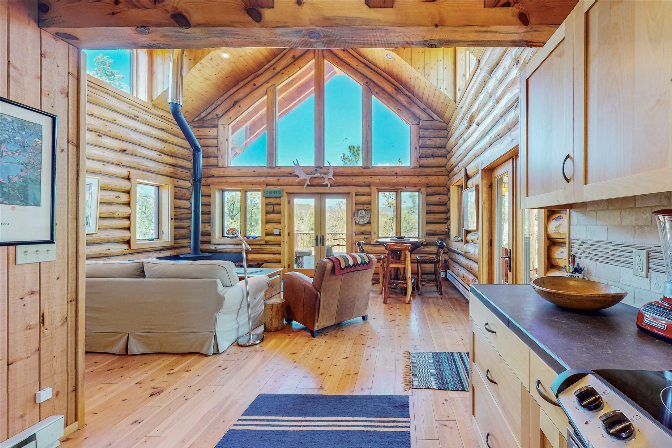 VERY RARE, amazing custom built log cabin with stunning 360 views offered to sale for the first time. Located at the top of Los Altos de Cicuye a portion of the property we have been told was the sacred Medicine hill for the Pecos Pueblo and the remains of a Kiva are present. The home was built by Pecos Trail Contractors, the premier builder in the area and the details of the construction are significant. Properties such as this one are rarely available For folks seeking a quality, log cabin please consider Los Altos de Cicuye.