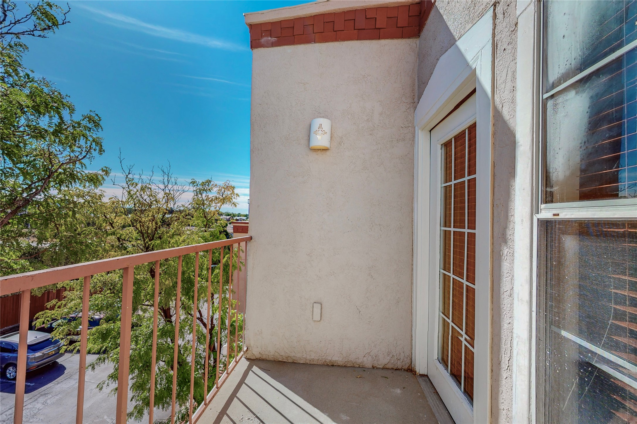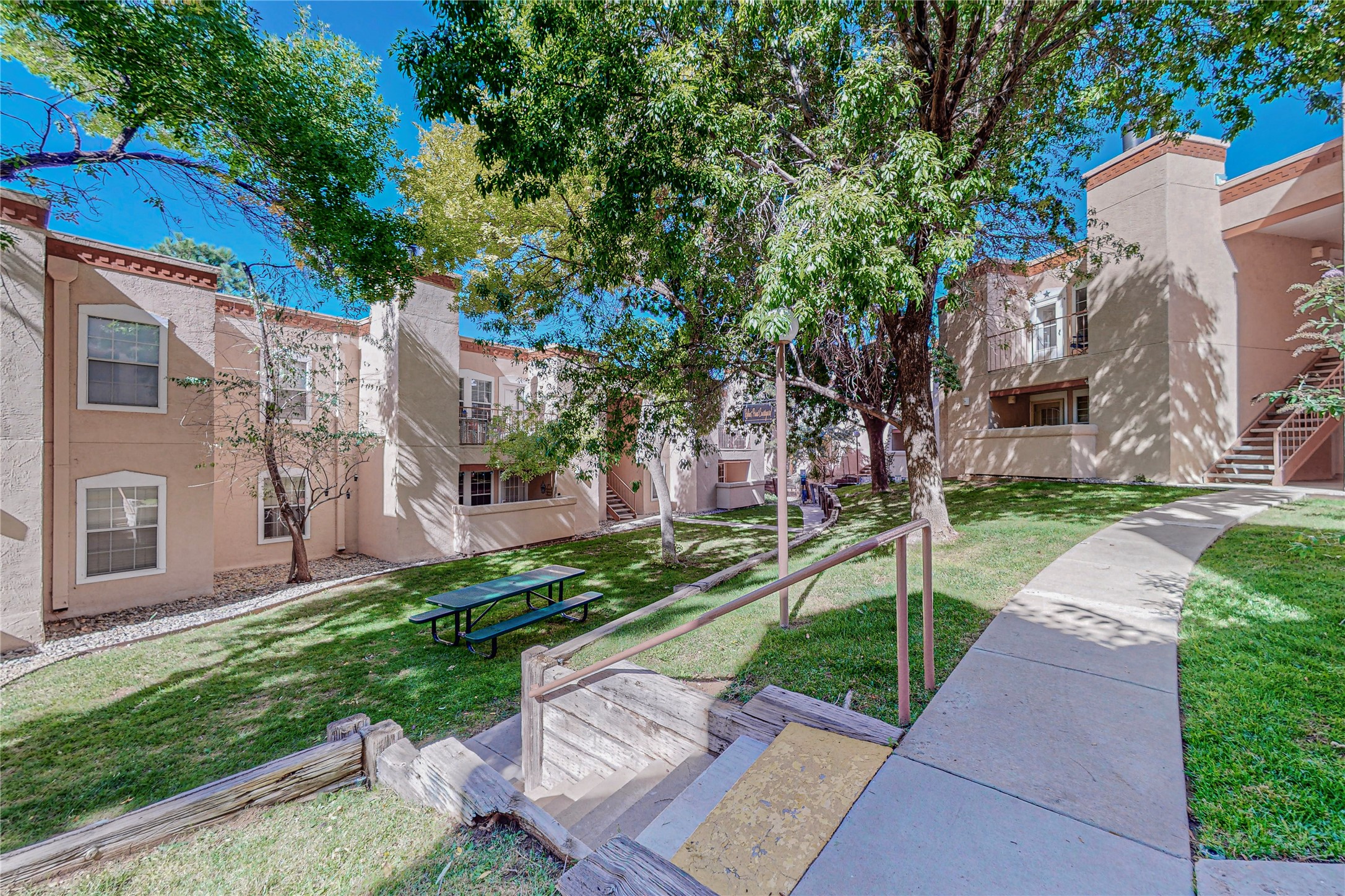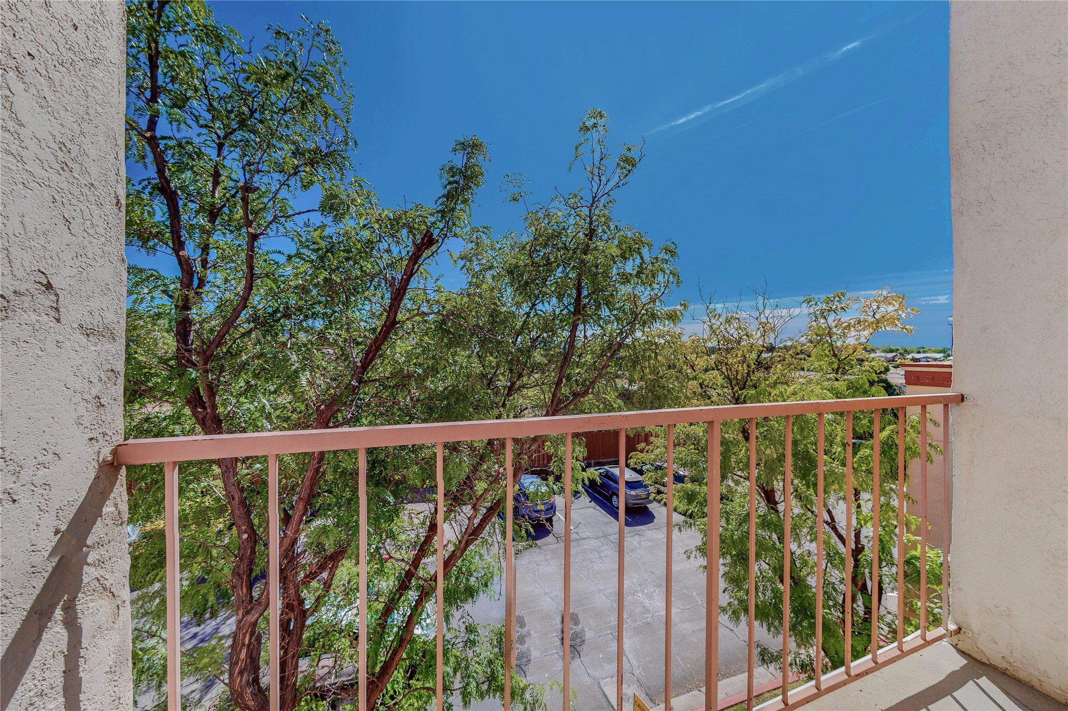 Welcome to this lovely 1 bed , 1 bath Condominium unit located in the beautiful Zia Vista complex. This 3rd floor unit features a private balcony with a wonderful view of the court yard, the perfect combination of cozy and comfort. The kitchen offers a southwestern style tile counter tops, wooden cabinets, and stainless steel appliances. Enjoy a nice fire in the wood burning fire place during the winter in the spacious living area. Located in the highly desired, Zia Vista gated community, with lush lawns, an abundance of large trees and mature landscaping. Enjoy the community pool, gym, clubhouse, the serenity of the beautiful grounds, and the convenience of nearby restaurants and shopping. Located only 15 minutes from downtown and close access to I-25.