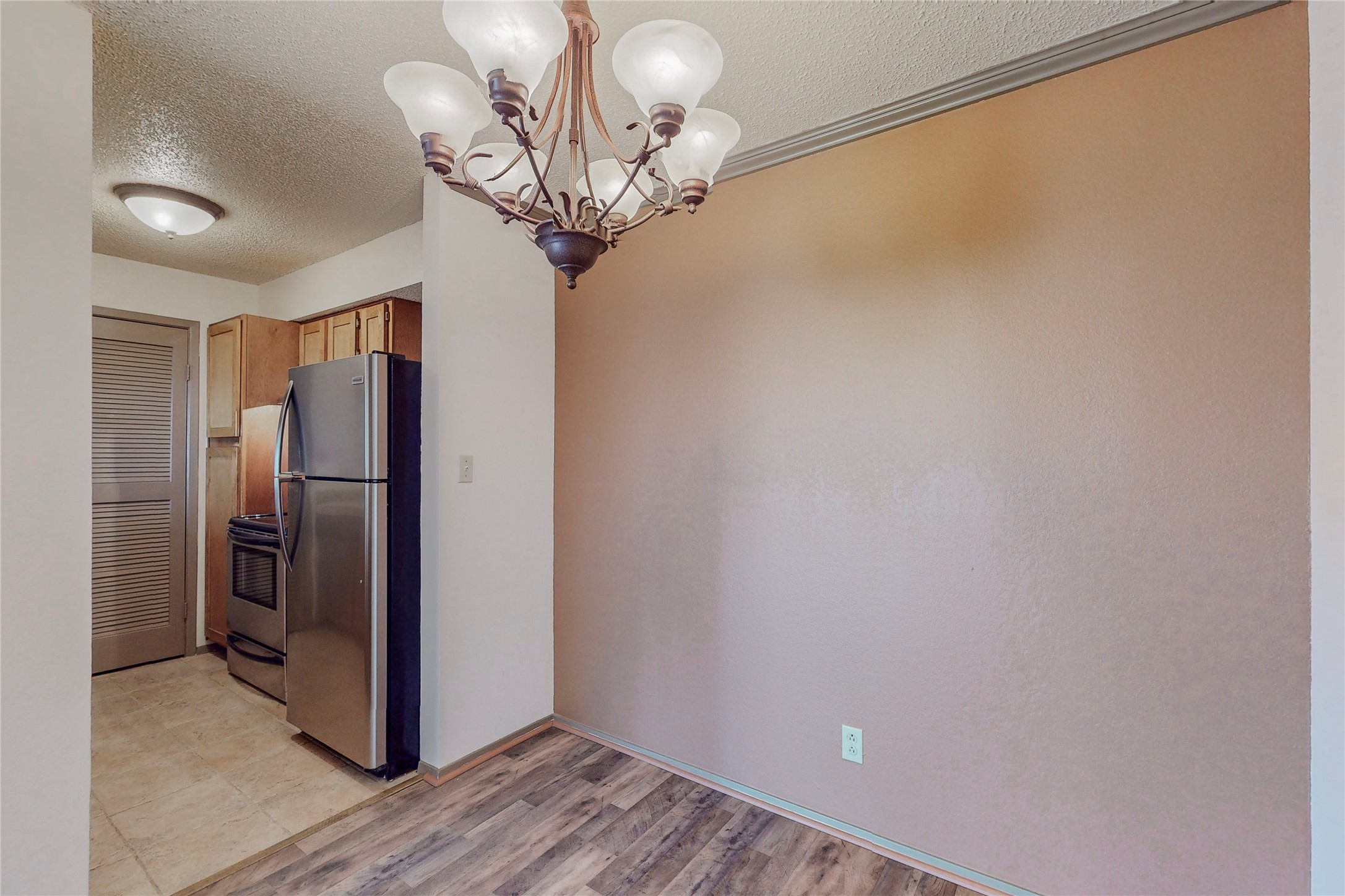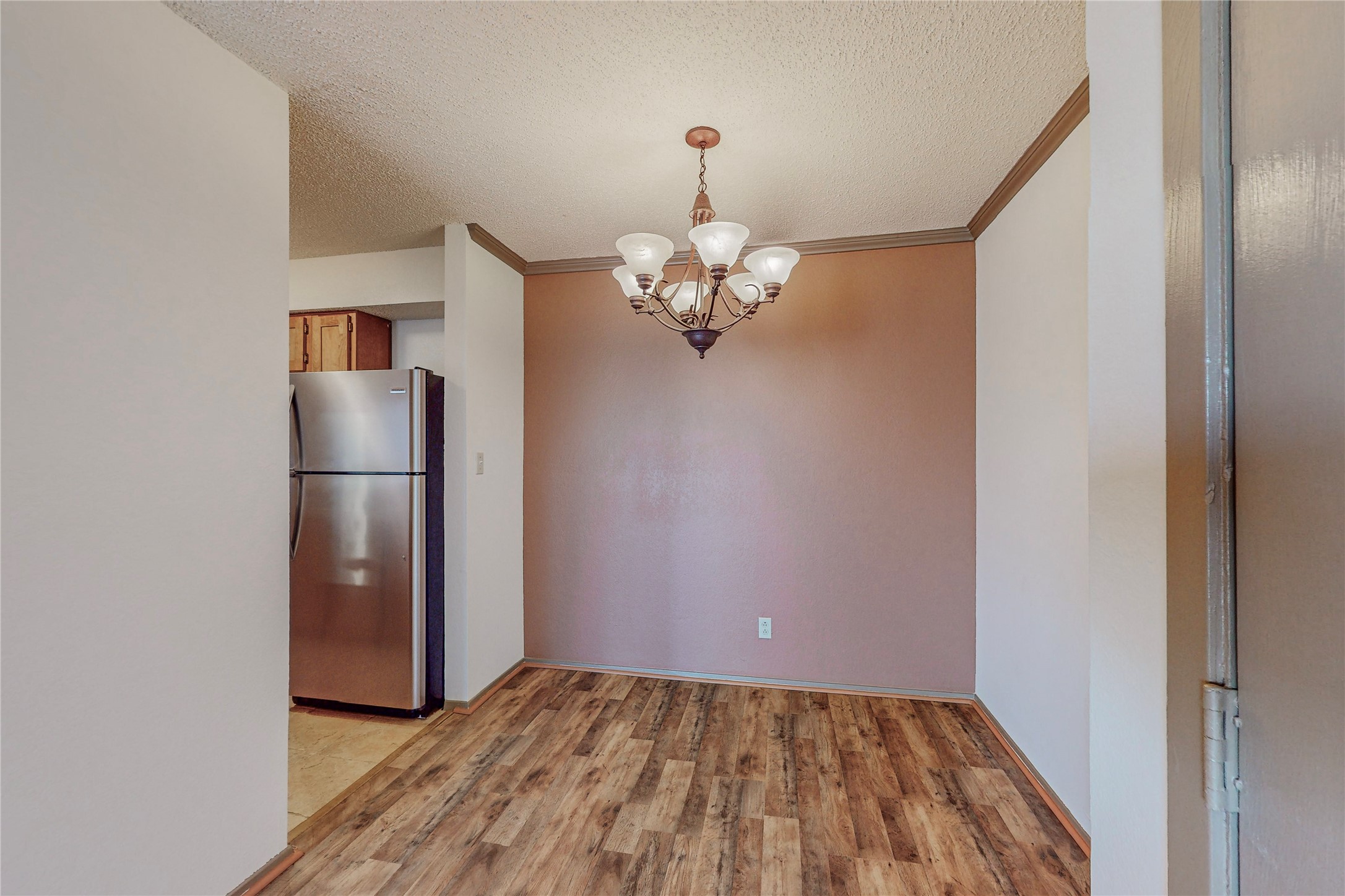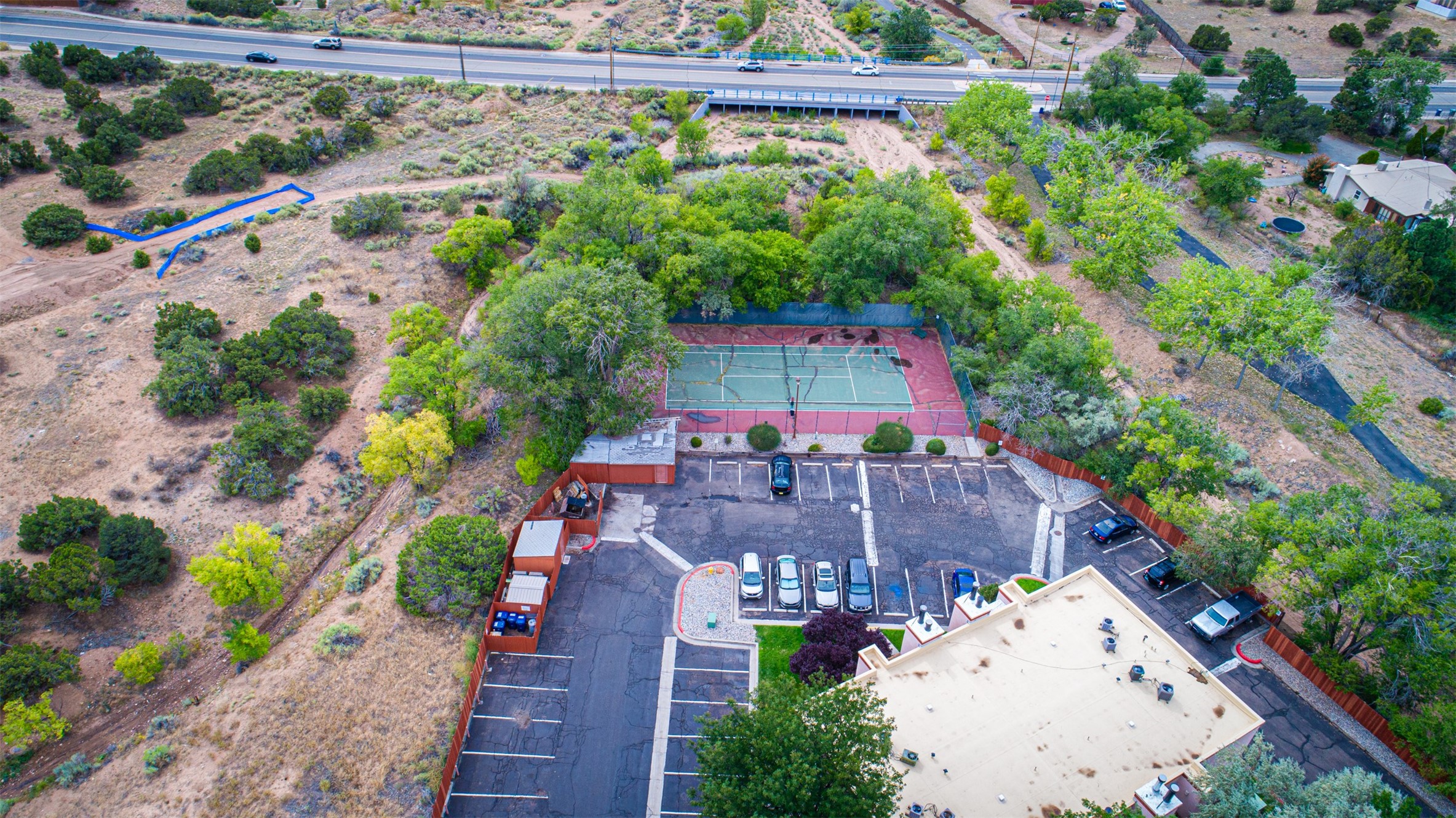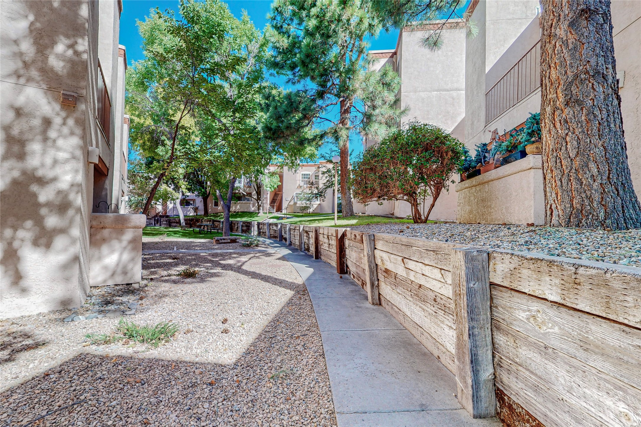 Welcome to this lovely 1 bed , 1 bath Condominium unit located in the beautiful Zia Vista complex. This 3rd floor unit features a private balcony with a wonderful view of the court yard, the perfect combination of cozy and comfort. The kitchen offers a southwestern style tile counter tops, wooden cabinets, and stainless steel appliances. Enjoy a nice fire in the wood burning fire place during the winter in the spacious living area. Located in the highly desired, Zia Vista gated community, with lush lawns, an abundance of large trees and mature landscaping. Enjoy the community pool, gym, clubhouse, the serenity of the beautiful grounds, and the convenience of nearby restaurants and shopping. Located only 15 minutes from downtown and close access to I-25.