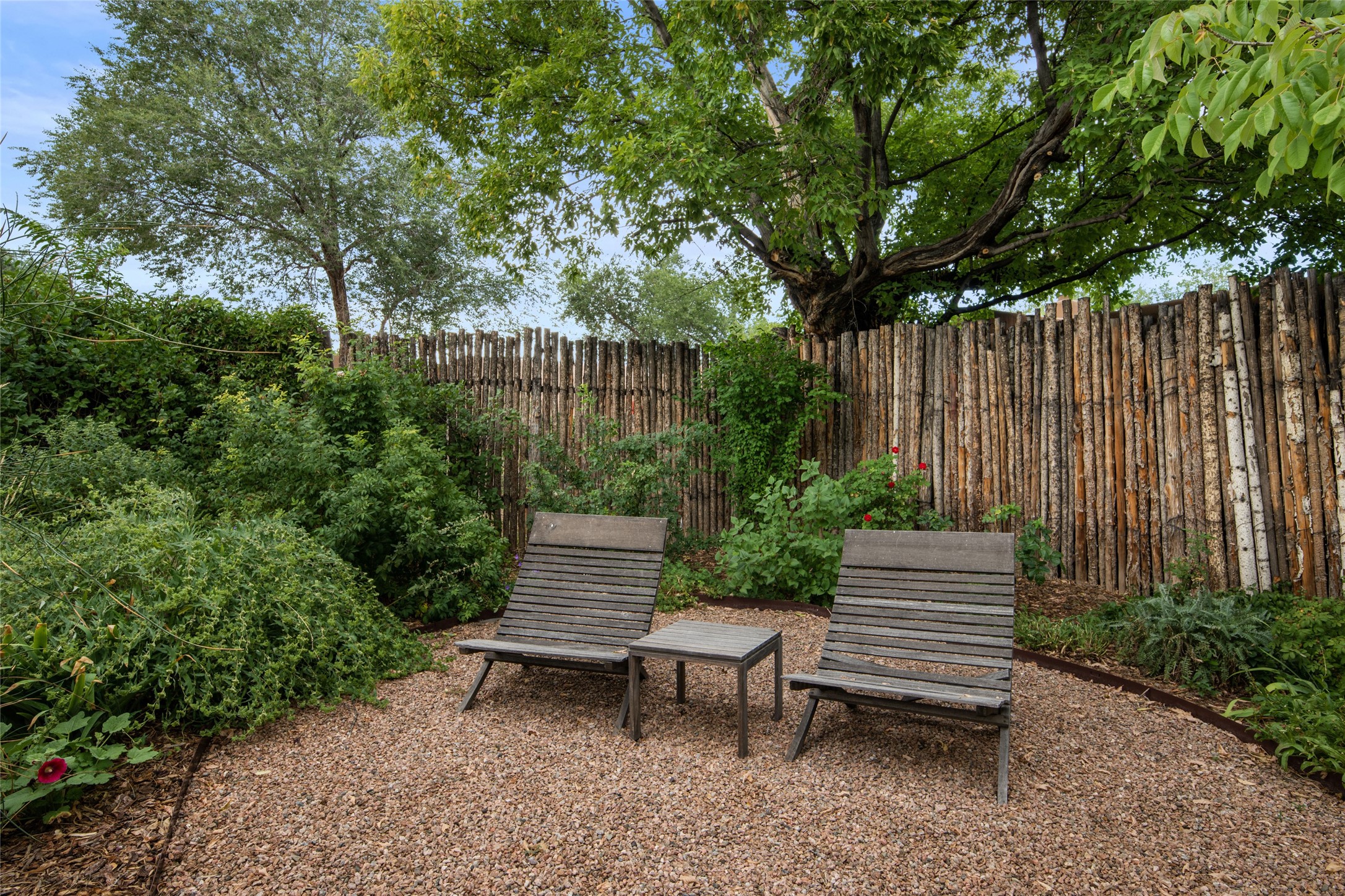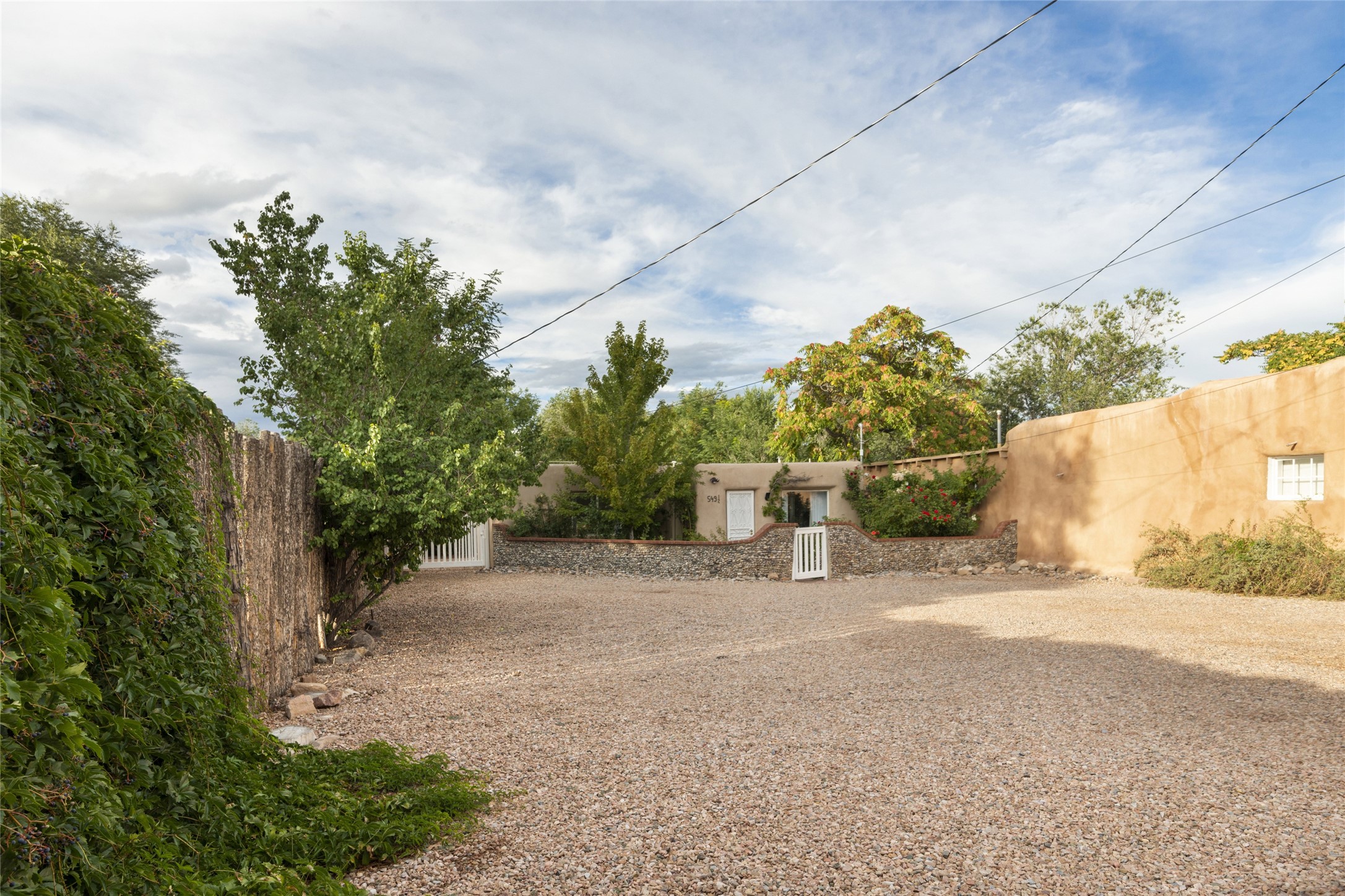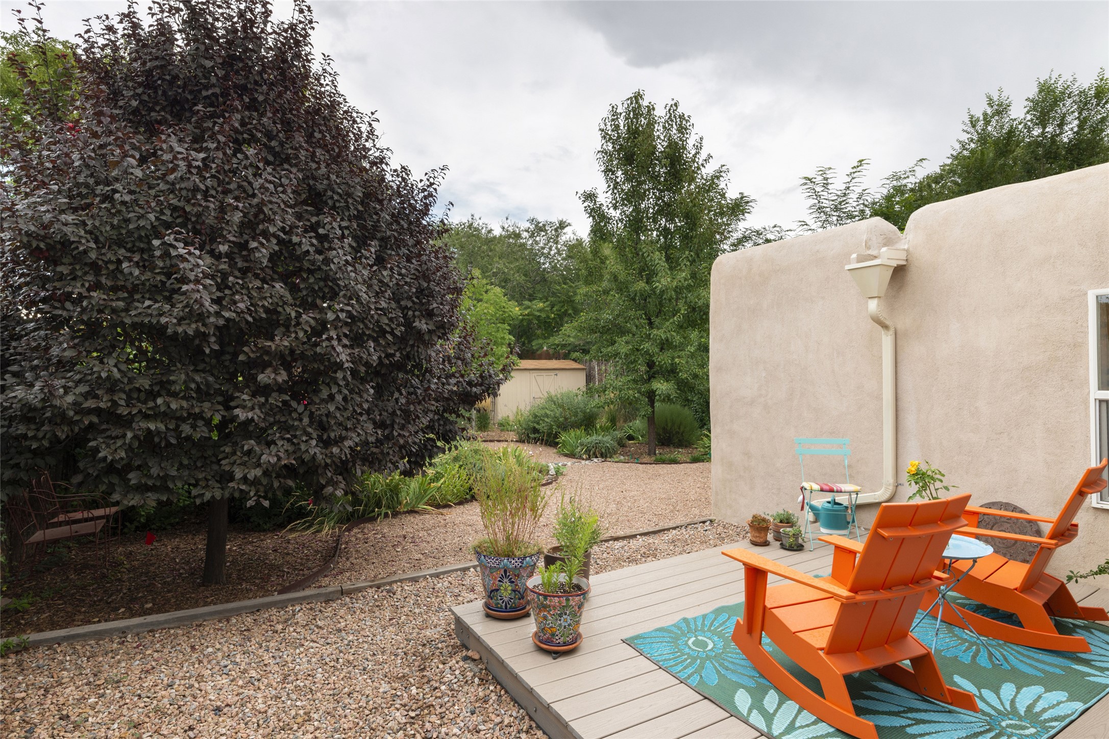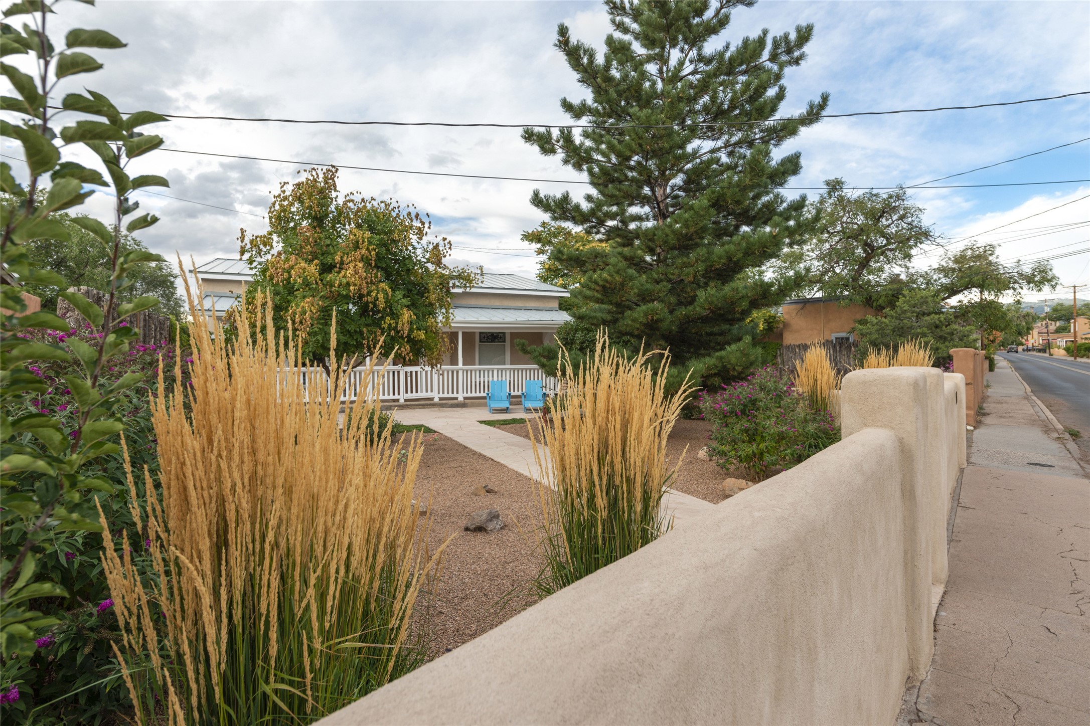 This lovely compound with two adobe homes located in the historic Guadalupe District, offers a number of opportunities: live in one and rent the other or use it as a guest house or an office/studio. The Northern NM style double adobe main residence was originally built in the late 1800s. Since 2010, the main house has been restored to its original beauty and the electrical, heating and plumbing systems have been updated. A nice-sized yard with xeriscaping, mature trees and portal are perfect for outdoor gatherings. The living room is open to the formal dining area with lovely wood and glass cabinets in between. The kitchen is open and inviting with modern appliances and plenty of storage. Nicely separated from the common rooms, the primary bedroom has a dressing room, closet and three quarter bath. There is a full bath in between the primary bedroom and the second bedroom. The 2 bedroom adobe guesthouse has been extensively updated since 2020 including hardwood floors, a kiva fireplace in one bedroom, a full bath, laundry room and kitchen. These 2 classic homes are located within the historic community surrounding Our Lady Of Guadalupe Santuario in the heart of Santa Fe.