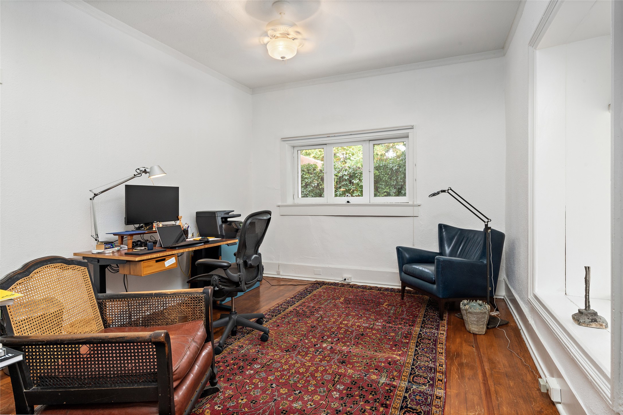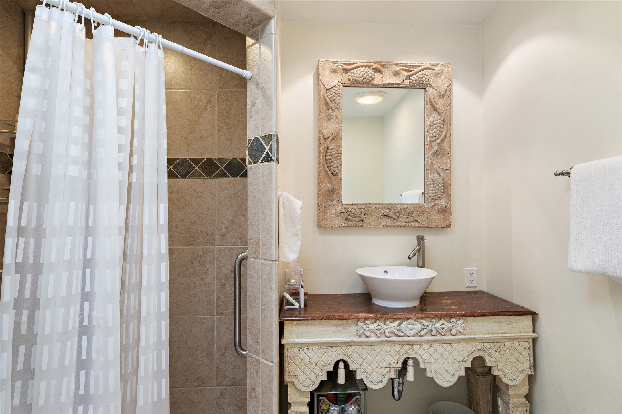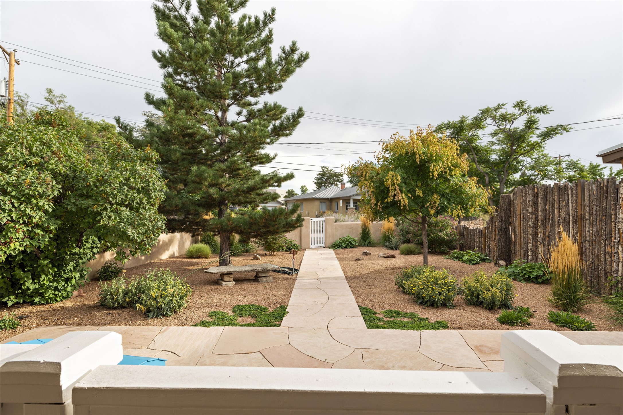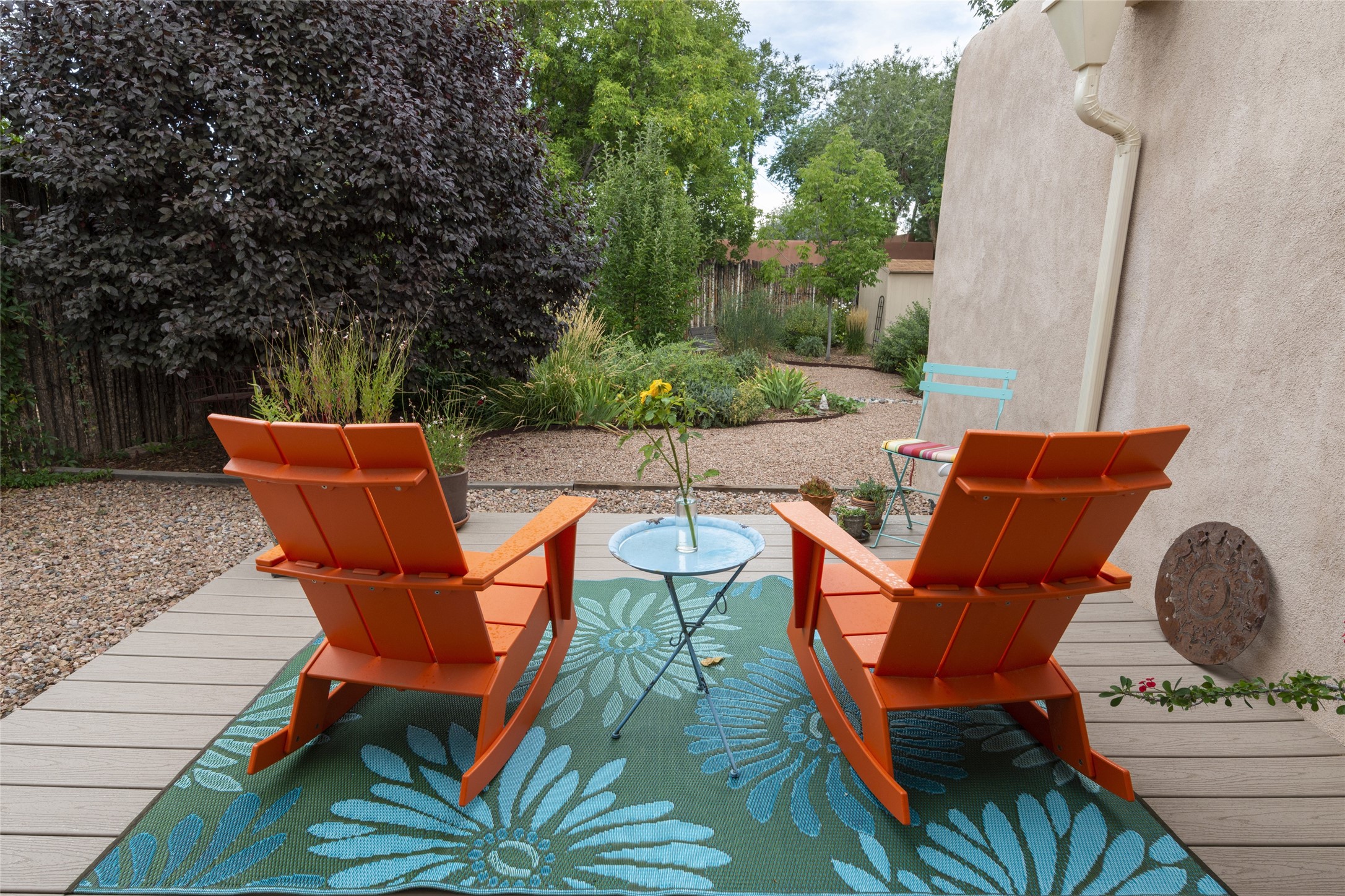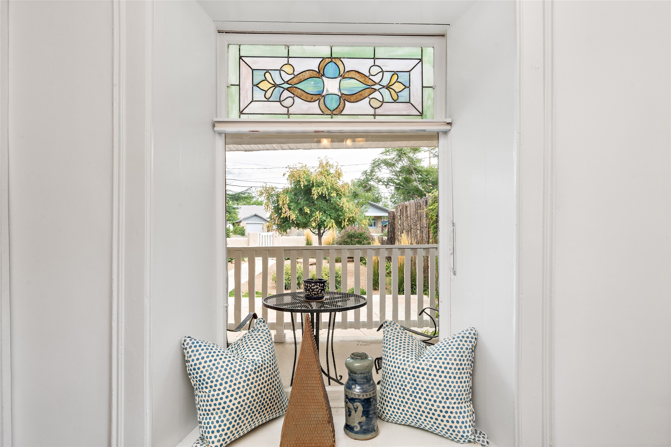 This lovely compound with two adobe homes located in the historic Guadalupe District, offers a number of opportunities: live in one and rent the other or use it as a guest house or an office/studio. The Northern NM style double adobe main residence was originally built in the late 1800s. Since 2010, the main house has been restored to its original beauty and the electrical, heating and plumbing systems have been updated. A nice-sized yard with xeriscaping, mature trees and portal are perfect for outdoor gatherings. The living room is open to the formal dining area with lovely wood and glass cabinets in between. The kitchen is open and inviting with modern appliances and plenty of storage. Nicely separated from the common rooms, the primary bedroom has a dressing room, closet and three quarter bath. There is a full bath in between the primary bedroom and the second bedroom. The 2 bedroom adobe guesthouse has been extensively updated since 2020 including hardwood floors, a kiva fireplace in one bedroom, a full bath, laundry room and kitchen. These 2 classic homes are located within the historic community surrounding Our Lady Of Guadalupe Santuario in the heart of Santa Fe.