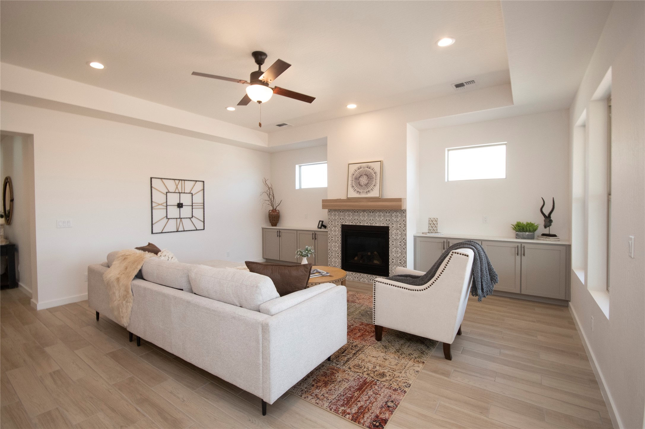This 4-bedroom Cypress is the one you have been waiting for! As soon as you walk in the skylights in the hallway greet you with sunshine. The soft grey cabinets, white countertops, wood-look tile floors, stainless steel appliances, 8ft white doors, fun and classy decorative tile on the fireplace with a wood box beam mantle makes this open-concept floorplan just stunning! Backyard Landscaping is included and will be installed in the coming weeks. Don't forget about the 210 warranty...buy with confidence!We look forward to helping you make this one yours!****$12K FROM THE BUILDER****To be utilized towards rate buy down or closing costs. BUYER GETS TO PICK HOW TO USE IT!