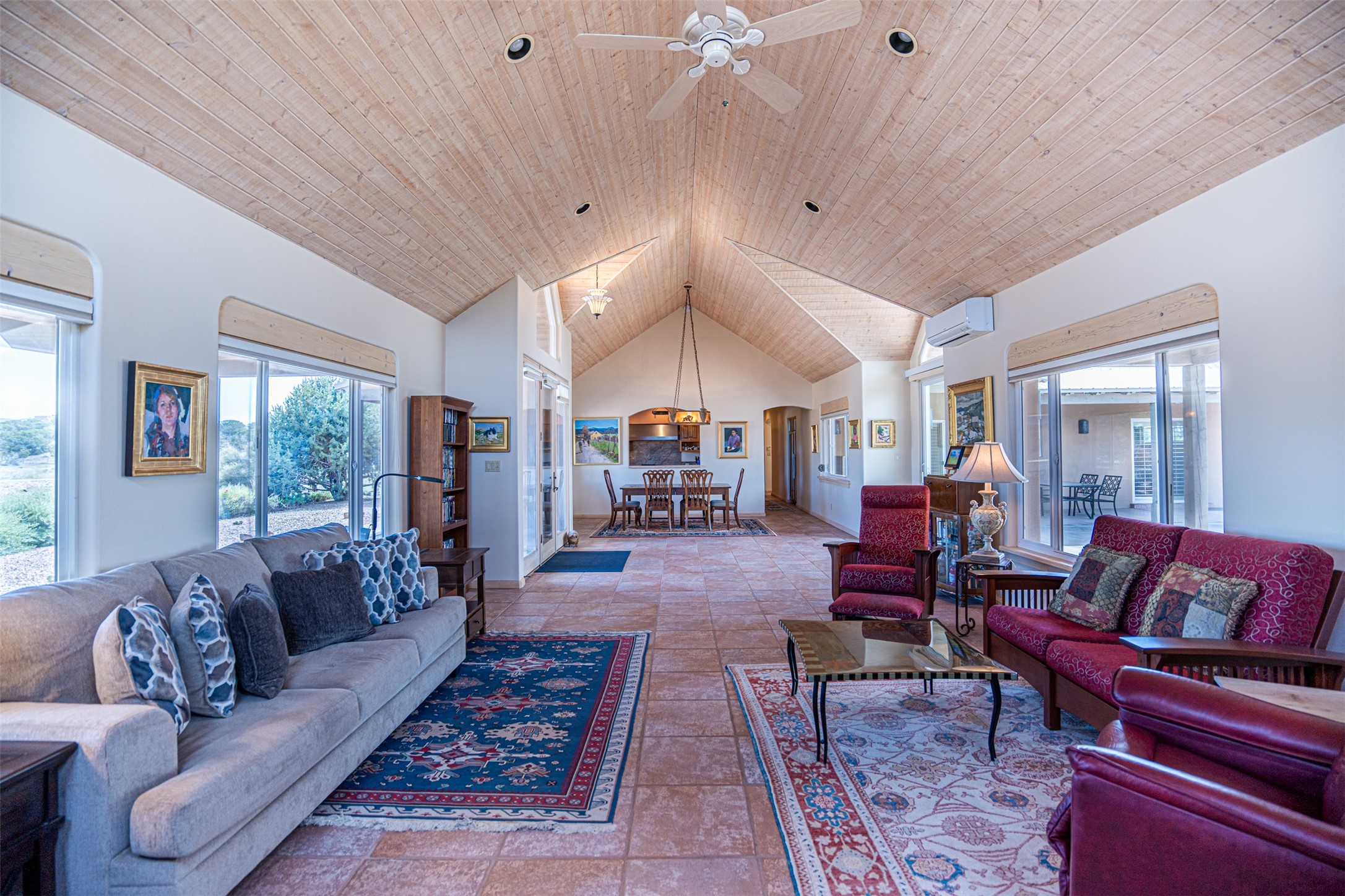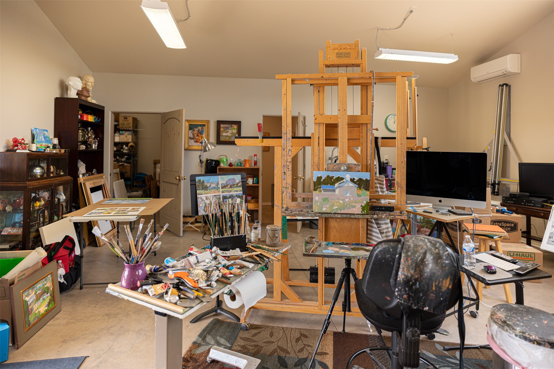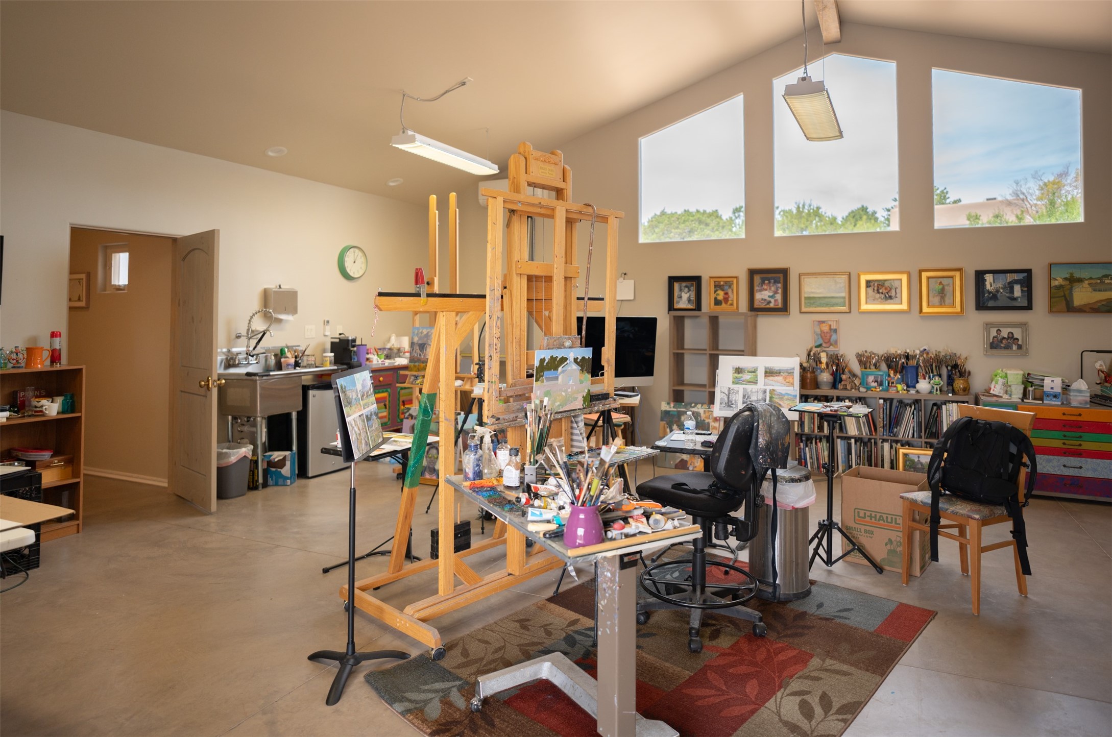 BROKER TOUR ON WEDNESDAY, OCTOBER 18 FROM 10AM-1PMThis custom residence sits on a 2.5-acre parcel of land, with three bedrooms, three bathrooms, and an attached oversized two-car garage. This property offers a truly exceptional opportunity to own a stunning home paired with a separate 1,900-square-foot professional art studio. Notably, the art studio was constructed by the renowned artist, Louis Escobedo (www.louisescobedo.com). The art studio features a gallery space with its own private entrance, a half-bathroom, and a storage room that could be transformed into an additional bedroom to suit your preferences. The generously proportioned work area within the studio is flooded with natural light, providing an inspiring environment for creativity. The 2,424-square-foot custom home features 15-foot vaulted wood ceilings and an open floor plan that lends an air of spaciousness and elegance. Each of the bedrooms connects to a generous patio, ideal for hosting gatherings with family and friends or simply unwinding in a serene setting. The primary bedroom has an ensuite bathroom with dual sinks and a fully enclosed glass shower area. The main house's kitchen is equipped with stainless steel appliances for your daily use, including a convenient winery chiller to keep your beverages refreshingly cold for special occasions. This house has a laundry room furnished with washer & dryer, and ample cabinets for storages. The 2.5-acre lot showcases native landscaping and offers breathtaking panoramic views of the surrounding mountains. This property represents the perfect fusion of artistic inspiration and opulent living, making it a truly unique and captivating opportunity.