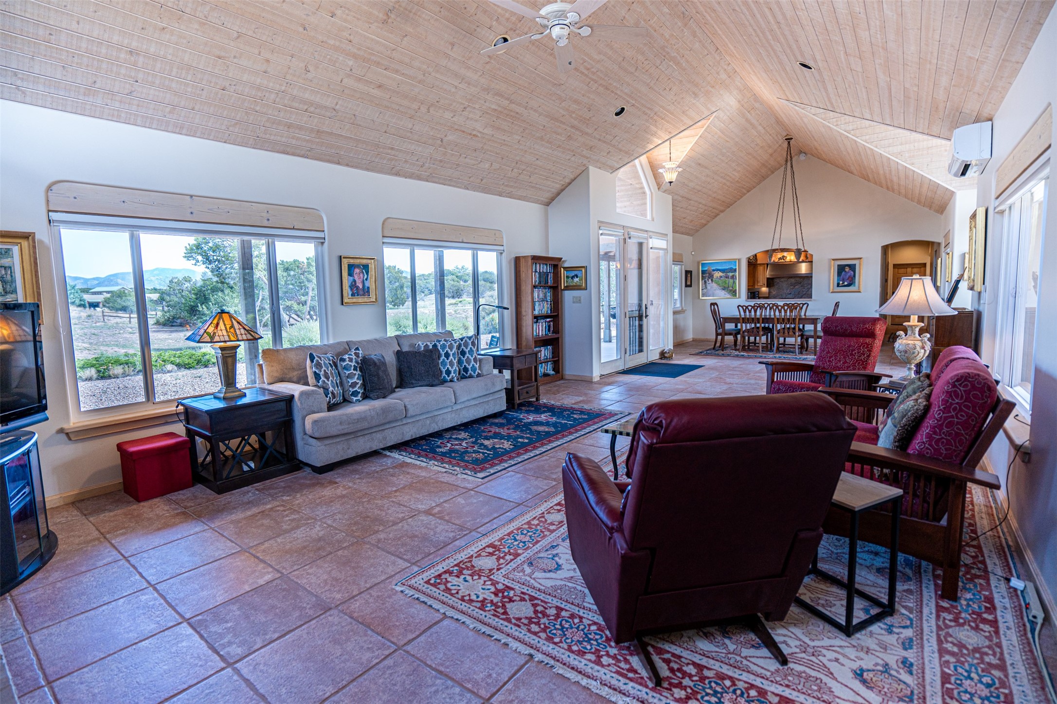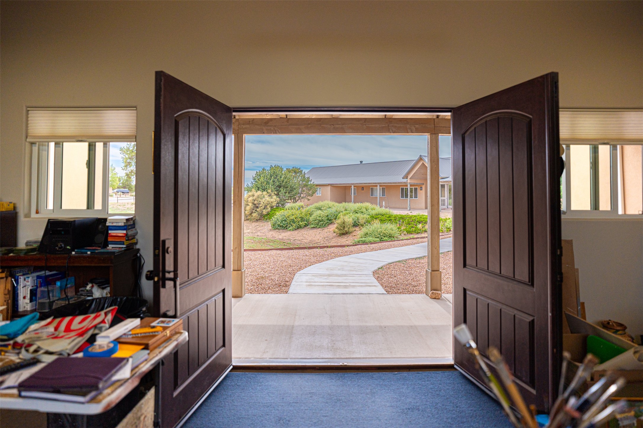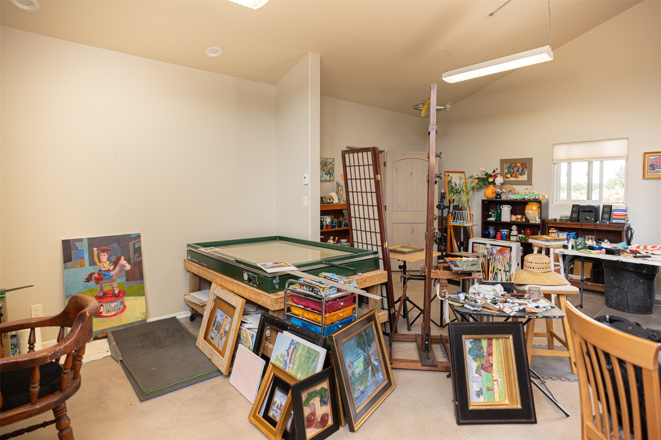 BROKER TOUR ON WEDNESDAY, OCTOBER 18 FROM 10AM-1PMThis custom residence sits on a 2.5-acre parcel of land, with three bedrooms, three bathrooms, and an attached oversized two-car garage. This property offers a truly exceptional opportunity to own a stunning home paired with a separate 1,900-square-foot professional art studio. Notably, the art studio was constructed by the renowned artist, Louis Escobedo (www.louisescobedo.com). The art studio features a gallery space with its own private entrance, a half-bathroom, and a storage room that could be transformed into an additional bedroom to suit your preferences. The generously proportioned work area within the studio is flooded with natural light, providing an inspiring environment for creativity. The 2,424-square-foot custom home features 15-foot vaulted wood ceilings and an open floor plan that lends an air of spaciousness and elegance. Each of the bedrooms connects to a generous patio, ideal for hosting gatherings with family and friends or simply unwinding in a serene setting. The primary bedroom has an ensuite bathroom with dual sinks and a fully enclosed glass shower area. The main house's kitchen is equipped with stainless steel appliances for your daily use, including a convenient winery chiller to keep your beverages refreshingly cold for special occasions. This house has a laundry room furnished with washer & dryer, and ample cabinets for storages. The 2.5-acre lot showcases native landscaping and offers breathtaking panoramic views of the surrounding mountains. This property represents the perfect fusion of artistic inspiration and opulent living, making it a truly unique and captivating opportunity.