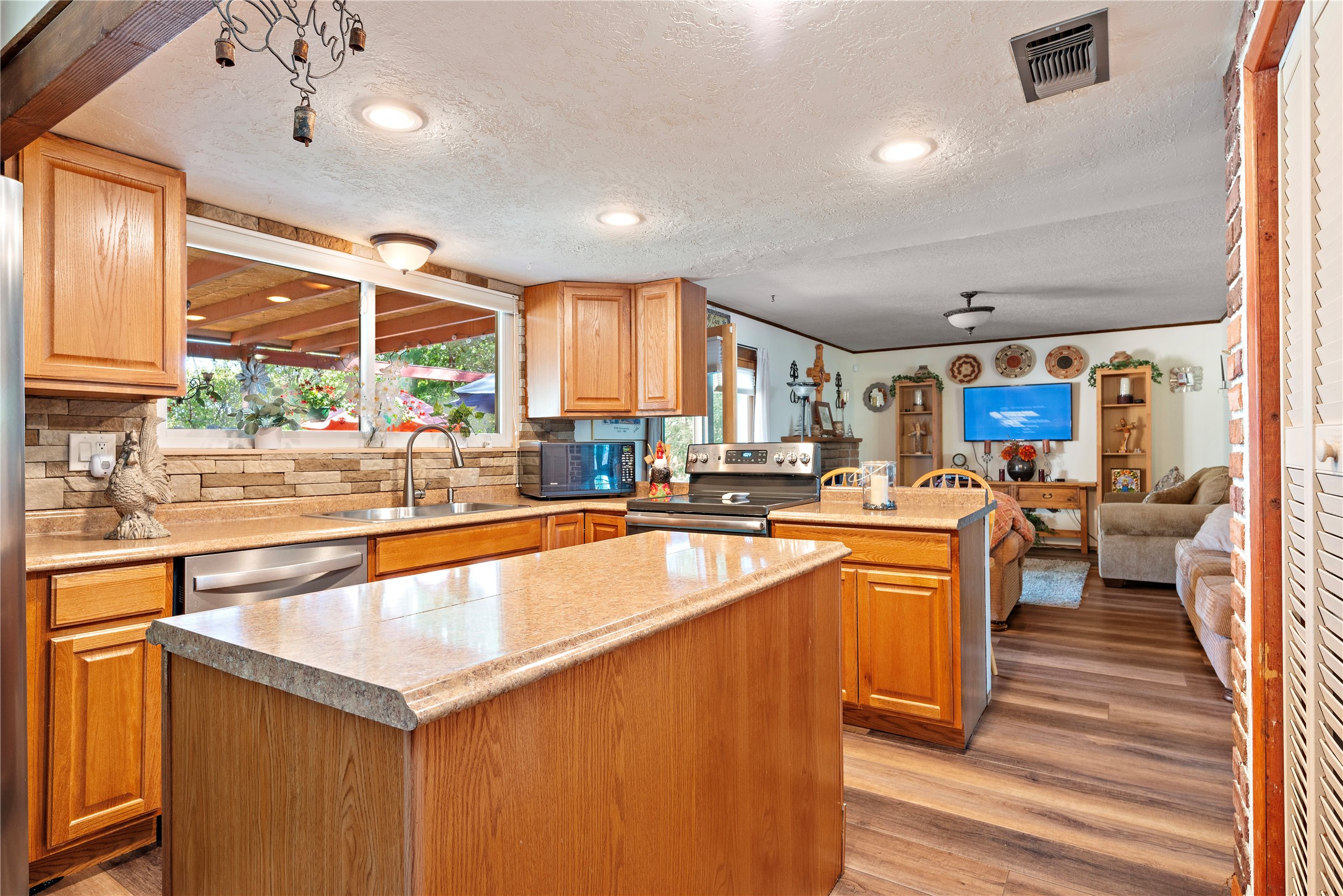 Beautiful 4 bedroom 2 bathroom home ready for a new family. Home is open concept filled with natural light, kitchen has stainless steel appliances with a deep walk in pantry and a large dining room perfect for entertaining family and guests. Saltillo tile and wood floors in main areas and cozy carpet in the bedrooms. A large fenced in backyard with low maintenance landscaping, mature trees and, a covered porch with additional storage shed tucked away in the corner. Conveniently located in established neighborhood near shopping and restaurants, only 15 minutes from the plaza.See Matterport for complete look at the property