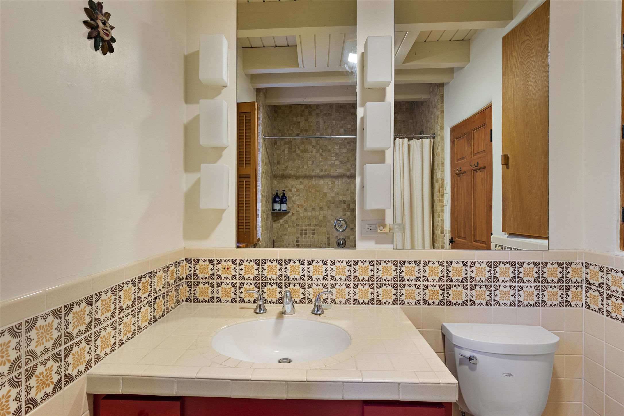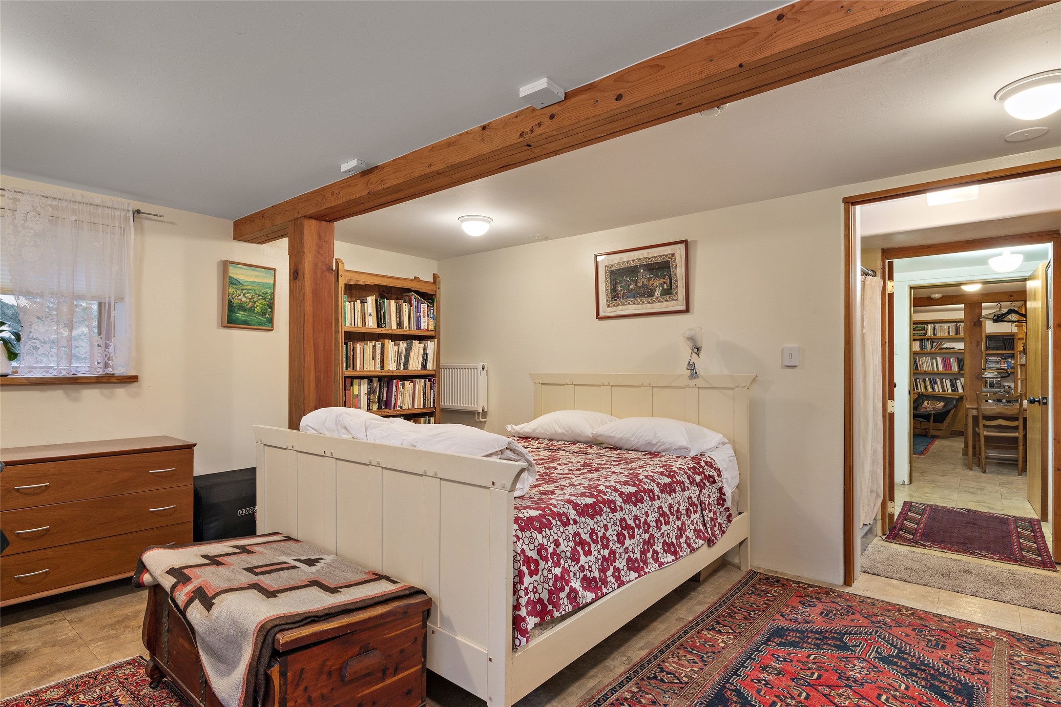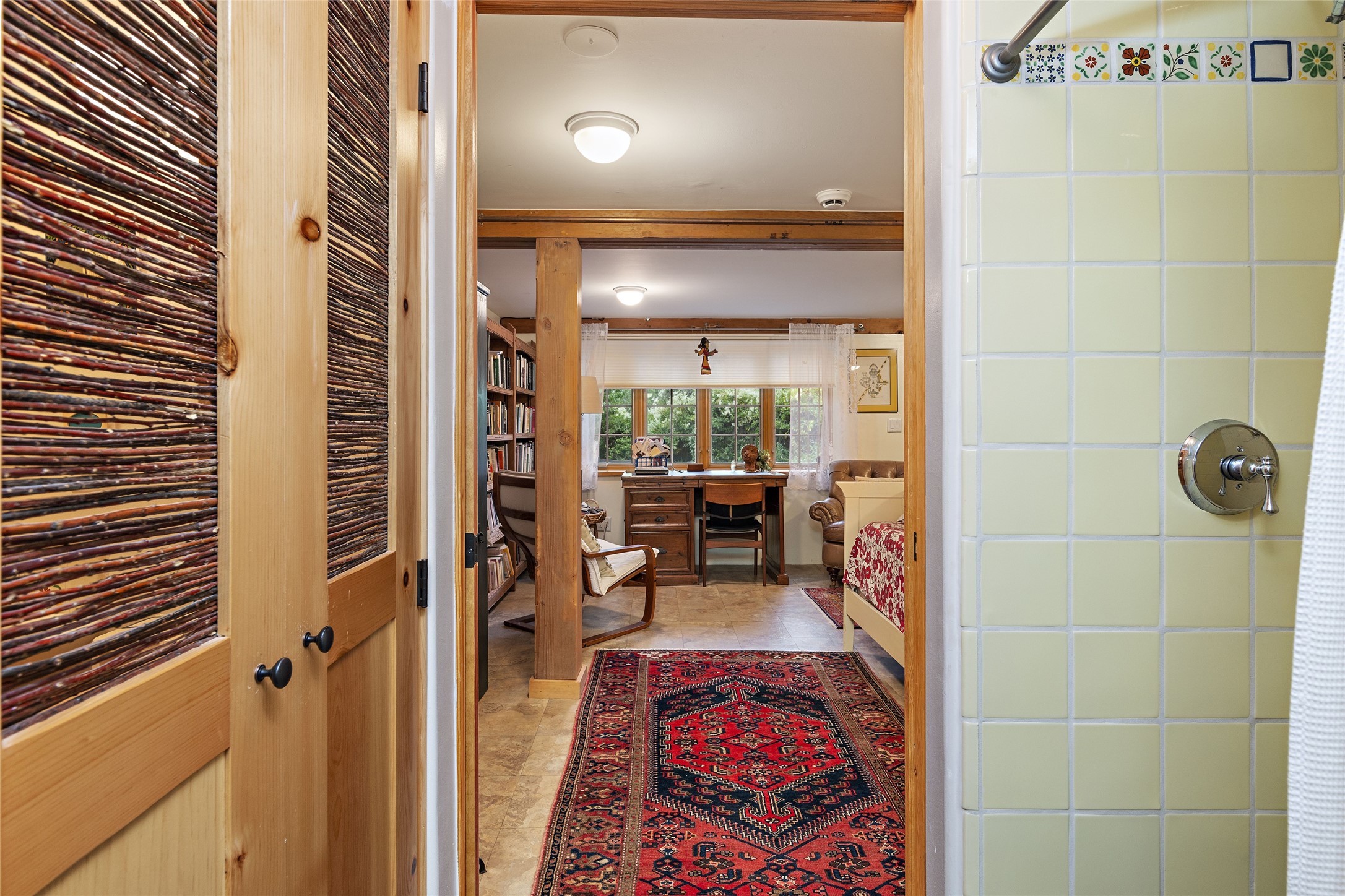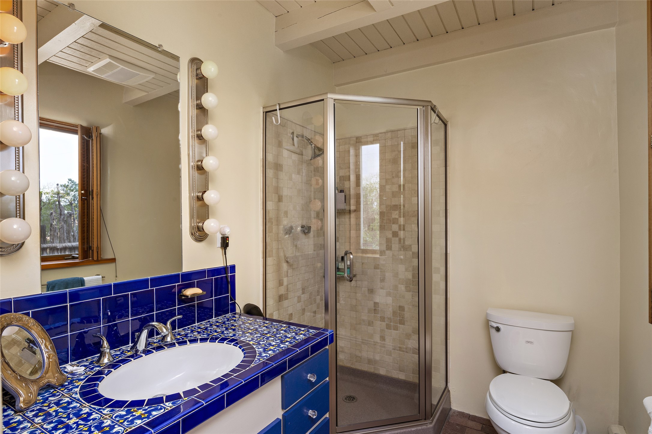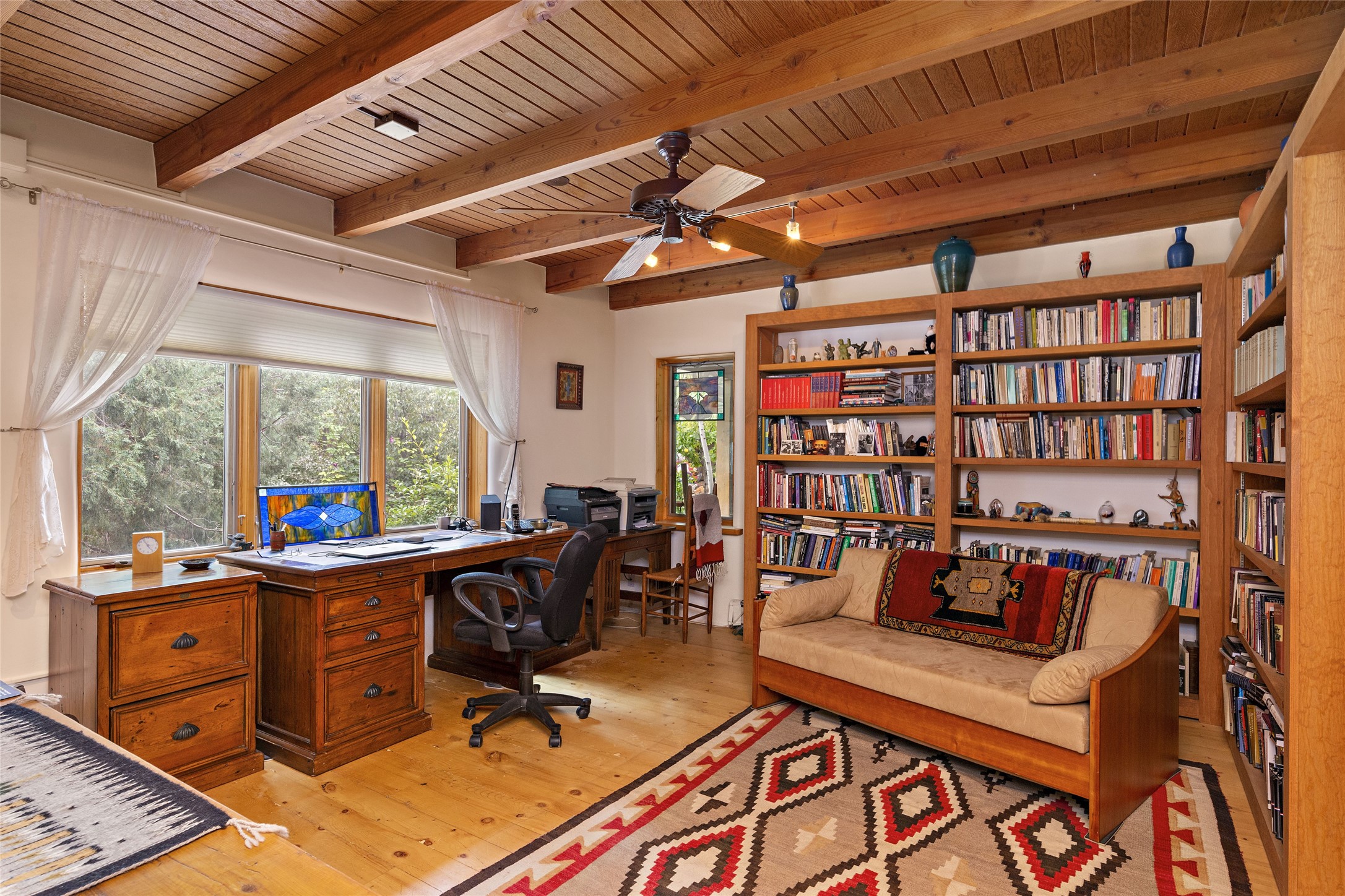 This Adobe home is gracefully tucked away in the heart of Santa Fe's sought-after Historic Eastside, along the enchanting Camino Del Monte Sol. Set within this locale, this property invites you to partake in the rich tapestry of Santa Fe's storied history. This captivating home stands proudly on a generous .56-acre lot, boasting a beautiful landscape adorned with lush vegetation and a diverse array of fruit trees. Imagine waking up to the fragrant scent of peaches, apricots, apples, nectarines, pears, and cherries wafting through your backyard. Irrigation is available on the property, fostering the growth of the beautiful vegetation. There is a large varnished carport for two cars with two additional parking spaces on the property. Step inside, and you'll discover a thoughtfully designed residence that seamlessly combines comfort and elegance. Featuring three bedrooms, including a spacious primary suite, and a total of three bathrooms (one full bath and two 3/4 baths.) Inside, you'll appreciate the brick flooring throughout the open living area and the granite countertops in the chef's kitchen, blending classic Santa Fe style with modern convenience. Evaporative cooling and ceiling fans throughout ensure your comfort during the warmer months. Tall ceilings with vigas add to the sense of spaciousness, while historic charm infuses each room. The fireplace in the living room is perfect to gather around while entertaining. The expansive yard provides endless opportunities for relaxation, outdoor dining, or simply basking in the New Mexico sunshine. Shaded entertaining areas with large portals invite you to savor the outdoors while staying cool. This remarkable home in Santa Fe's historic Eastside is more than just a place to live; it's a gateway to a storied past and a haven for modern living. Don't miss the opportunity to make this exceptional home your own and experience the true essence of Santa Fe's charm and history.
