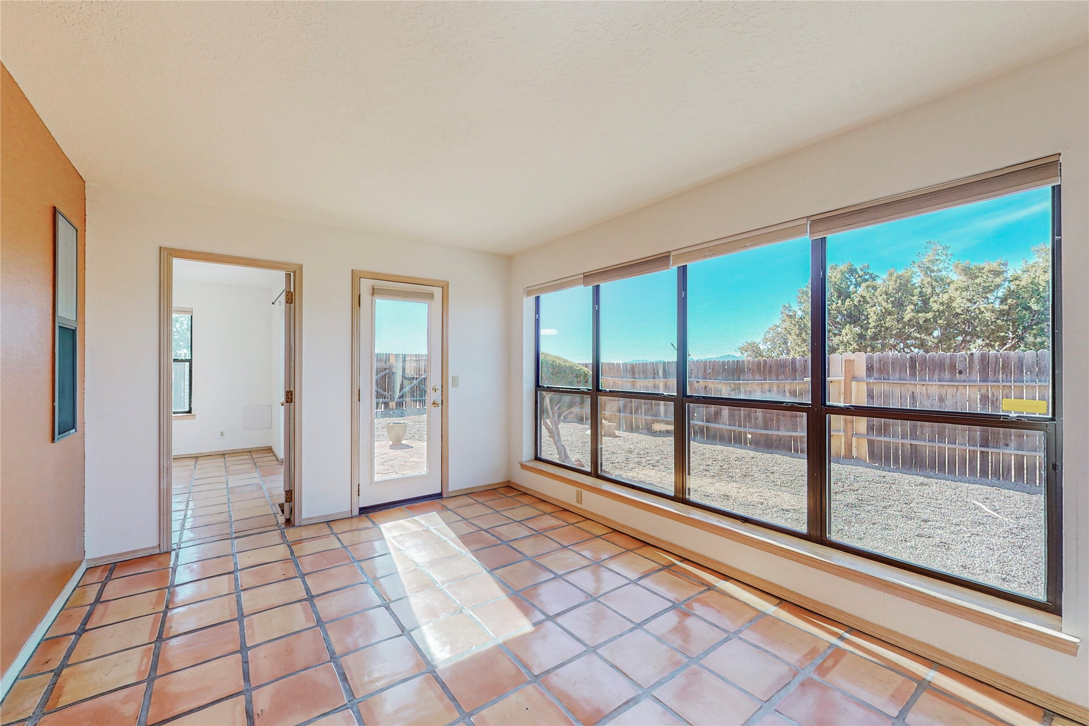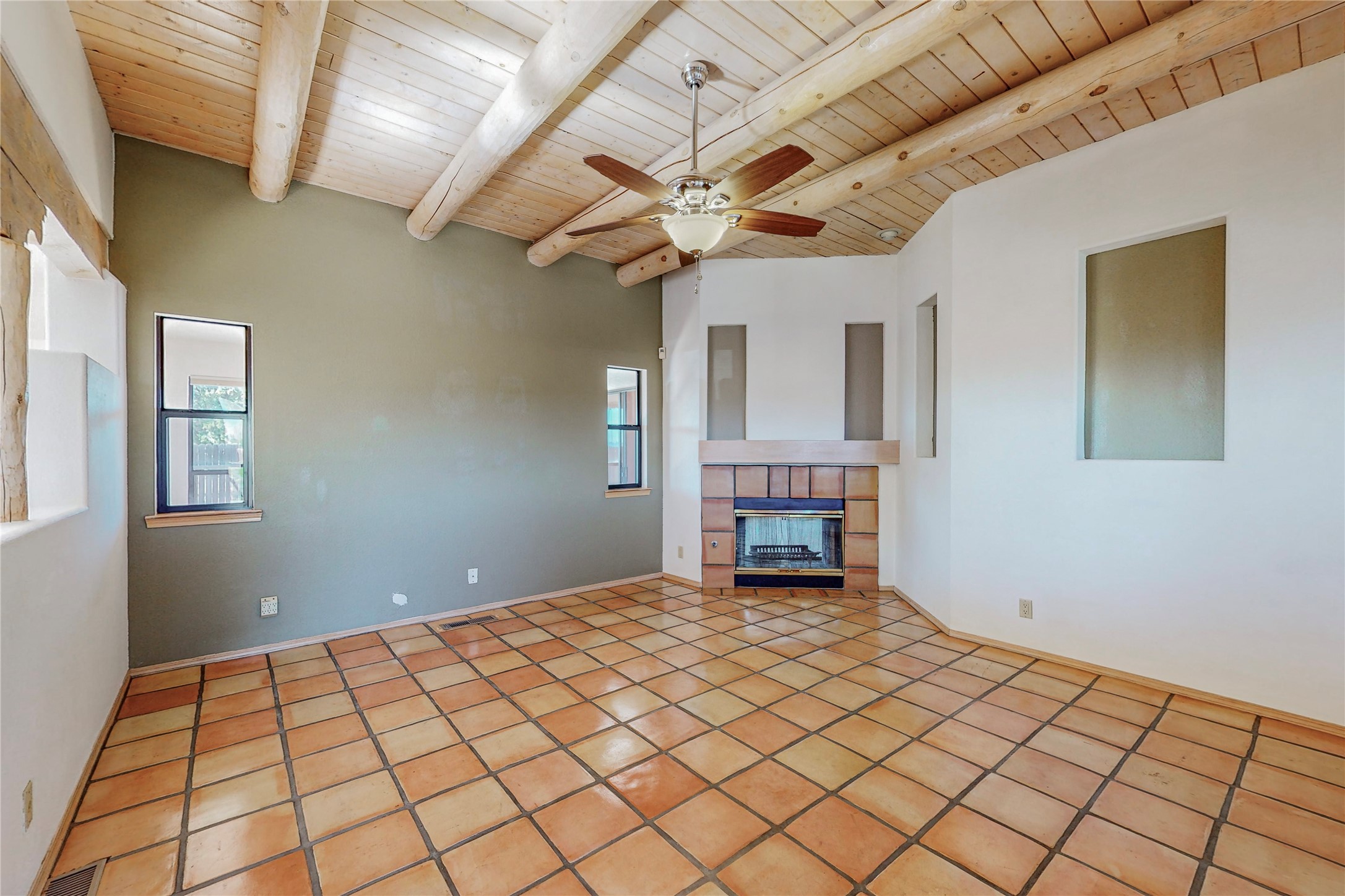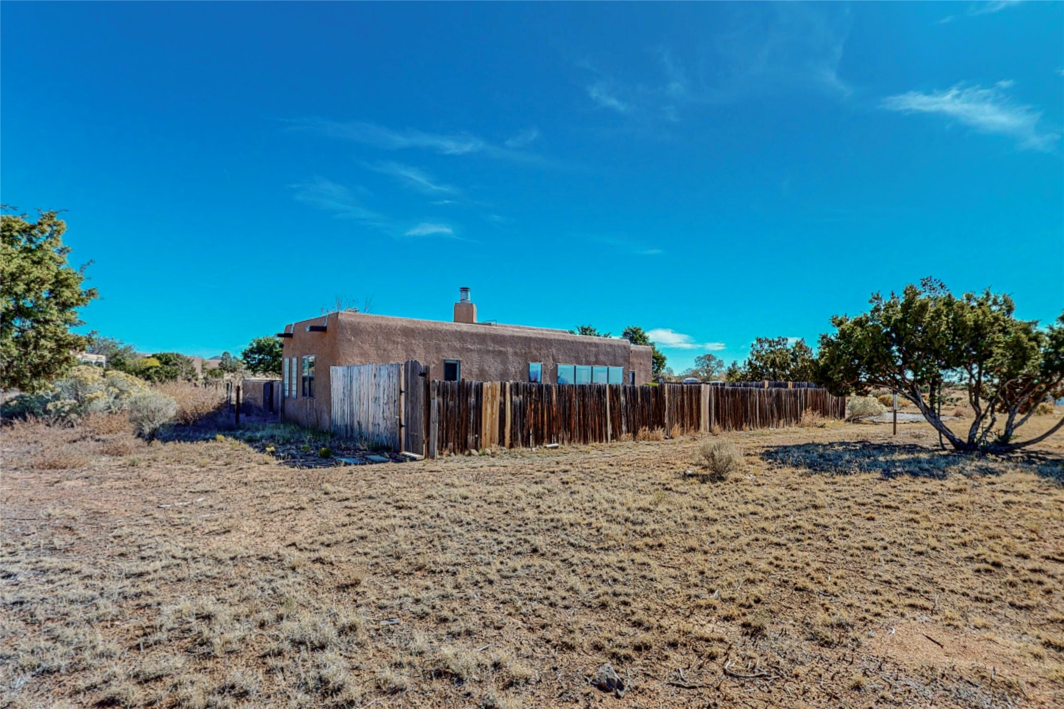COME TO OUR OPEN HOUSE TODAY,SUNDAY NOVEMBER 12TH BETWEEN 1-4 P.M.Embrace the Santa Fe lifestyle in this beautiful two-bedroom, two-bathroom home designed in the classic pueblo style, situated on a 1.59-acre lot. At the heart of this home, a wood-burning fireplace has played a central role in countless family game nights and festive Christmases. The interior has a New Mexican ambiance, with features such as Saltillo tile, viga ceilings, and tasteful turquoise accents. Additionally, the family room is graced with elegant wooden pillars that pay homage to the rich traditions of Southwestern design. The kitchen has newer stove and refrigerator, offering ample pantry space and a window overlooking a charming enclosed front yard. From the kitchen next area is the house dining area, and through a sliding glass door, you'll find another enclosed yard space. The house has a sunroom with full glass windows that welcome natural light into every corner of this home. Nestled within the community of Eldorado, you'll have access to the exclusive amenities offered by this neighborhood including swimming pool, basketball & tennis courts, community center, dog park, and more. Eldorado has well-maintained paved walking trails that provide a picturesque environment for residents. Be sure to explore the El Dorado Farmer's market, where you can discover fresh, locally sourced produce. This property is just minutes away from restaurants, shopping center, pet store, Library and bank in the Algora Shopping center. Join the vibrant community of Eldorado, which was recognized as the #1 Best Place to Live in Santa Fe County by Niche in 2022.