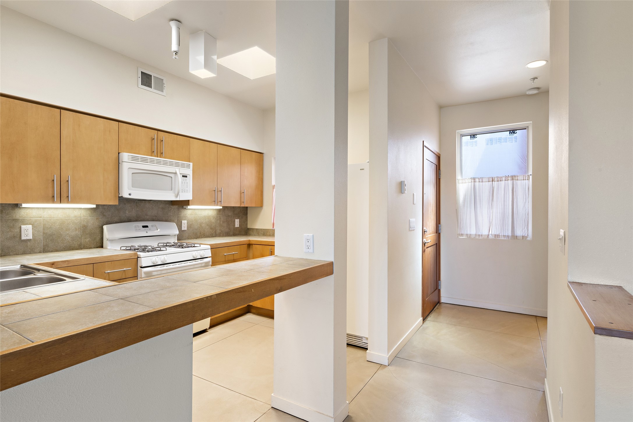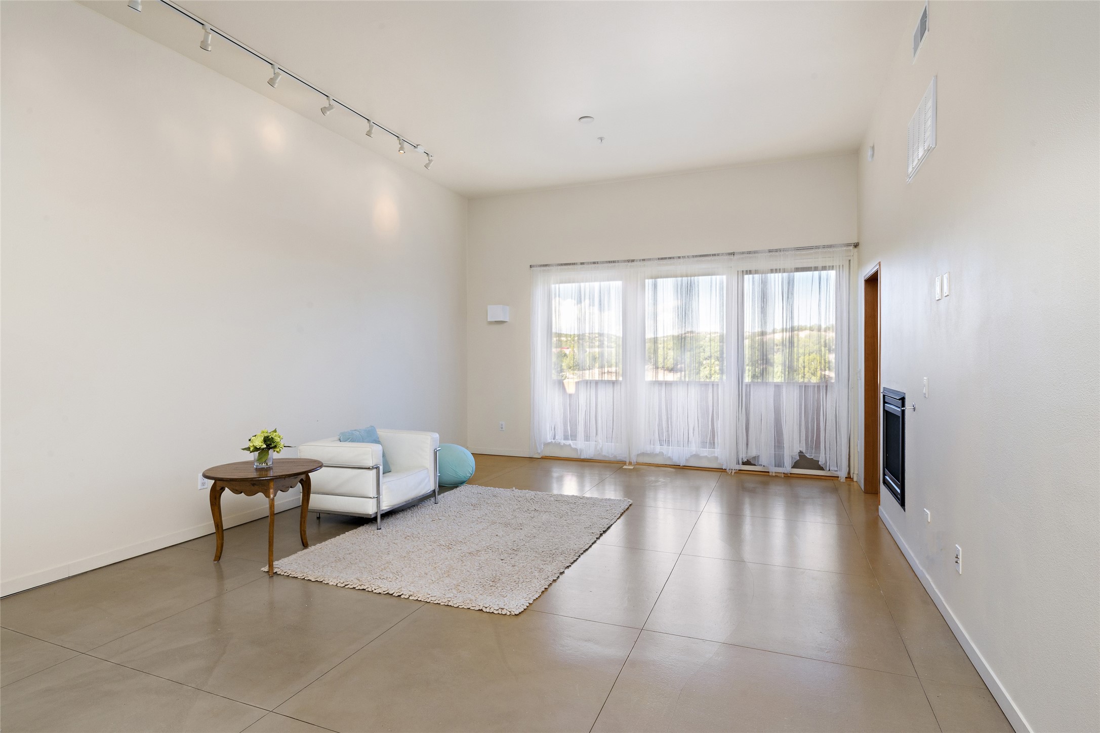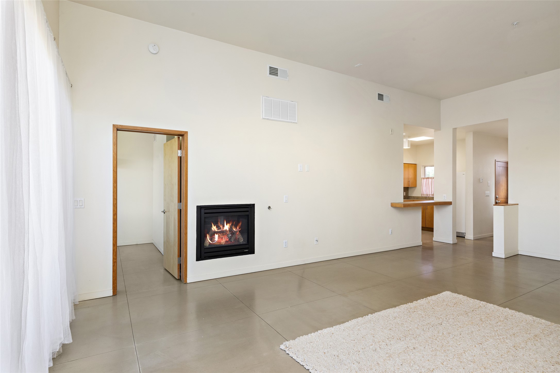 This light and bright two bedroom and 1-3/4 bathroom Zocalo condo is ideally located in Santa Fe's Northside with easy access to the 599 Bypass Highway and just minutes to downtown. Open and modern, the space has high ceilings in the large living area with a wooded view deck via sliding glass doors. A gas burning fireplace flanks the living area adding a warm detail to the space. The primary bedroom ensuite is separated from the secondary bedroom, boasting lots of storage, a walk-in closet, and a large spa-like bathroom with a large soaking tub and tiled shower. The secondary bedroom has its own private view deck from a sliding glass door. The kitchen opens up on to the living/dining area with a laundry area tucked away in a closet with a full size stackable washer and dryer. Ideal as a full time, second home or lucrative rental, the condo comes with an oversized, detached one-car garage and an additional designated parking space. The condo has forced air heating and central refrigerated A/C. Amenities include a fitness center, swimming pool, conference room, clubhouse kitchen, all maintained by the HOA close to shopping and great walking/bike trails.