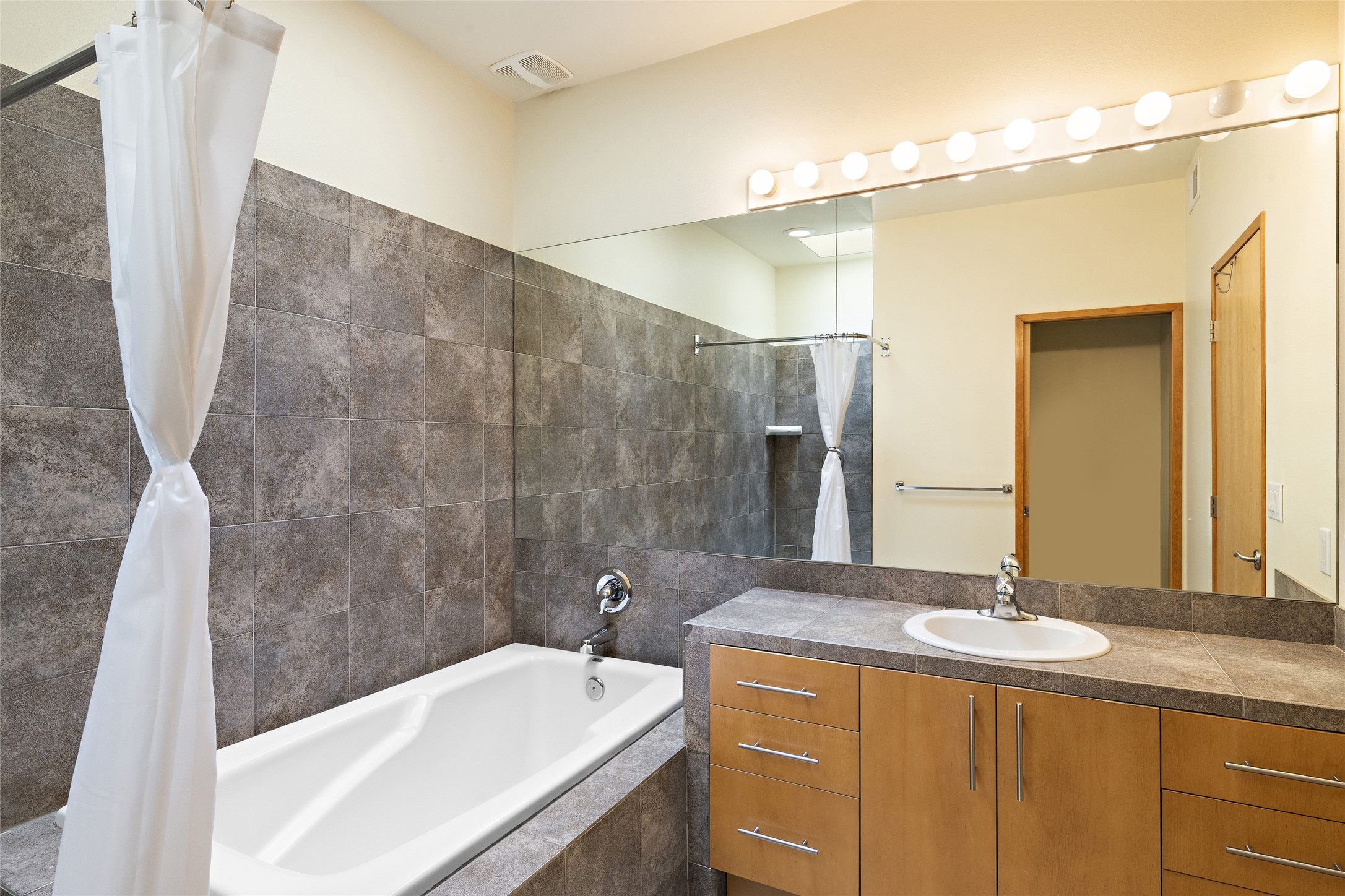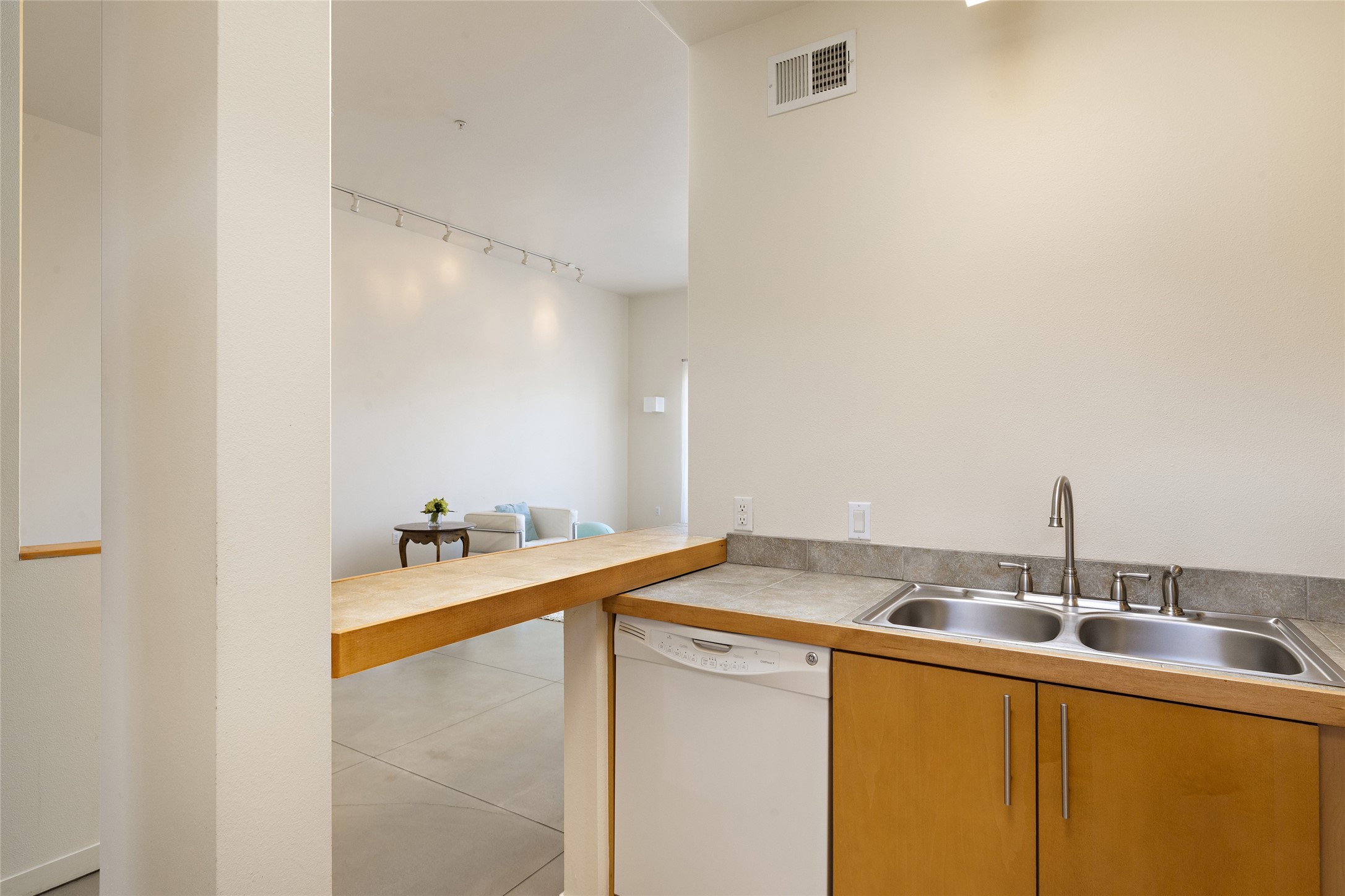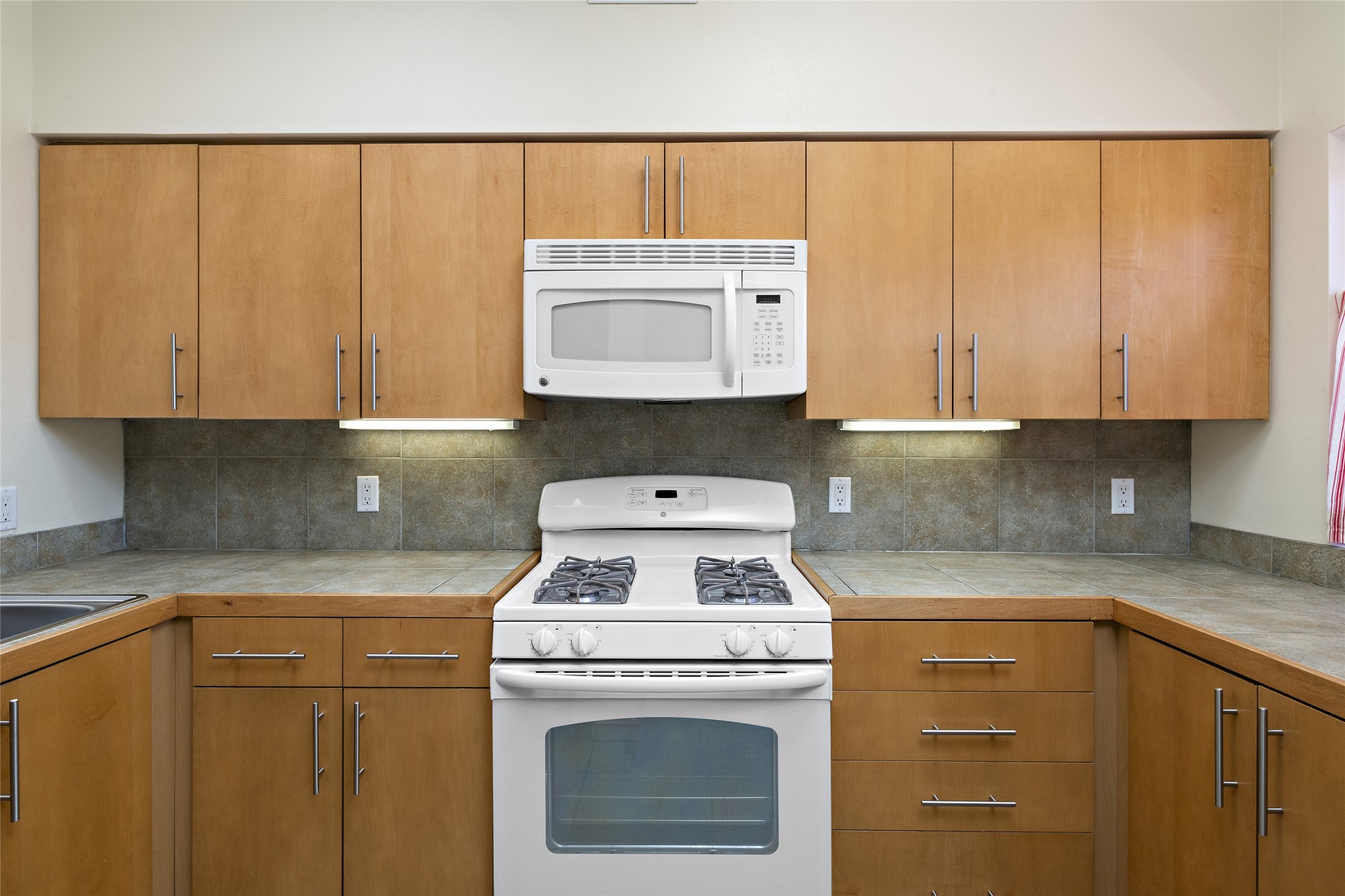 This light and bright two bedroom and 1-3/4 bathroom Zocalo condo is ideally located in Santa Fe's Northside with easy access to the 599 Bypass Highway and just minutes to downtown. Open and modern, the space has high ceilings in the large living area with a wooded view deck via sliding glass doors. A gas burning fireplace flanks the living area adding a warm detail to the space. The primary bedroom ensuite is separated from the secondary bedroom, boasting lots of storage, a walk-in closet, and a large spa-like bathroom with a large soaking tub and tiled shower. The secondary bedroom has its own private view deck from a sliding glass door. The kitchen opens up on to the living/dining area with a laundry area tucked away in a closet with a full size stackable washer and dryer. Ideal as a full time, second home or lucrative rental, the condo comes with an oversized, detached one-car garage and an additional designated parking space. The condo has forced air heating and central refrigerated A/C. Amenities include a fitness center, swimming pool, conference room, clubhouse kitchen, all maintained by the HOA close to shopping and great walking/bike trails.