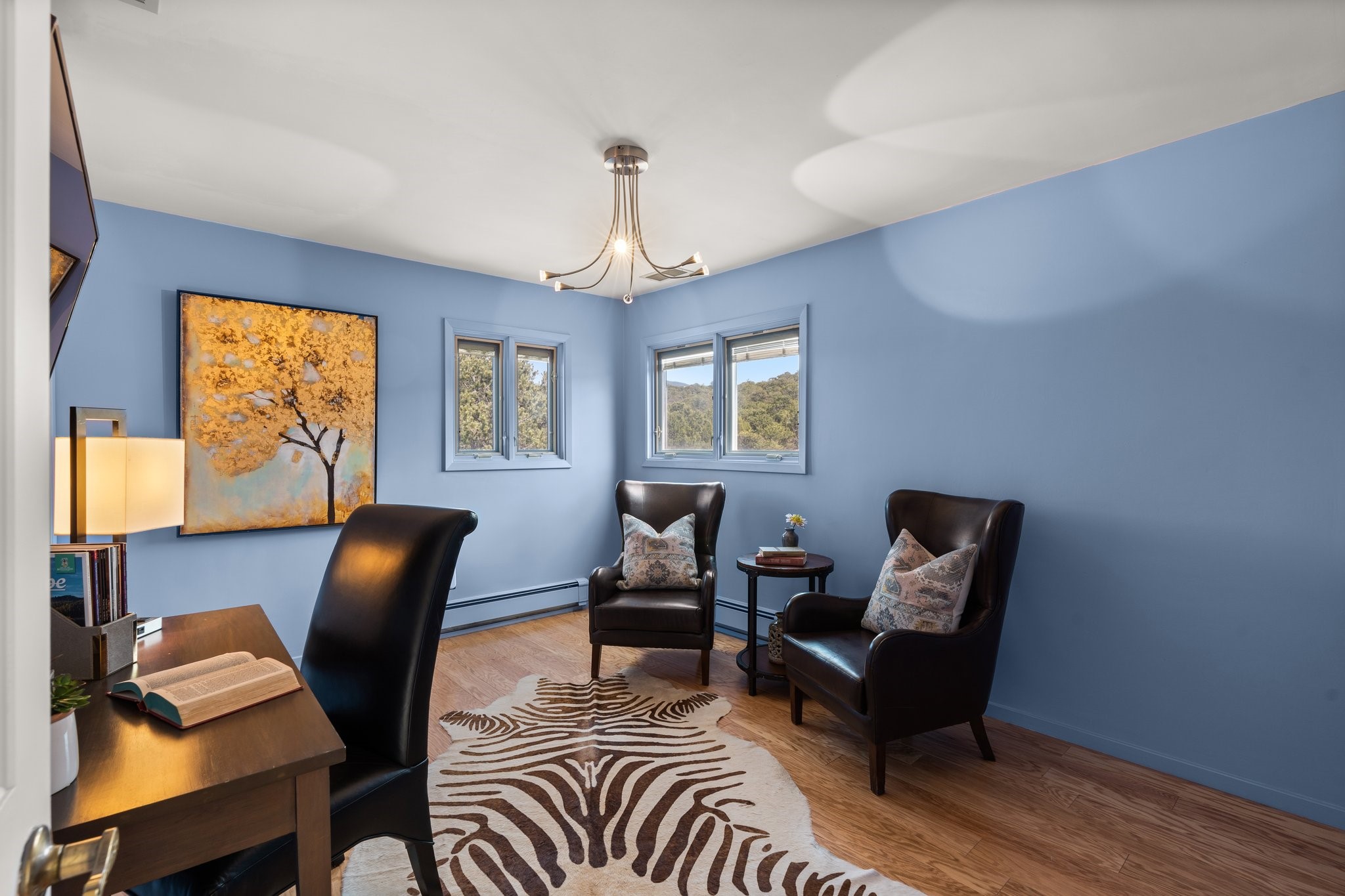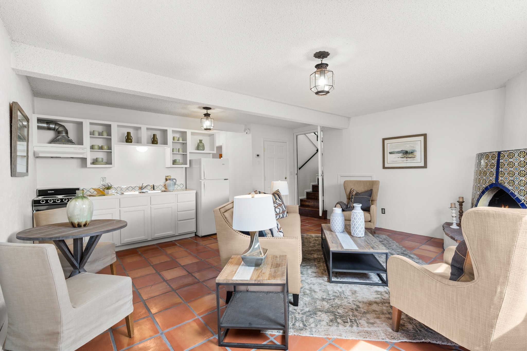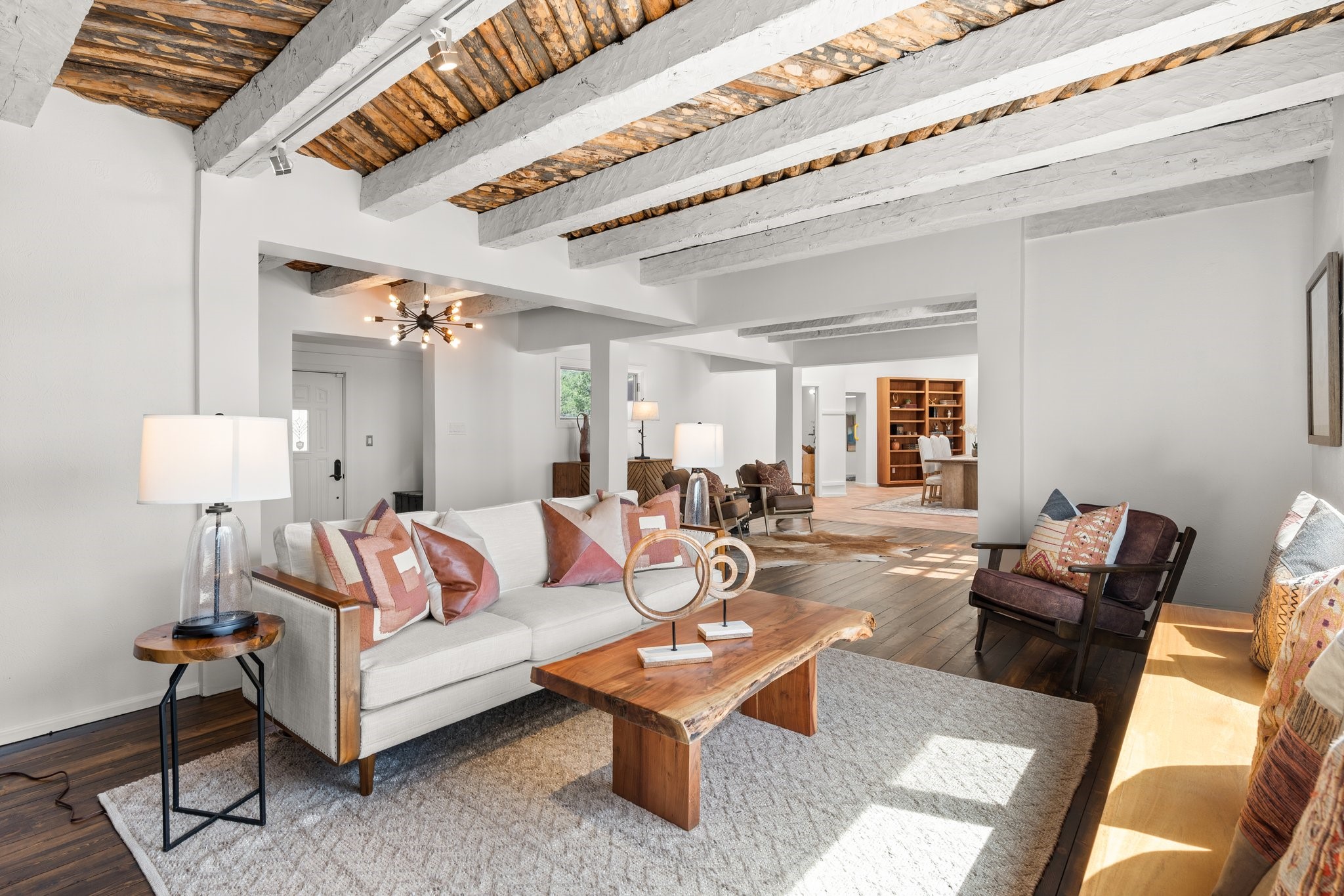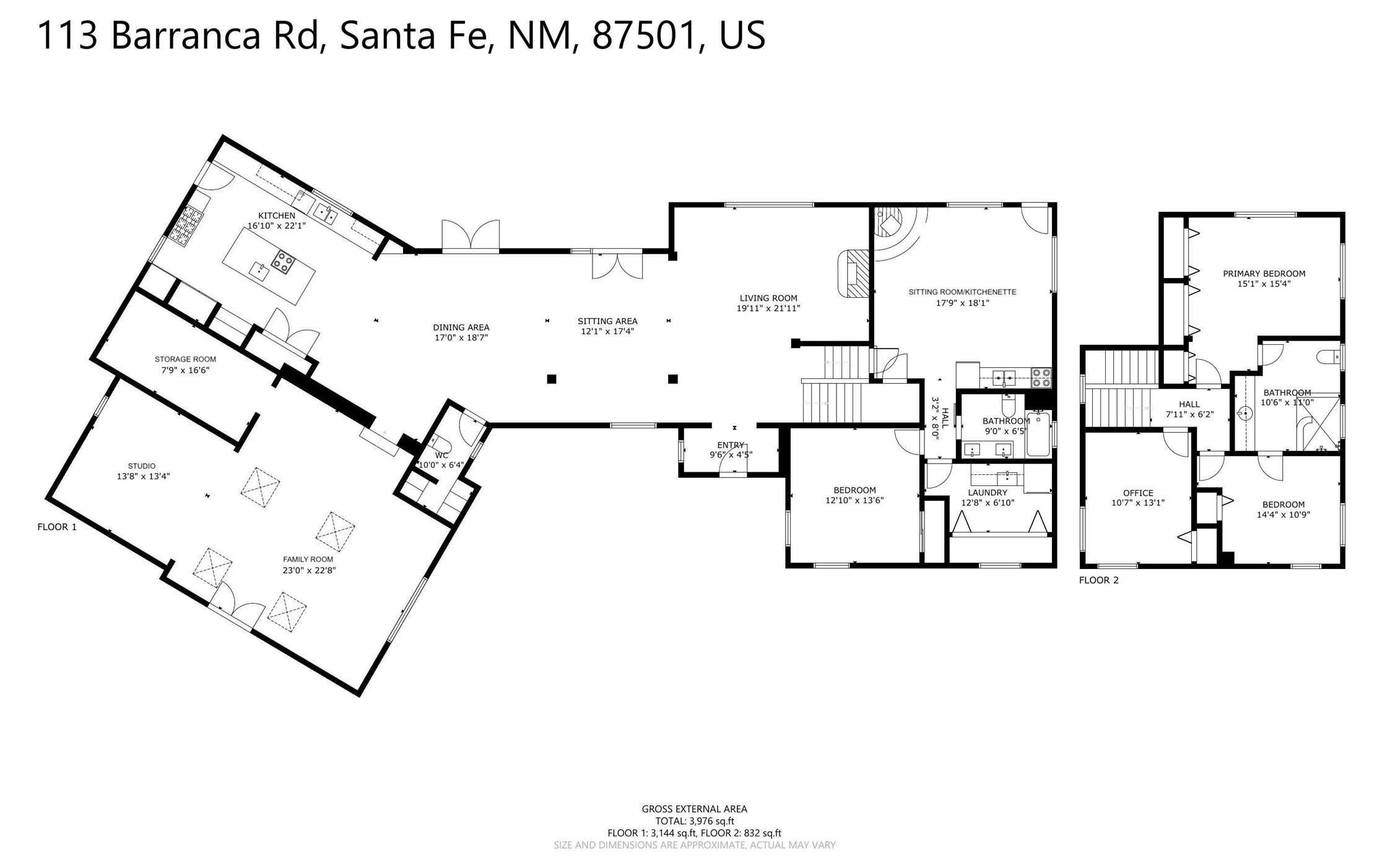 This stunning 4,000 +/- sq. ft home boasts 2 full bedroom suites, each with its own bathroom and sitting room. The upstairs suite additionally has an office while the downstairs bedroom suite with direct entry from the outside has a kitchenette. Nestled in the serene Santa Fe mountains and surrounded by magnificent views, this meticulously maintained home sitting on 1.9 acres is but minutes from downtown Santa Fe and its many amenities. Ideal for year-round entertaining, the generous great-room (living, dining, kitchen), offers easy access to the 900 sq. ft. Trex deck from which to enjoy amazing sunset views. The bespoke chef's-kitchen boasts a full range of top-of-the-line, Energy-Star, stainless steel appliances -- two stove tops, one electric with downdraft, and one gas; three ovens, one electric and two gas; two dishwashers, a wine cooler, microwave, a Viking fridge/freezer combo as well as a separate upright freezer, two sinks, and a very generous island. Quartz countertops and custom cabinetry complete the kitchen. The adjoining studio with storage for paintings can double as a family room or be built out into a stunning main bedroom suite. A 20 x 8 ft greenhouse and a garden shed allow you to give flight to all your gardening dreams. Paid off solar panels on the roof keep the electric bills to a minimum. A composite roof slopes gently to allow for drainage. The house is protected with lightning rods around the perimeter of the roof. This home offers so many more extras that it is impossible to list them all here. Please see additional info in document section of listing. All measurements are estimates and if of material interest, Buyer to independently verify. Neither Seller nor Listing Broker warrant house or lot size.