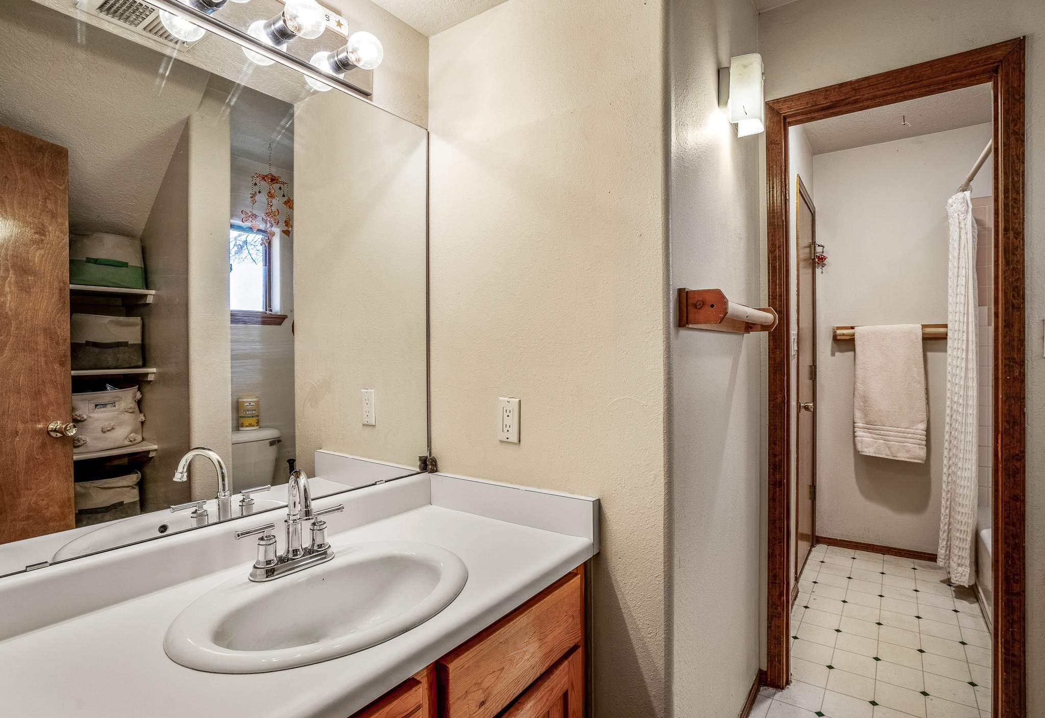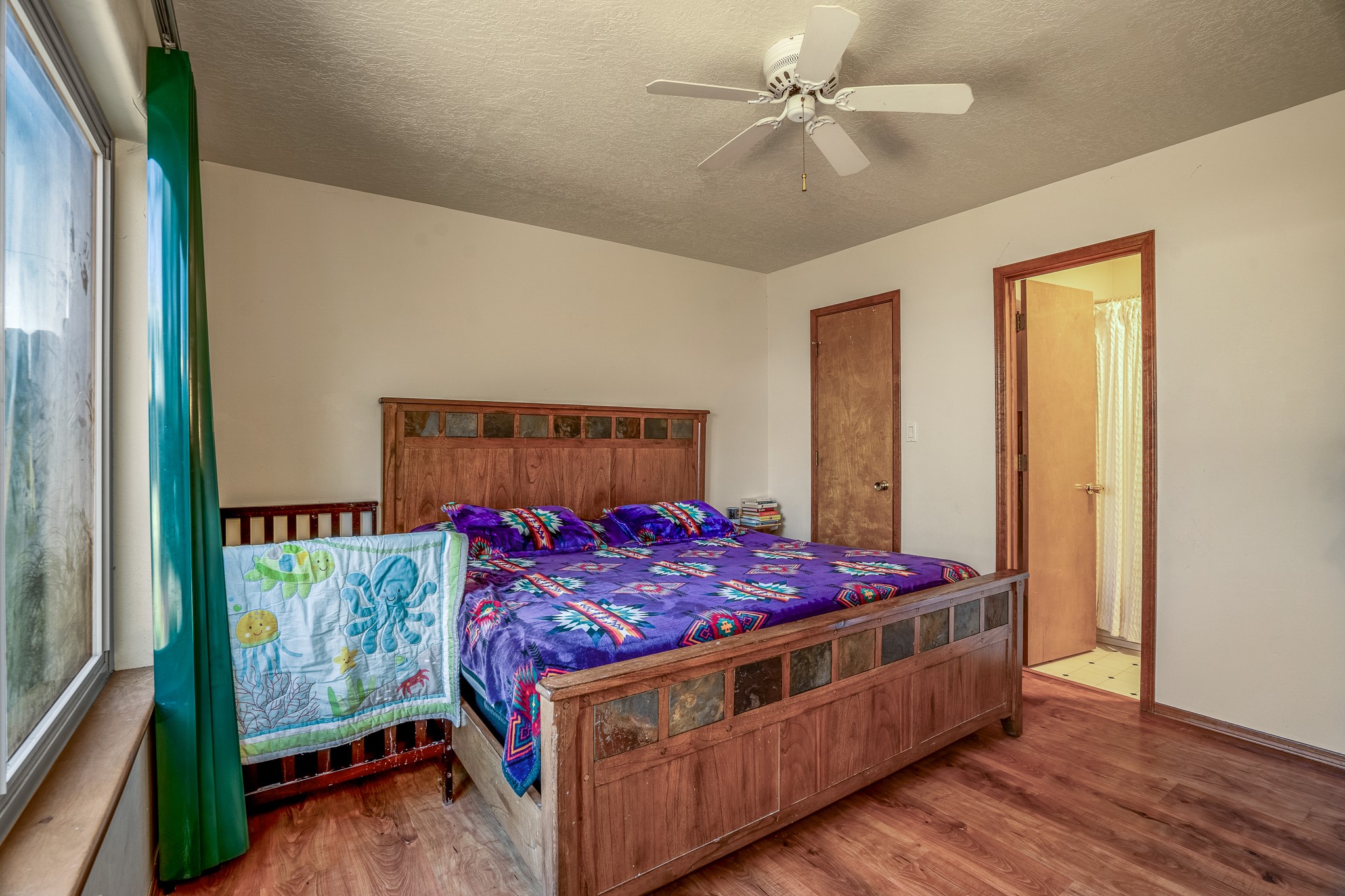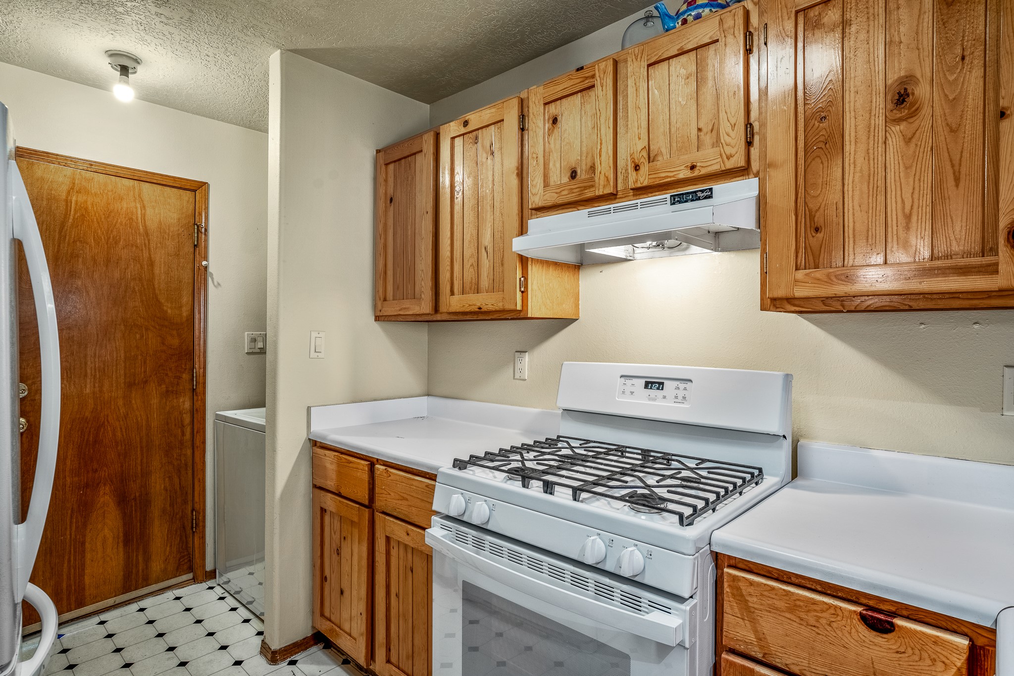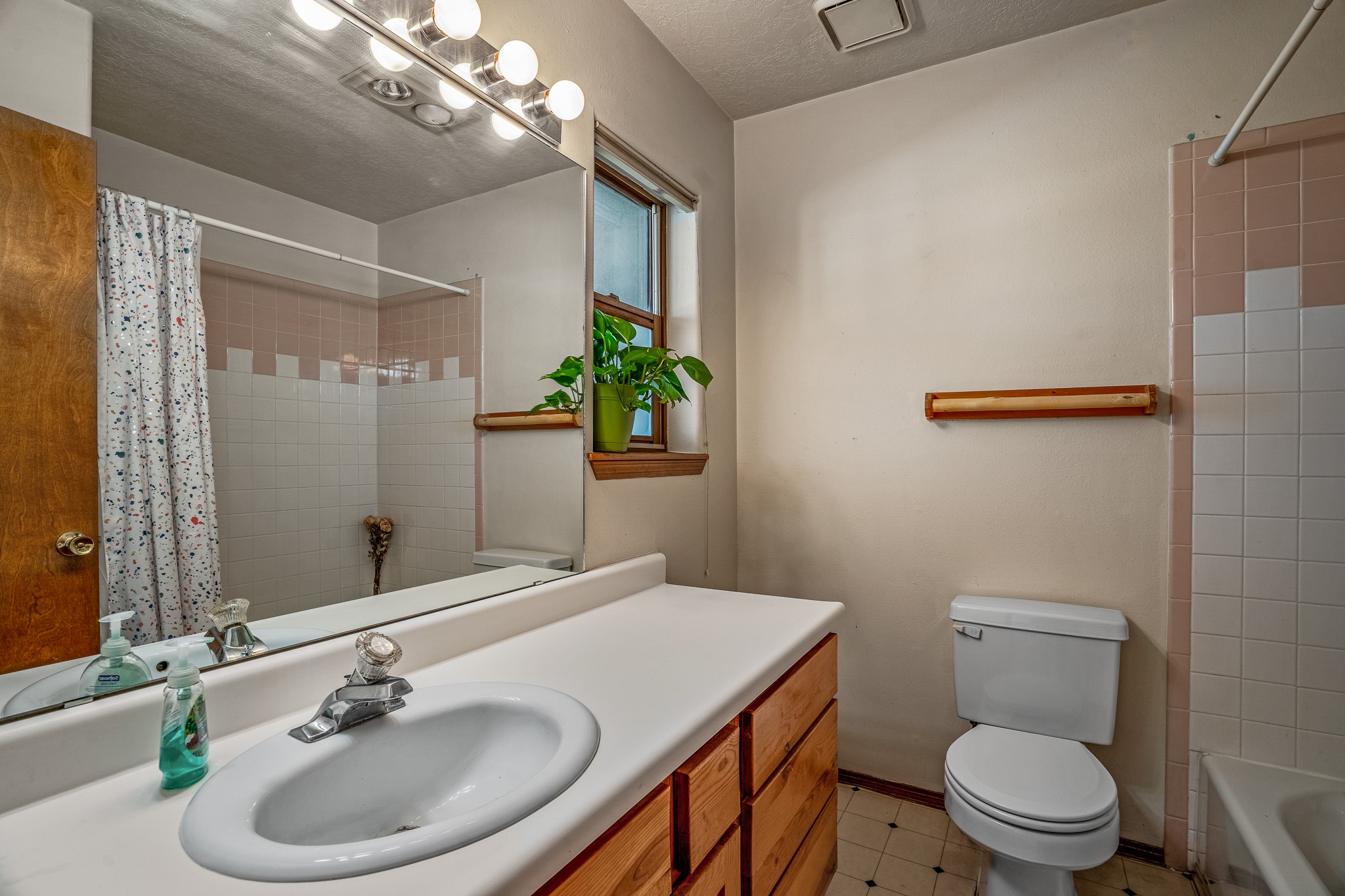 Sweet and charming 2 story, 2 bedroom, 2 bath, 1 car garage home in Plaza de Castillo with mountain views minutes from the Arroyo Chamisos Trail, close to the hospital, amenities and 15 minutes to the Santa Fe Plaza. Enter this gem of a home from the private enclosed and gated front courtyard. On the main level, you will find a bedroom with a full bath, saltillo tile and wood laminate flooring, kitchen with new range and dishwasher, breakfast bar, laundry room with washer and dryer and living room with wood burning fireplace. Upstairs, there is also a bedroom and full bath plus a versatile light and bright bonus room with mountain views perfect as an additional bedroom, office, study, playroom etc. From the living room you can access the cute rear patio with gardens, mature landscaping and sitting area. Features and amenities: Walk-in closet-Plenty of closets/storage-Forced air heat-Wood floor on the stairs-Ceiling fans-Transferrable roof coating warranty until January 2028 and more!