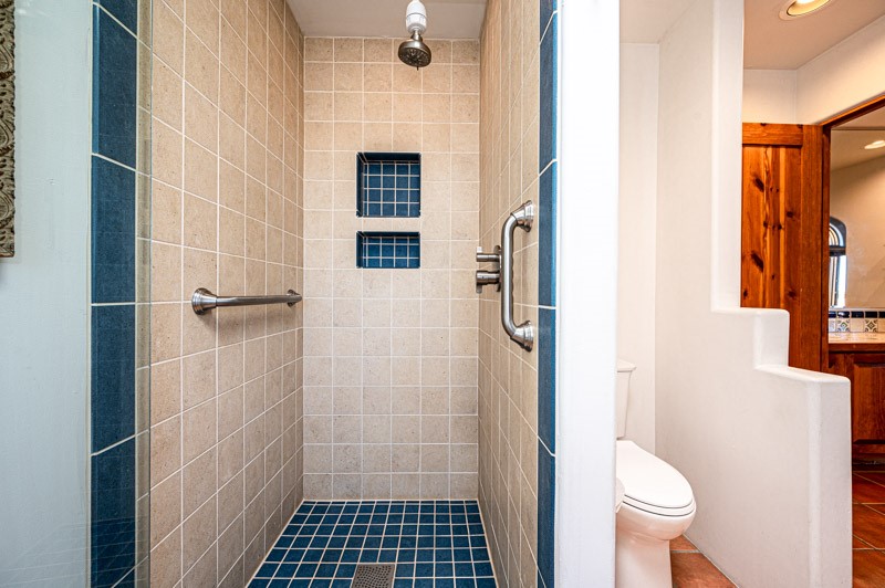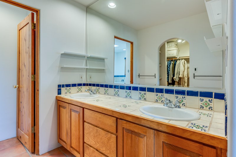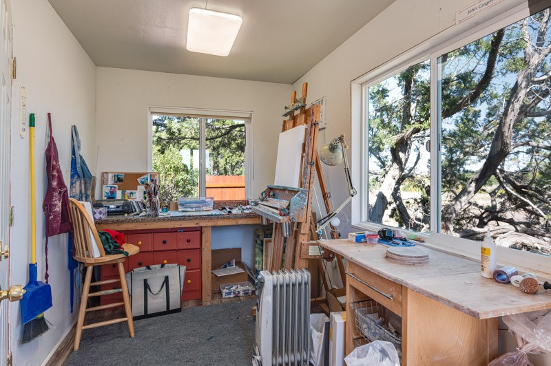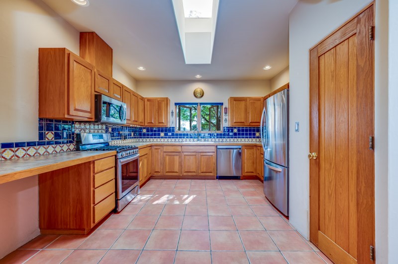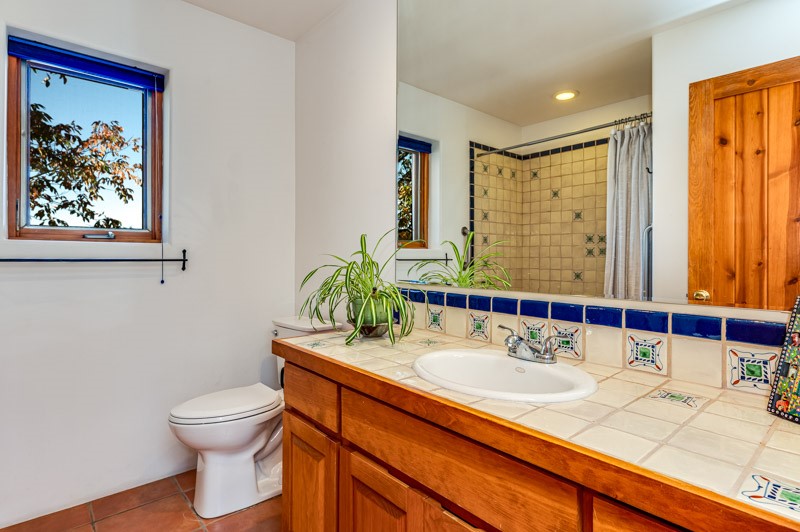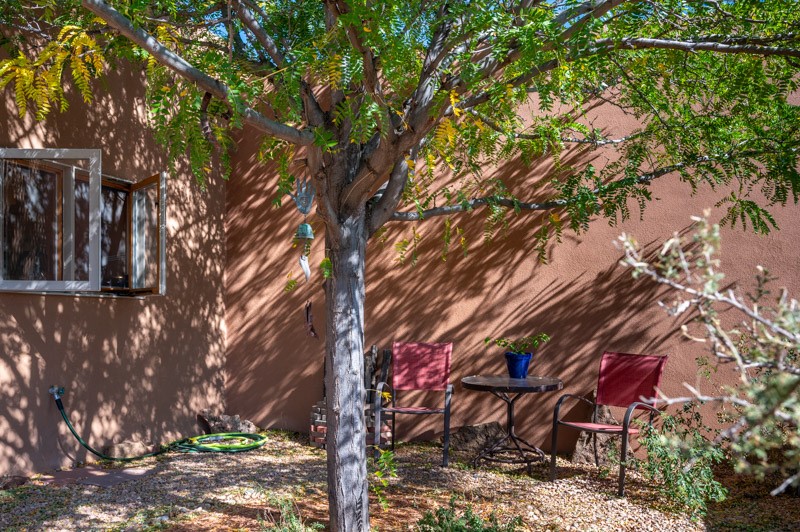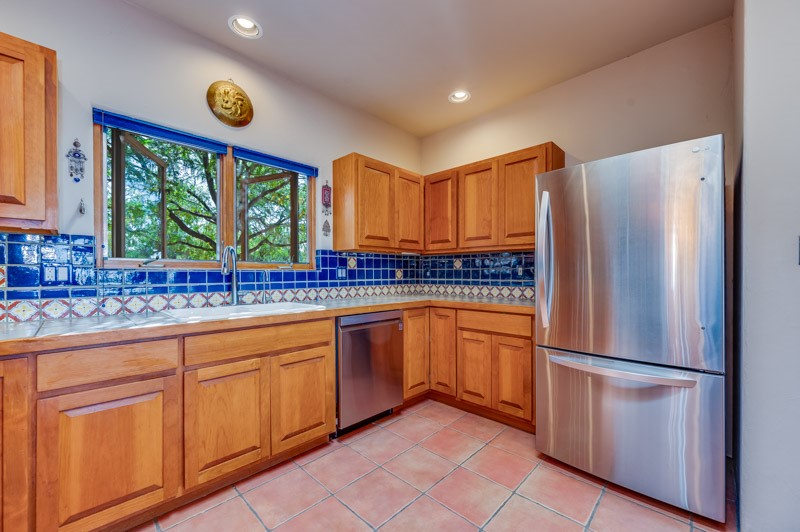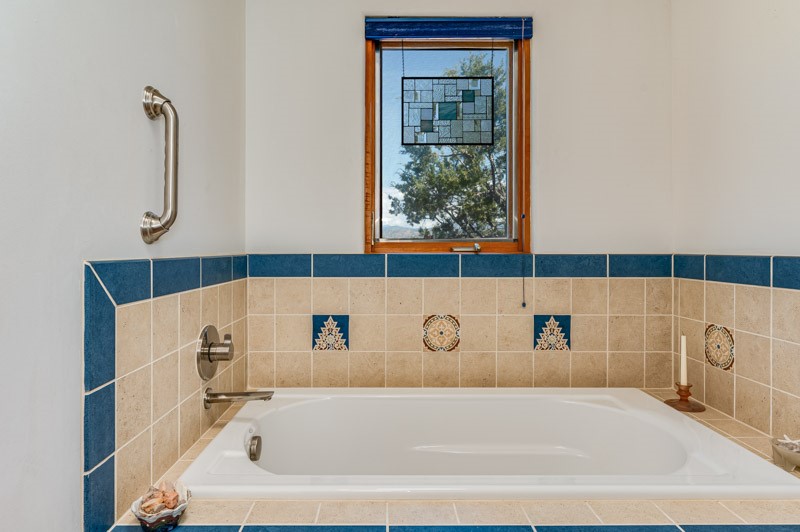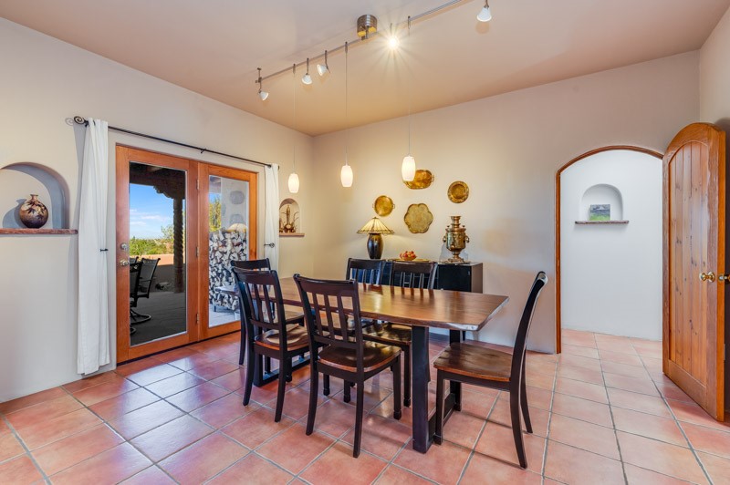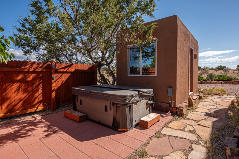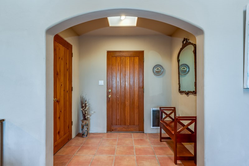 Exquisite Santa Fe detailing throughout this lovely southwestern contemporary home designed and built by Adobeworks, Inc. An open floor plan concept with high viga ceilings and many windows in the great room and master bedroom for a light and spacious feel. The master bath was completely remodeled with an artisan tiled enclosure of a new deep soaking tub and a tiled floor-to-ceiling walk-in shower. There are three lovely kiva fireplaces in the living room, master suite and third bedroom. Plenty of room in the kitchen with good pantry space and easy access to the dining area and outside portal. Natural gas in-floor radiant heat with Wirsbo pipe, and two mini-splits in the great room and master suite, as well as a central evaporative cooler for year round comfort. A fenced vegetable garden, a cozy studio, and a new hot tub await your enjoyment. The roof was recently upgraded with preventative maintenance, and has a transferable warranty that is good until March 2025. The home has all copper plumbing for hot/cold water, and has extensive landscaping and hardscaping. This meticulously maintained home has fabulous Jemez Mountain views from the great room, deluxe privacy, and is a highly livable home to enjoy.
