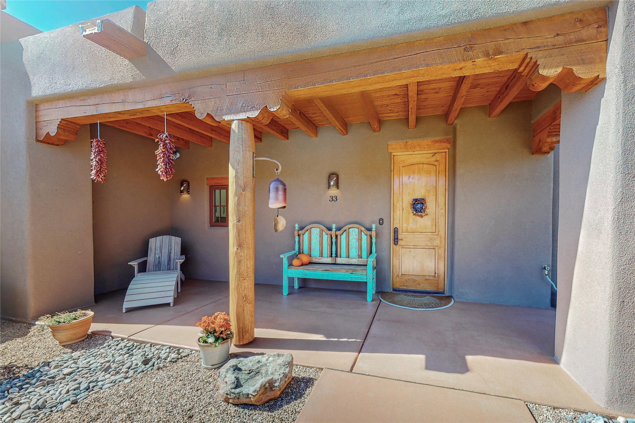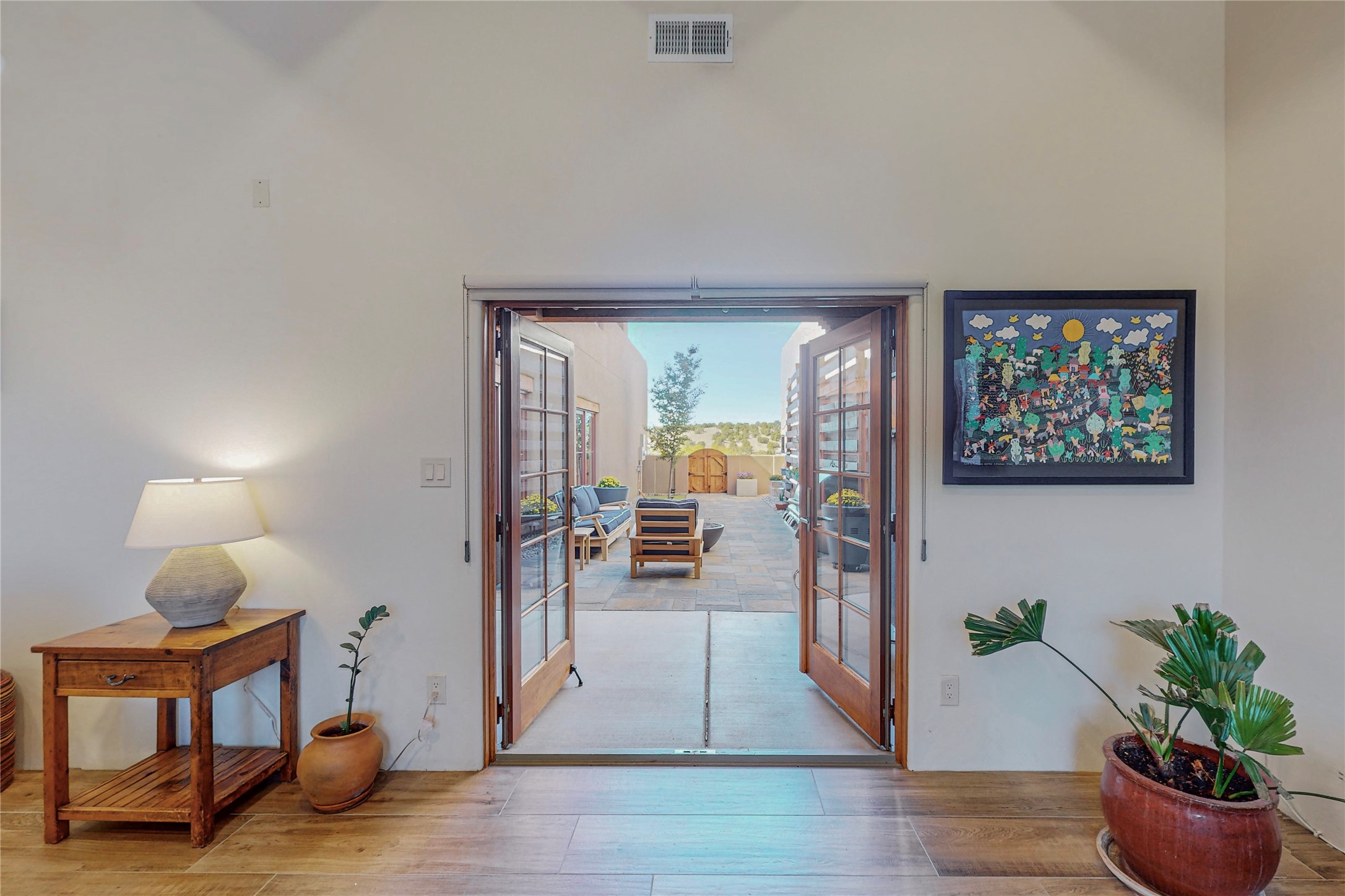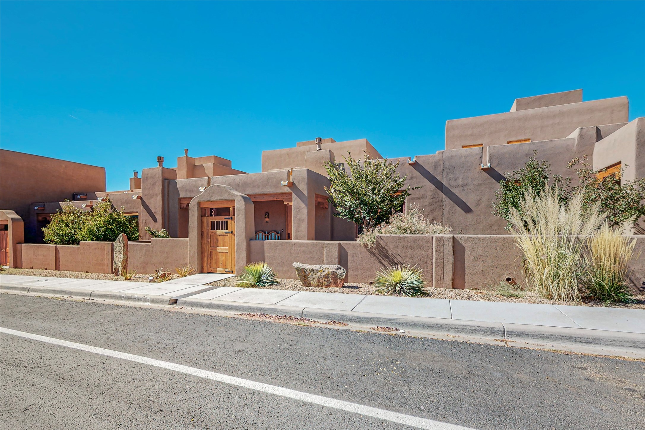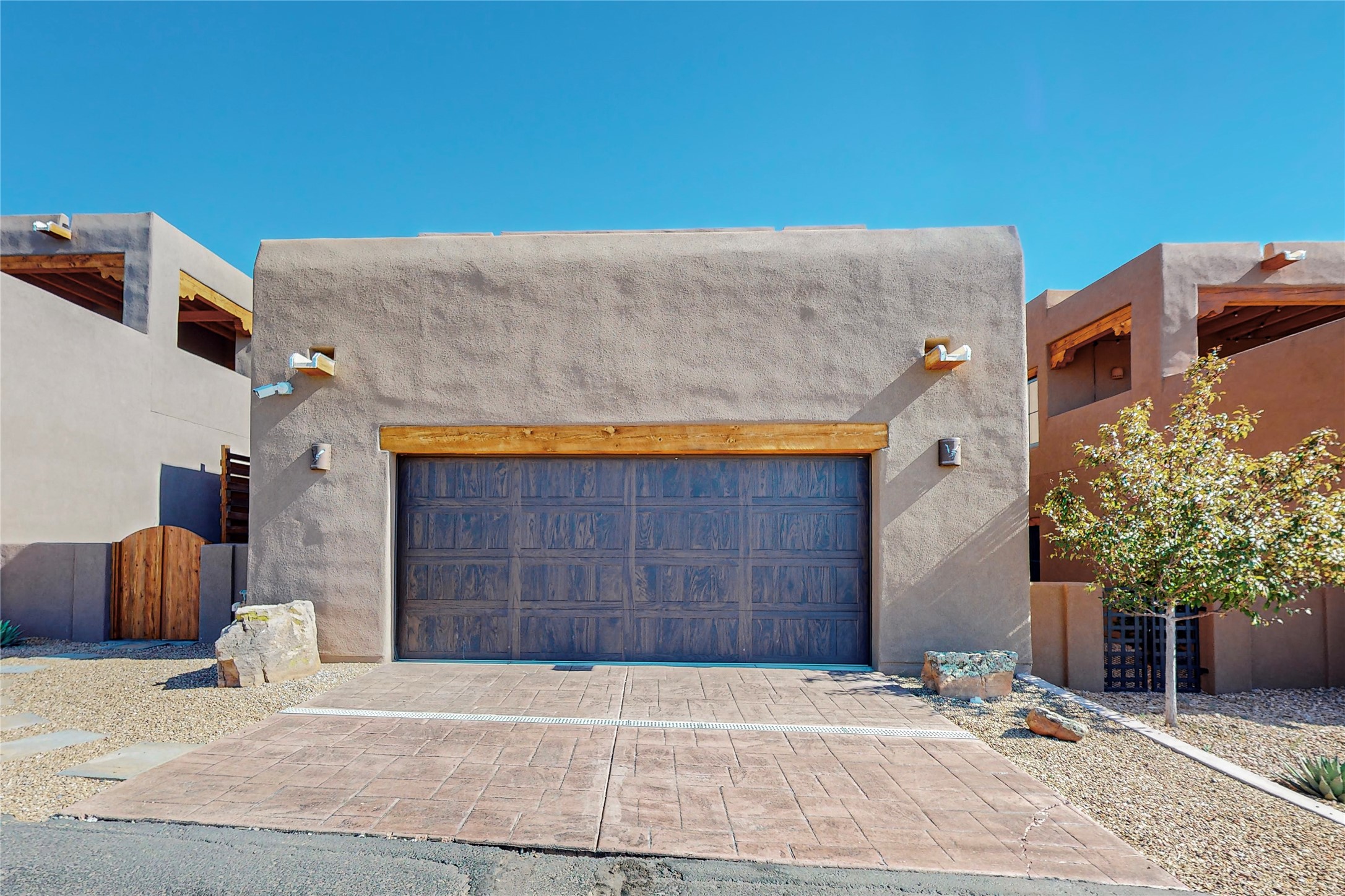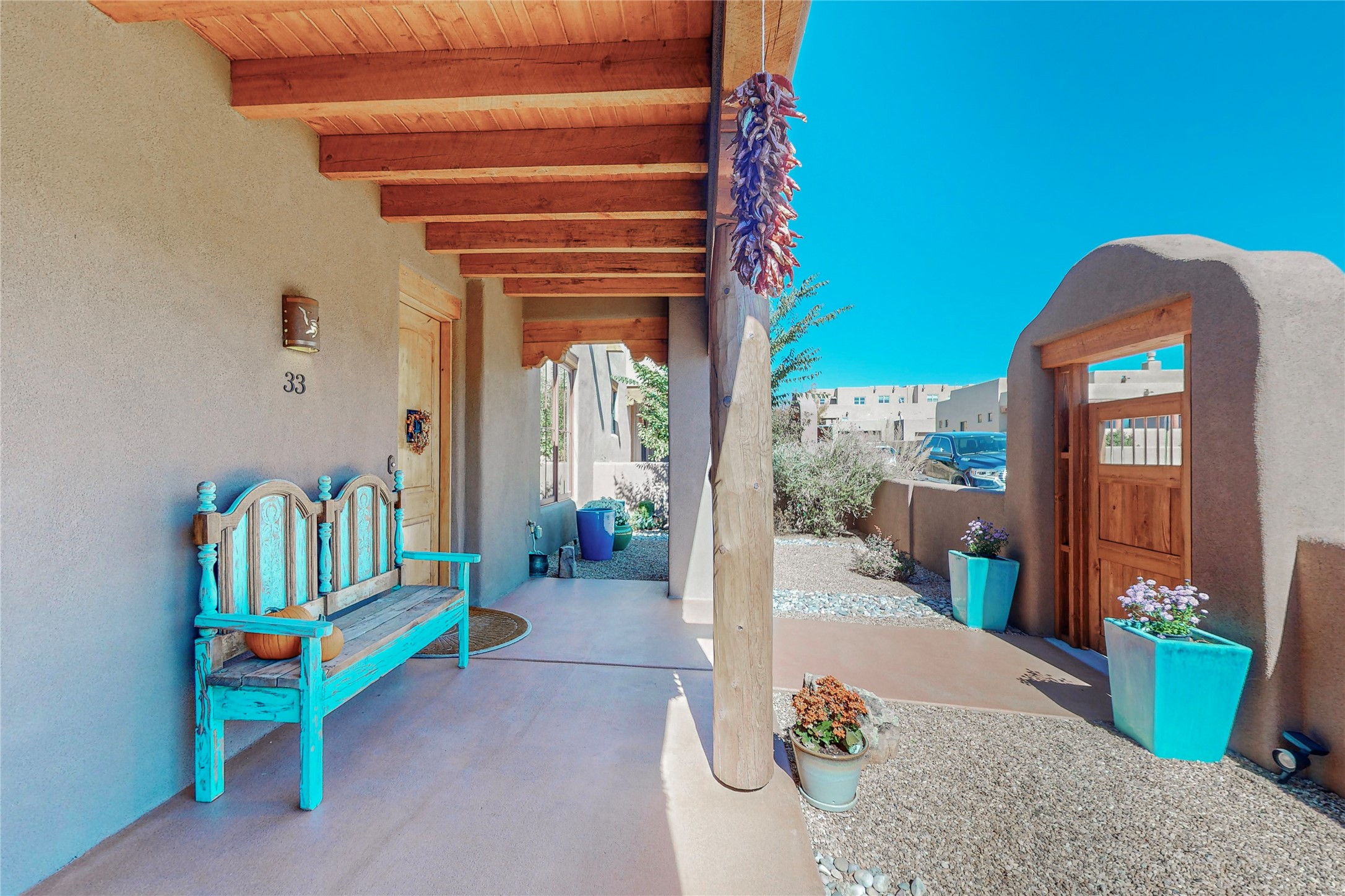 This newly built single family paito home with central heating and air conditioning, a tankless water heater, TPO roof, and energy efficient. All interior walls are insulated for better comfort and sound absorption. The owners have upgraded nearly everything. From the large plank tile flooring to the premium appliances to designer plumbing, California Closets systems, and custom cabinets. Elegant primary retreat with walk-through shower, custom California Closets, and large his and hers spaces. Entertain in your kitchen with an oversized quartz island, inviting stone paver yard, or enjoy spectacular sunsets. This home is pre-wired for home theater. The real star of the show is an expansive west facing view from the deck off of the primary bedroom with approximately 500+/-sf of Trex decking. Enjoy the monsoon storms, gorgeous sunsets, and the snow covered ridge that is protected open space. Aldea de Santa Fe is a National Wildlife Federation "Certified Wildlife Habitat Community." This is the only such designated community in New Mexico. Aldea subdivision is highly sought after for its 13 miles of trails, plus tennis, pickleball and basketball courts.