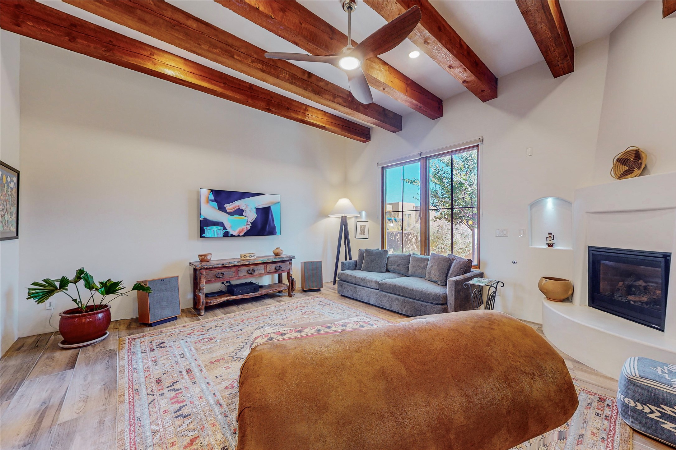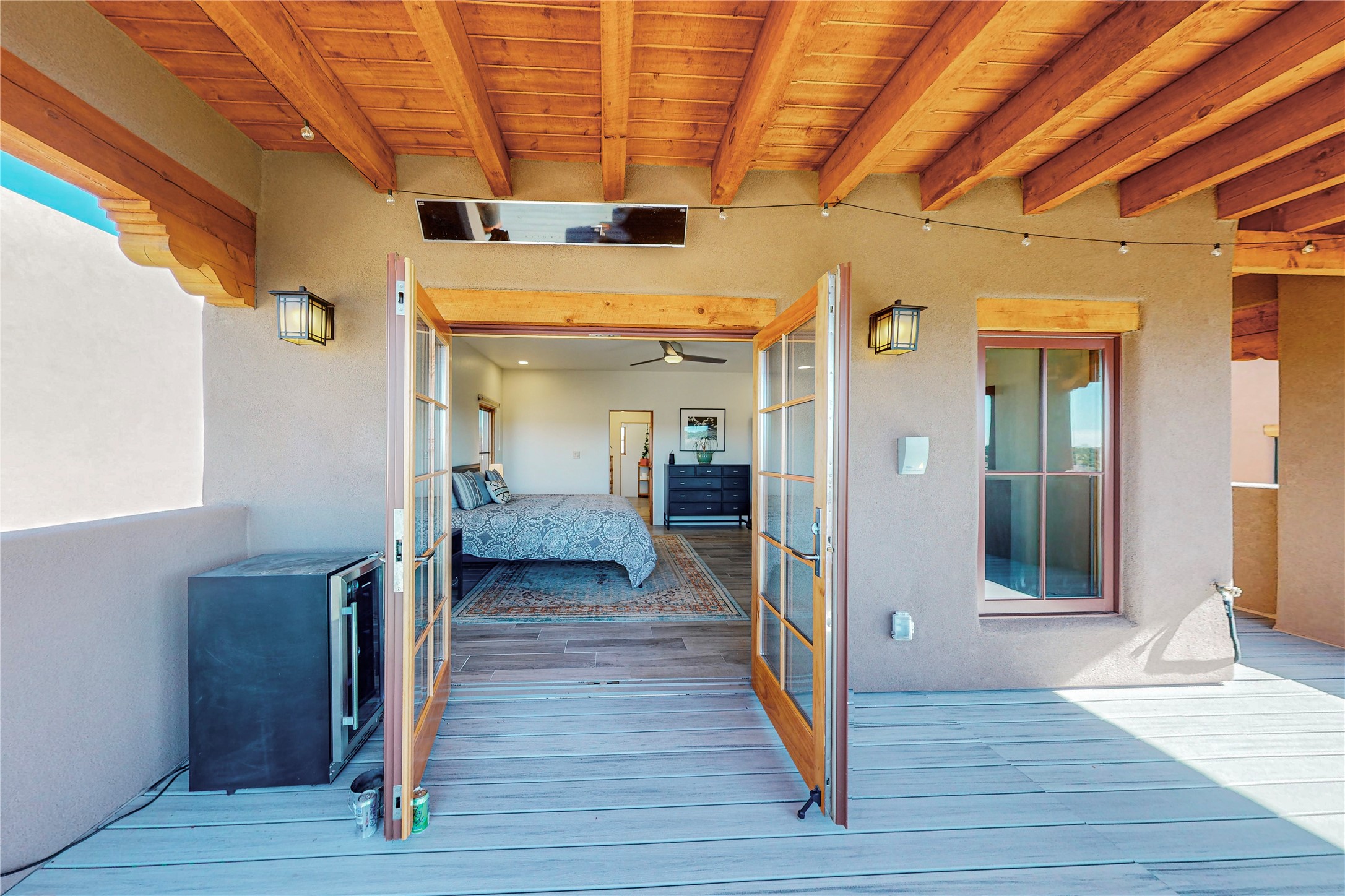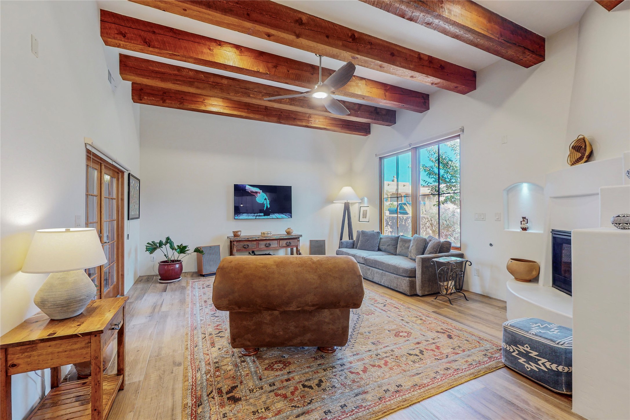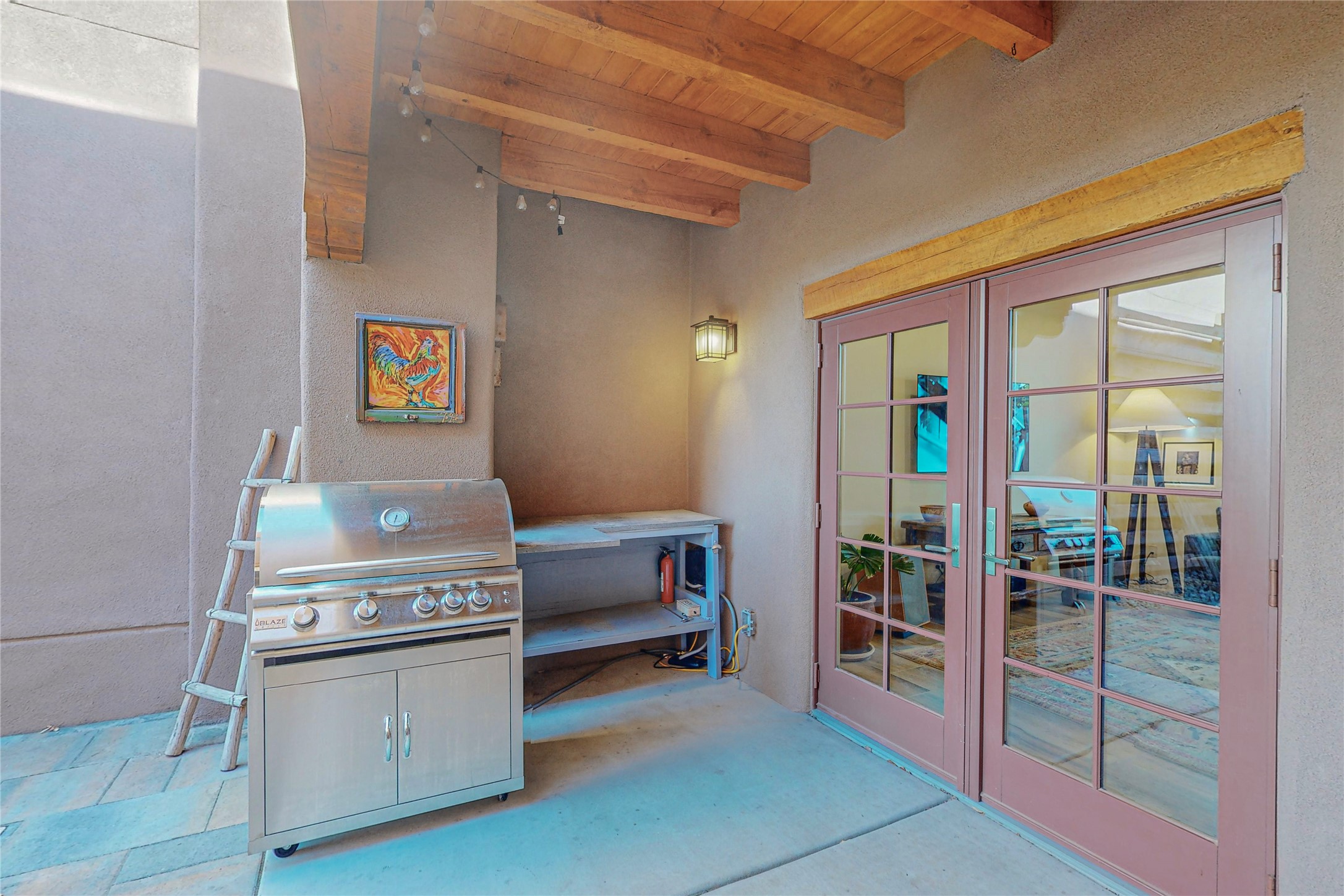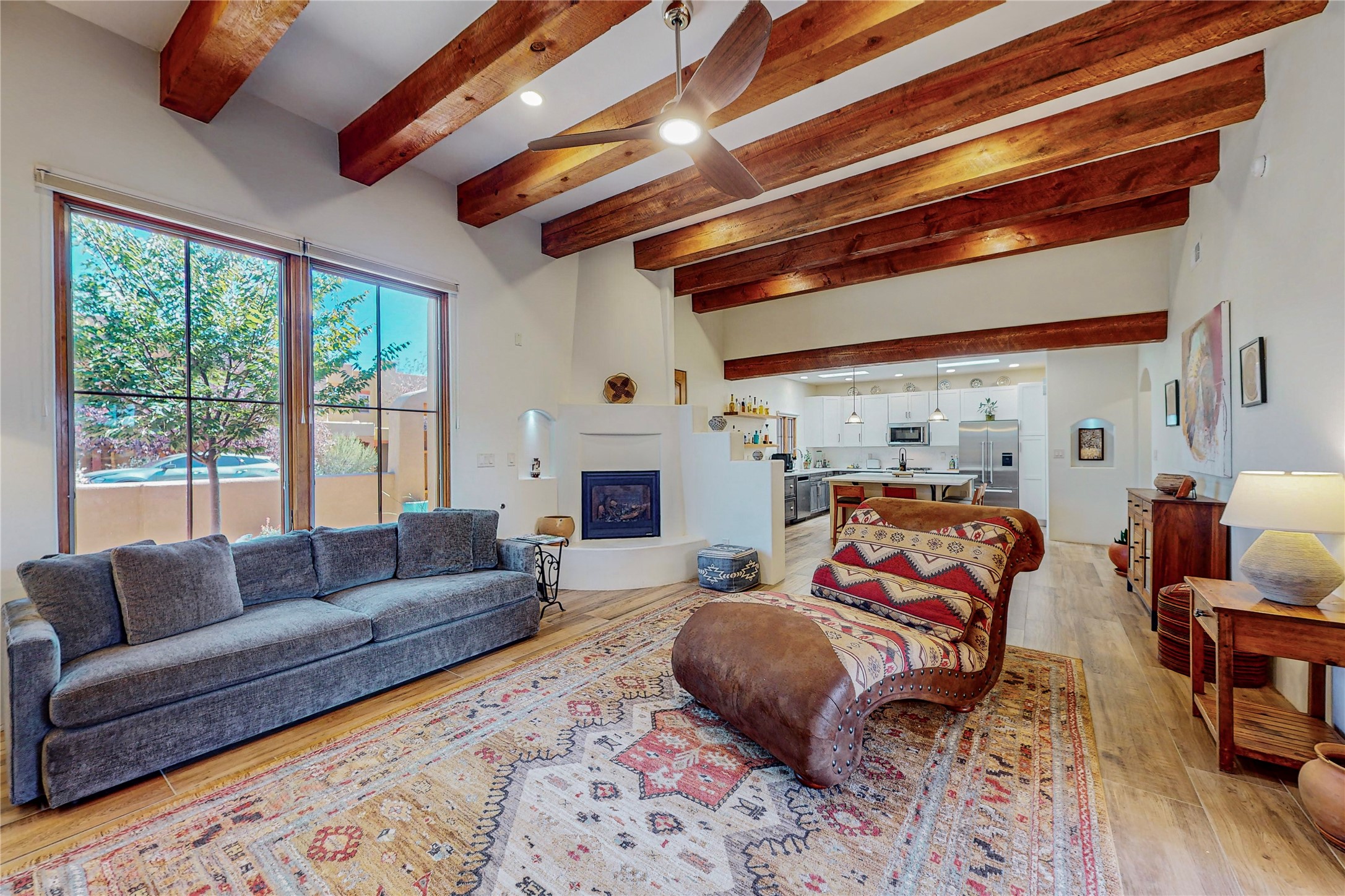 This newly built single family paito home with central heating and air conditioning, a tankless water heater, TPO roof, and energy efficient. All interior walls are insulated for better comfort and sound absorption. The owners have upgraded nearly everything. From the large plank tile flooring to the premium appliances to designer plumbing, California Closets systems, and custom cabinets. Elegant primary retreat with walk-through shower, custom California Closets, and large his and hers spaces. Entertain in your kitchen with an oversized quartz island, inviting stone paver yard, or enjoy spectacular sunsets. This home is pre-wired for home theater. The real star of the show is an expansive west facing view from the deck off of the primary bedroom with approximately 500+/-sf of Trex decking. Enjoy the monsoon storms, gorgeous sunsets, and the snow covered ridge that is protected open space. Aldea de Santa Fe is a National Wildlife Federation "Certified Wildlife Habitat Community." This is the only such designated community in New Mexico. Aldea subdivision is highly sought after for its 13 miles of trails, plus tennis, pickleball and basketball courts.