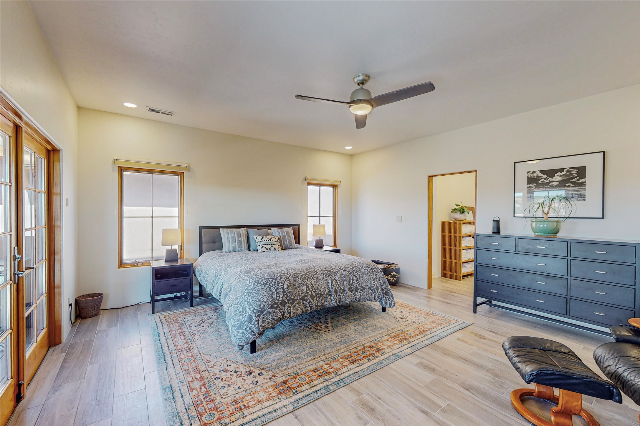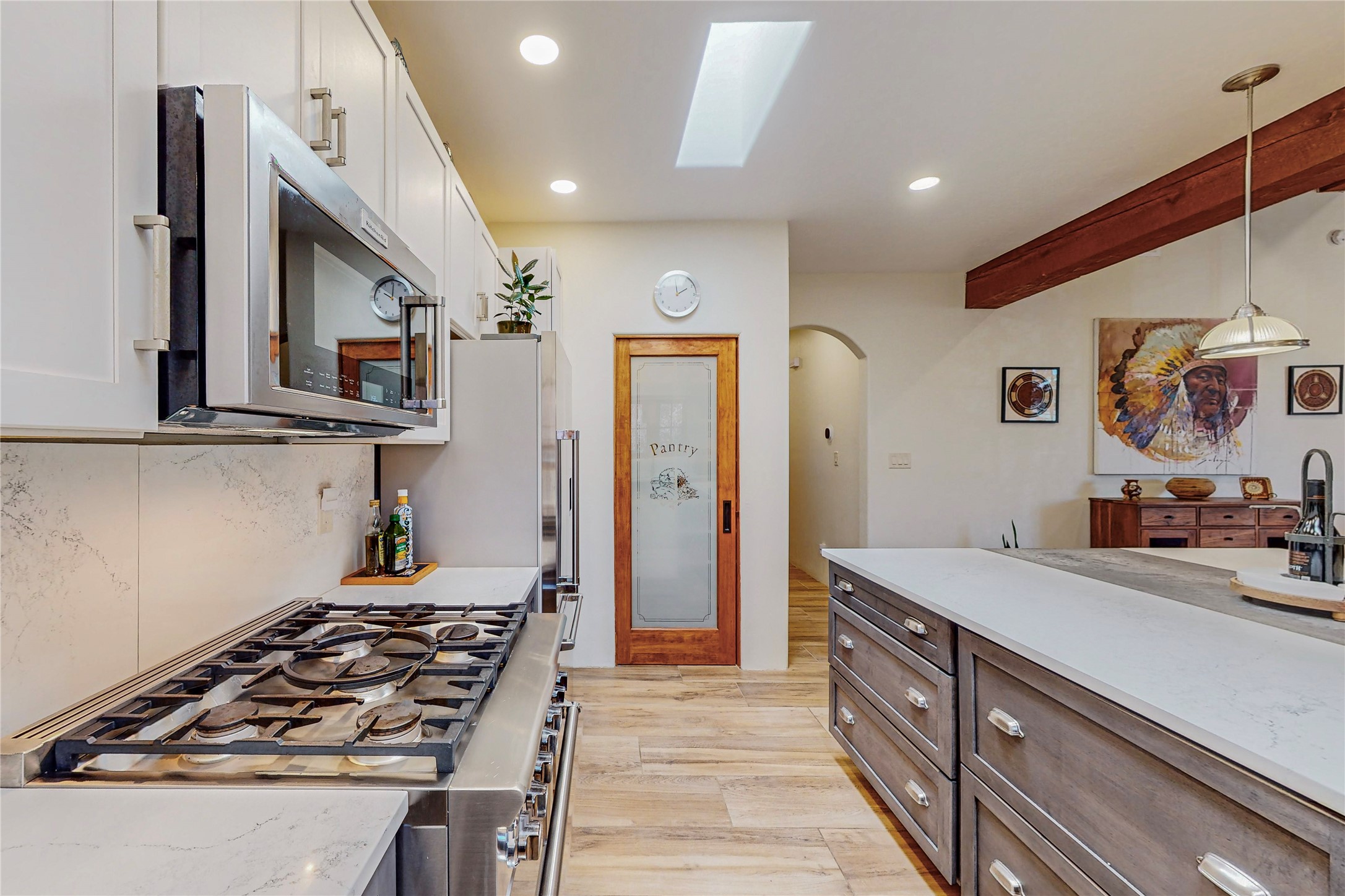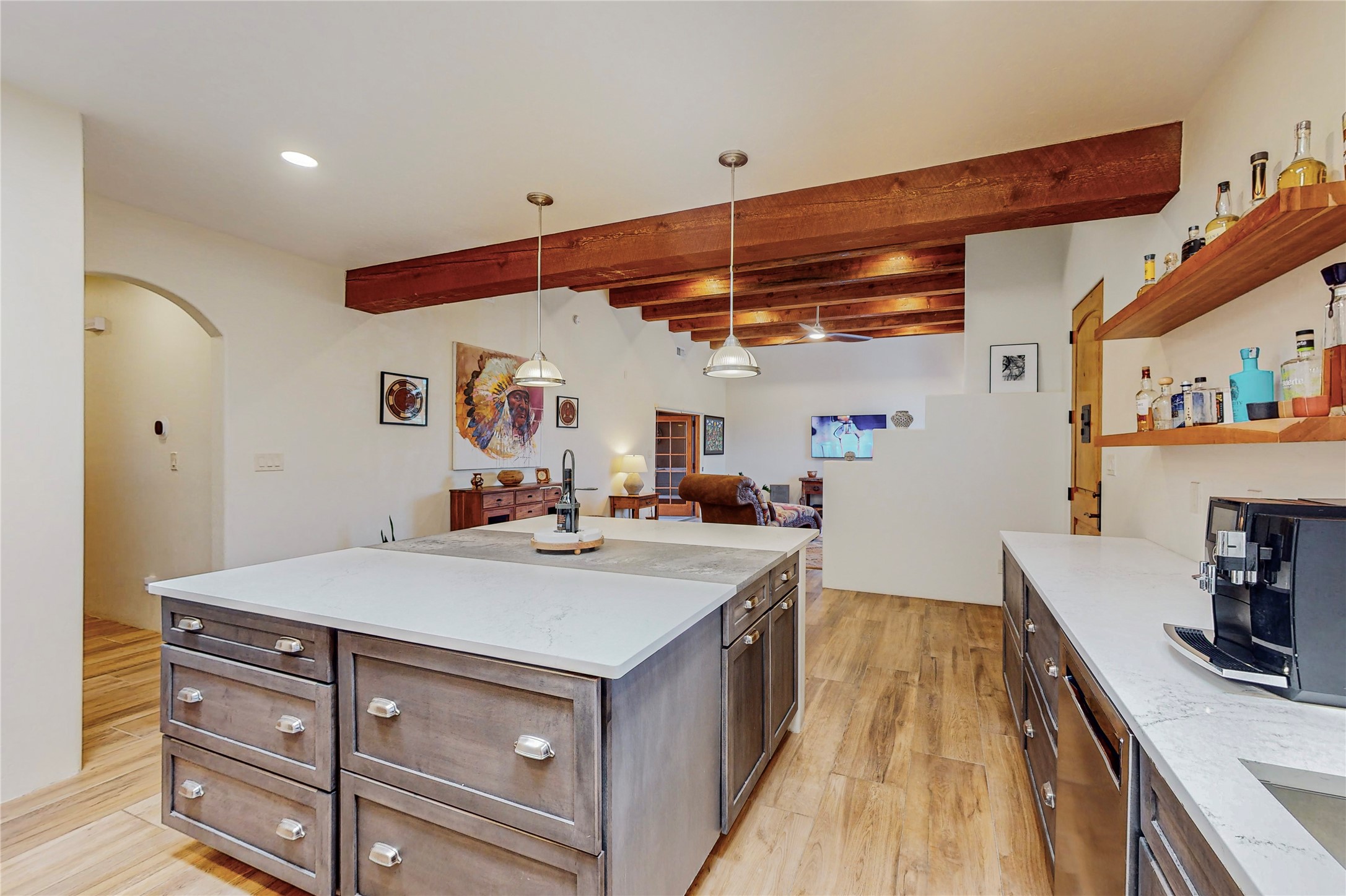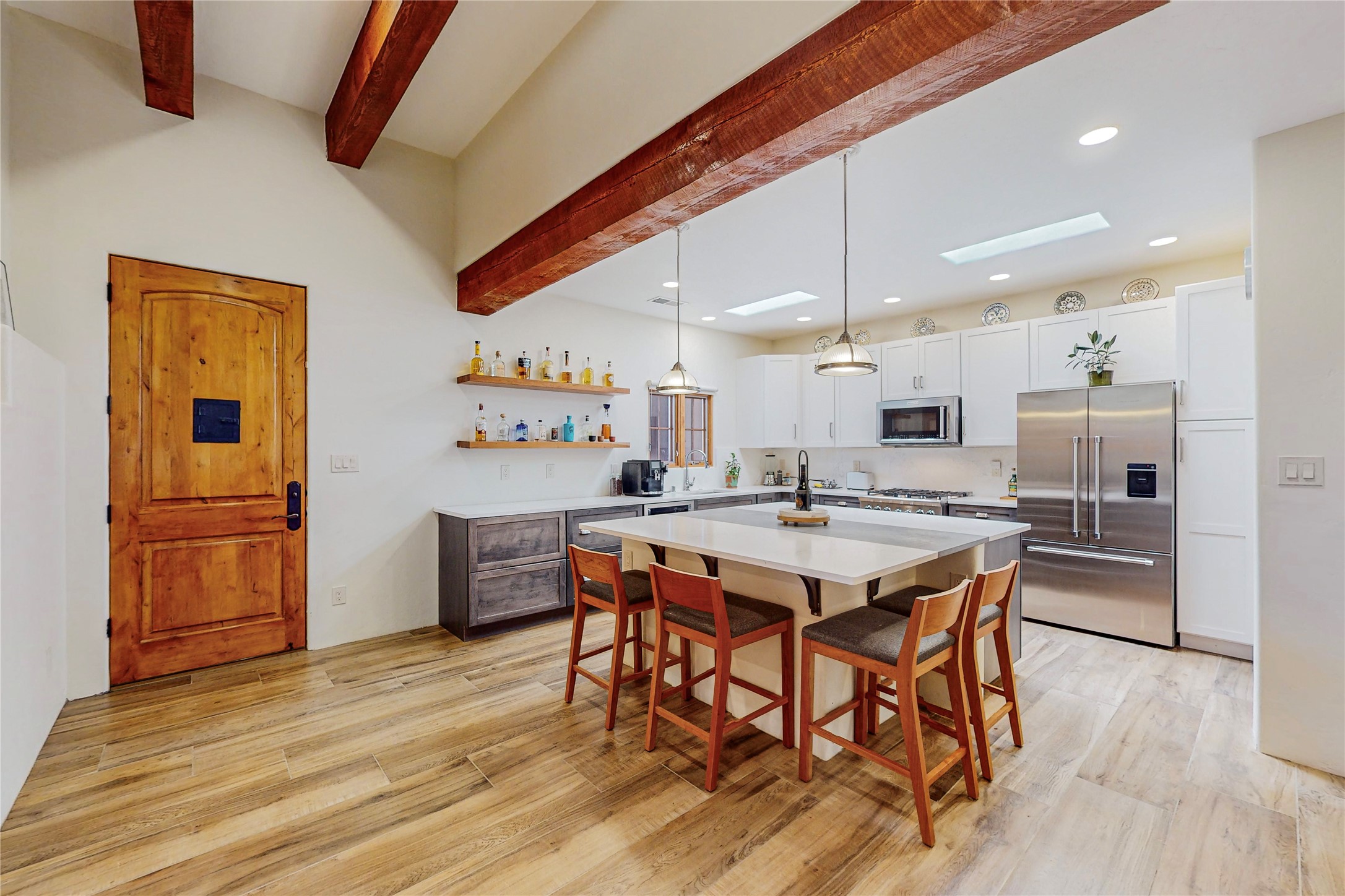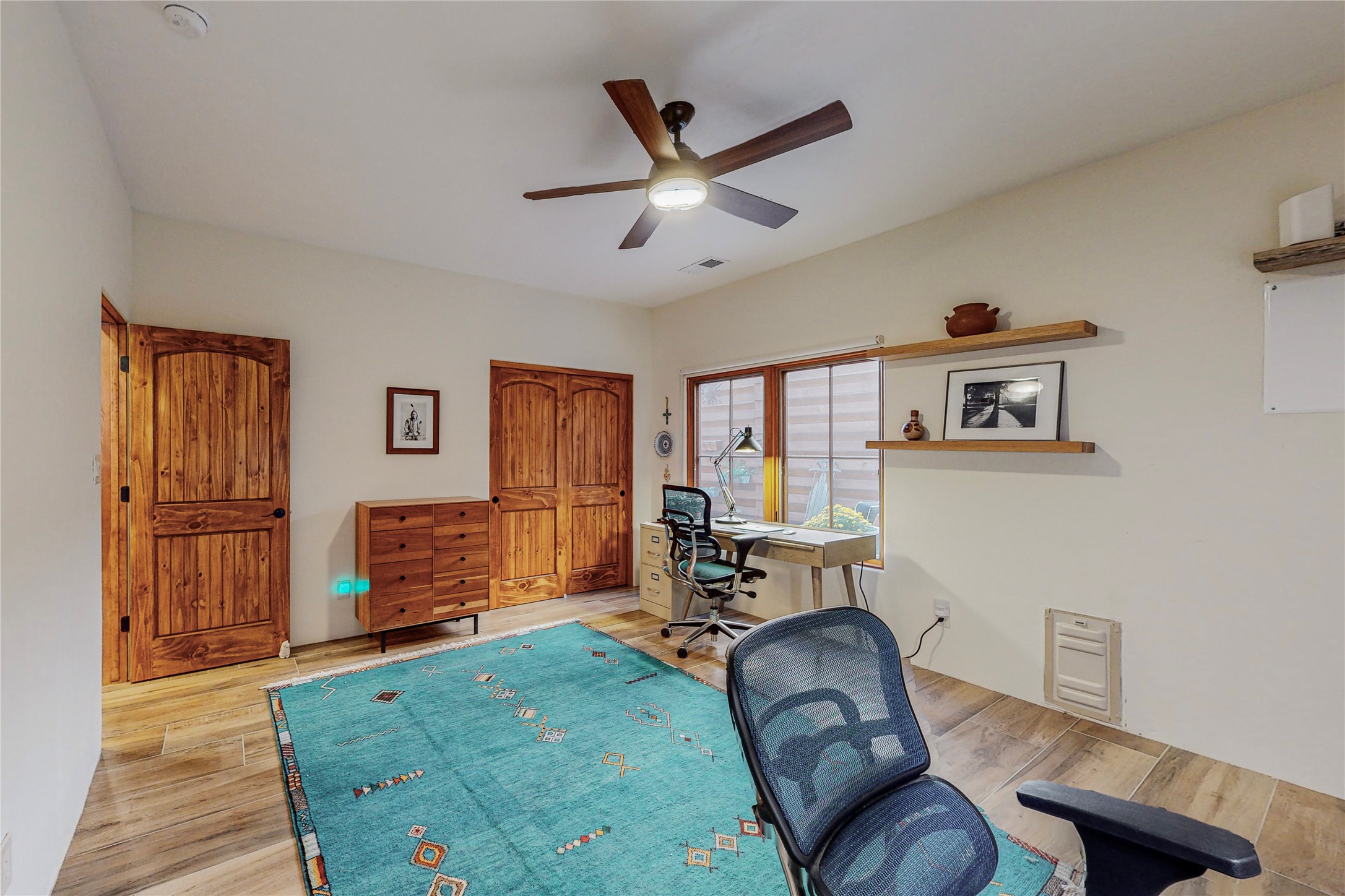 This newly built single family paito home with central heating and air conditioning, a tankless water heater, TPO roof, and energy efficient. All interior walls are insulated for better comfort and sound absorption. The owners have upgraded nearly everything. From the large plank tile flooring to the premium appliances to designer plumbing, California Closets systems, and custom cabinets. Elegant primary retreat with walk-through shower, custom California Closets, and large his and hers spaces. Entertain in your kitchen with an oversized quartz island, inviting stone paver yard, or enjoy spectacular sunsets. This home is pre-wired for home theater. The real star of the show is an expansive west facing view from the deck off of the primary bedroom with approximately 500+/-sf of Trex decking. Enjoy the monsoon storms, gorgeous sunsets, and the snow covered ridge that is protected open space. Aldea de Santa Fe is a National Wildlife Federation "Certified Wildlife Habitat Community." This is the only such designated community in New Mexico. Aldea subdivision is highly sought after for its 13 miles of trails, plus tennis, pickleball and basketball courts.