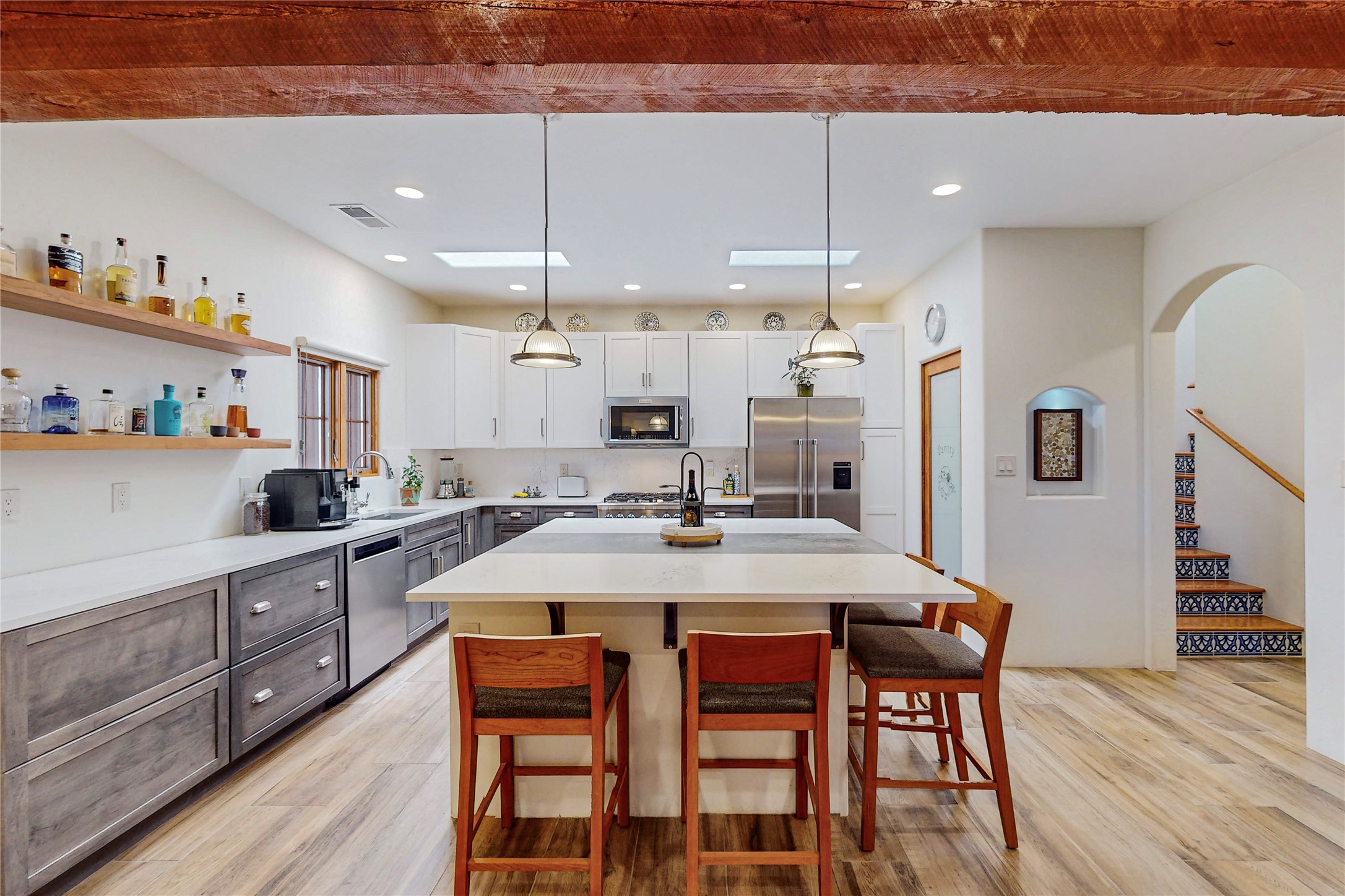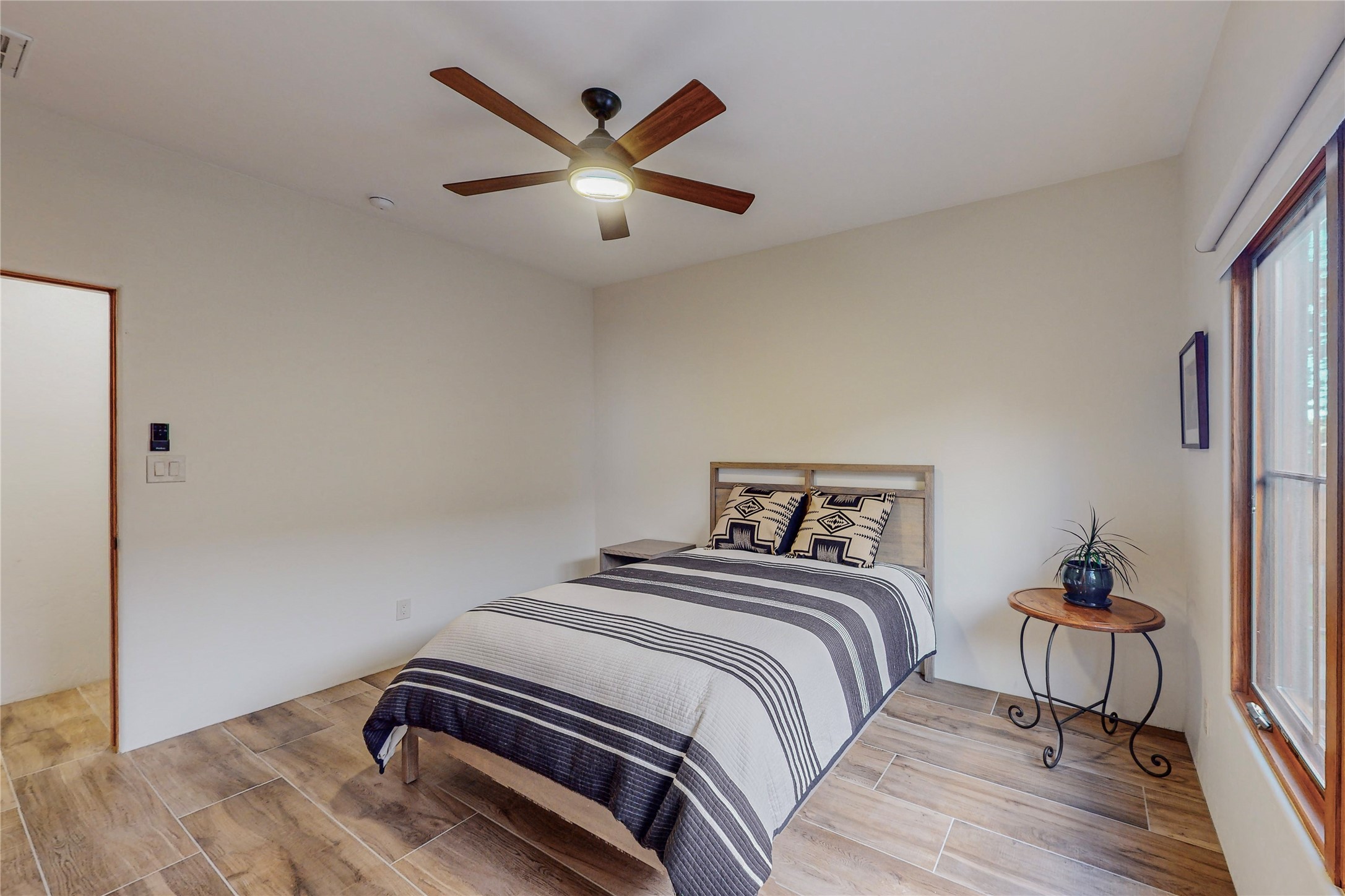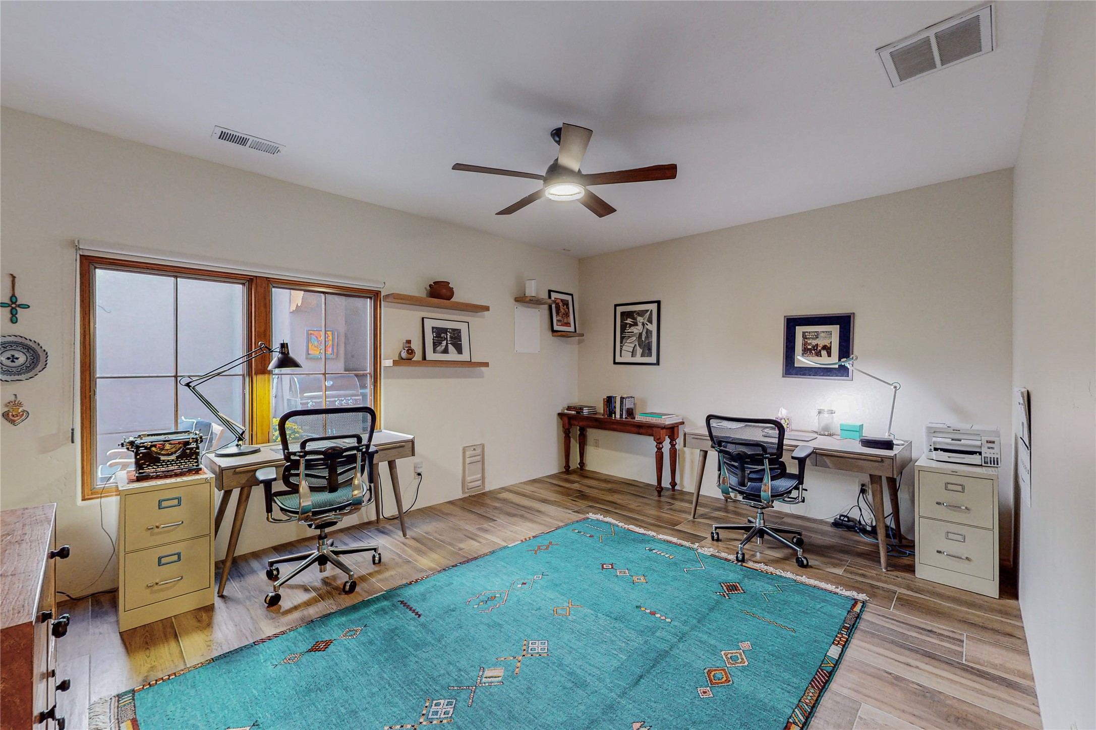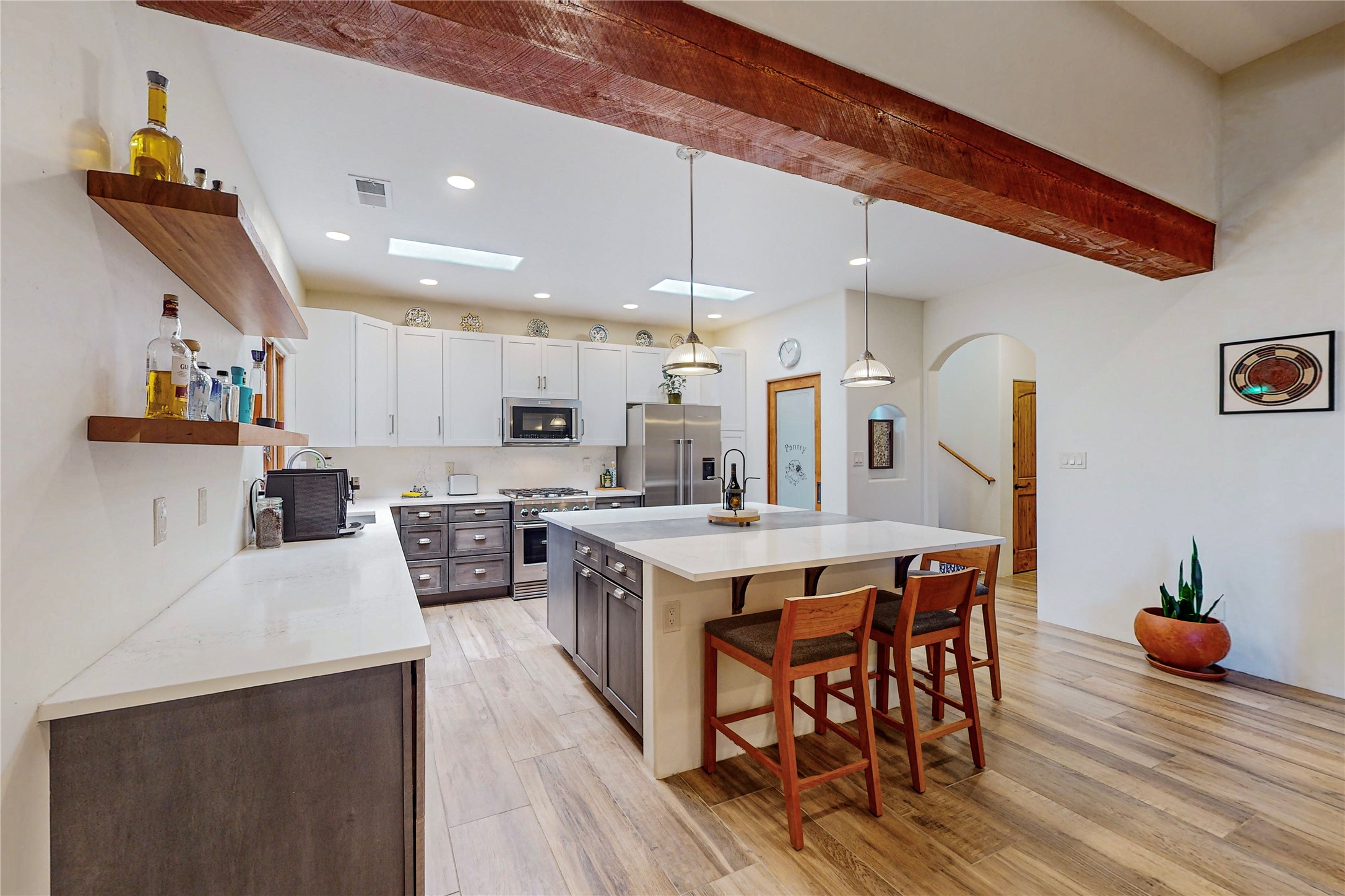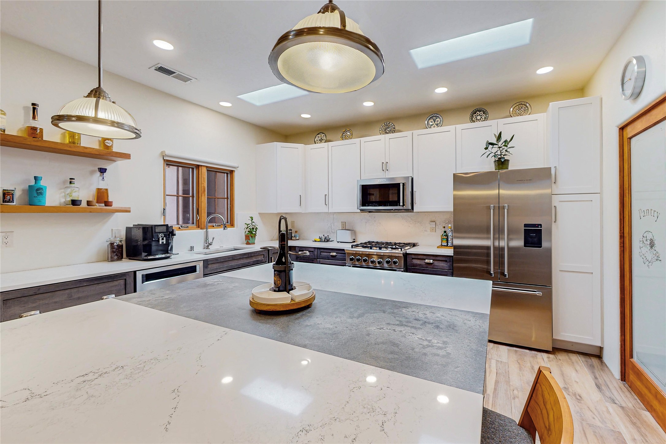 This newly built single family paito home with central heating and air conditioning, a tankless water heater, TPO roof, and energy efficient. All interior walls are insulated for better comfort and sound absorption. The owners have upgraded nearly everything. From the large plank tile flooring to the premium appliances to designer plumbing, California Closets systems, and custom cabinets. Elegant primary retreat with walk-through shower, custom California Closets, and large his and hers spaces. Entertain in your kitchen with an oversized quartz island, inviting stone paver yard, or enjoy spectacular sunsets. This home is pre-wired for home theater. The real star of the show is an expansive west facing view from the deck off of the primary bedroom with approximately 500+/-sf of Trex decking. Enjoy the monsoon storms, gorgeous sunsets, and the snow covered ridge that is protected open space. Aldea de Santa Fe is a National Wildlife Federation "Certified Wildlife Habitat Community." This is the only such designated community in New Mexico. Aldea subdivision is highly sought after for its 13 miles of trails, plus tennis, pickleball and basketball courts.