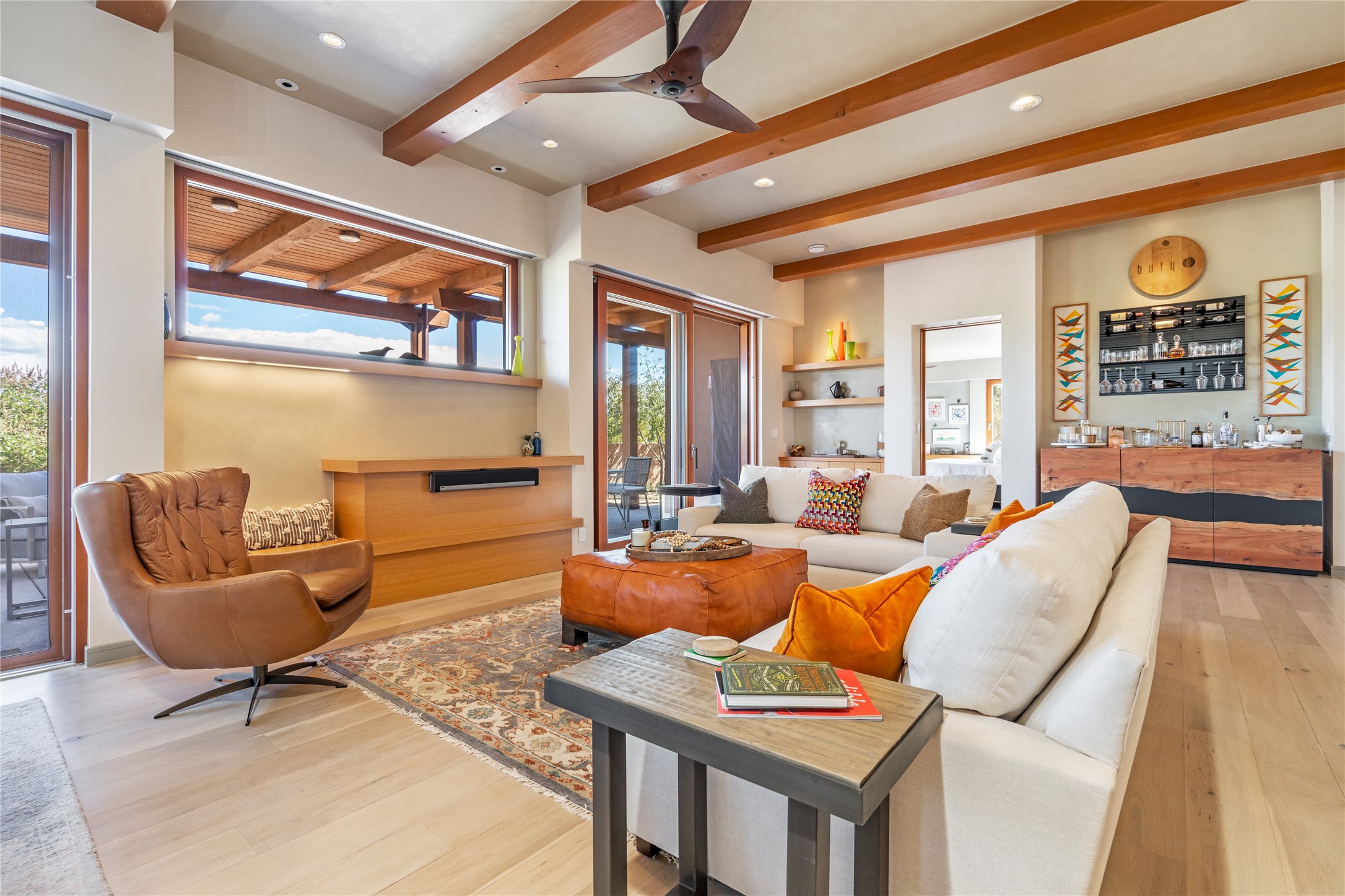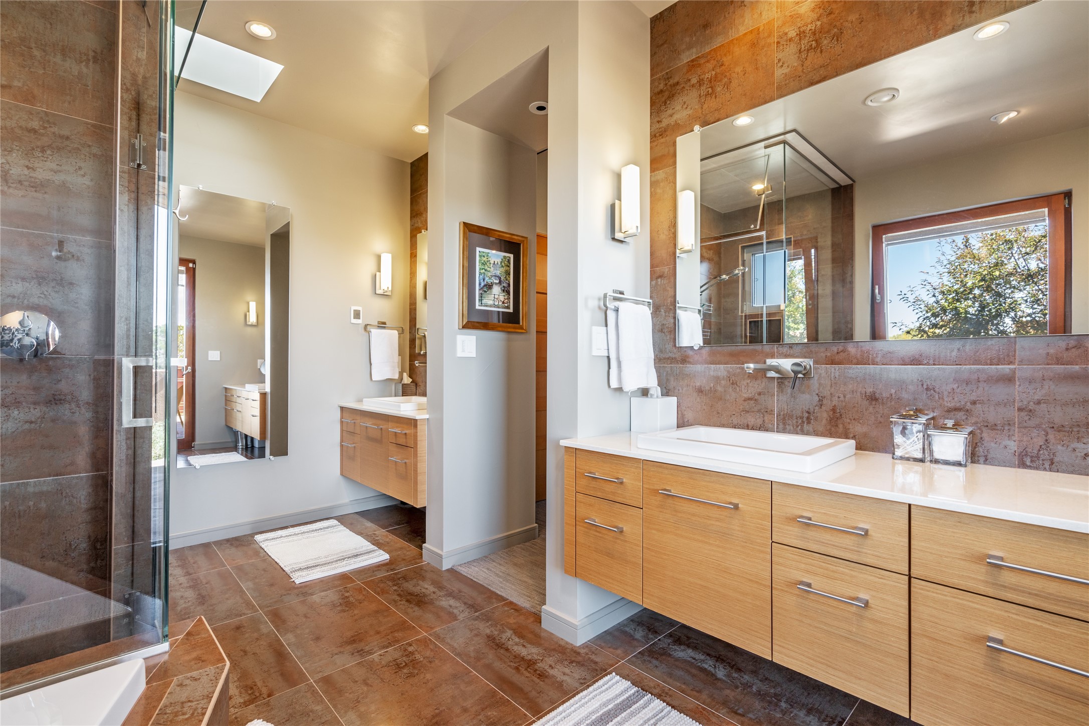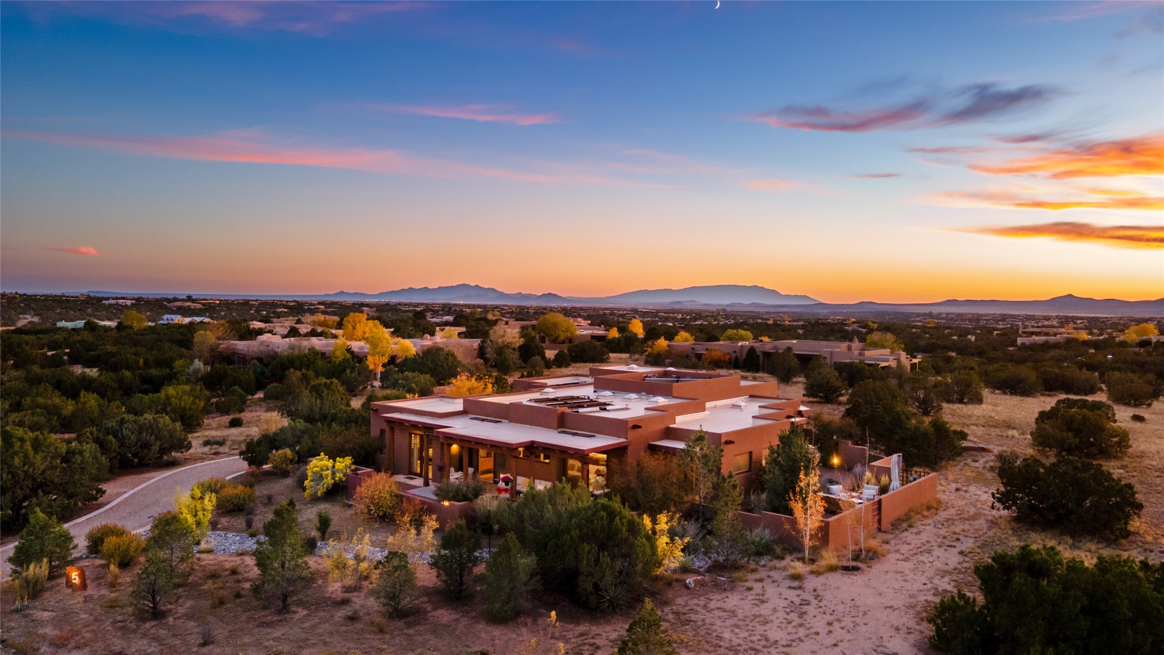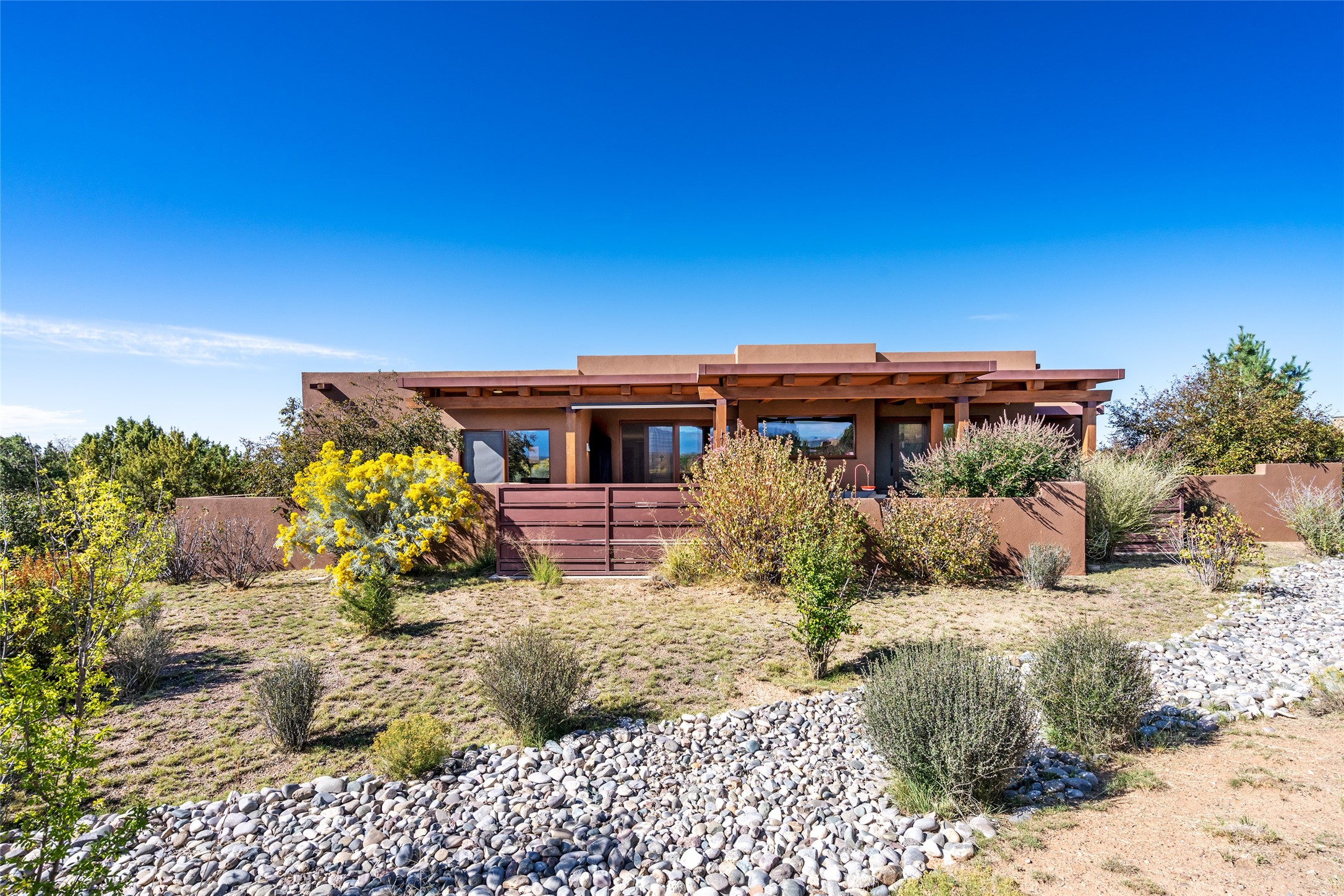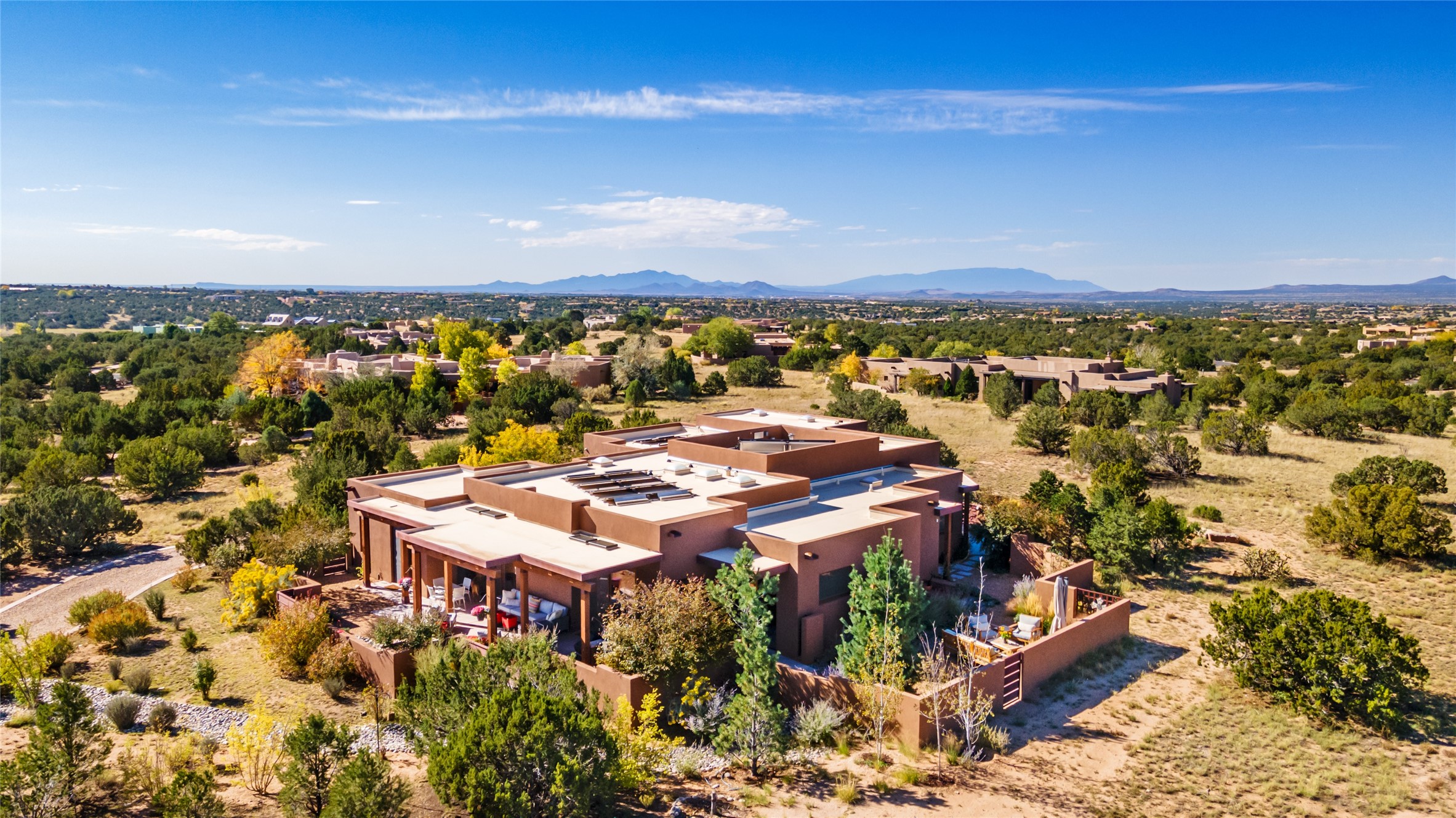 Contemporary living with convenient access to downtown and connection to nature, this stunning home offers the best of all worlds. Spectacular mountain views in all directions from this 1.66 acre lot and 3 bed, 3 bath 'smart home' with highlights including solar electricity and solar water heating system, in-floor radiant heating and cooling, a whole-home water filtration system and whole-home ventilation system to maintain air quality.If you are so inclined, you could run your home using simple apps on your mobile phone. The solar production and consumption, Lutron lighting and window shades, heating and cooling, home security, irrigation system and more can be accessed when you are away from home. This sleek and welcoming home also includes 2 fireplaces, doors and windows by Siegenia that provide energy efficiency and security, high-end Wolf, Sub-Zero, Electrolux and Miele appliances, and green features including a water catchment system that feeds into a 2,000 gal water cistern. Travelers, please note the three-car garage includes a space tall and deep enough for an RV.These incredible features are complemented by a stylish contemporary interior with flex space for an office or home gym, and elegant outdoor spaces including a courtyard and two terraces that are ideal for sunrises and sunsets, peaceful morning coffees and evening entertaining.Experience the beauty and cutting-edge offerings of this advanced home.