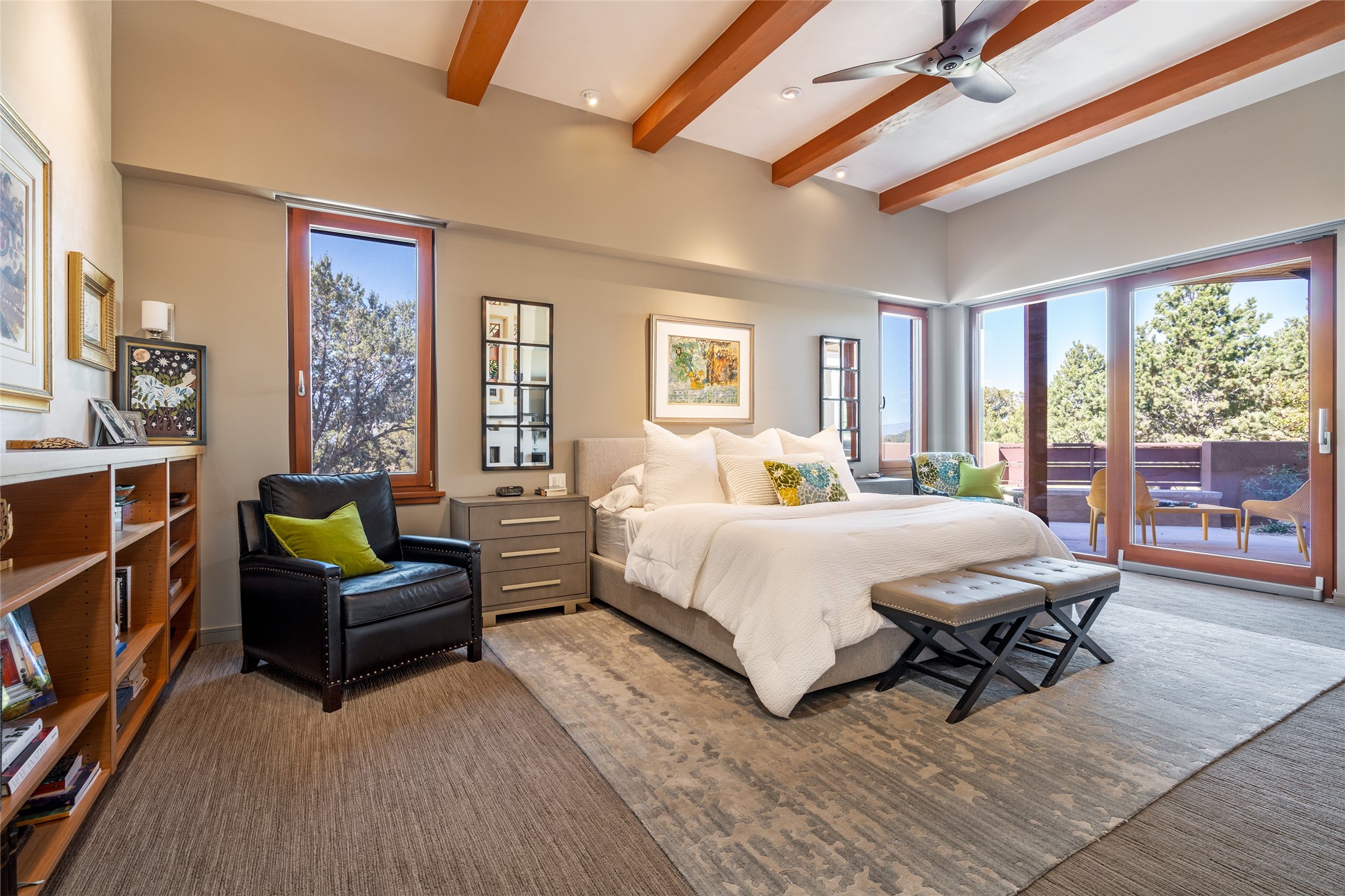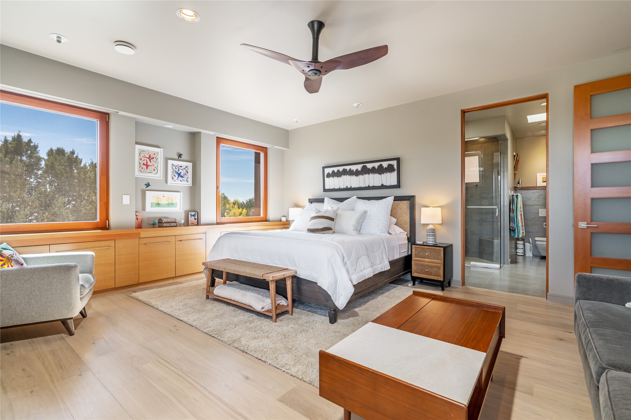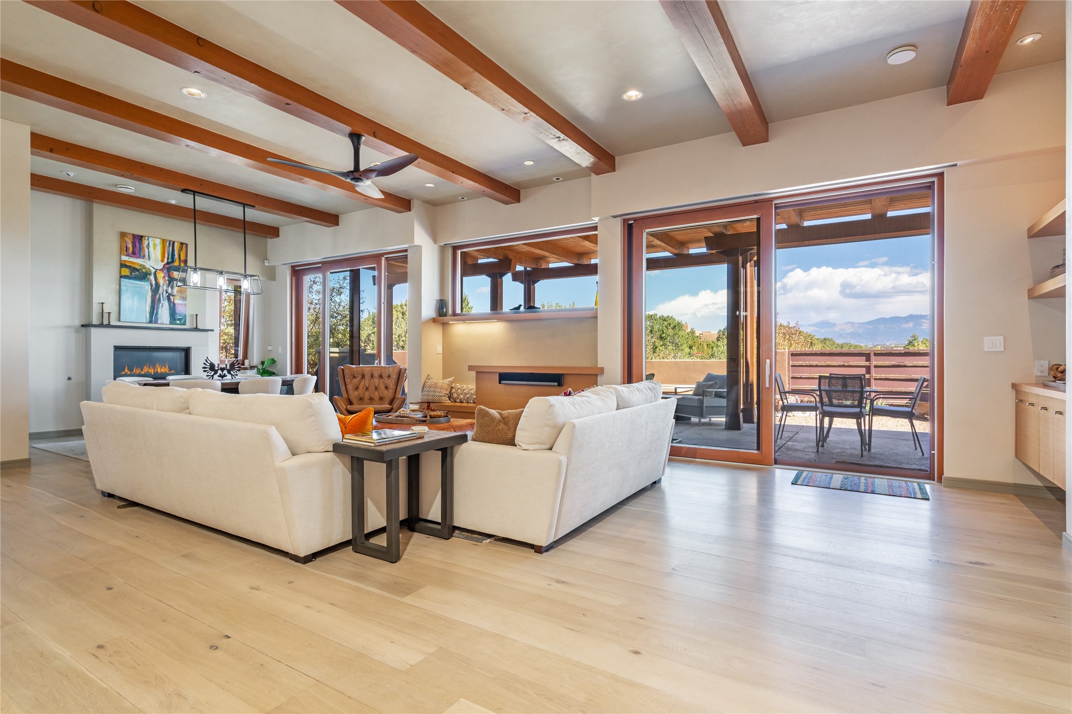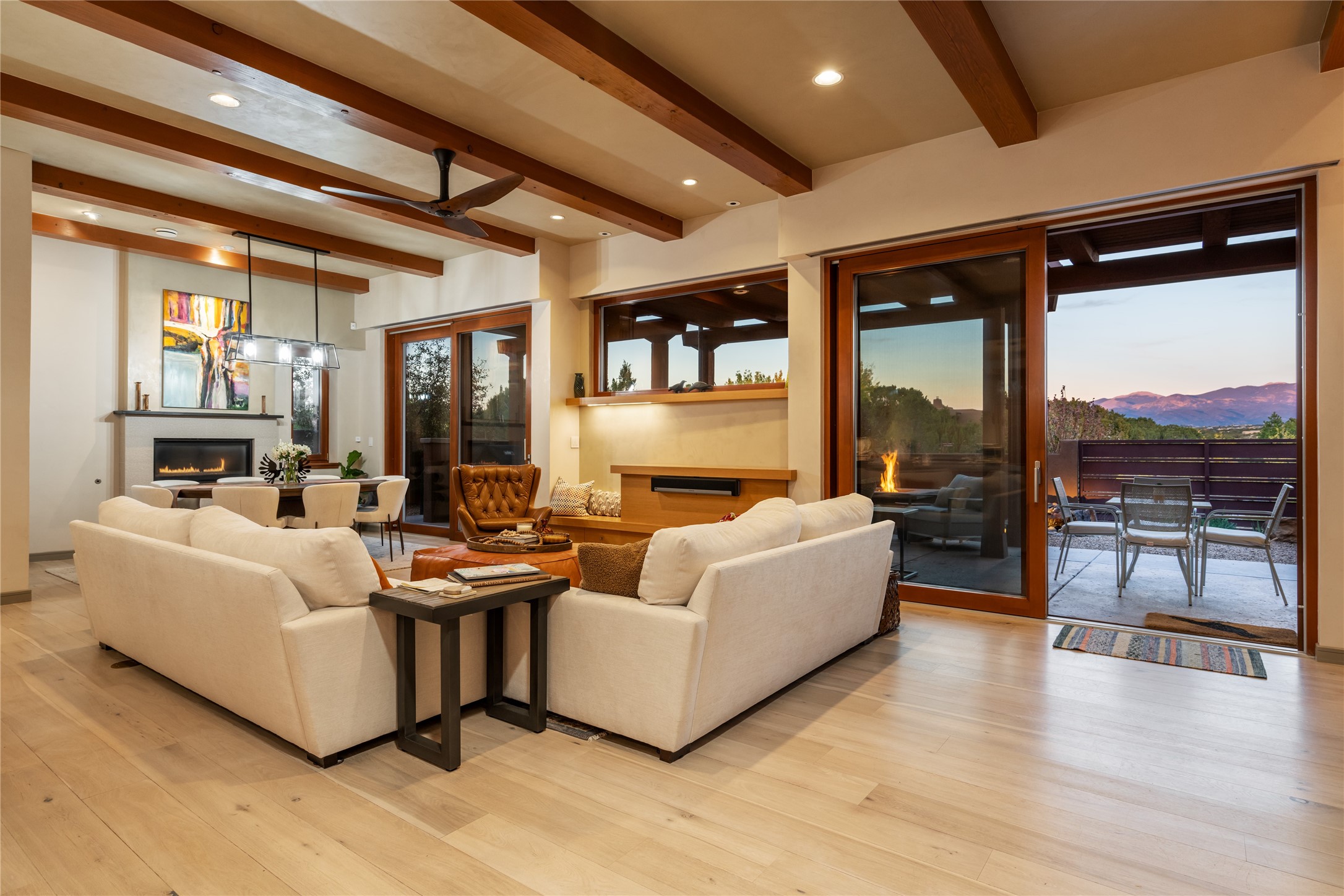 Contemporary living with convenient access to downtown and connection to nature, this stunning home offers the best of all worlds. Spectacular mountain views in all directions from this 1.66 acre lot and 3 bed, 3 bath 'smart home' with highlights including solar electricity and solar water heating system, in-floor radiant heating and cooling, a whole-home water filtration system and whole-home ventilation system to maintain air quality.If you are so inclined, you could run your home using simple apps on your mobile phone. The solar production and consumption, Lutron lighting and window shades, heating and cooling, home security, irrigation system and more can be accessed when you are away from home. This sleek and welcoming home also includes 2 fireplaces, doors and windows by Siegenia that provide energy efficiency and security, high-end Wolf, Sub-Zero, Electrolux and Miele appliances, and green features including a water catchment system that feeds into a 2,000 gal water cistern. Travelers, please note the three-car garage includes a space tall and deep enough for an RV.These incredible features are complemented by a stylish contemporary interior with flex space for an office or home gym, and elegant outdoor spaces including a courtyard and two terraces that are ideal for sunrises and sunsets, peaceful morning coffees and evening entertaining.Experience the beauty and cutting-edge offerings of this advanced home.