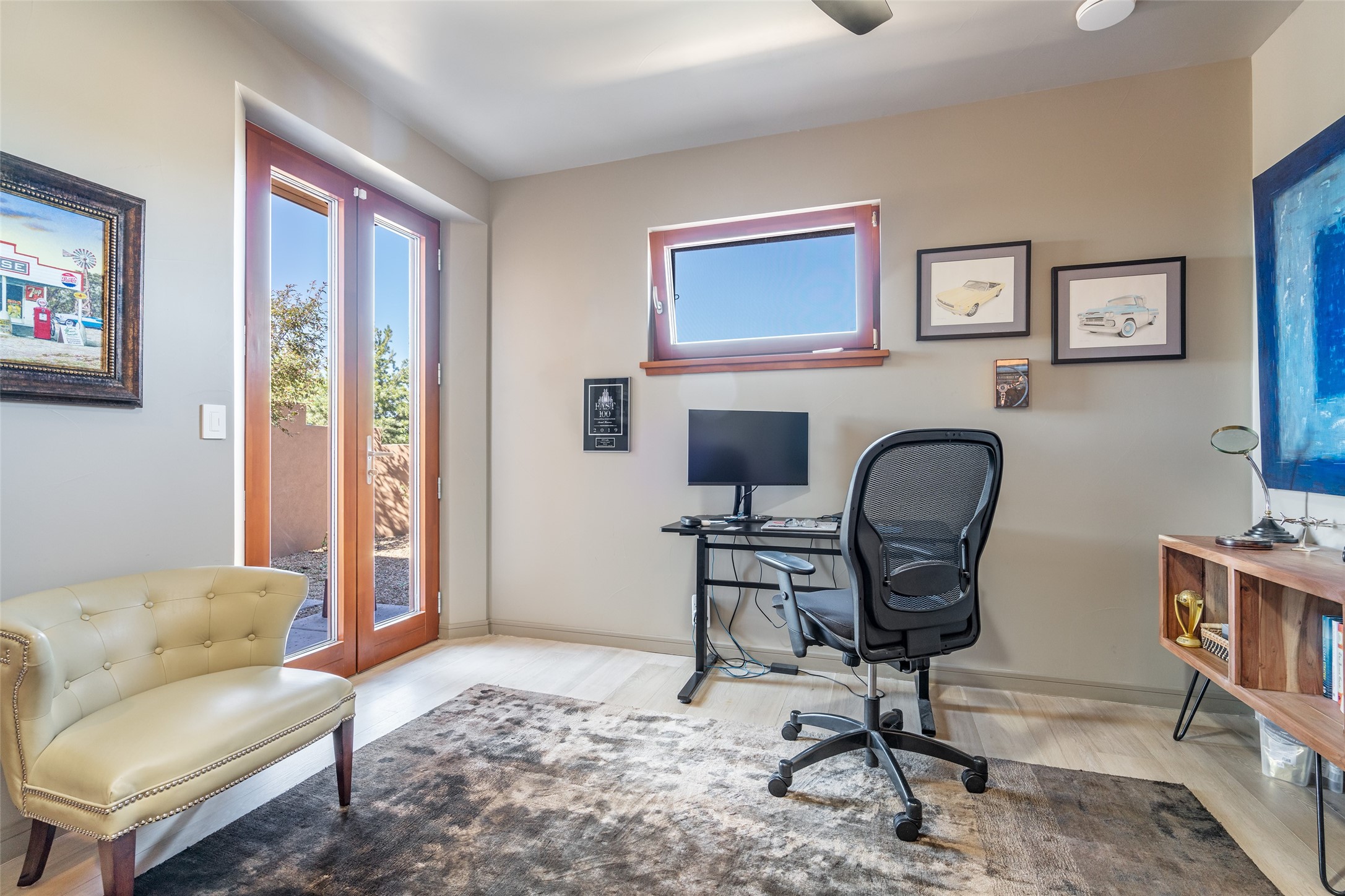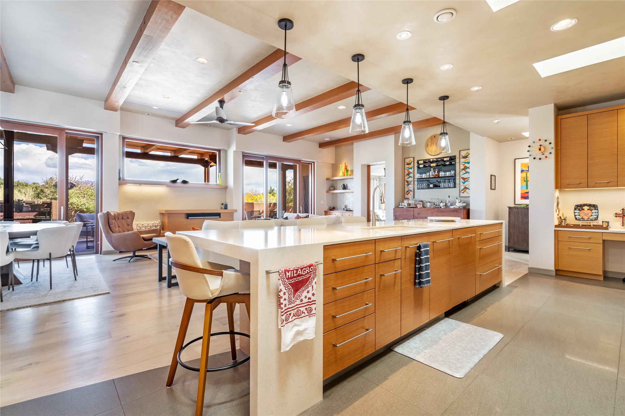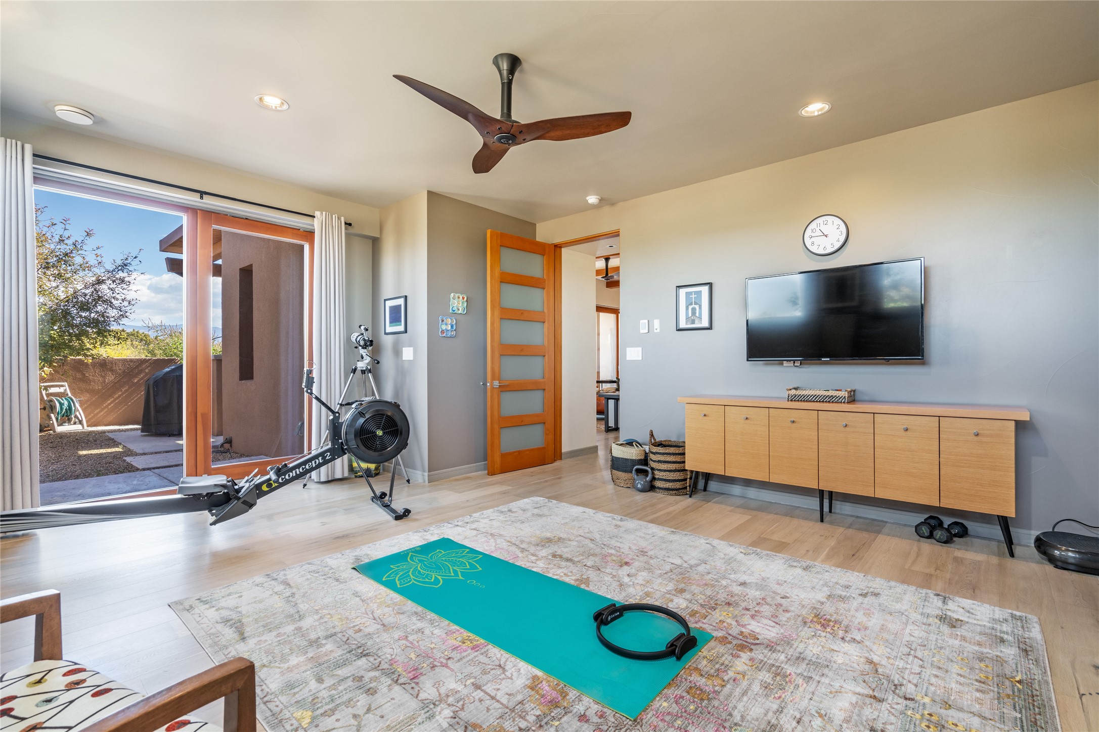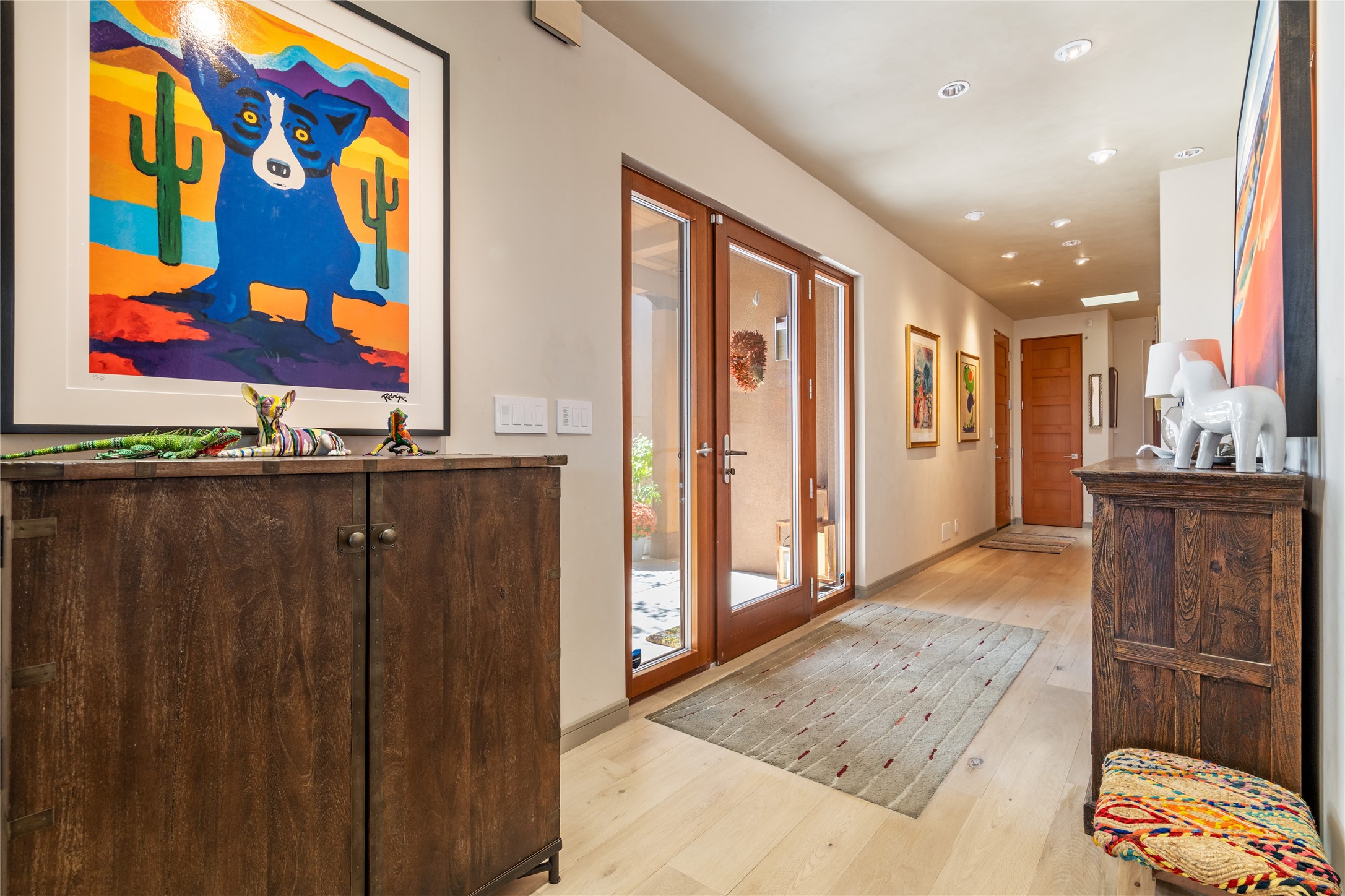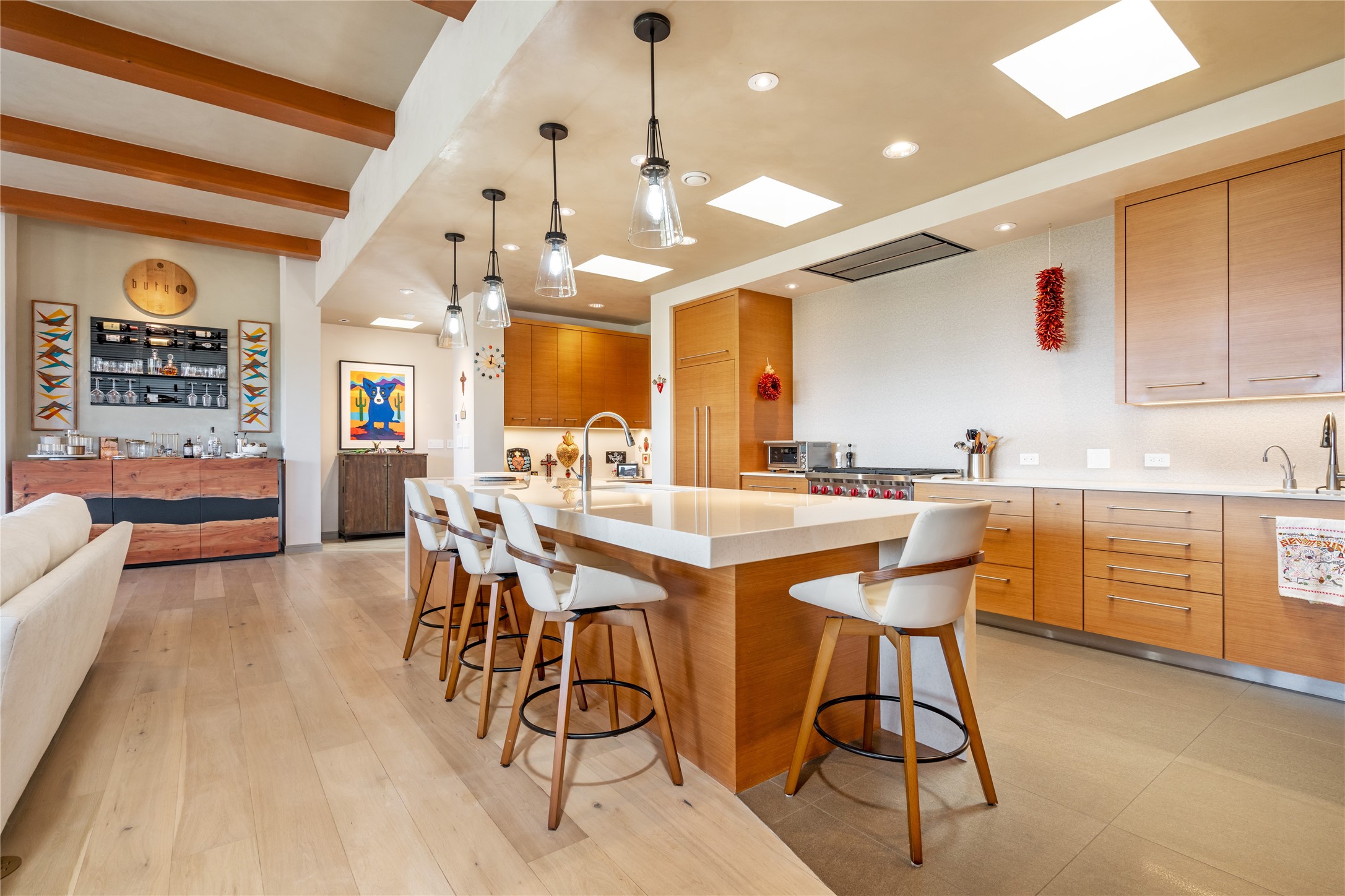 Contemporary living with convenient access to downtown and connection to nature, this stunning home offers the best of all worlds. Spectacular mountain views in all directions from this 1.66 acre lot and 3 bed, 3 bath 'smart home' with highlights including solar electricity and solar water heating system, in-floor radiant heating and cooling, a whole-home water filtration system and whole-home ventilation system to maintain air quality.If you are so inclined, you could run your home using simple apps on your mobile phone. The solar production and consumption, Lutron lighting and window shades, heating and cooling, home security, irrigation system and more can be accessed when you are away from home. This sleek and welcoming home also includes 2 fireplaces, doors and windows by Siegenia that provide energy efficiency and security, high-end Wolf, Sub-Zero, Electrolux and Miele appliances, and green features including a water catchment system that feeds into a 2,000 gal water cistern. Travelers, please note the three-car garage includes a space tall and deep enough for an RV.These incredible features are complemented by a stylish contemporary interior with flex space for an office or home gym, and elegant outdoor spaces including a courtyard and two terraces that are ideal for sunrises and sunsets, peaceful morning coffees and evening entertaining.Experience the beauty and cutting-edge offerings of this advanced home.