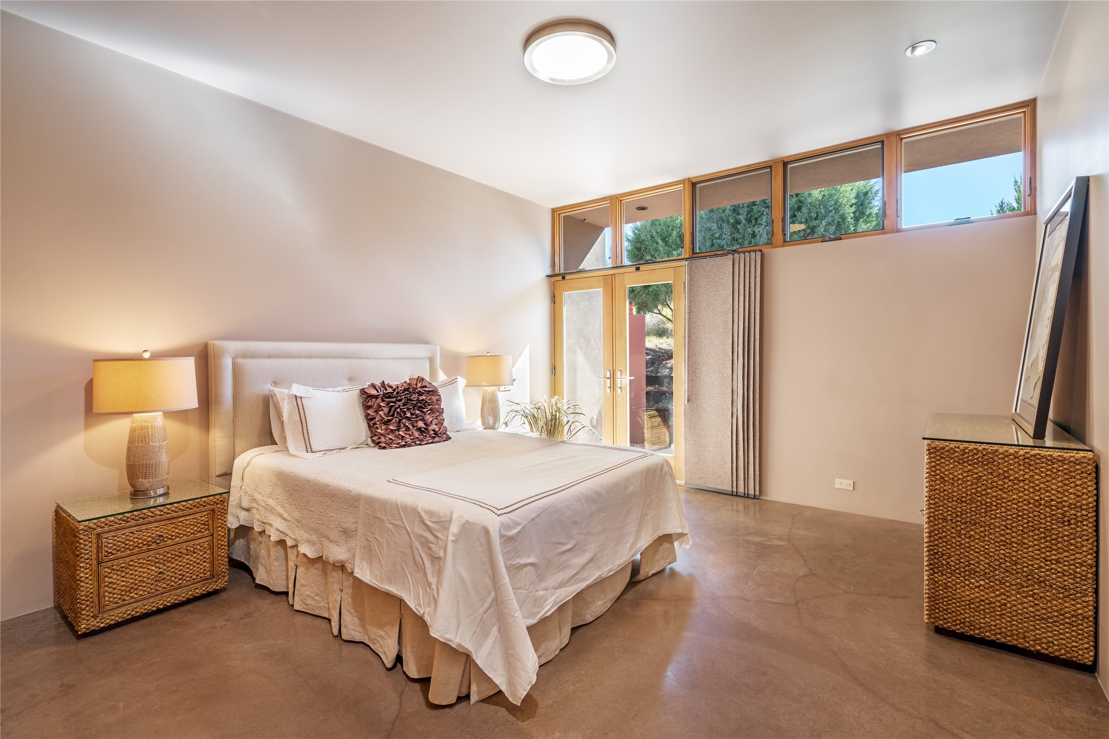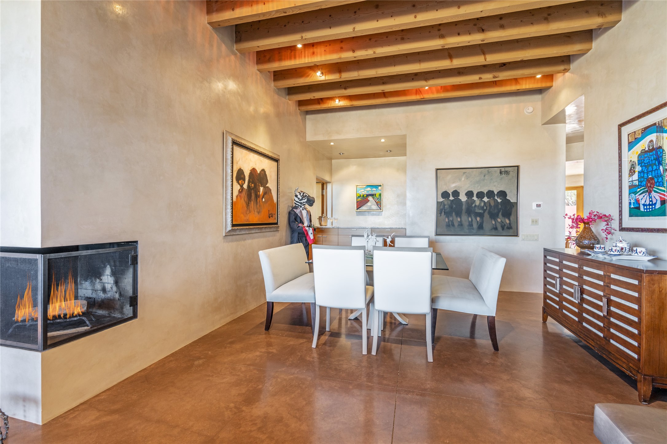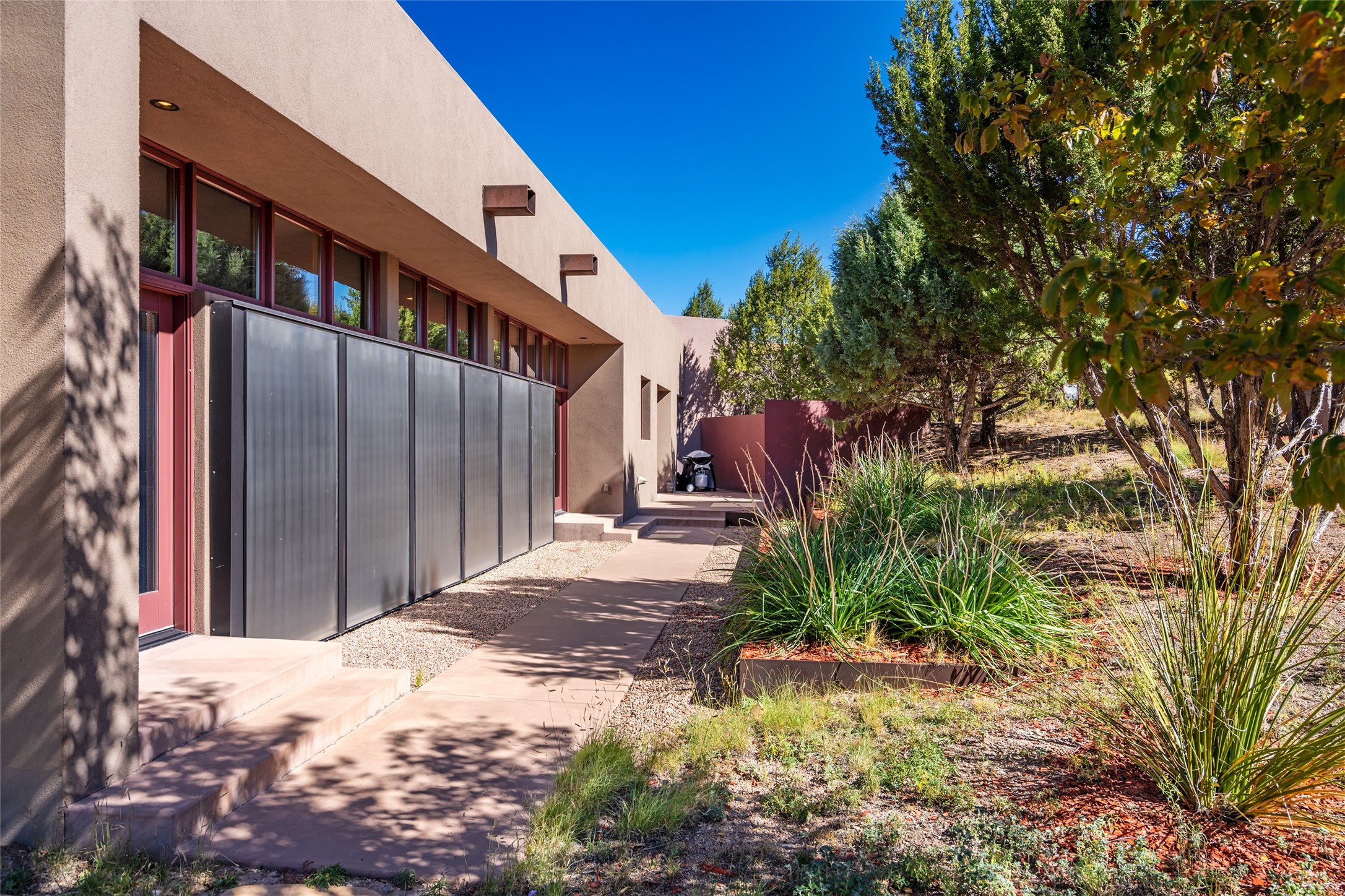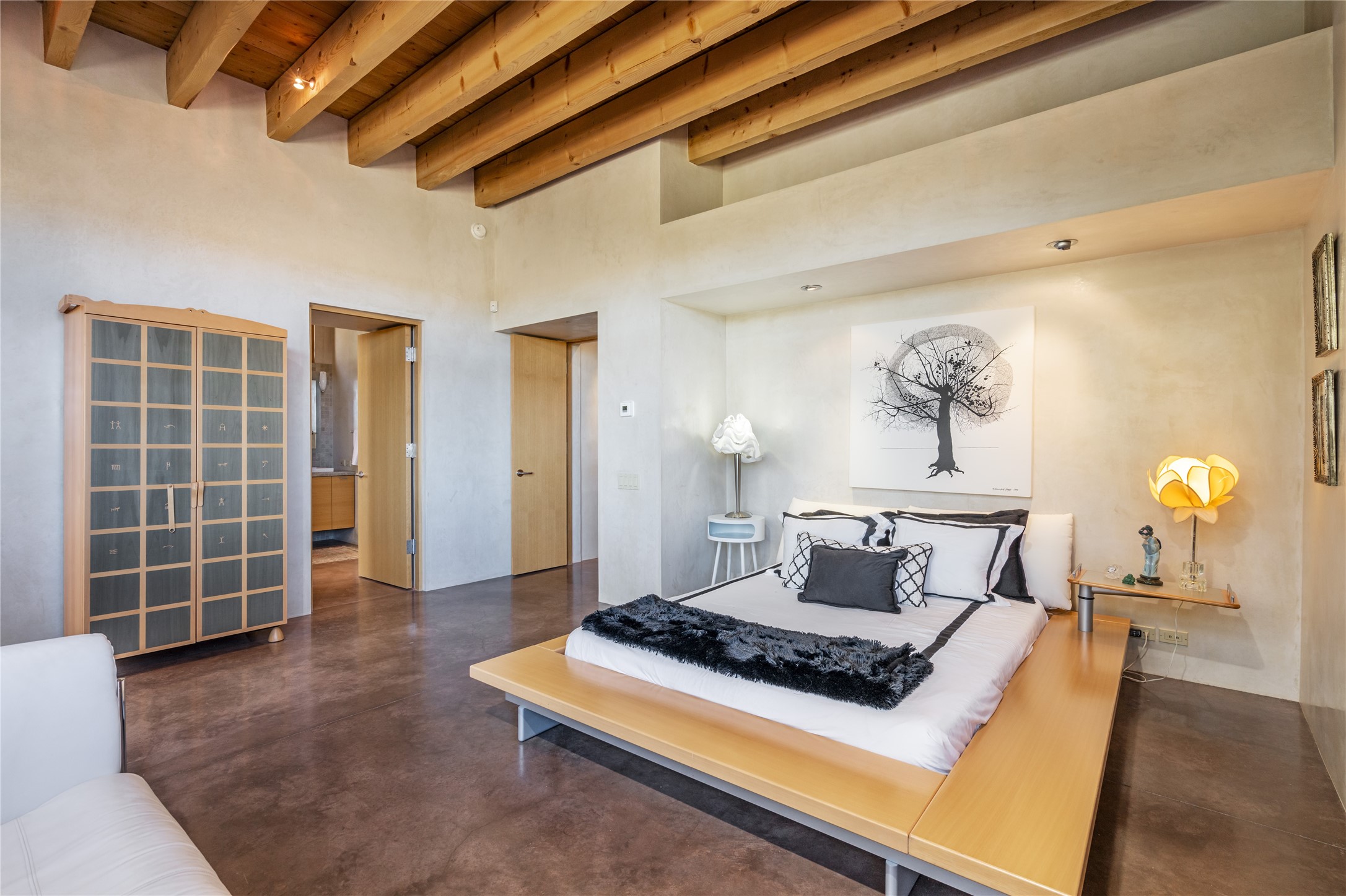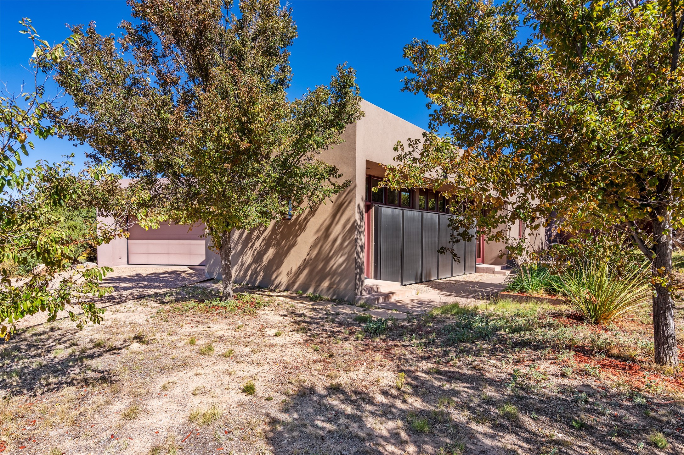 A harmonious fusion of architectural beauty and timeless style, this home stands as a pinnacle of Southwest Contemporary design. Designed by esteemed architect Robert Zachry, AIA, and meticulously crafted by Michael Hurlocker, this 2008 Parade of Homes winner for "Most Creative and Innovative," "Best Craftsmanship," and "Best Exterior Character" will immediately reward. Upon entering through the glass front door, you are immediately aware of the uniqueness of this home. The main living area with dual-sided fireplace and remote-controlled wall-to-wall glass doors seamlessly open to a wraparound portal with fireplace and custom-built wall water feature, providing the perfect indoor-outdoor luxury retreat. The modern and elegant kitchen, adorned with sleek cabinetry and high-end finishes, island seating, informal dining area and private patio ideal for outdoor grilling and gatherings. This home is also equipped with modern comforts, such as central air conditioning, radiant in-floor heating, spa like bath, solar panels for hot water heater and heating, cistern for watering the professionally landscaped grounds. Every aspect transcends time. It's not just a home; it's a statement of enduring excellence. Don't miss this opportunity to own the art of living in a home where innovation, craftsmanship, and style unite to create an extraordinary living environment.