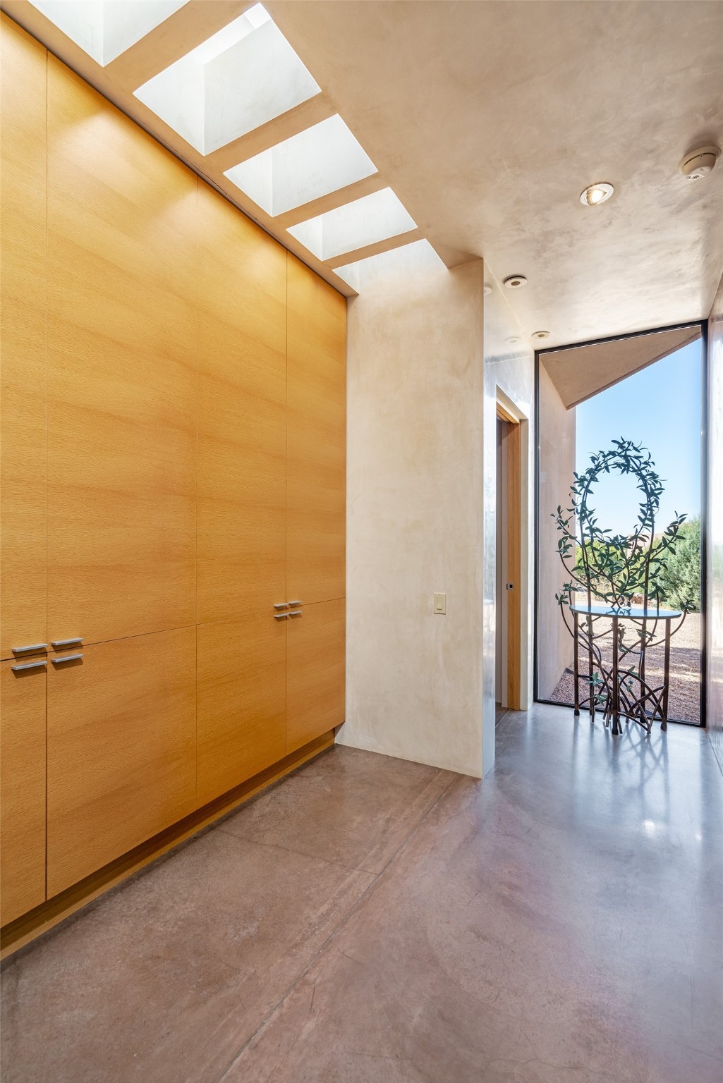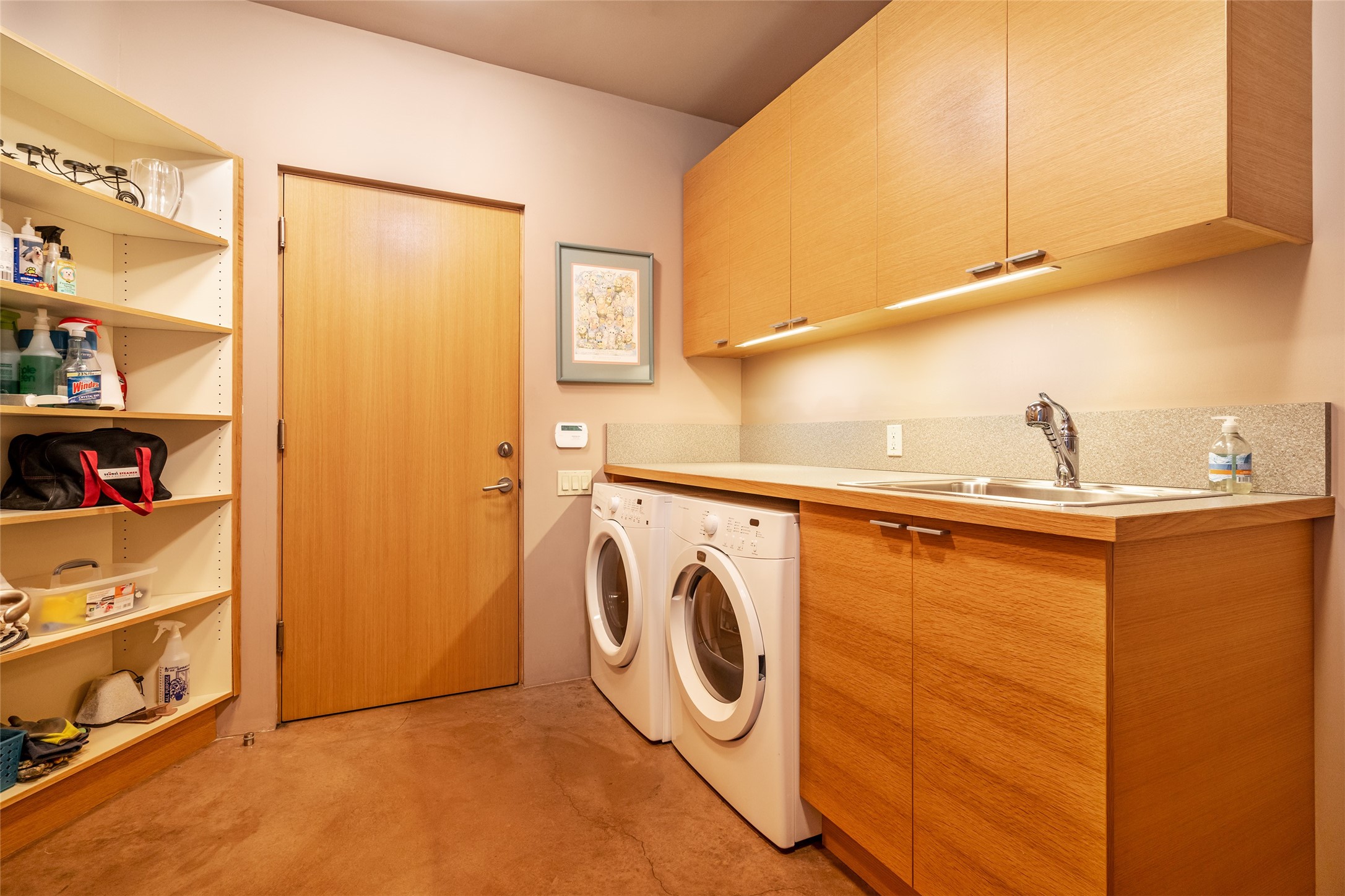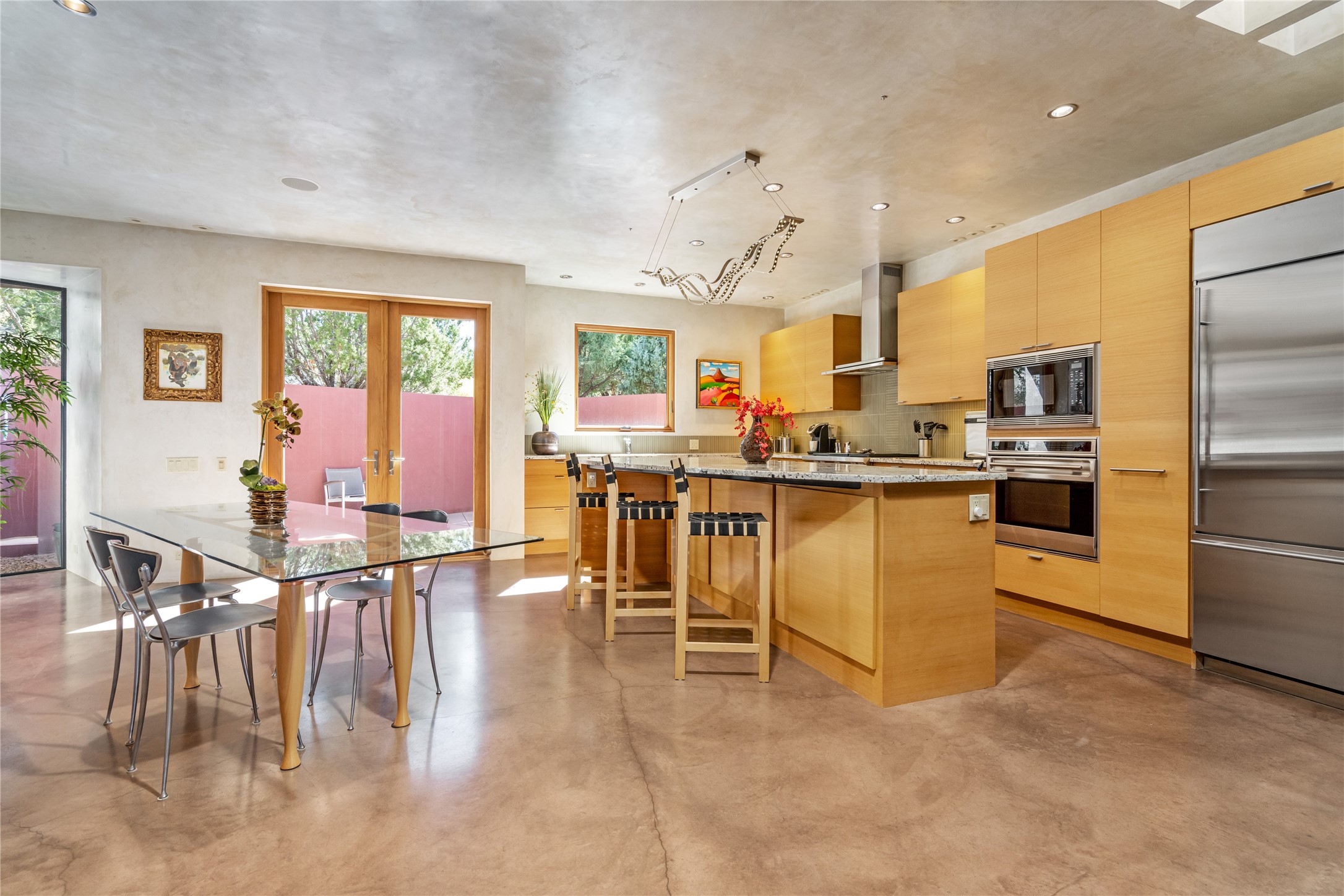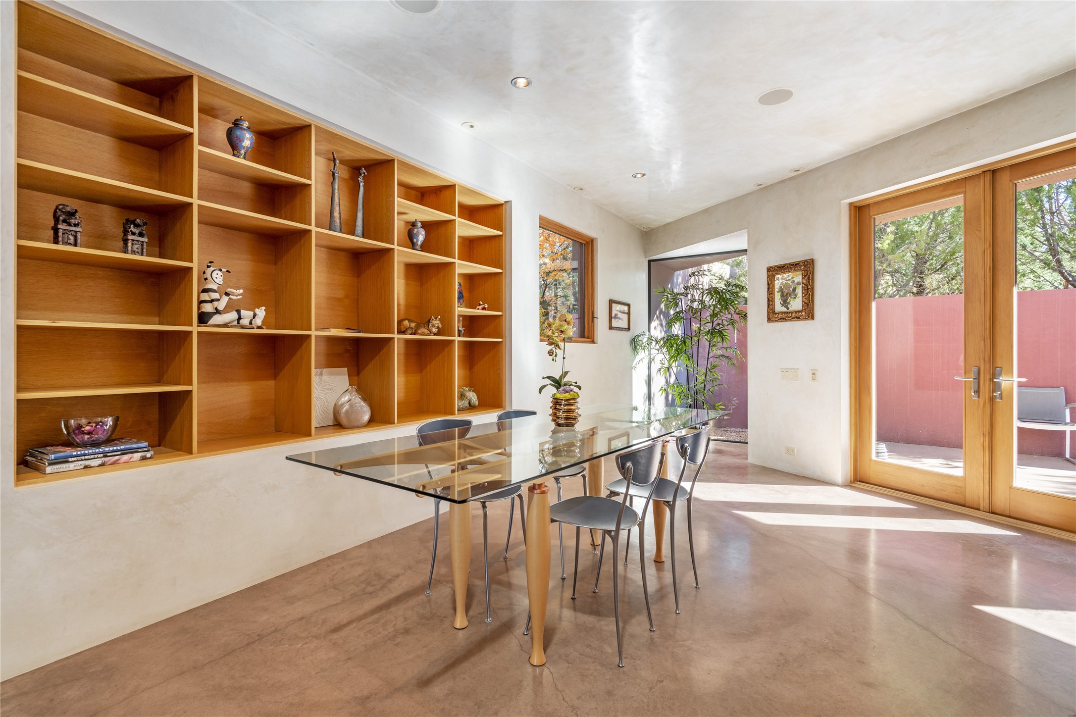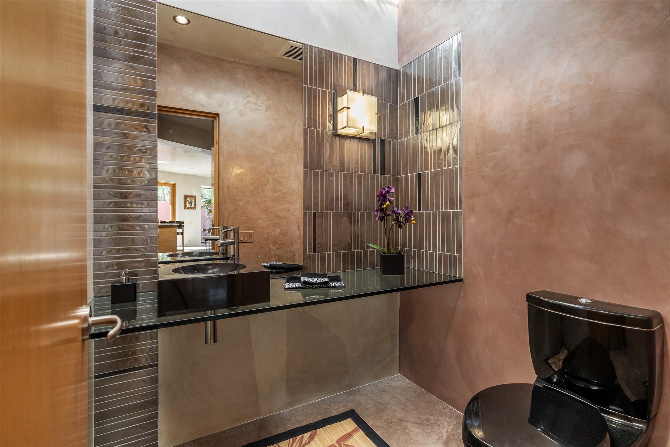 A harmonious fusion of architectural beauty and timeless style, this home stands as a pinnacle of Southwest Contemporary design. Designed by esteemed architect Robert Zachry, AIA, and meticulously crafted by Michael Hurlocker, this 2008 Parade of Homes winner for "Most Creative and Innovative," "Best Craftsmanship," and "Best Exterior Character" will immediately reward. Upon entering through the glass front door, you are immediately aware of the uniqueness of this home. The main living area with dual-sided fireplace and remote-controlled wall-to-wall glass doors seamlessly open to a wraparound portal with fireplace and custom-built wall water feature, providing the perfect indoor-outdoor luxury retreat. The modern and elegant kitchen, adorned with sleek cabinetry and high-end finishes, island seating, informal dining area and private patio ideal for outdoor grilling and gatherings. This home is also equipped with modern comforts, such as central air conditioning, radiant in-floor heating, spa like bath, solar panels for hot water heater and heating, cistern for watering the professionally landscaped grounds. Every aspect transcends time. It's not just a home; it's a statement of enduring excellence. Don't miss this opportunity to own the art of living in a home where innovation, craftsmanship, and style unite to create an extraordinary living environment.