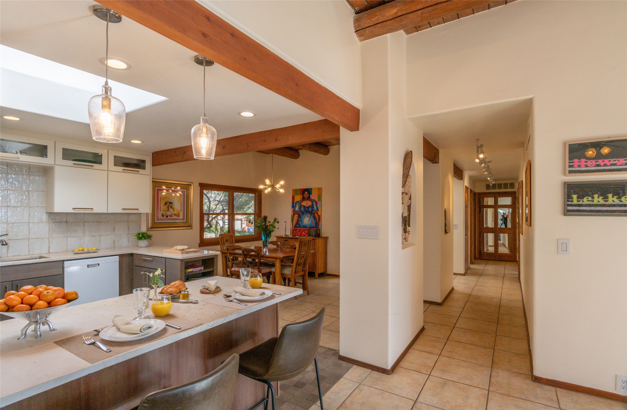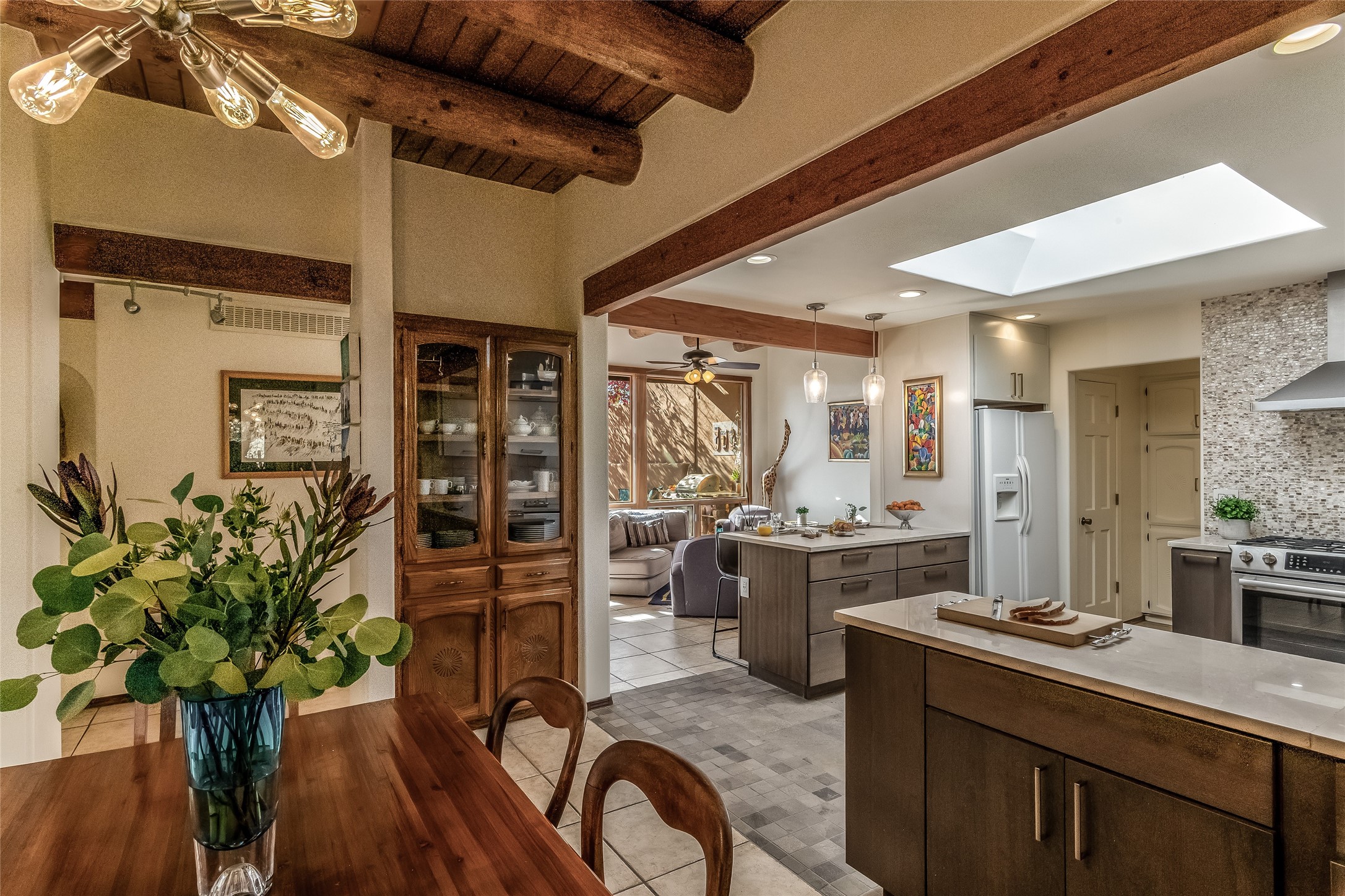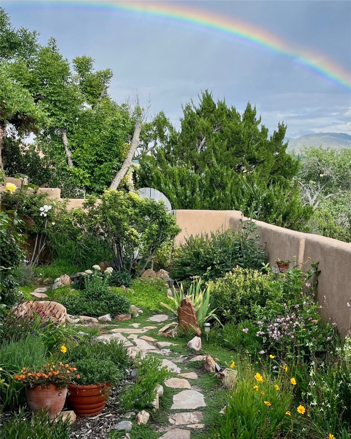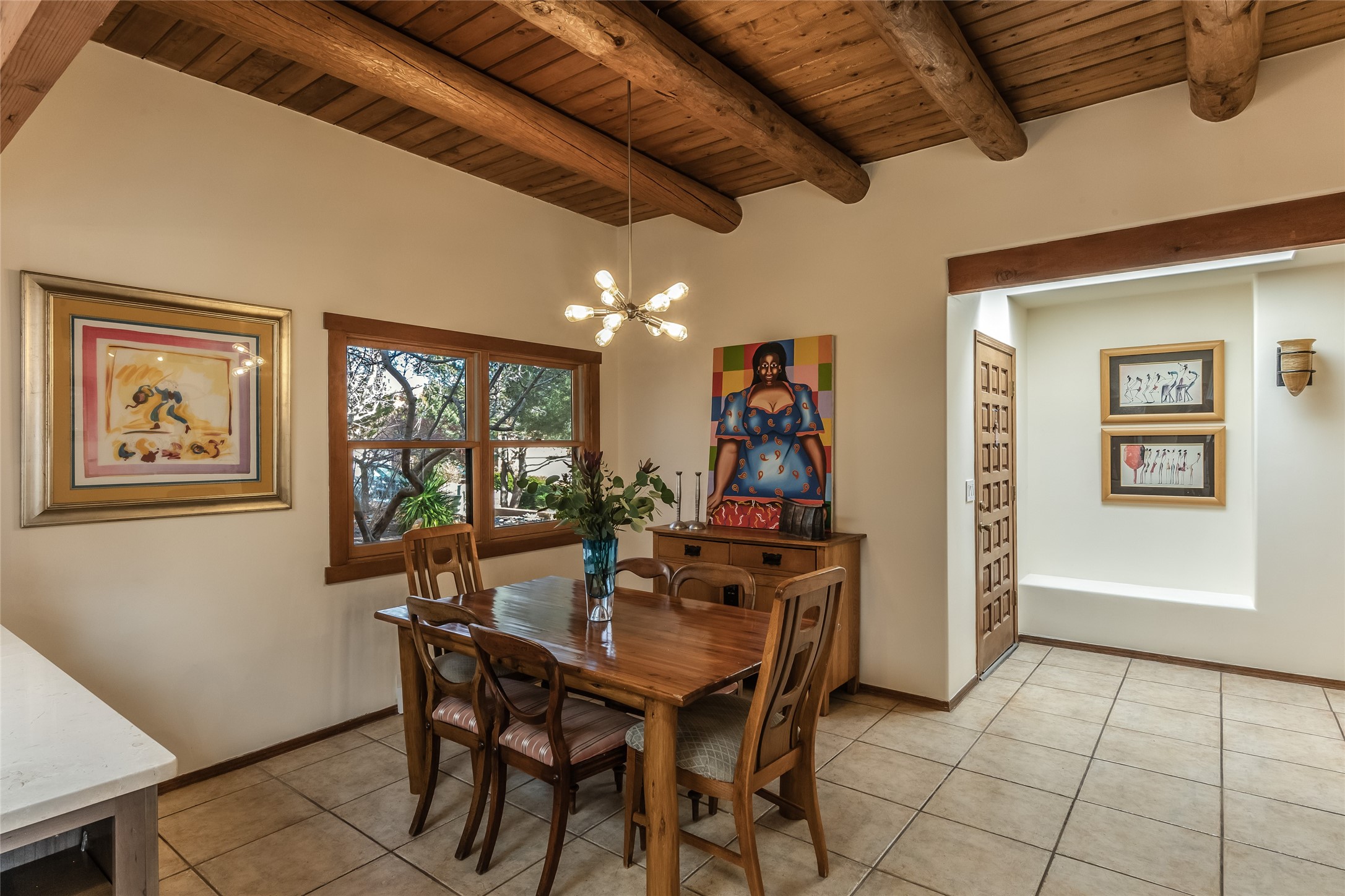 HUGE price change!! Check out the stunning Sangre de Cristo mountain views from this exceptional tranquil home. This pocket gem is close to the plaza, shopping, hiking trails and the dog park. This townhome has stunning views of downtown Santa Fe from its private patio. Landscaping is a lush English-style garden and is in full bloom with roses, primrose, salvia and flowering thyme! The home is light-filled and spacious with an open-concept design. Vigas, tile floors, large kiva fireplace, and soaring 12-foot ceilings in the living room and office/studio. The kitchen features limestone countertops, stone floors, elegant backsplash and upgraded appliances, including a Bosch dual-fuel stove. The master bedroom has lovely views of the Sangres, an en suite master bath with natural stone accents and a walk-in California Closet system. Xeriscaped front entry and a newly installed porphyry stone driveway that enhances both the curb appeal and functionality. New silicon roof in 2020 with transferable warranty. This townhome is a delicious combination of location, views, privacy, and modern amenities. You'll love those views!