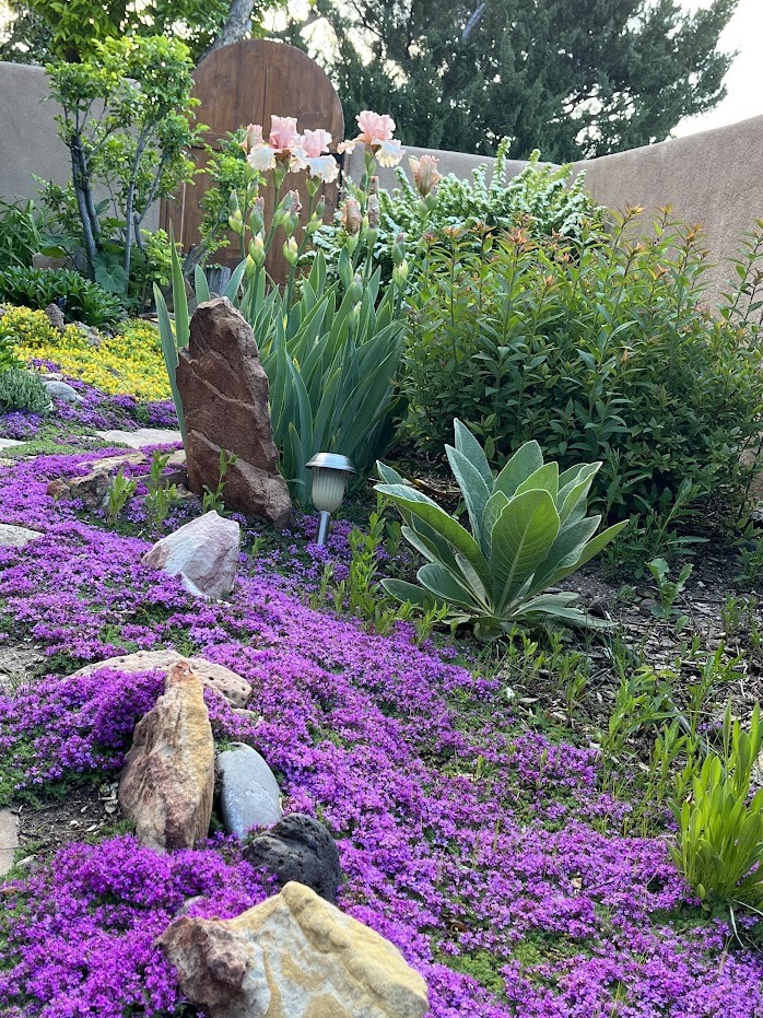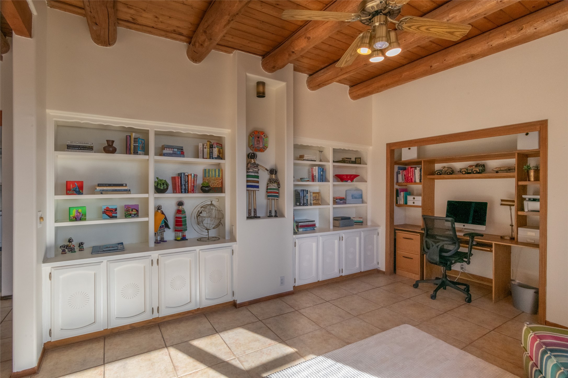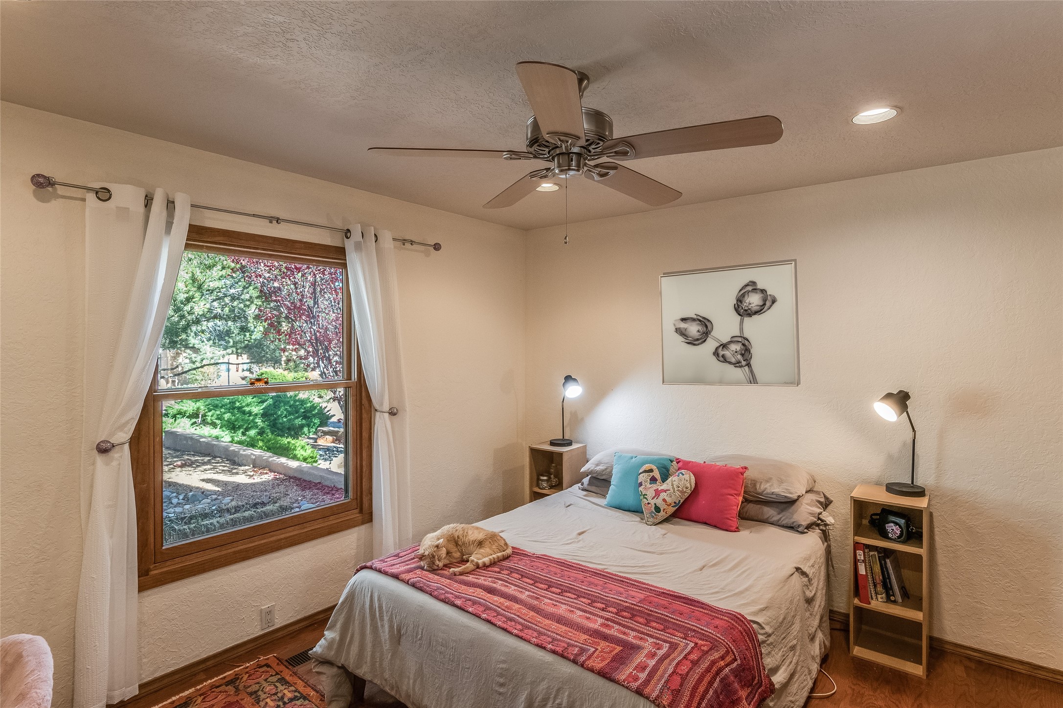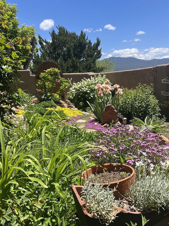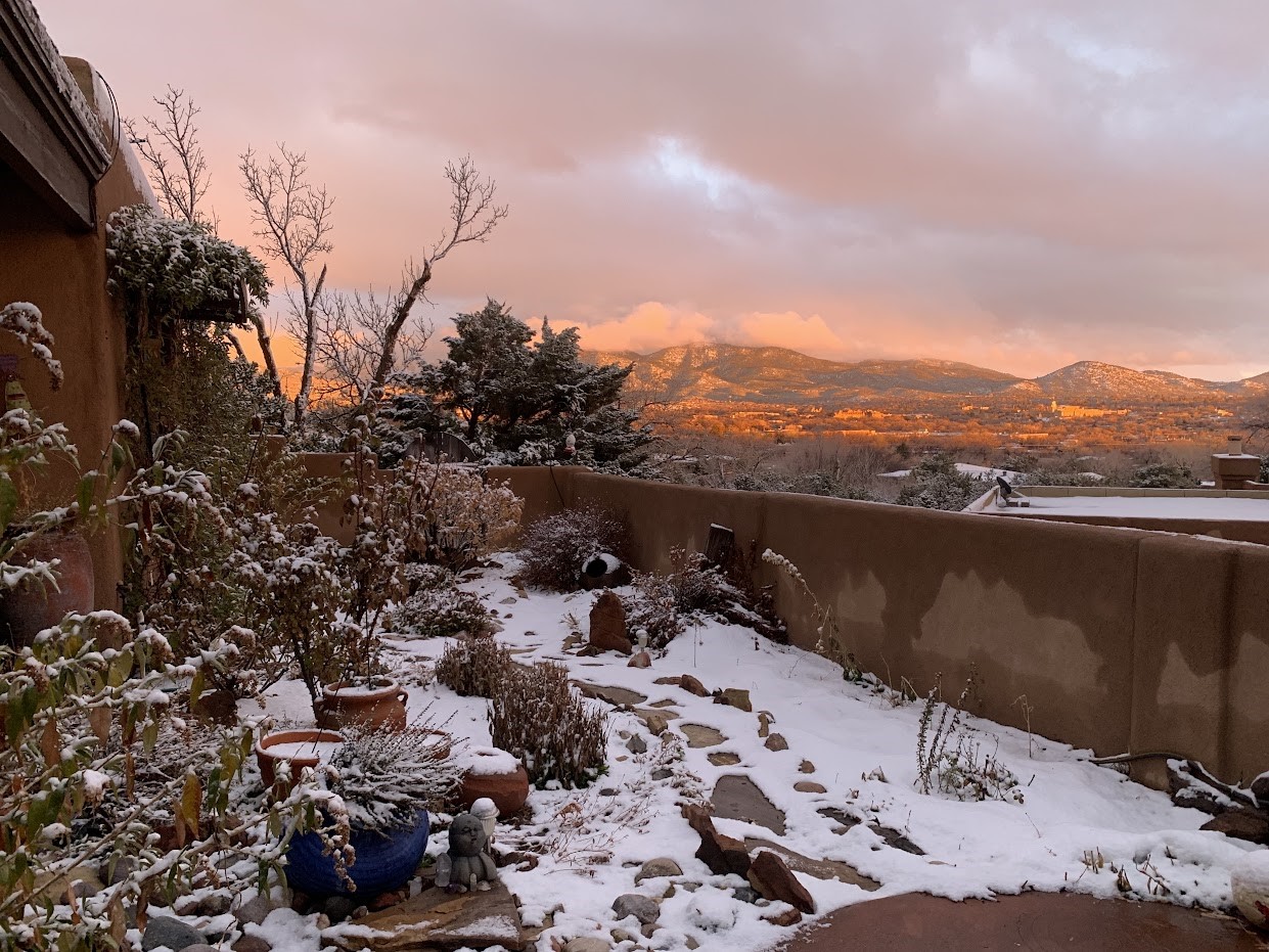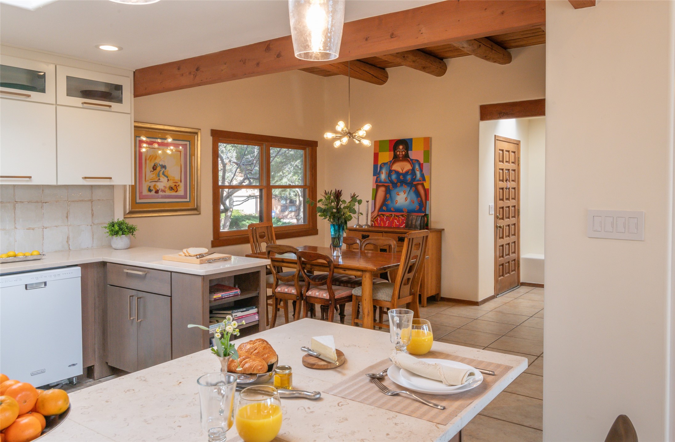 HUGE price change!! Check out the stunning Sangre de Cristo mountain views from this exceptional tranquil home. This pocket gem is close to the plaza, shopping, hiking trails and the dog park. This townhome has stunning views of downtown Santa Fe from its private patio. Landscaping is a lush English-style garden and is in full bloom with roses, primrose, salvia and flowering thyme! The home is light-filled and spacious with an open-concept design. Vigas, tile floors, large kiva fireplace, and soaring 12-foot ceilings in the living room and office/studio. The kitchen features limestone countertops, stone floors, elegant backsplash and upgraded appliances, including a Bosch dual-fuel stove. The master bedroom has lovely views of the Sangres, an en suite master bath with natural stone accents and a walk-in California Closet system. Xeriscaped front entry and a newly installed porphyry stone driveway that enhances both the curb appeal and functionality. New silicon roof in 2020 with transferable warranty. This townhome is a delicious combination of location, views, privacy, and modern amenities. You'll love those views!