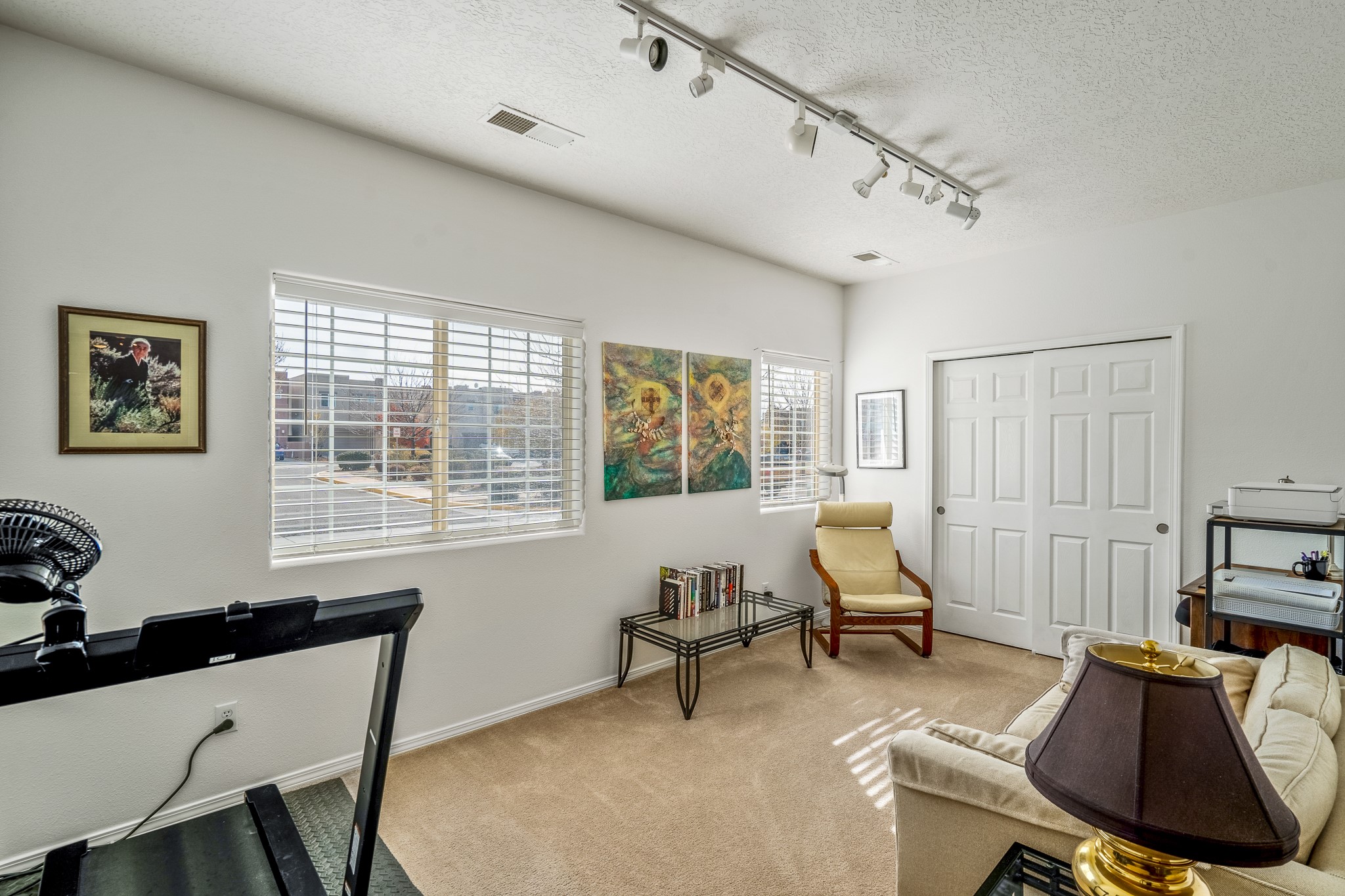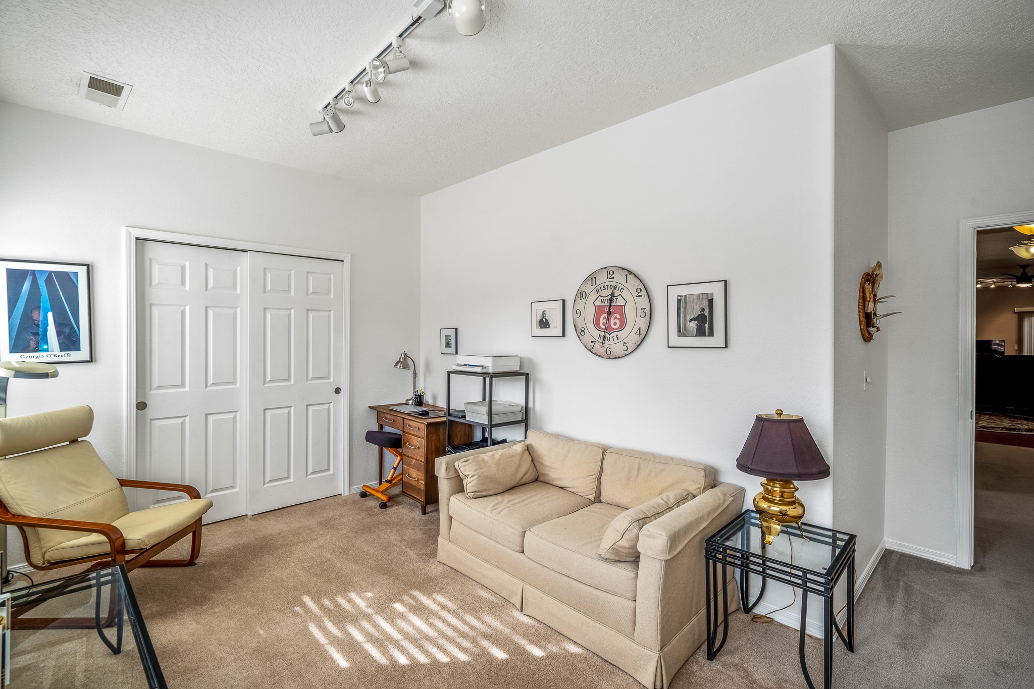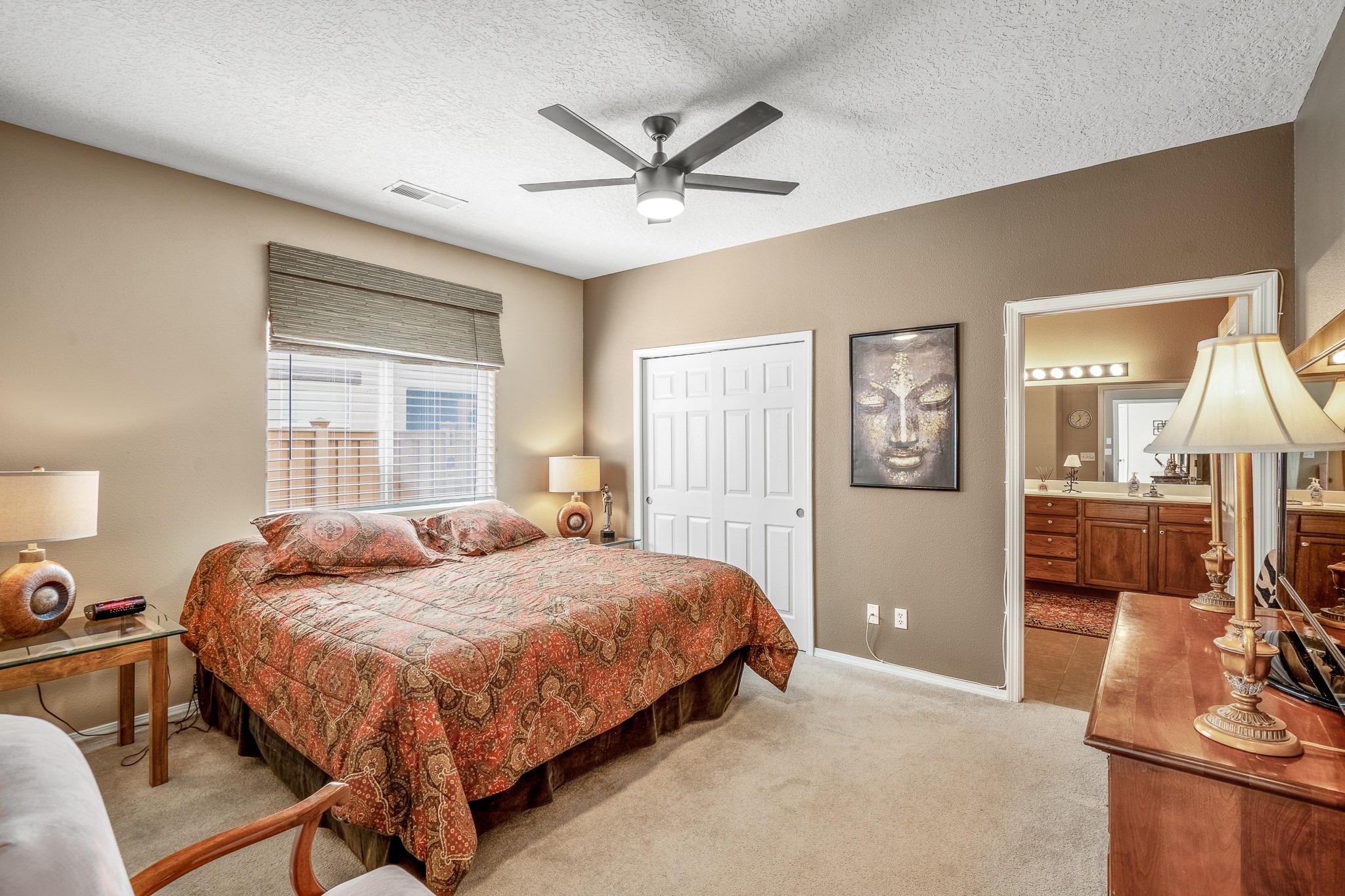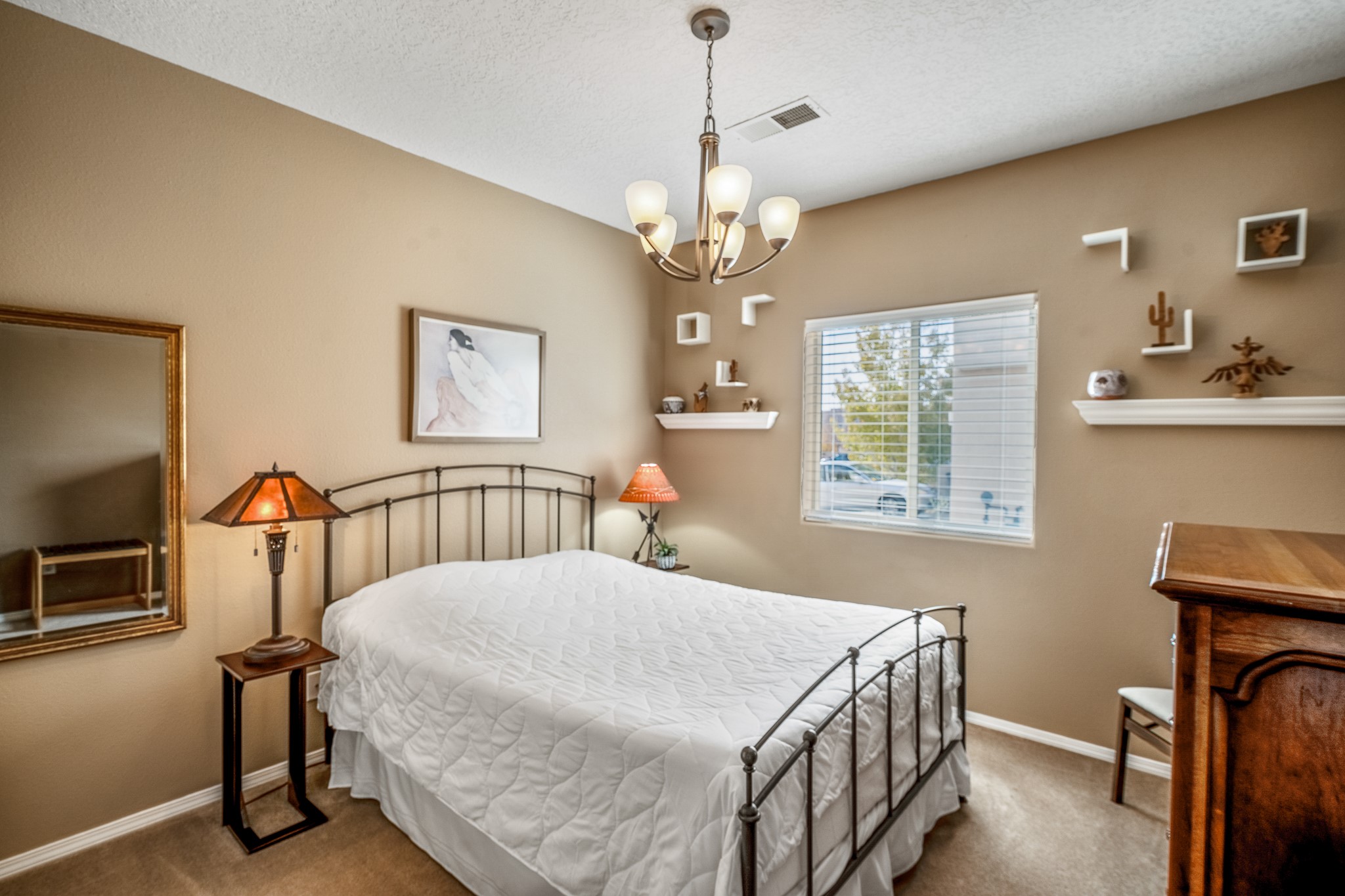 This beautiful well cared for single level 3 bed/2 bath home has so much to love. The kitchen is well equipped with lots of storage, pantry, under mount lighting, microwave and gas cooking, easy for entertaining as it opens to a large living room with wood laminate flooring. The glass sliding doors lead to a wraparound yard ready for your garden and outdoor enjoyment. The spacious primary bedroom includes a huge bathroom with a large walk-in shower. This split floor plan includes a wide hallway that leads to the secondary bedrooms and full bath. Included is a large laundry room and direct entry oversized one car garage, forced air heat and refrigerated A/C. A few upgrades include a recent resurfaced roof, 2022 installed new hot water heater, new ceiling fan and lights, entire home freshly painted and new window blinds. Bonus! Enjoy the beautifully maintained park with ample parking across the street, this home is in the best location in the neighborhood! Come See!