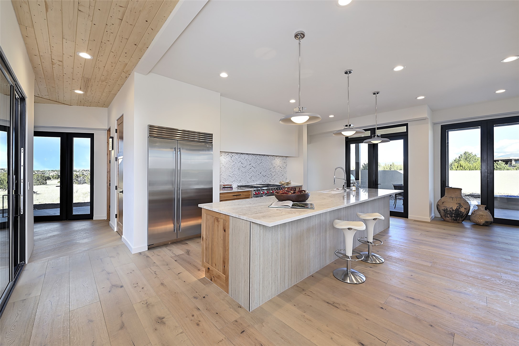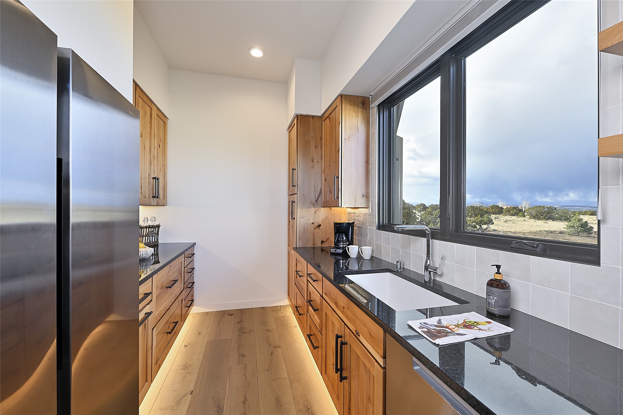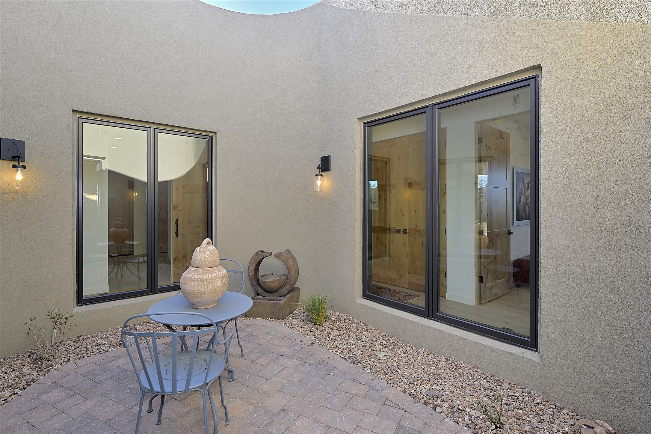 Picture yourself in the best of refined living with this soft, sophisticated, and serene residence boasting breathtaking sunrise, moonrise, and sunset views. The open floor plan seamlessly blends indoor and outdoor spaces to create an environment that invites relaxation and enjoyment. Step into a state-of-the-art kitchen and a butler's pantry, complete with custom cabinetry that adds a touch of elegance. Entertaining is a joy with this well-appointed space, where every detail has been thoughtfully imagined. The primary suite is a sanctuary featuring a spa bath for luxurious relaxation and a walk-in closet that caters to the most discerning tastes. Two additional secondary suites offer private retreats, each equipped with its own bath and walk-in closet, ensuring that every resident enjoys their own tranquil space. A cozy private office provides the perfect setting for focused work or reflective moments. Don't miss the totally enclosed meditation garden giving you year-round outdoor access regardless of the season. Meanwhile, a pristine three-car garage adds both convenience and a touch of good design to this already exquisite home. Nestled within the secure confines of a peaceful community, residents have the option to take advantage of the amenities of the Club at Las Campanas separately. Or just revel in the tranquility of the surroundings, where walking paths beckon and mountain views inspire. It's more than a home; it's an oasis whether you live here full time or prefer a "lock and leave" lifestyle.