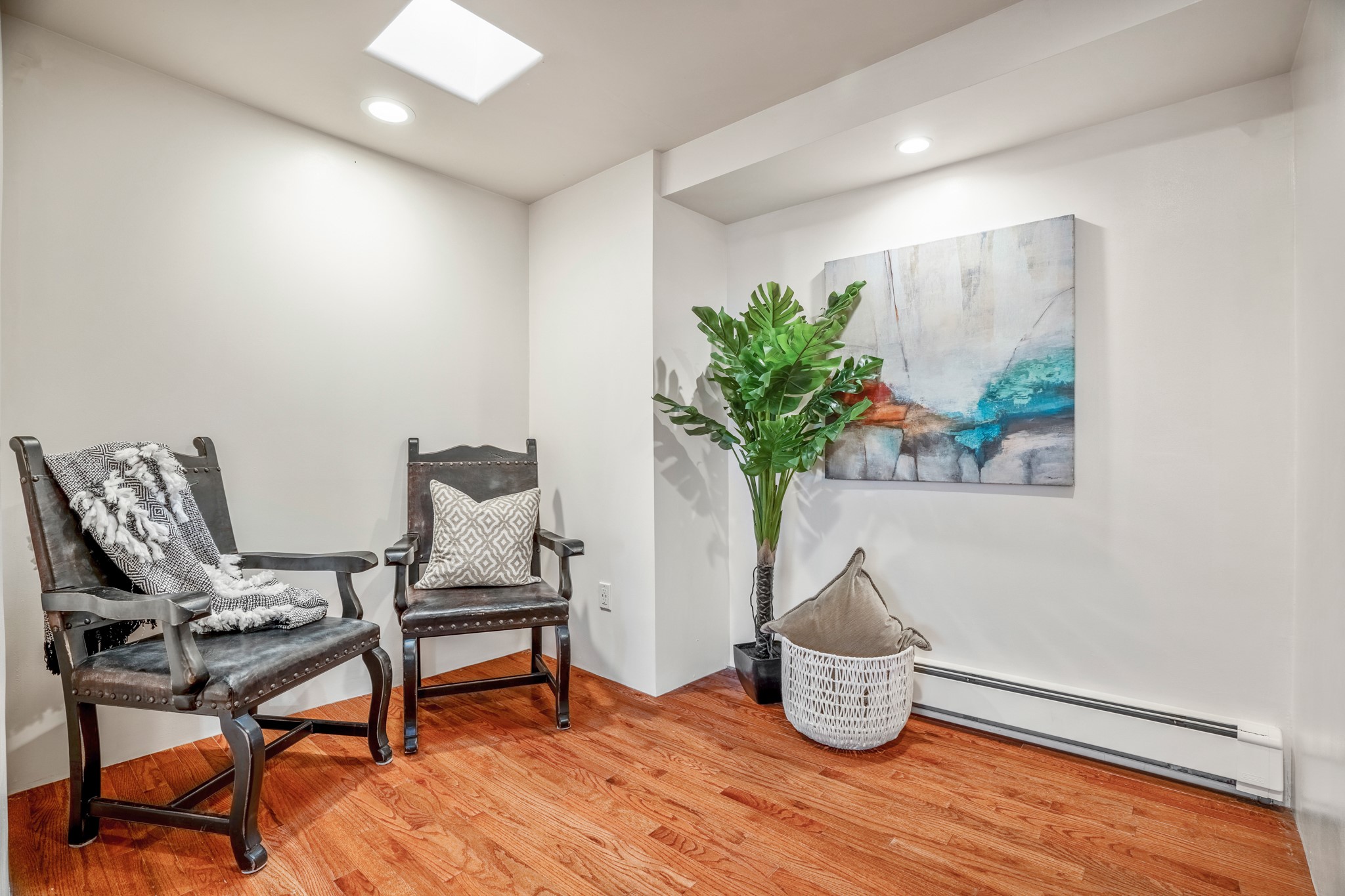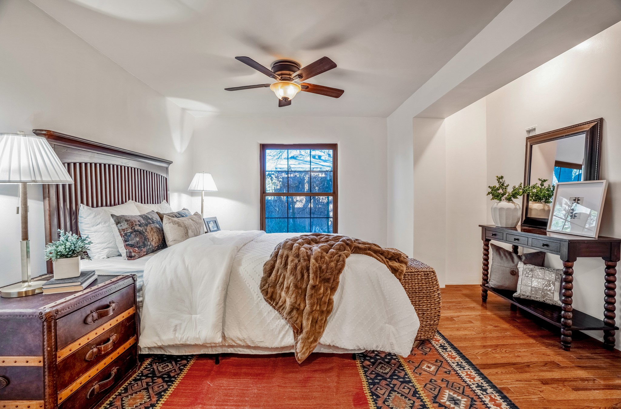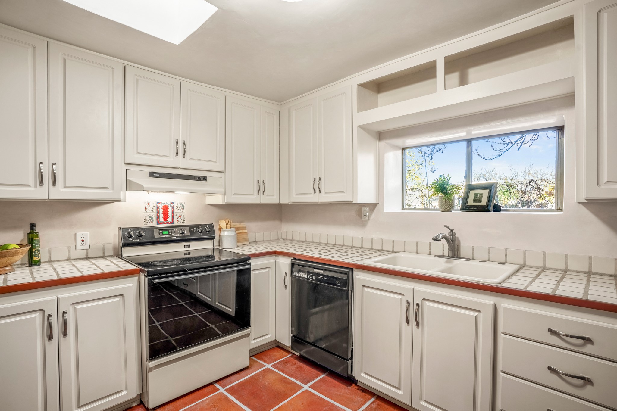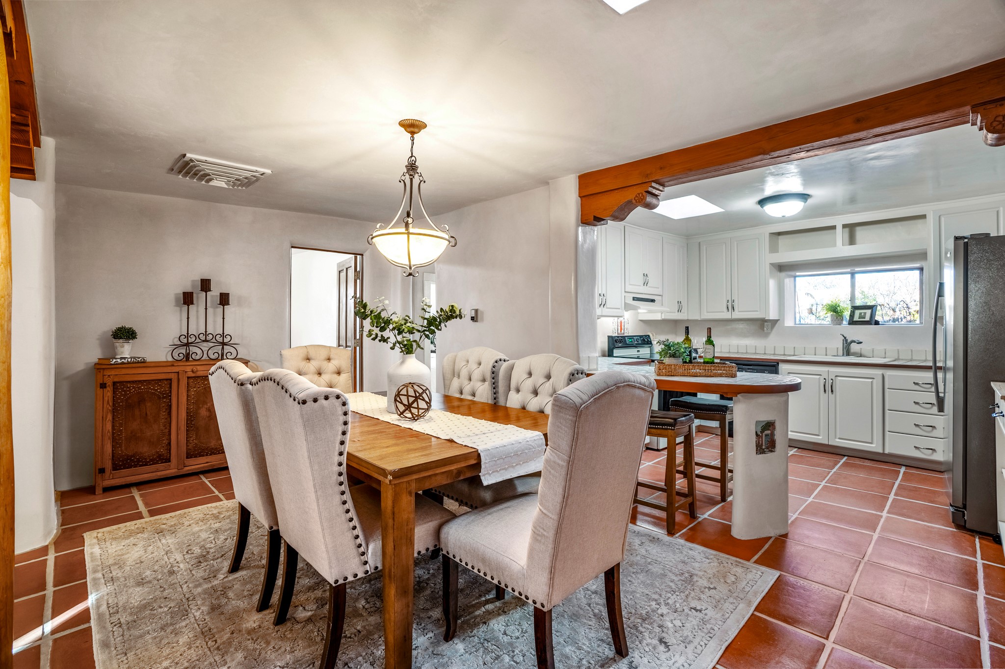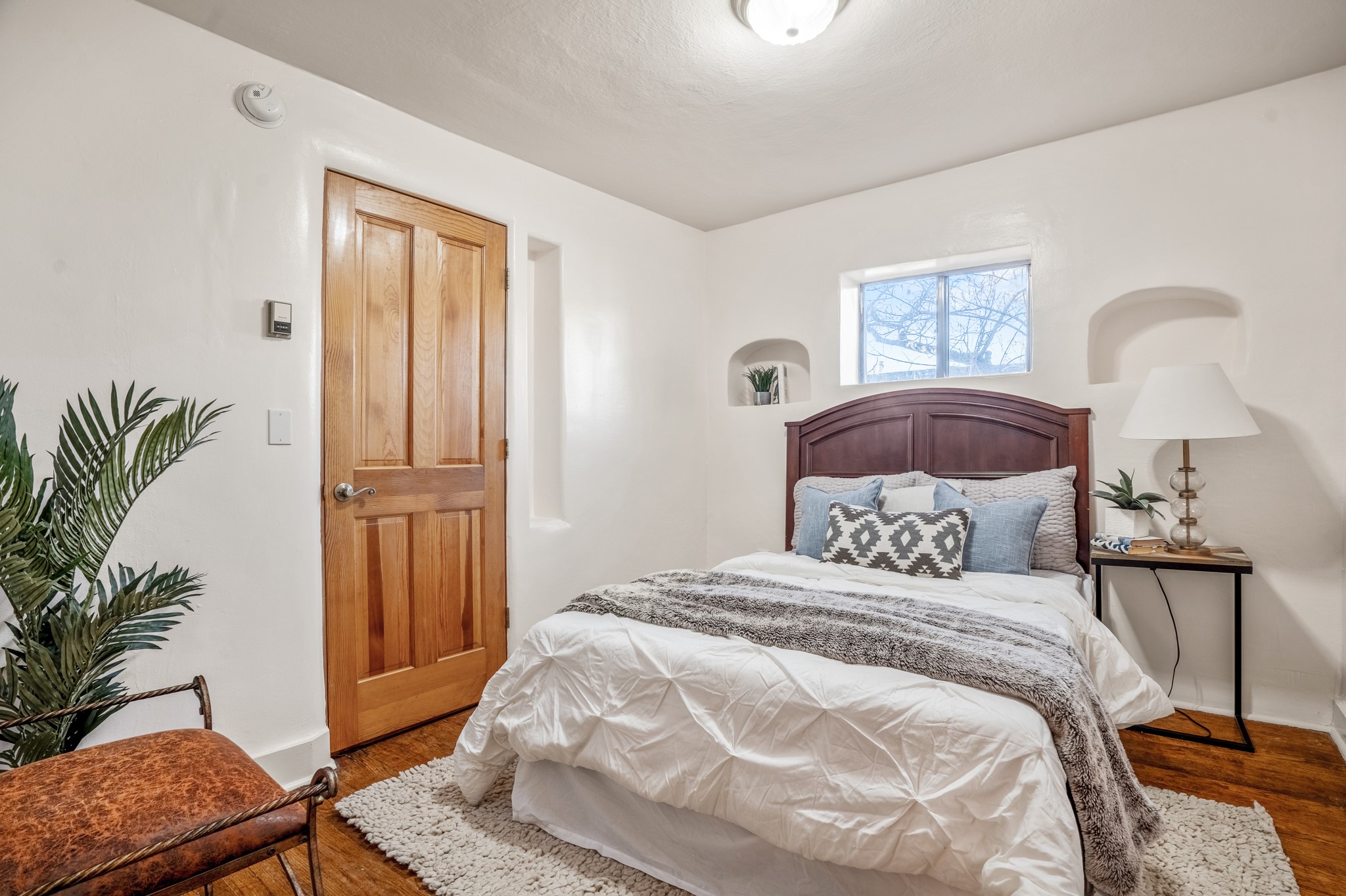 The original portion of this adobe home started off in the 1930's and was lovingly added onto by owner/builder Richard Gorman in the early 2000's. This home is in the tradition of many of our homes and neighborhoods as it is located off the main street on a quaint lane (and the last home) giving it a feeling of privacy and tranquility. The home is walled and gated and opens up to a delightful courtyard and features a portal area that would be lovely for warm weather dining. The addition of the great room with its high beamed ceilings, tile floors and corner fireplace brings in ambient light from the south/southwest. Also added at this time was a powder room and laundry area. The primary bedroom is cozy yet roomy as it has an area that would be perfect for a sitting area or an in-home office. The primary bath area was remodeled a couple of years ago and the primary closet was added on to and it is quite spacious! The stairs off the primary bedroom lead to a storage area that would make a great place to store your wine collection. Last but not least is the roomy two car garage and additional parking for guests, both unusual for the area. Easy walking to the Railyard District which features entertainment during the summer months, the Farmers Market, restaurants and a great movie theater. This home is a must-see if you would like to be closer to the downtown area and Railyard District.