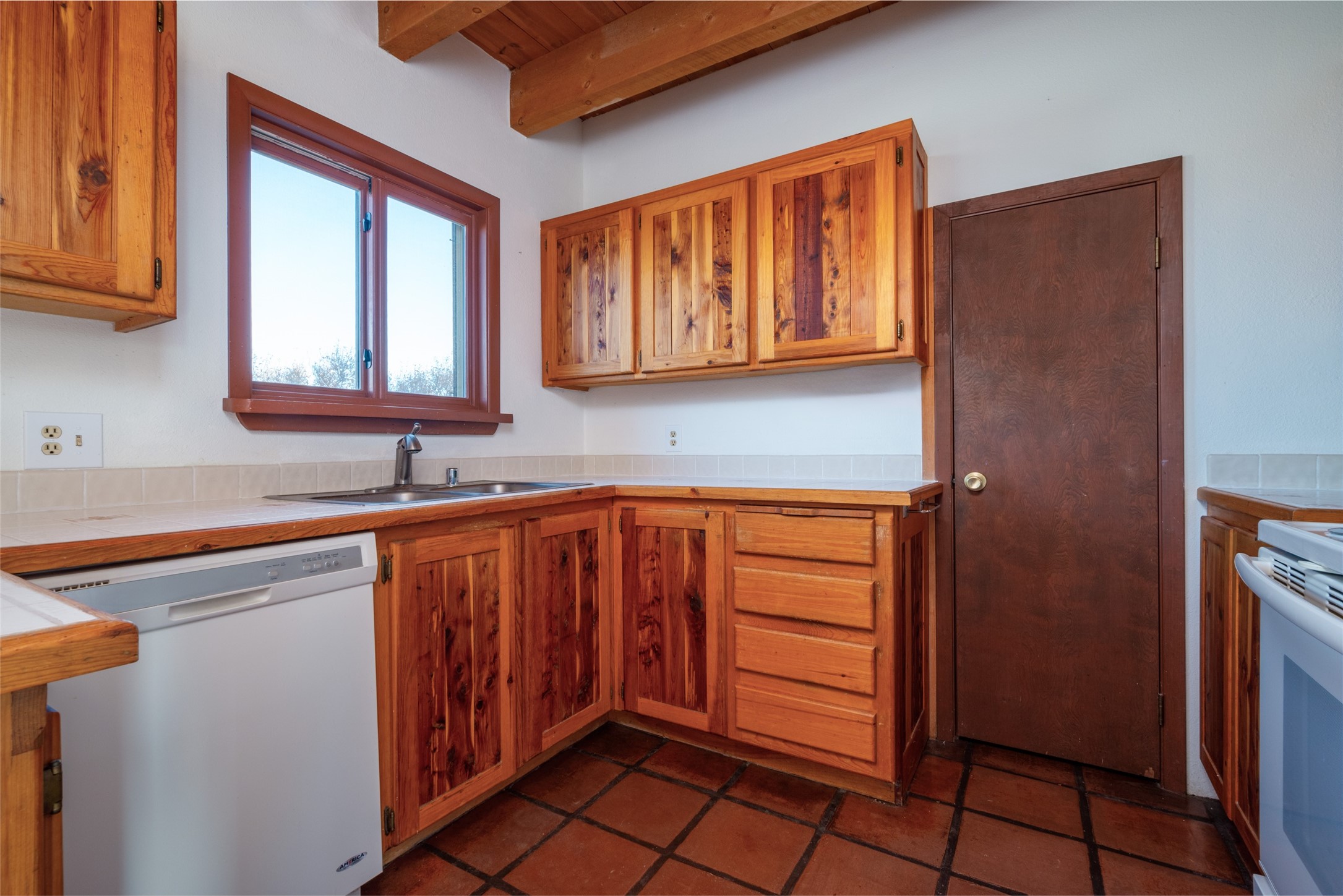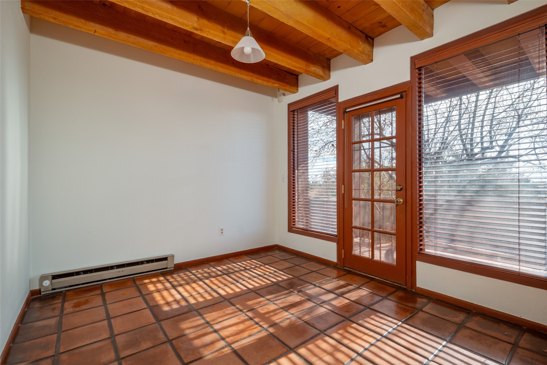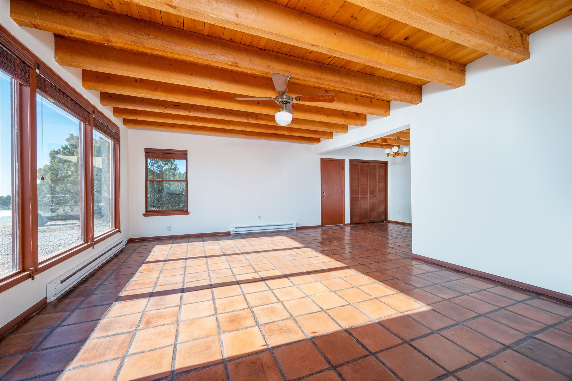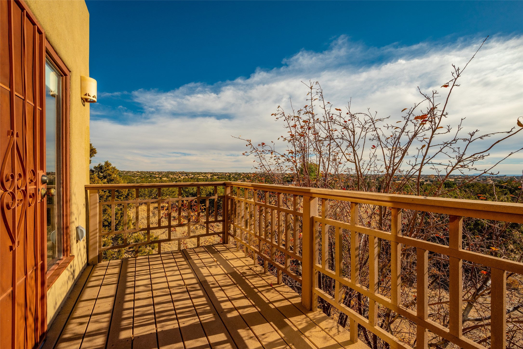 Home for the Holidays!! Come view this charming passive solar style home, strategically positioned to capture breathtaking views of the Turquoise Hills, Ortiz Mountains, and Sandia Mountains. Experience the beauty of New Mexico's stunning sunsets and stormy skies from the comfort of the enclosed and heated sunroom, located off the upstairs primary bedroom. Situated on almost an acre and a half of land, this property offers ample space for outdoor activities. With two full baths, including one in the primary bedroom upstairs, convenience is ensured for all occupants. The main living area features an open floor plan with Saltillo-style flooring and beamed ceilings, adding a touch of warmth and character to the space, while the bedrooms are carpeted for added comfort. The well-appointed kitchen boasts essential appliances such as a dishwasher, electric range, and refrigerator, providing all you need for culinary endeavors. Additional features include a newer hot water heater for your comfort and efficiency. The home is all-electric with natural gas available if desired. Water supply is through a shared well. This property offers a unique opportunity to enjoy New Mexico's natural beauty while providing comfortable living spaces. Don't miss out on this wonderful home - schedule a showing today!