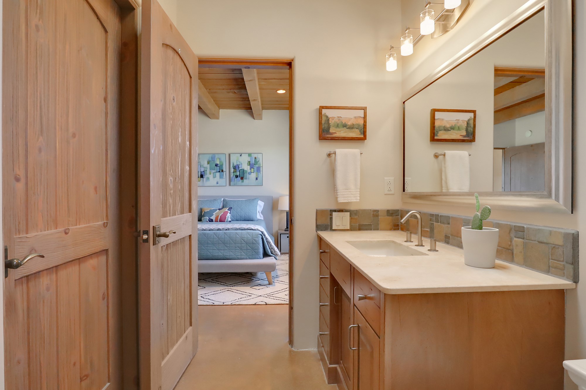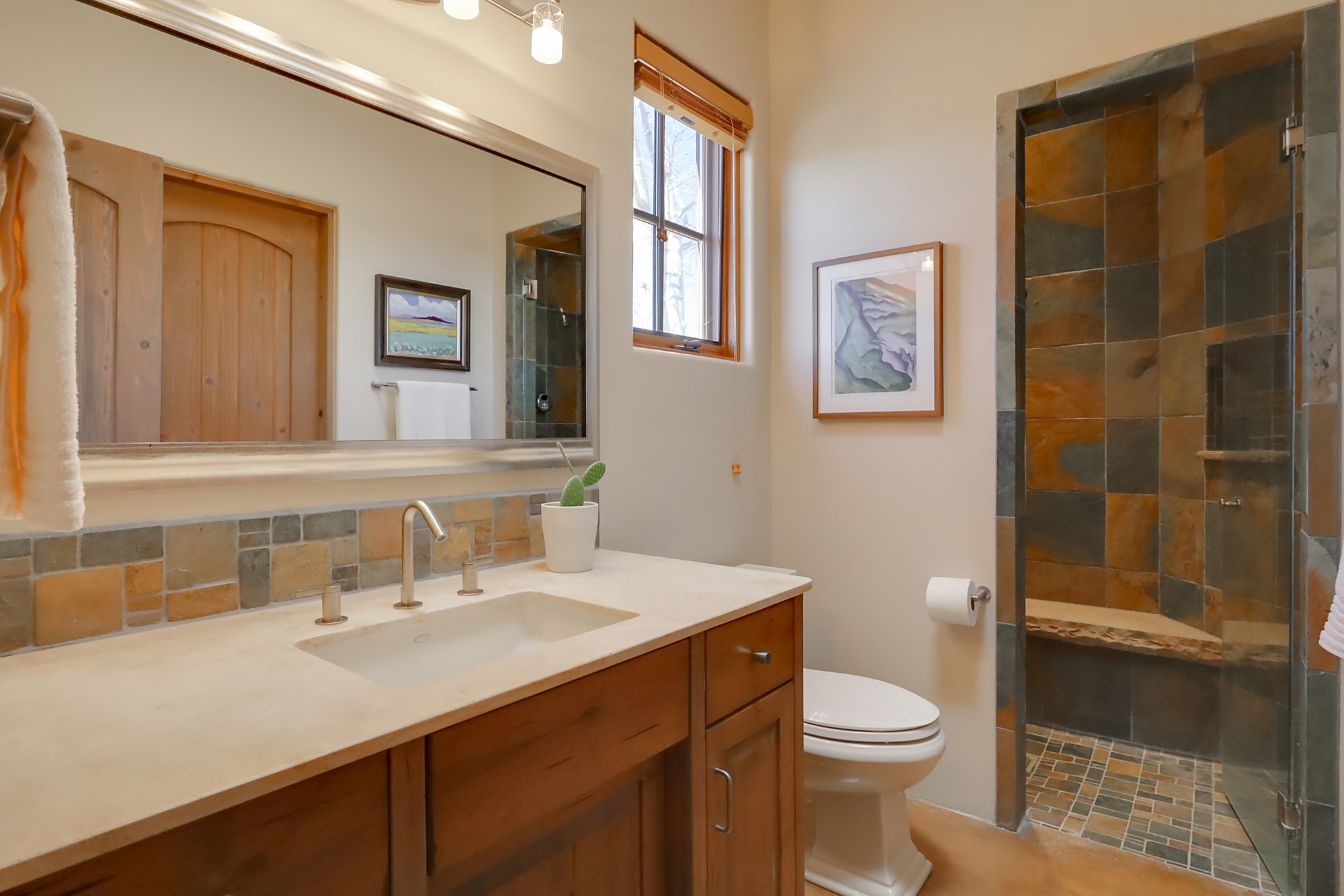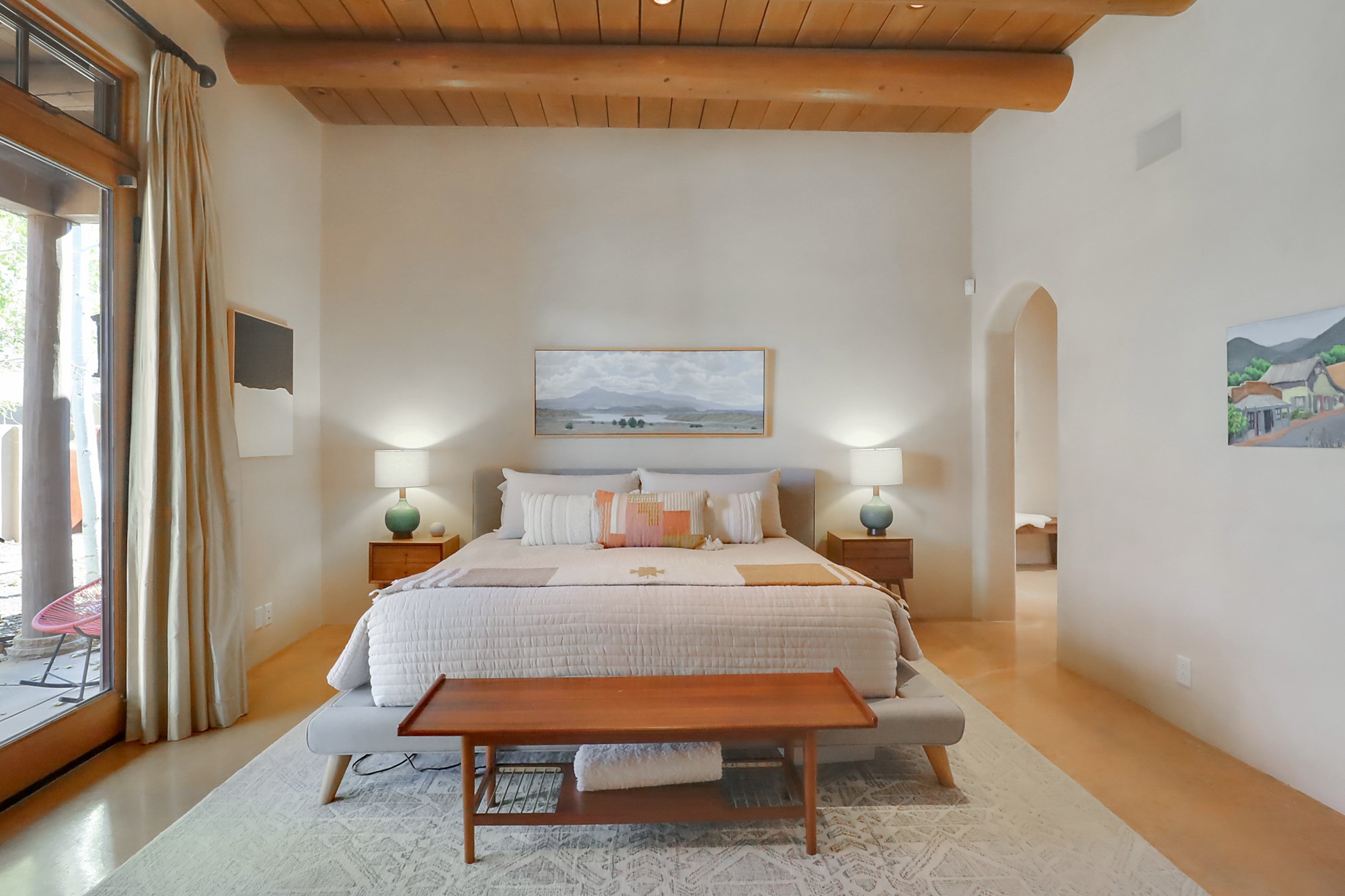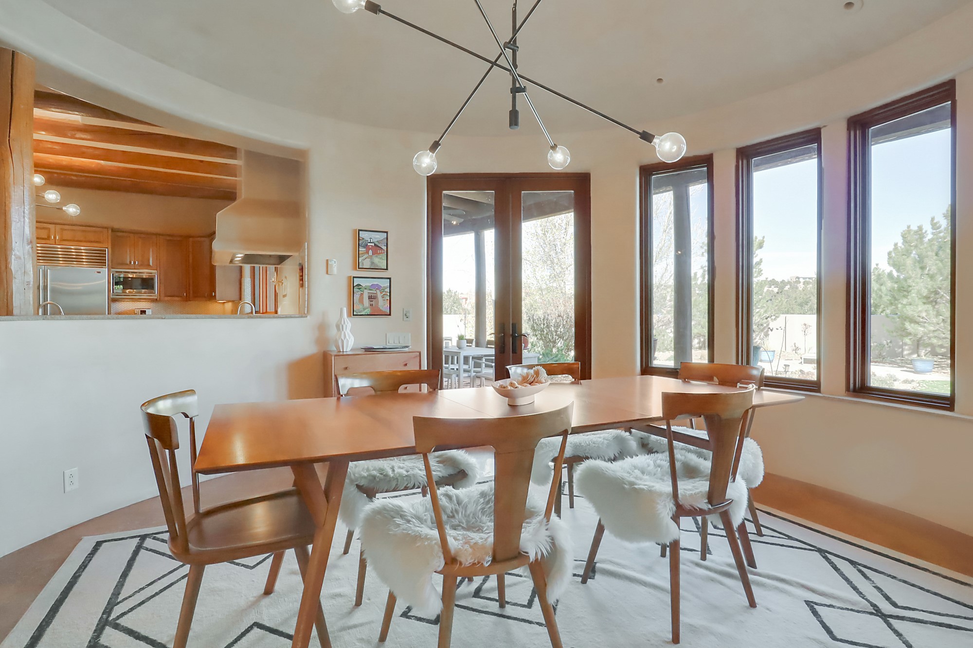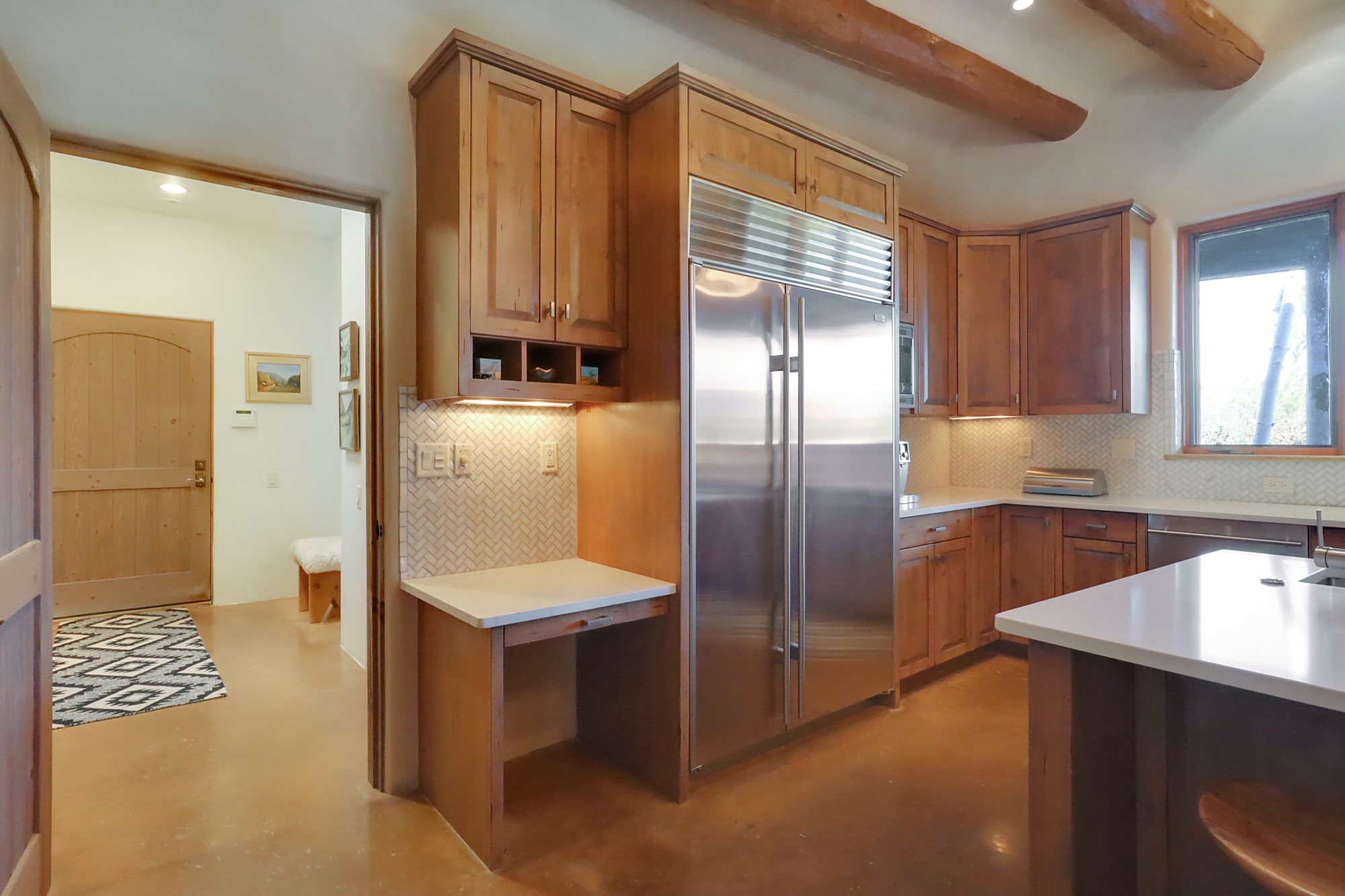 Discover an air of sophistication in this 4-bedroom, 4.5-bathroom residence spanning over 4,000 sq ft, including an executive office and charming attached casita, all nestled on 3 .5 acres in the serene enclave of Tierra Preciosa. Magnificent views of the Sangre de Cristo and Jemez mountains add a touch of splendor throughout the home. A spacious portal beckons you to the backyard oasis with an outdoor kitchen and fireplace that provides an idyllic setting for stylish and comfortable entertaining. Inside, the living room and master bedroom fireplaces, coupled with vigas and beams, infuse the ambiance with warmth and charm. The master suite boasts an adjoining flexible living space with a wet bar, complemented by a spacious master bath and walk-in closet. The generously appointed chef's kitchen, equipped with high-end appliances and a built-in hutch, transforms hosting into a delightful experience. The attached casita includes a full bath and a kiva fireplace to graciously accommodate visitors or serve as an ideal work-at-home space. Throughout the home, a harmonious blend of stone and natural wood textures enhances the overall design, creating an aesthetic of timeless luxury with modern features. Practical amenities abound, including a three-car heated garage, spacious closets, lighted niches, a well-equipped laundry room with plenty of storage and a sink, a walk-in pantry, ensuite bathrooms in every bedroom, integrated stereo speakers throughout. Radiant in-floor heating and central A/C provide year-round comfort. Notably, there are no HOA dues, and road maintenance is handled by a dedicated REUMA board.