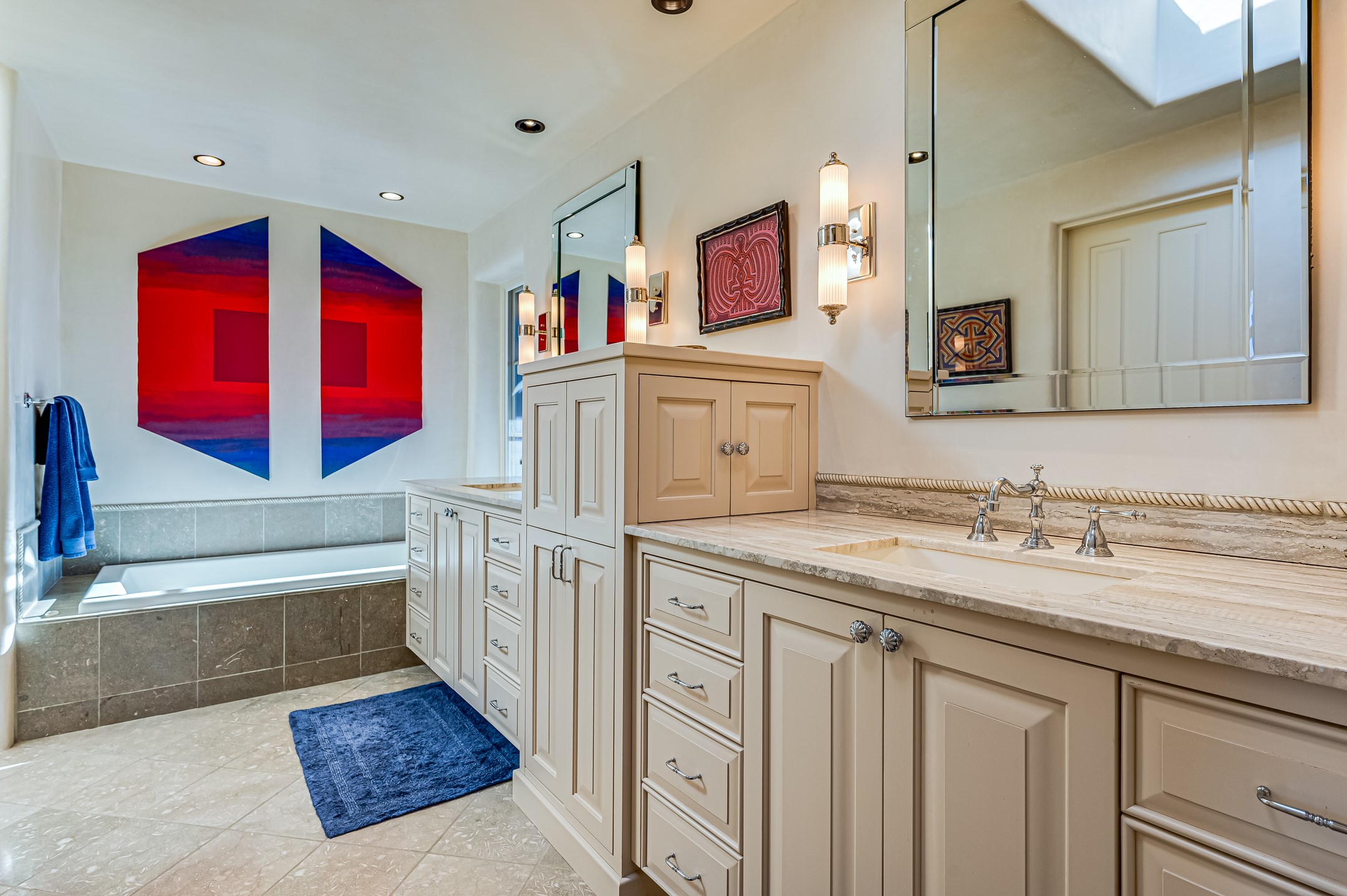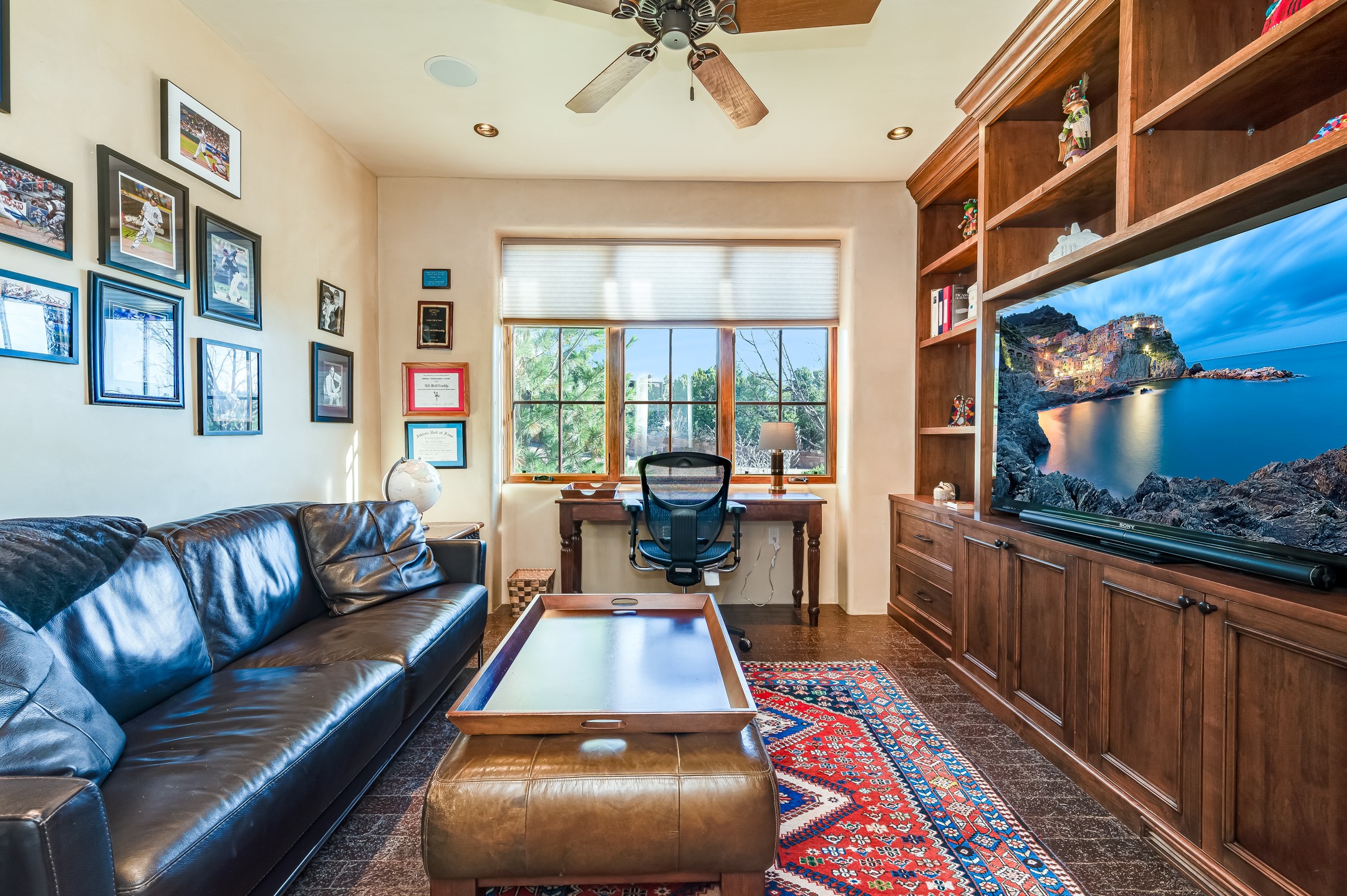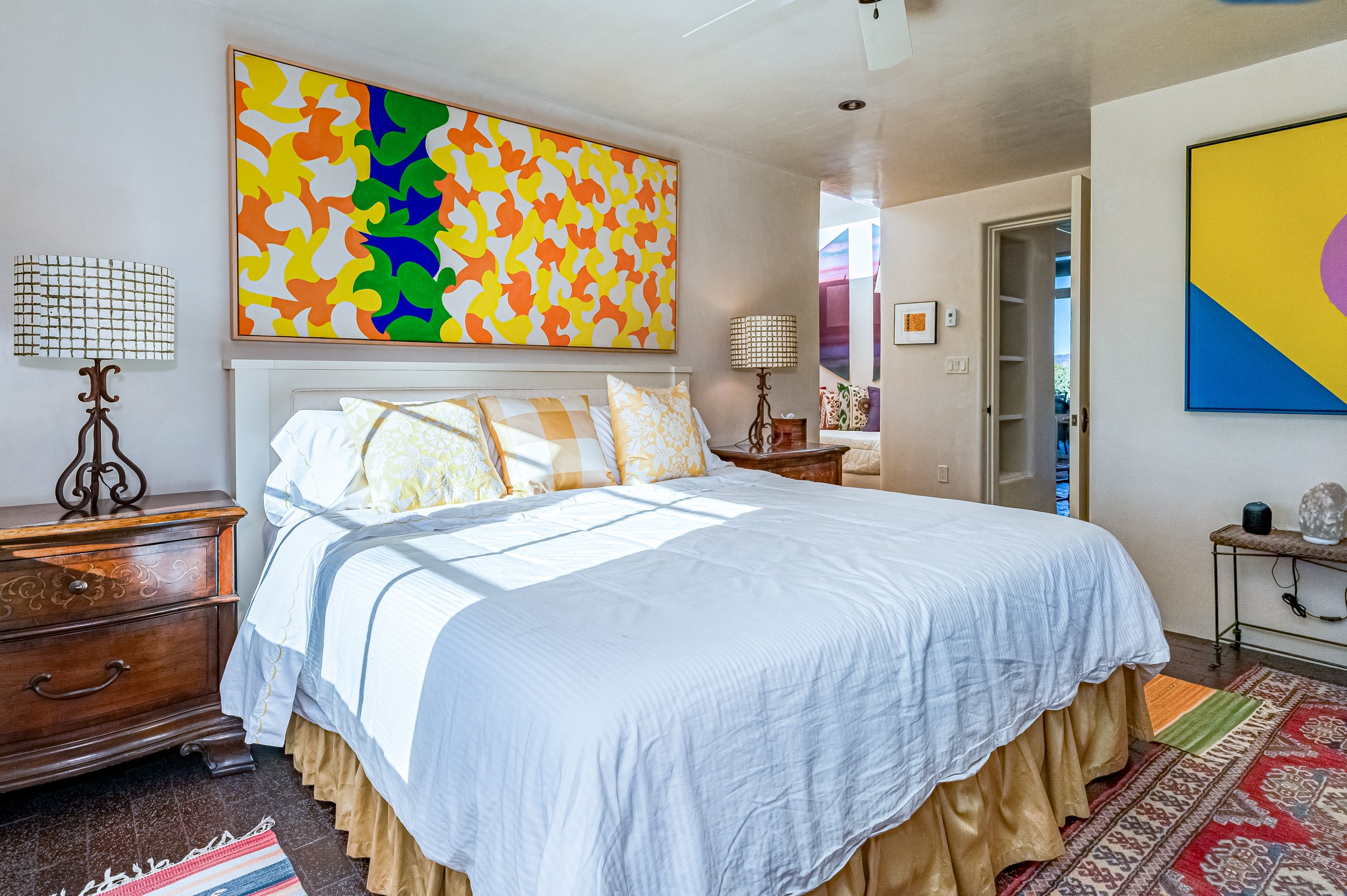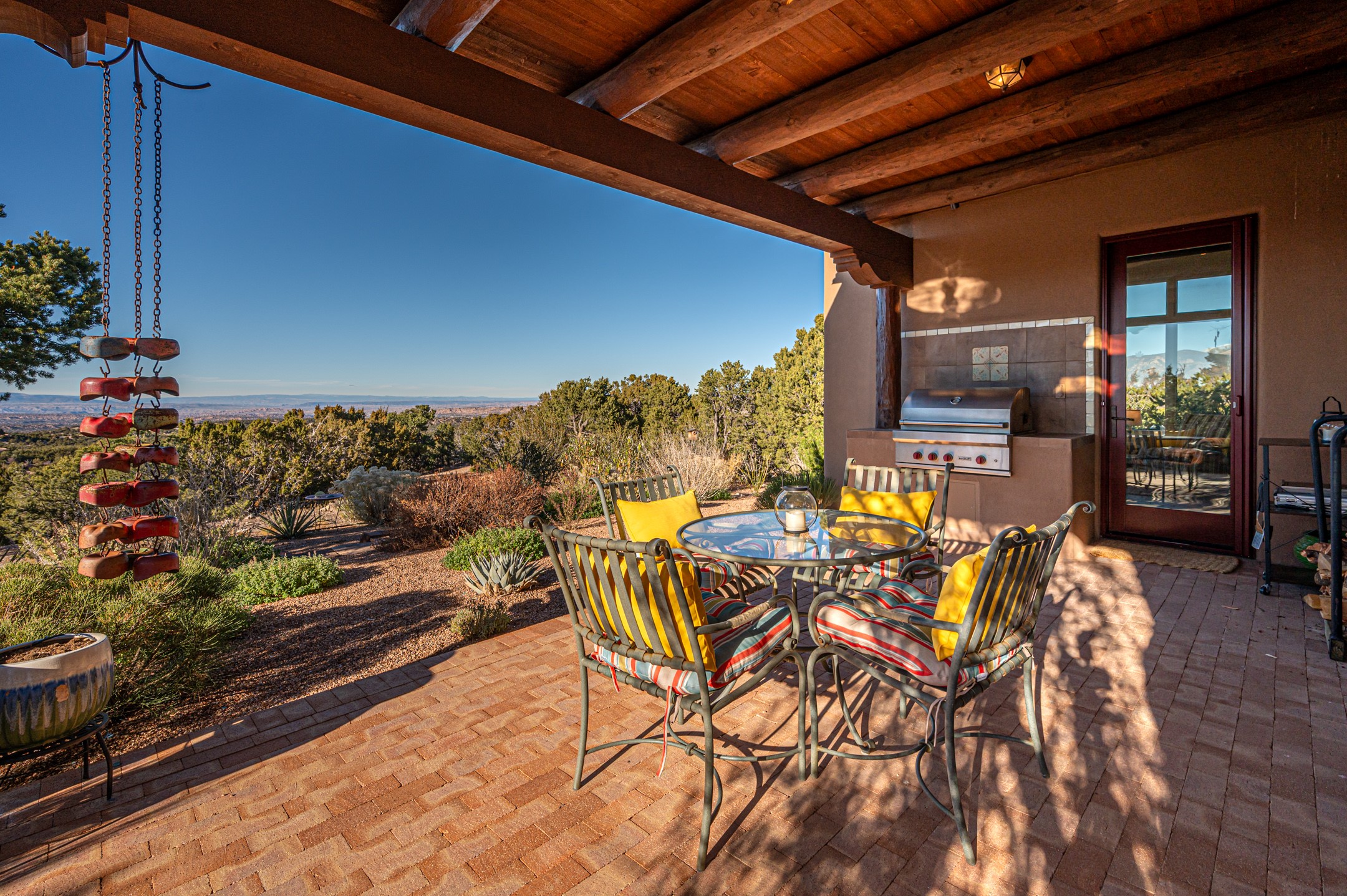Extraordinary single-level home sited on 6.3 acres off Tano Road offers unobstructed views of the Barrancas, Sangres, and Jemez mountains. Perched on a knoll and at the end of a private drive, a short 8 minutes from the Plaza, this singular property features a main house of +/- 2850sqft with an attached oversize 2-car garage, a 2-car carport, and shed/workshop. Originally built in 1981, the Dave Gibbons design was masterfully renovated in 2011 by Sharon Woods to seamlessly marry Southwestern and soft- contemporary elements in a grand, light-filled, open-concept living space. The refined aesthetic showcases 14-foot high coved ceilings, diamond plaster walls, museum-quality lighting, and endless walls of windows, all grounded by brick floors, fireplaces, and solid custom cabinetry. The chef's kitchen features Wolf and SubZero appliances, stone countertops, and walk-in pantry. Taking a cue from its celestial name, the Polaris home offers deep portals facing each cardinal direction for uninterrupted views of the spectacular night sky, high desert terrain, and jaw-dropping vistas. Timeless architecture, enchanting views, manicured gardens, and a serene setting come together in a one-of-a-kind offering that will provide comfort and tranquility for years to come. This listing includes a separately deeded 3-acre lot (MLS 202341954). The home on 6.3 acres can be purchased as MLS 202341949.