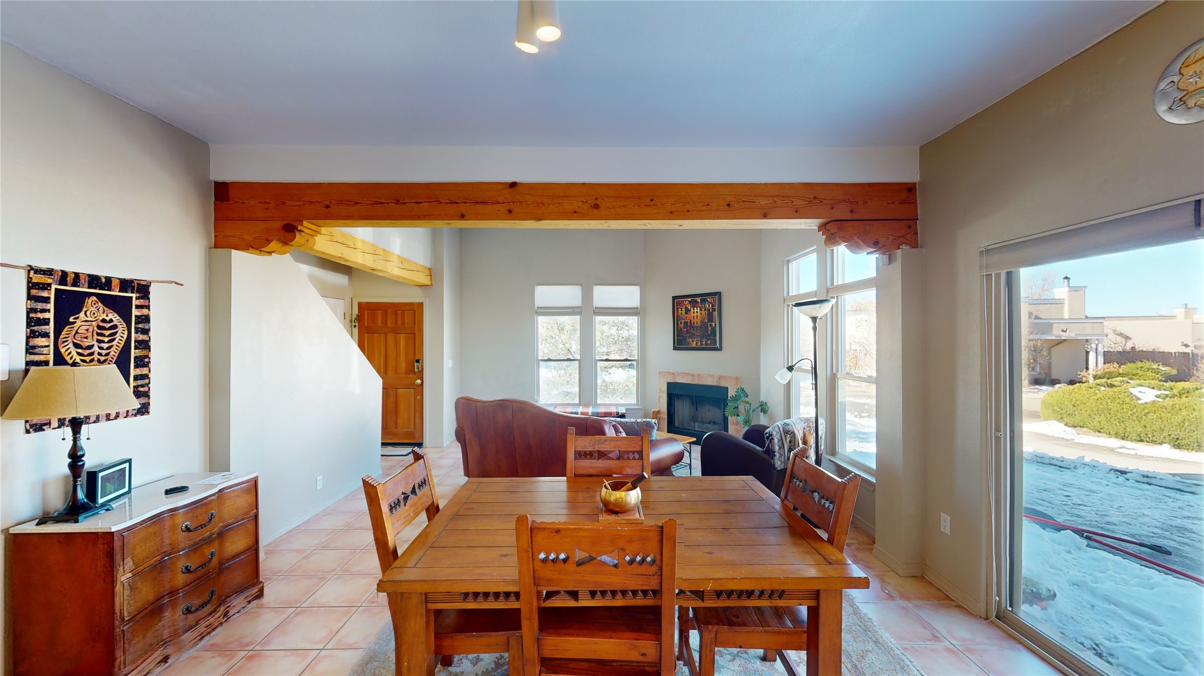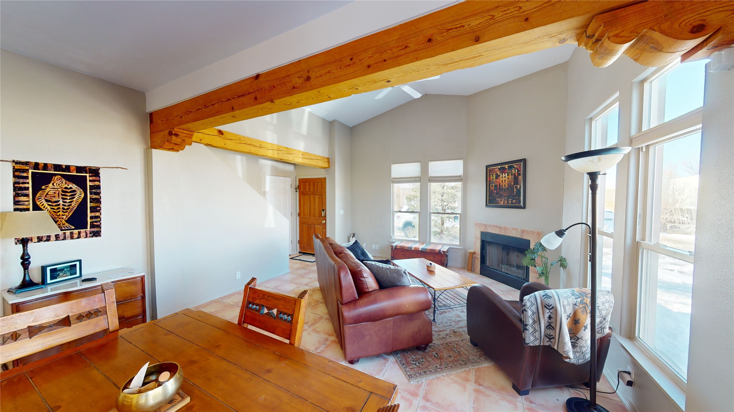 Explore the enchantment of this sought-after Nava Ade gem! Immerse yourself in the allure of this delightful home, adorned with lofty ceilings, expansive windows, and an abundance of natural light that crafts a luminous and spacious atmosphere. Boasting three bedrooms and two full bathrooms, this residence showcases terra-cotta ceramic tile, a cozy knotty pine kitchen, and an airy living room anchored by a captivating wood-burning fireplace. The secluded backyard unveils a high-walled garden, providing a private outdoor sanctuary, while a gated breezeway seamlessly connects to the garage. Indulge in the amenities of the exclusive community clubhouse and pool. Strategically positioned near dining, shopping, and major highways, this residence masterfully combines comfort and accessibility, creating an ideal haven for a variety of lifestyles.