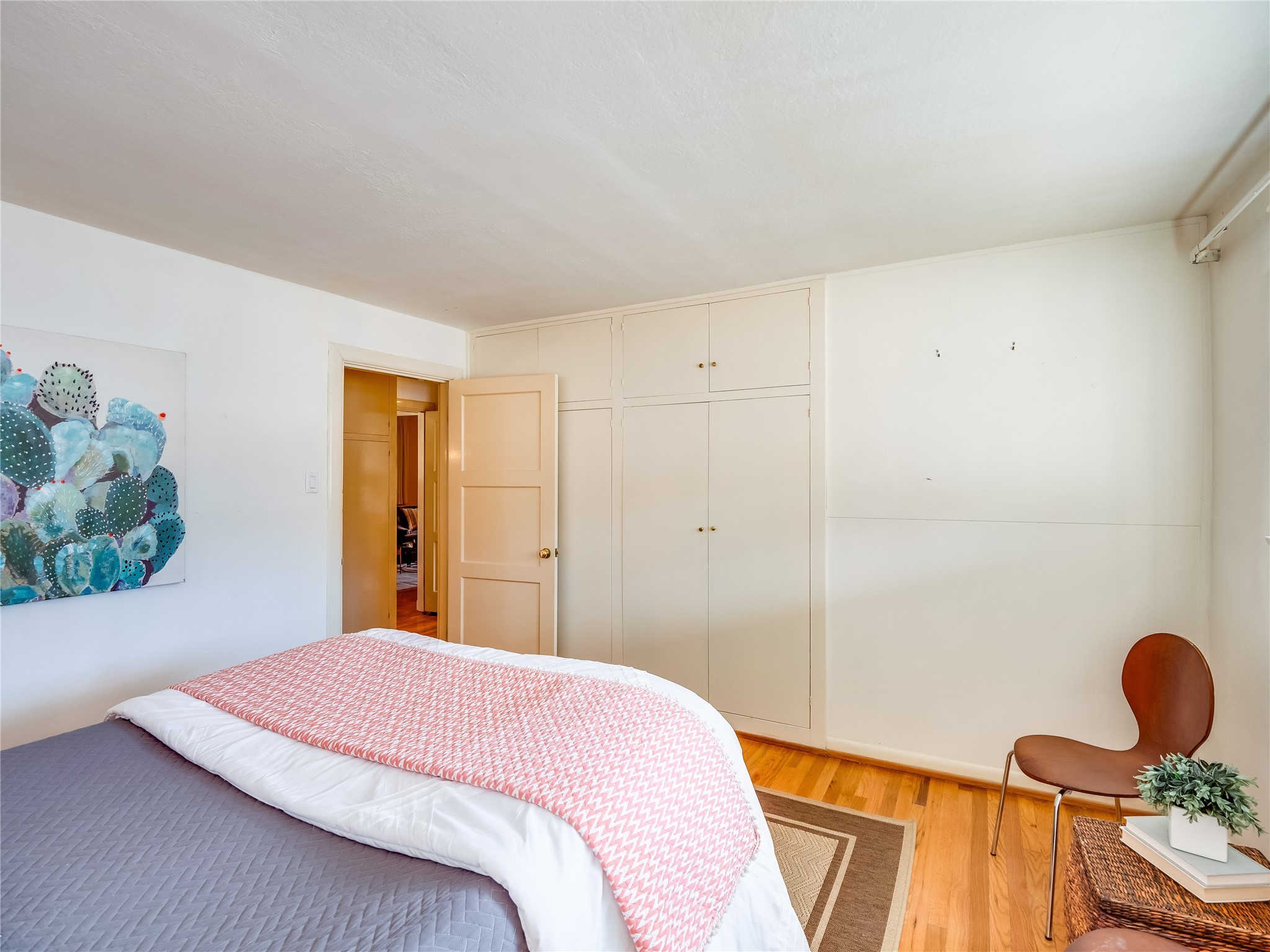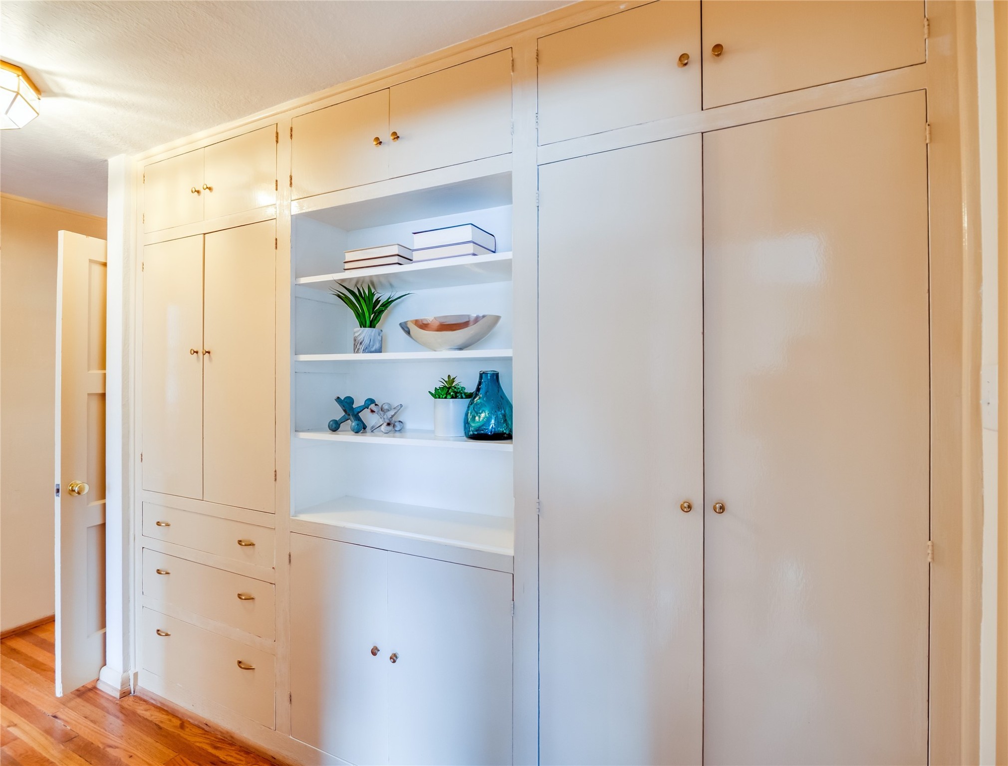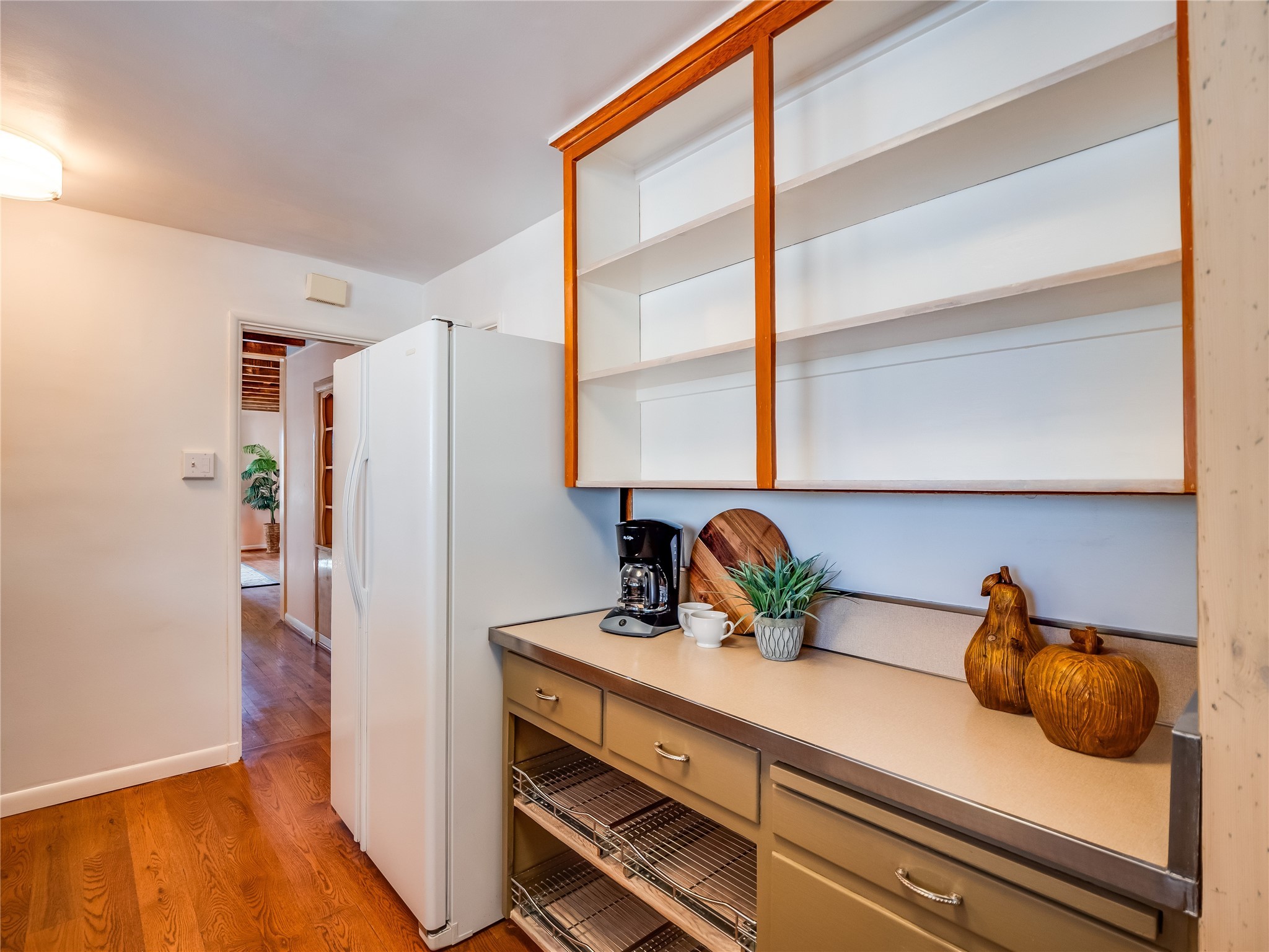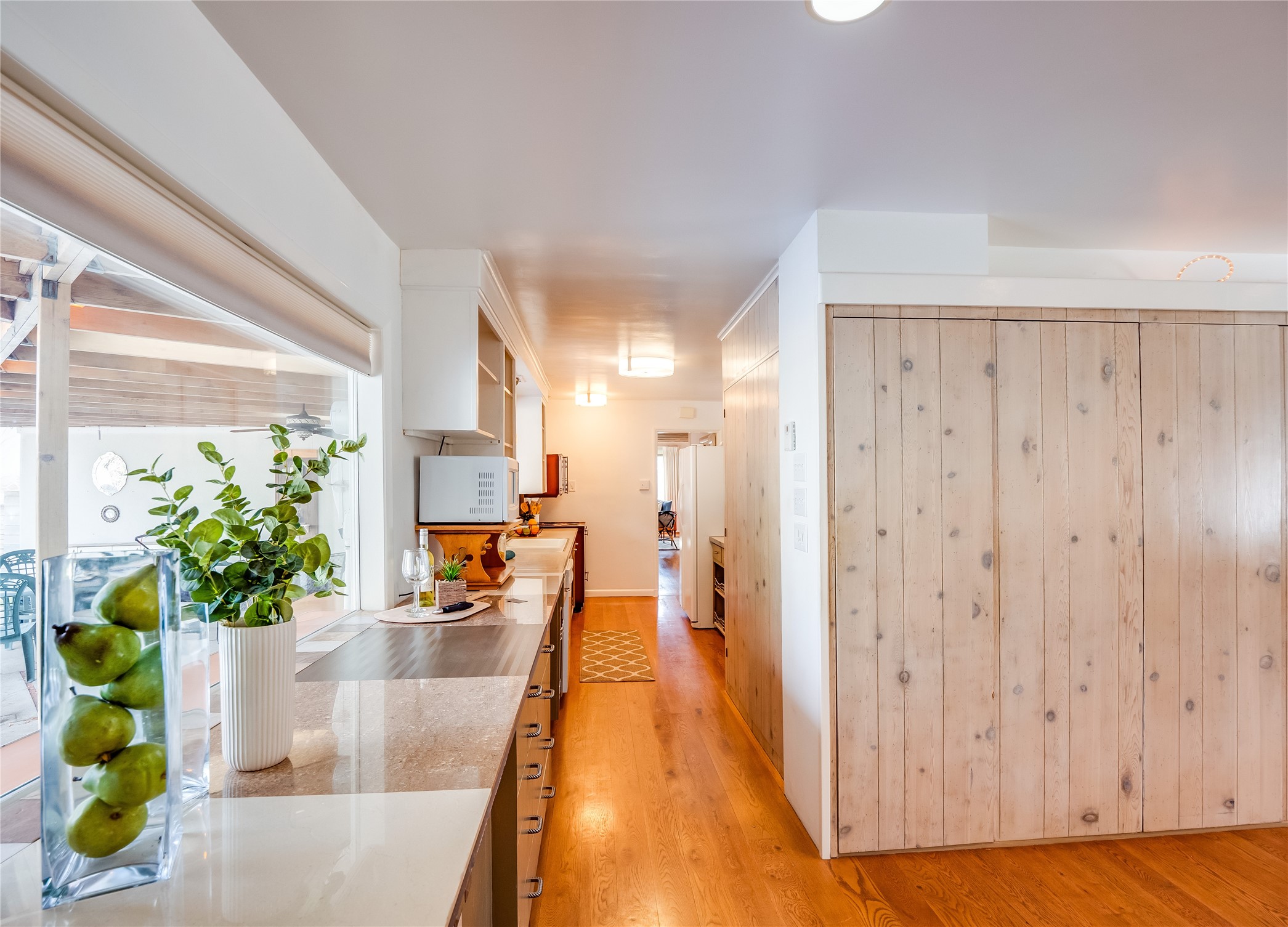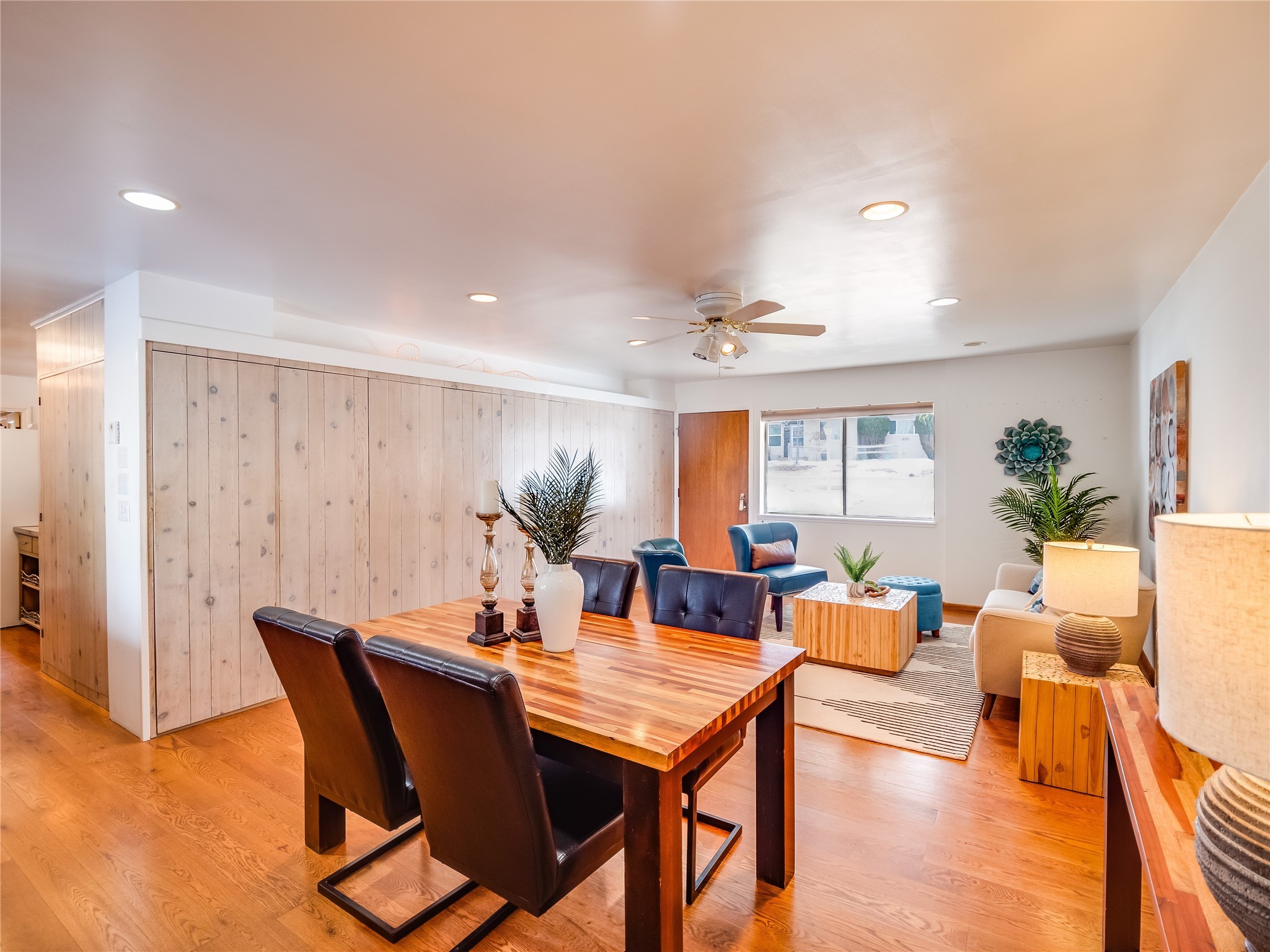 Welcome to this charming single-story corner lot home located in the West area, where classic elegance meets modern comfort! Beautiful front lawn with mature landscaping wraps around to the side yard and leads you to the front entrance. As you step inside, the warm ambiance of the wood floors invites you to explore further. The spacious living area features stunning wood coffered ceilings that add depth and character to the space. The centerpiece is a wood burning fireplace that just beckons you to unwind and relax and a cozy alcove with built-in shelves makes for the perfect place to curl up and read a book. The galley-style kitchen has ample Countertop space for meal preparation, cooking, and hosting. The open-faced shelving creates an airy and inviting atmosphere, providing both storage and an opportunity to showcase your favorite kitchenware or decorative pieces. Connected is the bright expansive family room and dining space. A standout feature in this space is a paneled wall that conceals hidden built-in shelves, a clever addition that combines sophistication with practicality. Large windows and strategically placed doors provide easy access to the two-car carport and the backyard patio. Bedroom Hallway with built in storage houses three nicely sized bedrooms with built in storage and a full guest bath with tile flooring and single sink vanity. From the Living Room there's a separate private hallway with access to the backyard and the large Primary En-Suite with laundry closet. A full bath with tile floors and shower/tub surround, and single sink vanity. A large fenced in backyard with grass, mature landscaping and trees create a beautiful private oasis. A covered patio adorned with skylights ensures the patio remains bright and inviting even during overcast days, or Gather around the built-in brick fireplace for stories and s'mores on cool evenings. Don't miss out in making this delightful home yours, book your tour today!