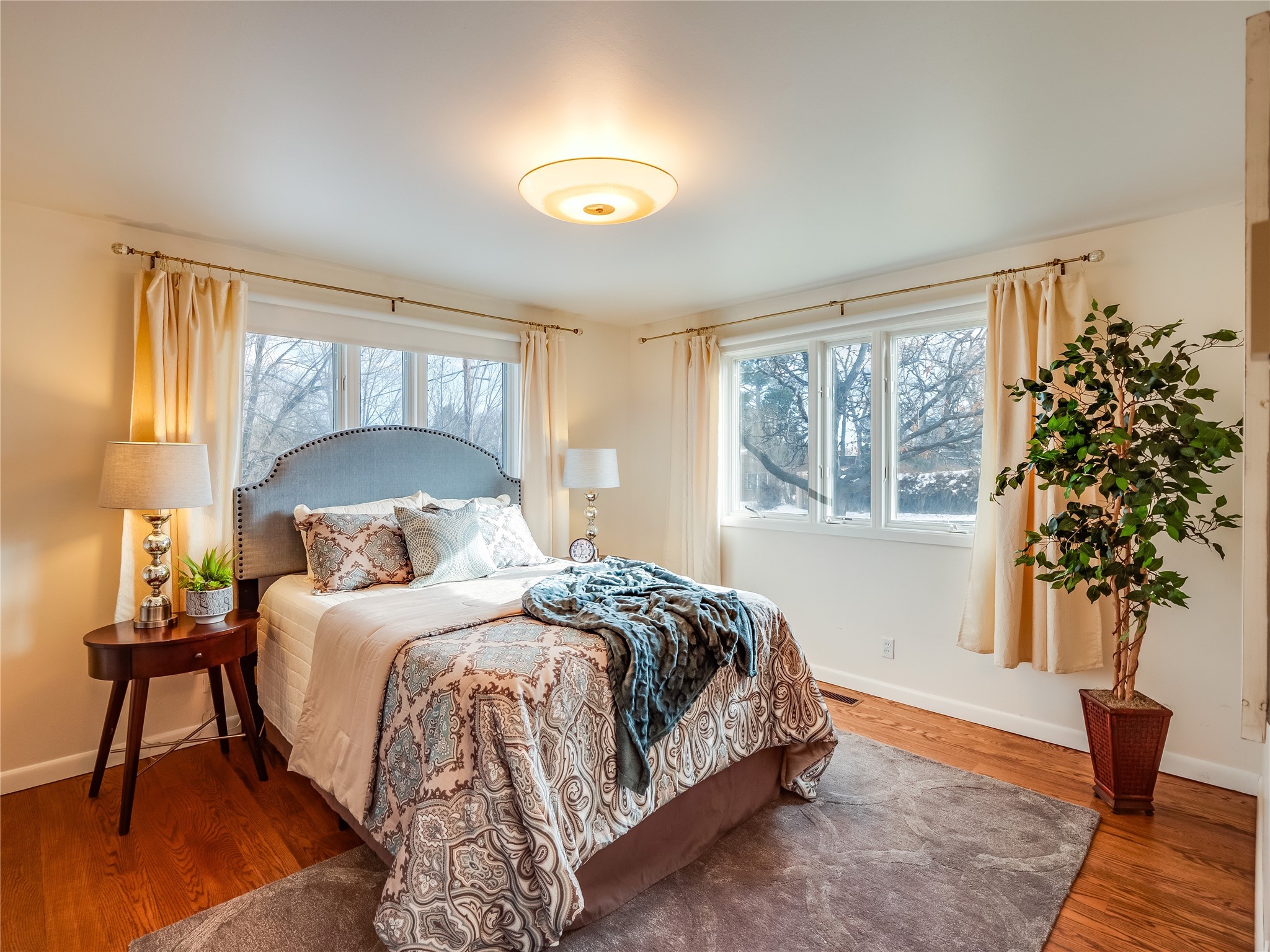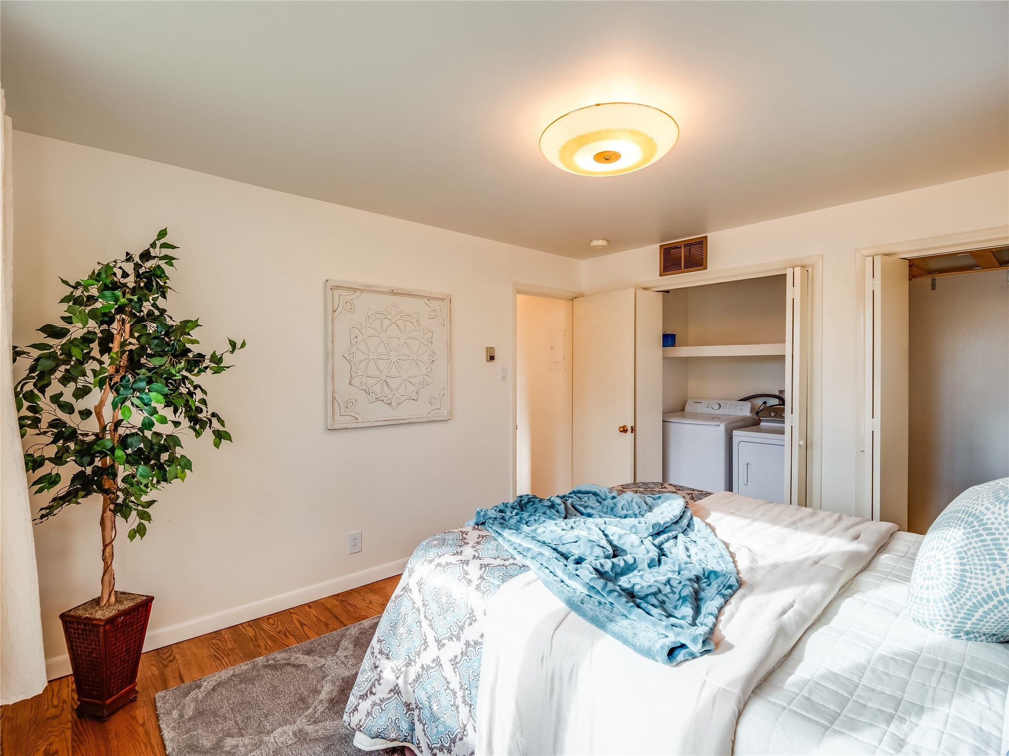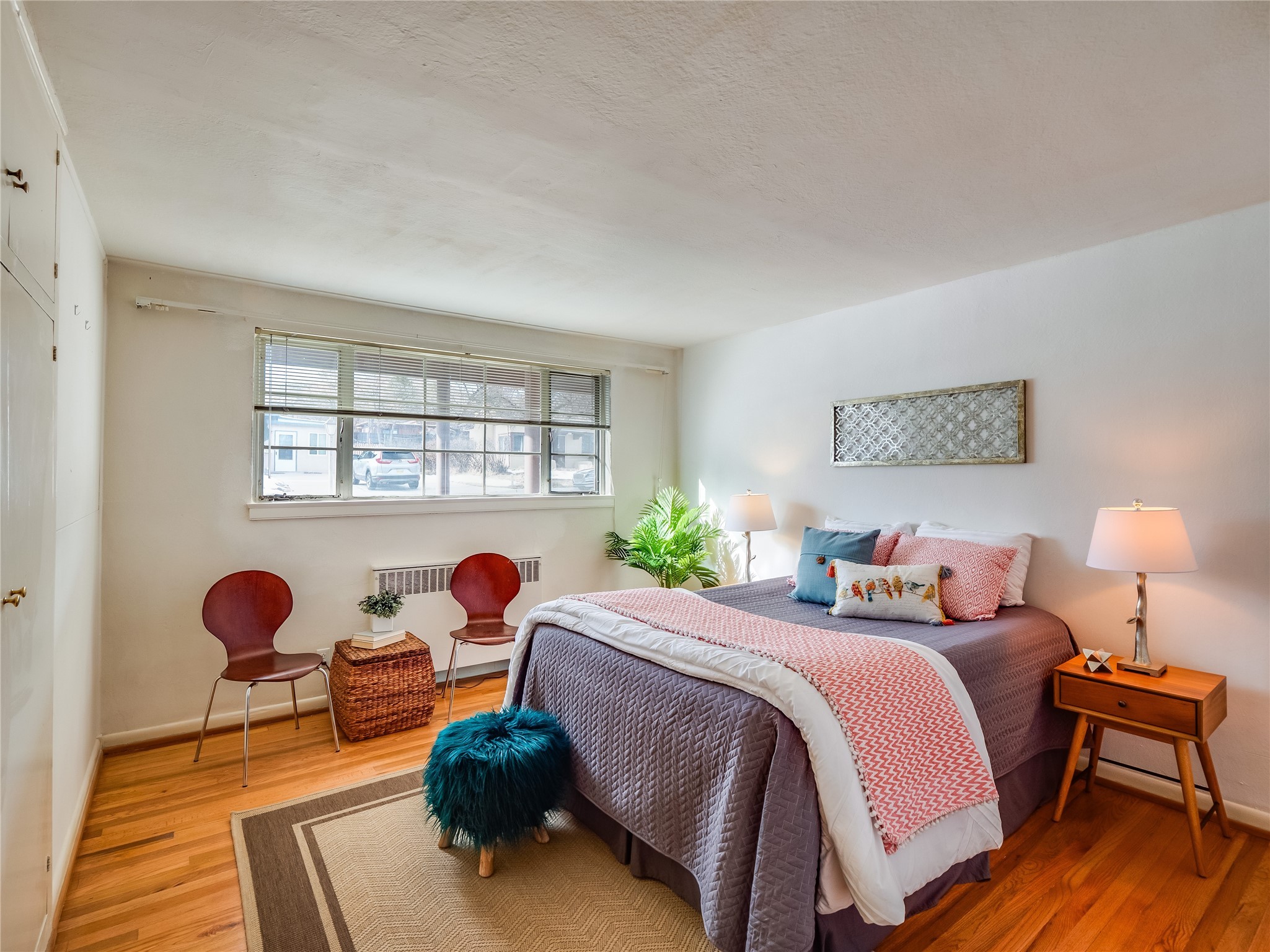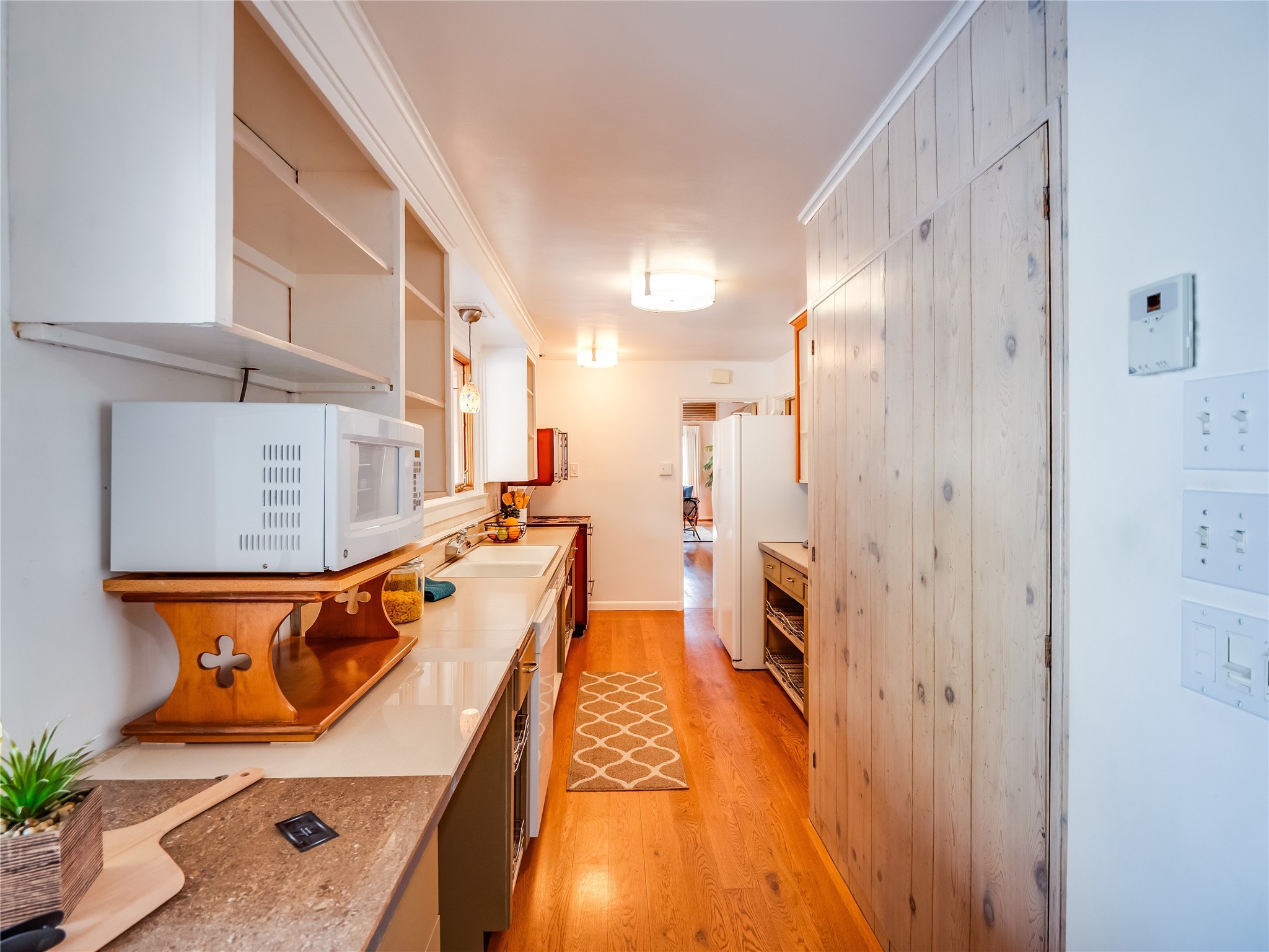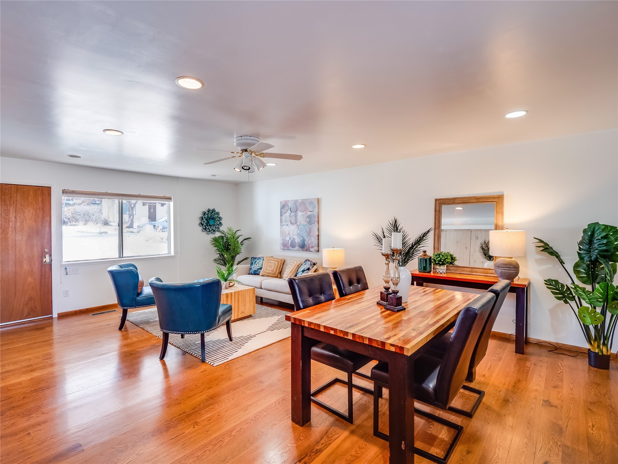 Welcome to this charming single-story corner lot home located in the West area, where classic elegance meets modern comfort! Beautiful front lawn with mature landscaping wraps around to the side yard and leads you to the front entrance. As you step inside, the warm ambiance of the wood floors invites you to explore further. The spacious living area features stunning wood coffered ceilings that add depth and character to the space. The centerpiece is a wood burning fireplace that just beckons you to unwind and relax and a cozy alcove with built-in shelves makes for the perfect place to curl up and read a book. The galley-style kitchen has ample Countertop space for meal preparation, cooking, and hosting. The open-faced shelving creates an airy and inviting atmosphere, providing both storage and an opportunity to showcase your favorite kitchenware or decorative pieces. Connected is the bright expansive family room and dining space. A standout feature in this space is a paneled wall that conceals hidden built-in shelves, a clever addition that combines sophistication with practicality. Large windows and strategically placed doors provide easy access to the two-car carport and the backyard patio. Bedroom Hallway with built in storage houses three nicely sized bedrooms with built in storage and a full guest bath with tile flooring and single sink vanity. From the Living Room there's a separate private hallway with access to the backyard and the large Primary En-Suite with laundry closet. A full bath with tile floors and shower/tub surround, and single sink vanity. A large fenced in backyard with grass, mature landscaping and trees create a beautiful private oasis. A covered patio adorned with skylights ensures the patio remains bright and inviting even during overcast days, or Gather around the built-in brick fireplace for stories and s'mores on cool evenings. Don't miss out in making this delightful home yours, book your tour today!