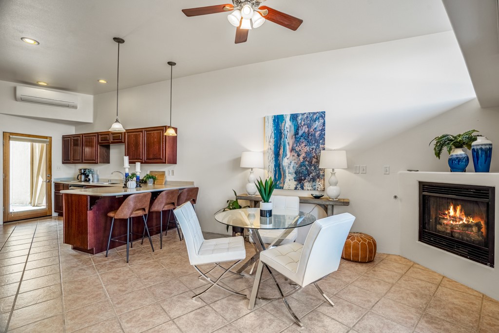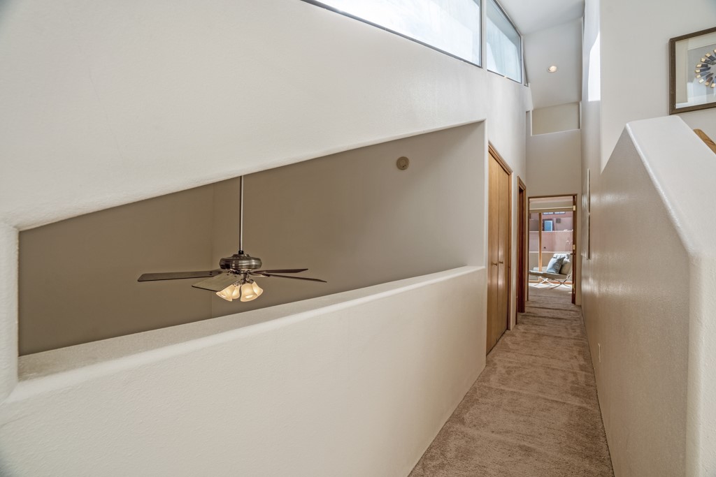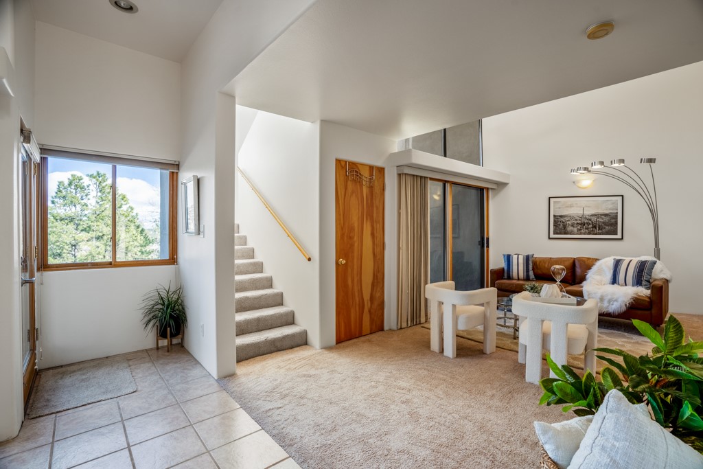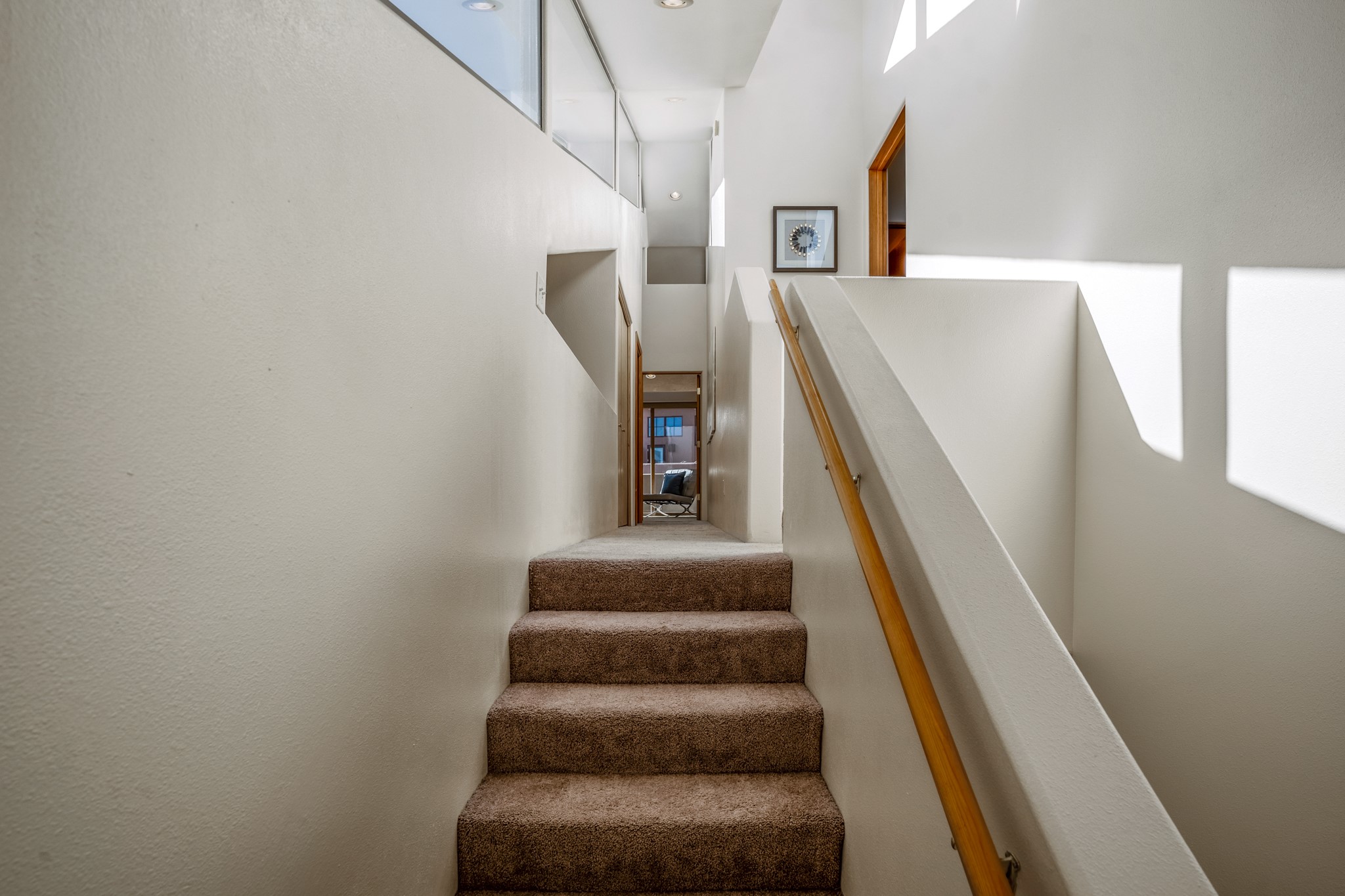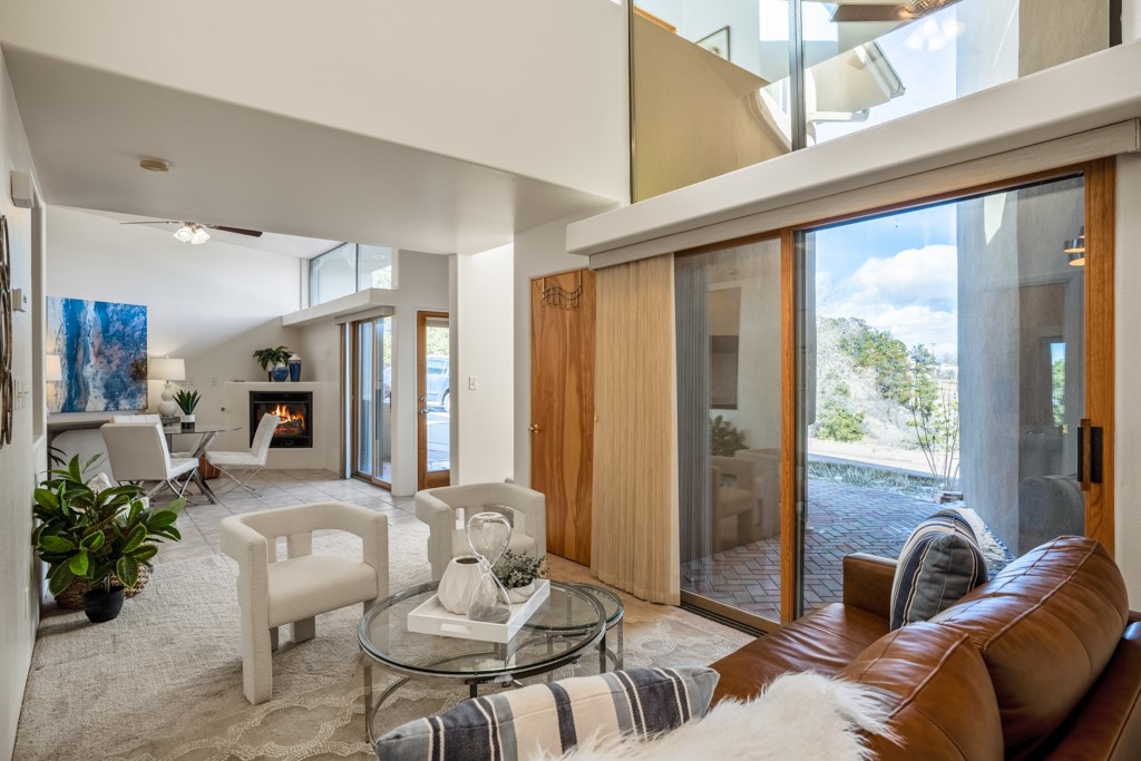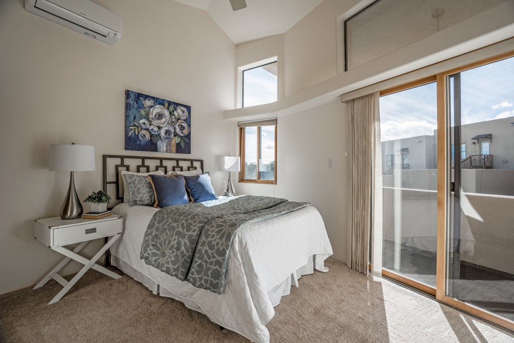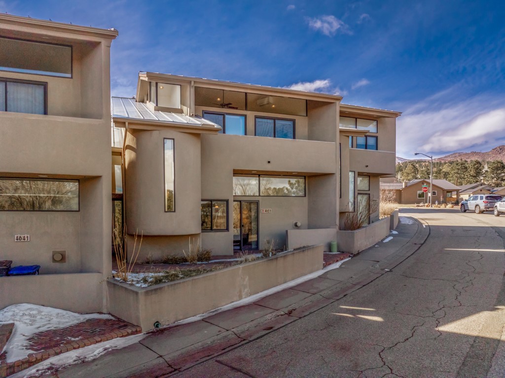 Quemazon Townhouse, Newer Construction, Canyon Views, Great Kitchen, Natural Light, 3 Bed/3 Bath, Brand New Mini-Split HVAC System with 12 Year Warranty, 2 Car Garage, and More! Welcome to 4651 Esperanza! This 2001-built townhouse is now back on the market following the installation of a brand new, whole-house mini-split heating and cooling system with a 12 year warranty! This townhouse overlooks a canyon at the bottom of Quemazon and features great views of the Sangre de Cristos from your balcony. The distinct, angular architecture provides privacy and allows abundant natural lighting to flow throughout the home. The spacious kitchen features solid surface countertops, beautiful cabinetry, stainless steel appliances, a gas range, and barstool seating for socializing with your guests while experiencing the joys of cooking. The living room features a lofted ceiling and a sliding glass door for entertaining on your patio. Upstairs, your new primary suite awaits, featuring a balcony facing the Sangre de Cristos, an en suite bathroom with dual vanities and a shower with a glass enclosure. Two guest bedrooms, a full bathroom, and laundry round out the upper floor. A two-car garage and a metal roof complete the package. The sellers plan to review offers on Tuesday, February 20, so schedule your showing today before this one is gone!