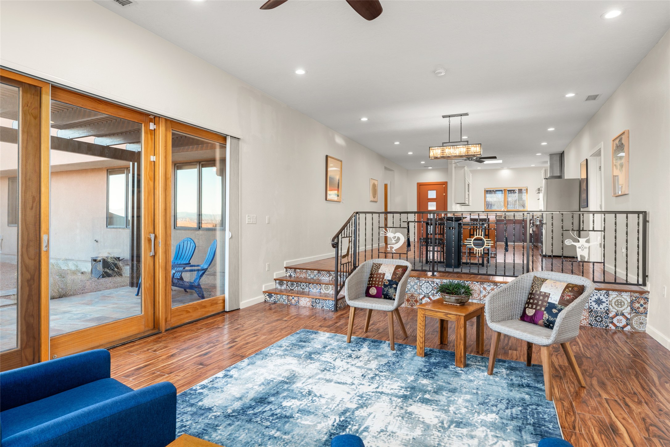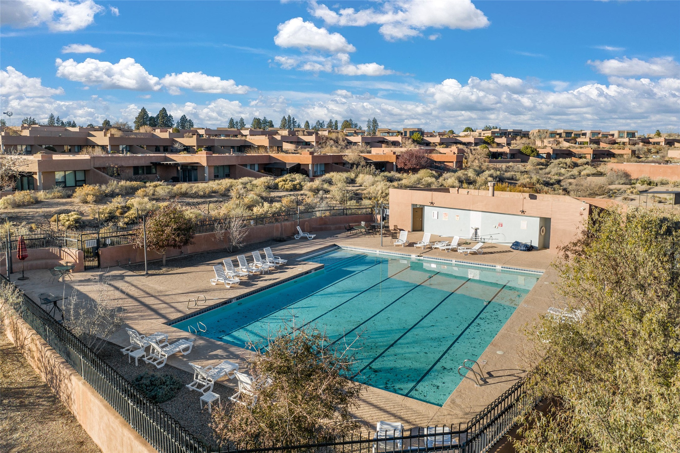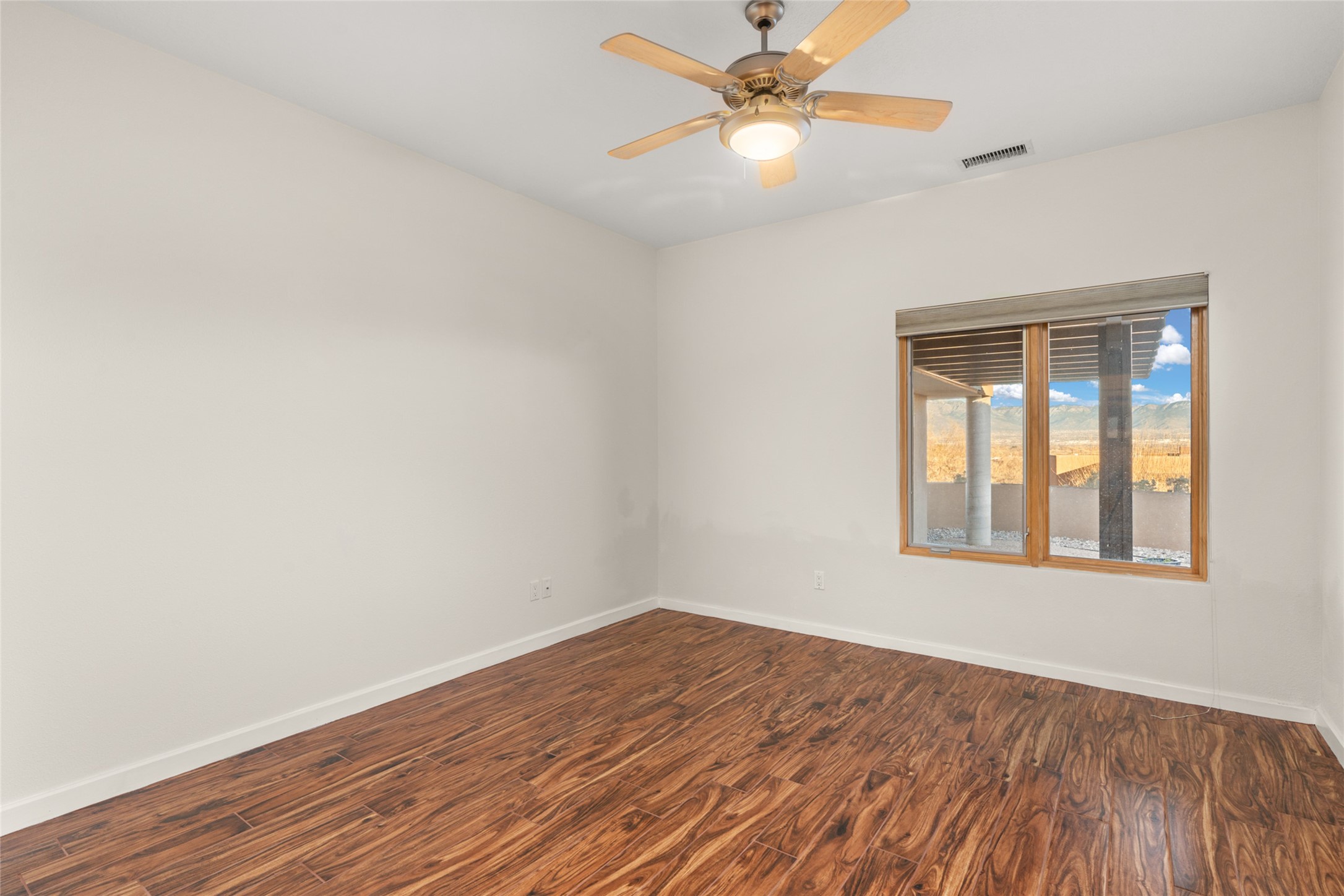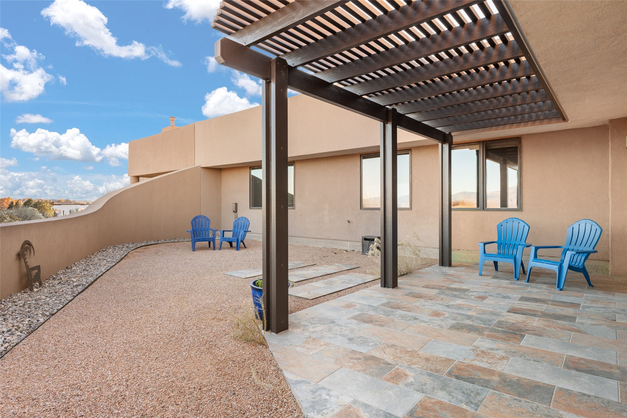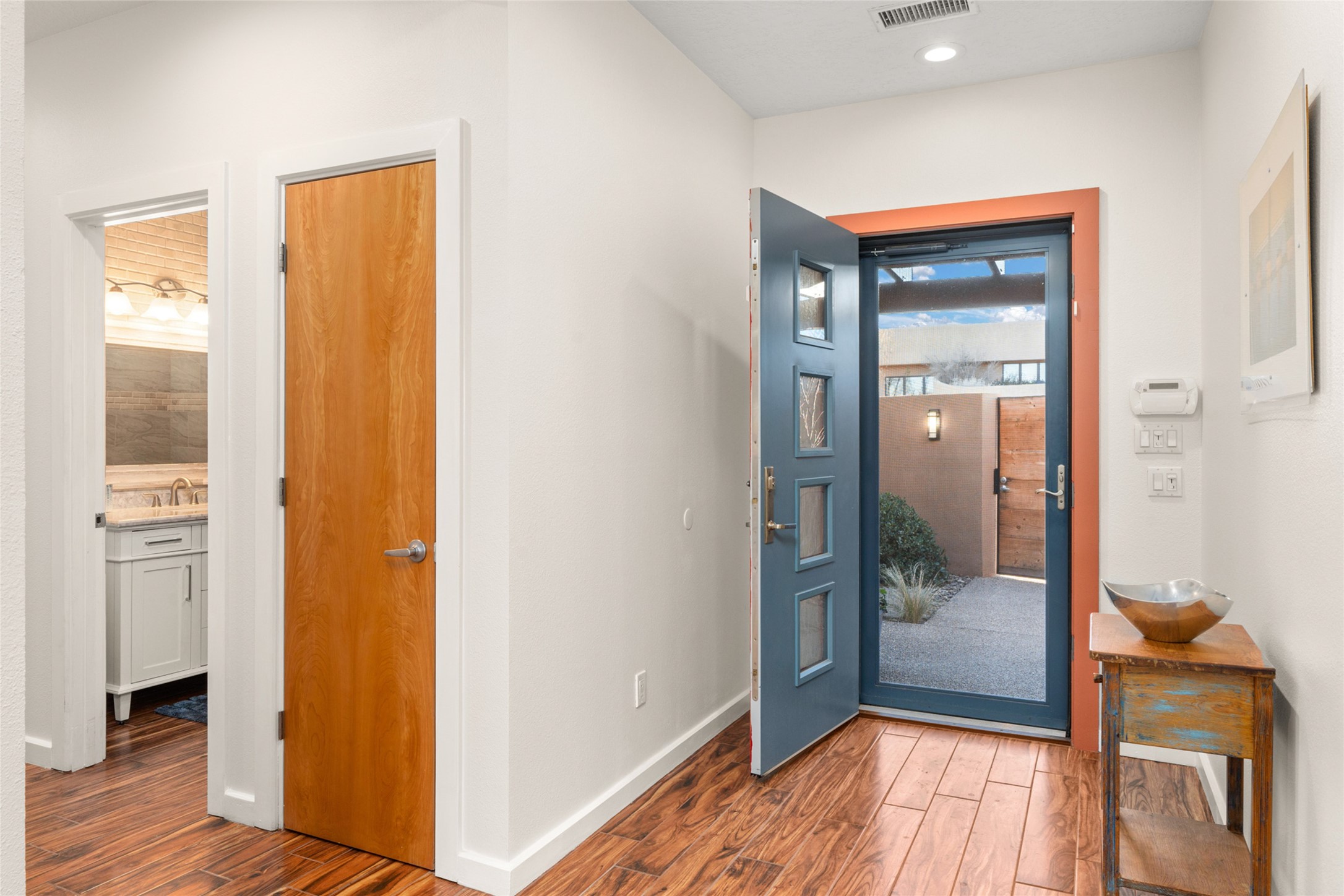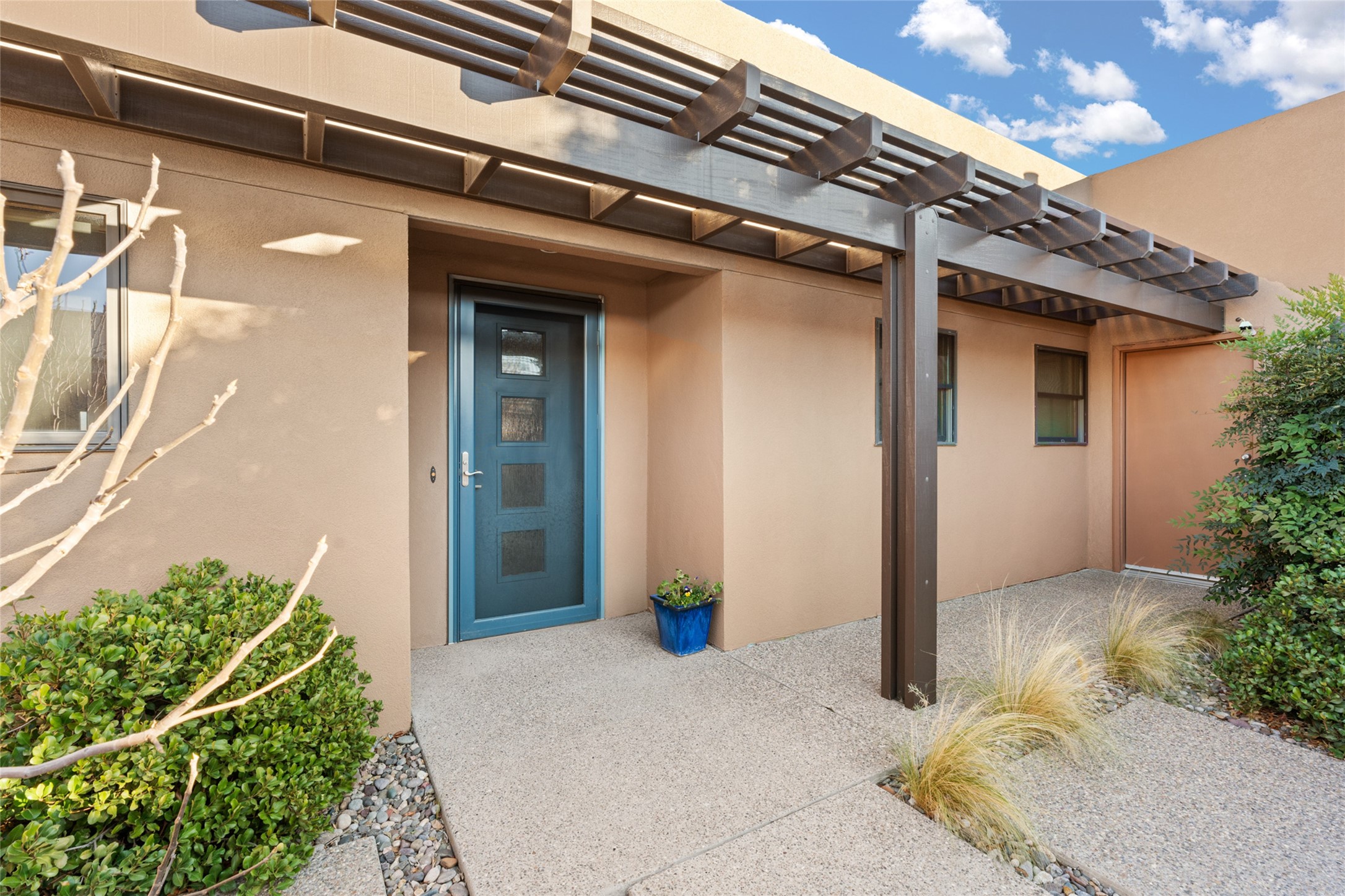 Fabulous townhome with unbelievable views of the Sandia mountains & bosque trees! This spacious 3 or 4 bedroom, 3 bath, 2 car garage home is beautifully designed & situated in a convenient gated community, developed by Ray Graham. Courtyard entry w/ a producing fig tree. Enter into the foyer that invites the open yet defined living areas starting with the cooks kitchen w/ stainless steel appliances, granite countertops, a gas cook top, fan, electric wall stove w/convection oven/ microwave, refrigerator & a moveable island. A large dining room, which transitions w/ a step down to the greatroom w/gas fireplace, lots of wall space for art plus more views! Patio doors opens to the east courtyard w/views & electric for a hot tub. The 4th bedroom has a 1/2 bath, it is perfect for a studio, study, guest or TV room. Primary bedroom is large enough for a sitting area, boasts the mountain views, large walk in closet, & the bath features a beautiful wood accent bench & a steam shower. Two other generous BR's w/fans, large closets, views, & they share a hall bath w/walk in shower that accomodates a wheel chair or walker, if need be. Doors are 36 inches. The laundry/service room is great for storage, dog area, & sink. Accesss to oversize garage that also accesses the front courtyard. Clean design. This is an end unit which offers more privacy, parking, especially for your guests. Over 2400 square feet & built in 2004. All the floors are ceramic tile throughout! There is a wonderful community pool! Easy access to all major river crossings, downtown, North Valley, Los Ranchos de Albuquerque, Los Poblanos, Bosque school, & St. Pius X High. Walking trails, bosque access, & conveniences for shopping is across Coors near Montano.