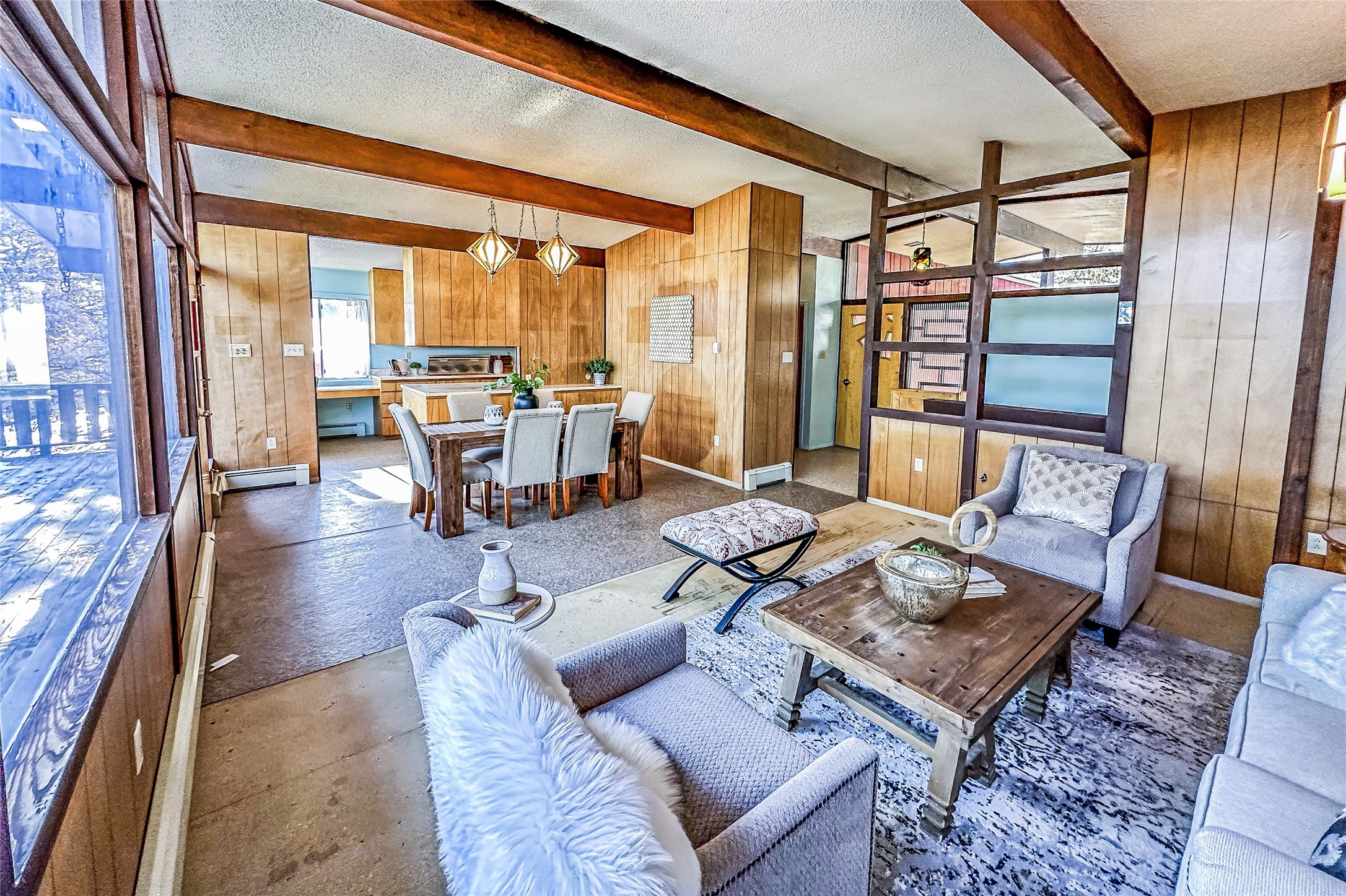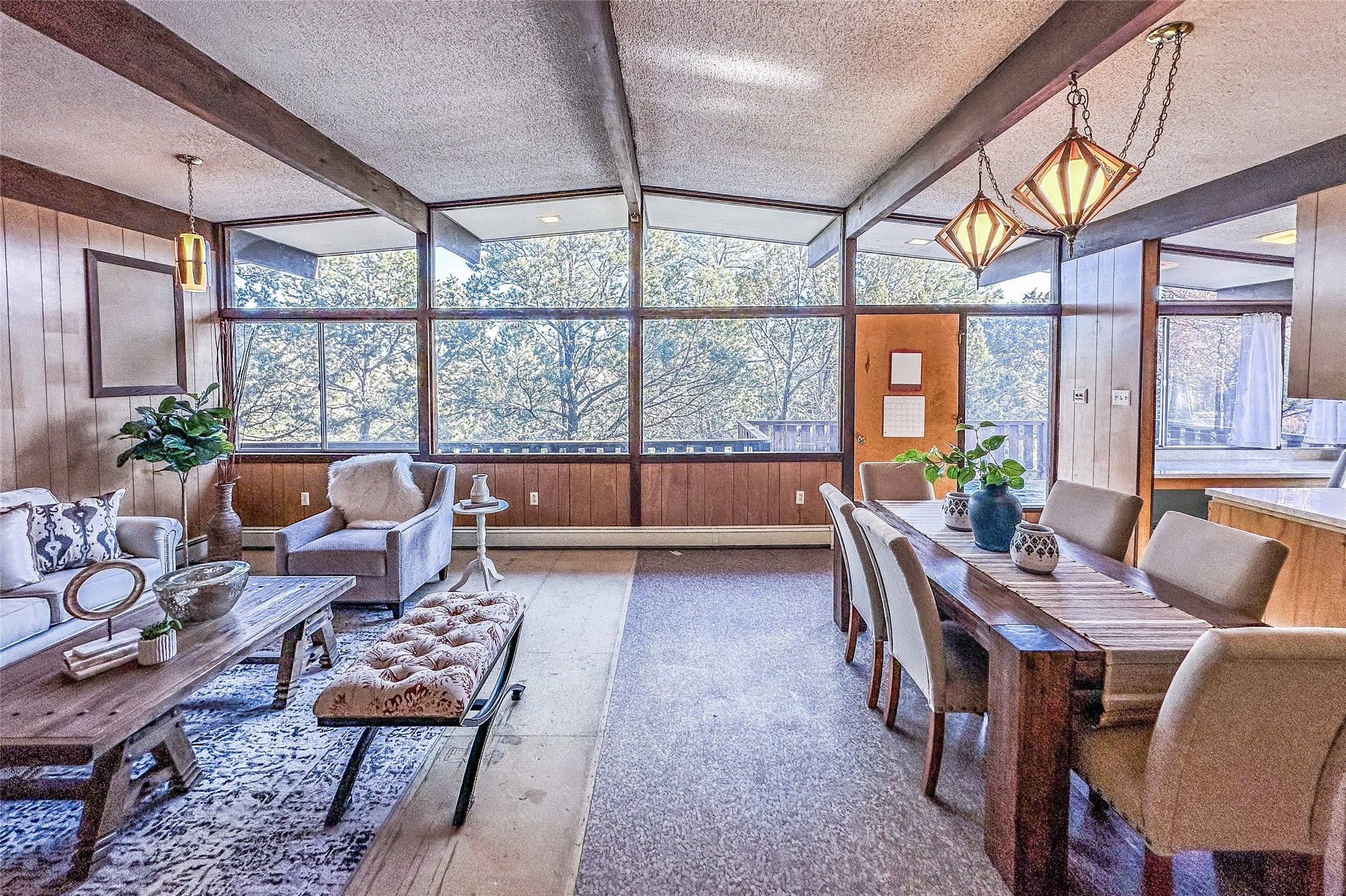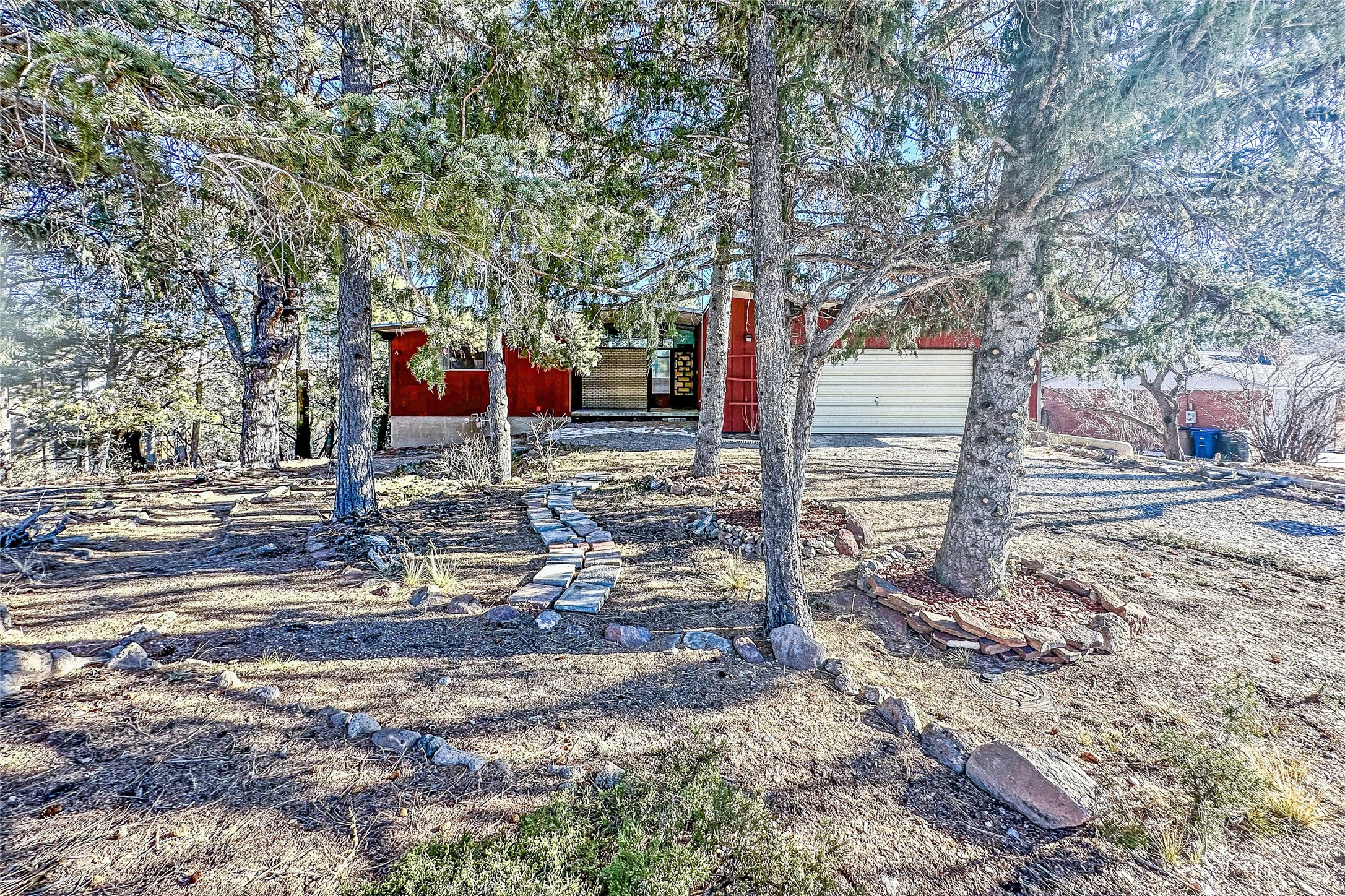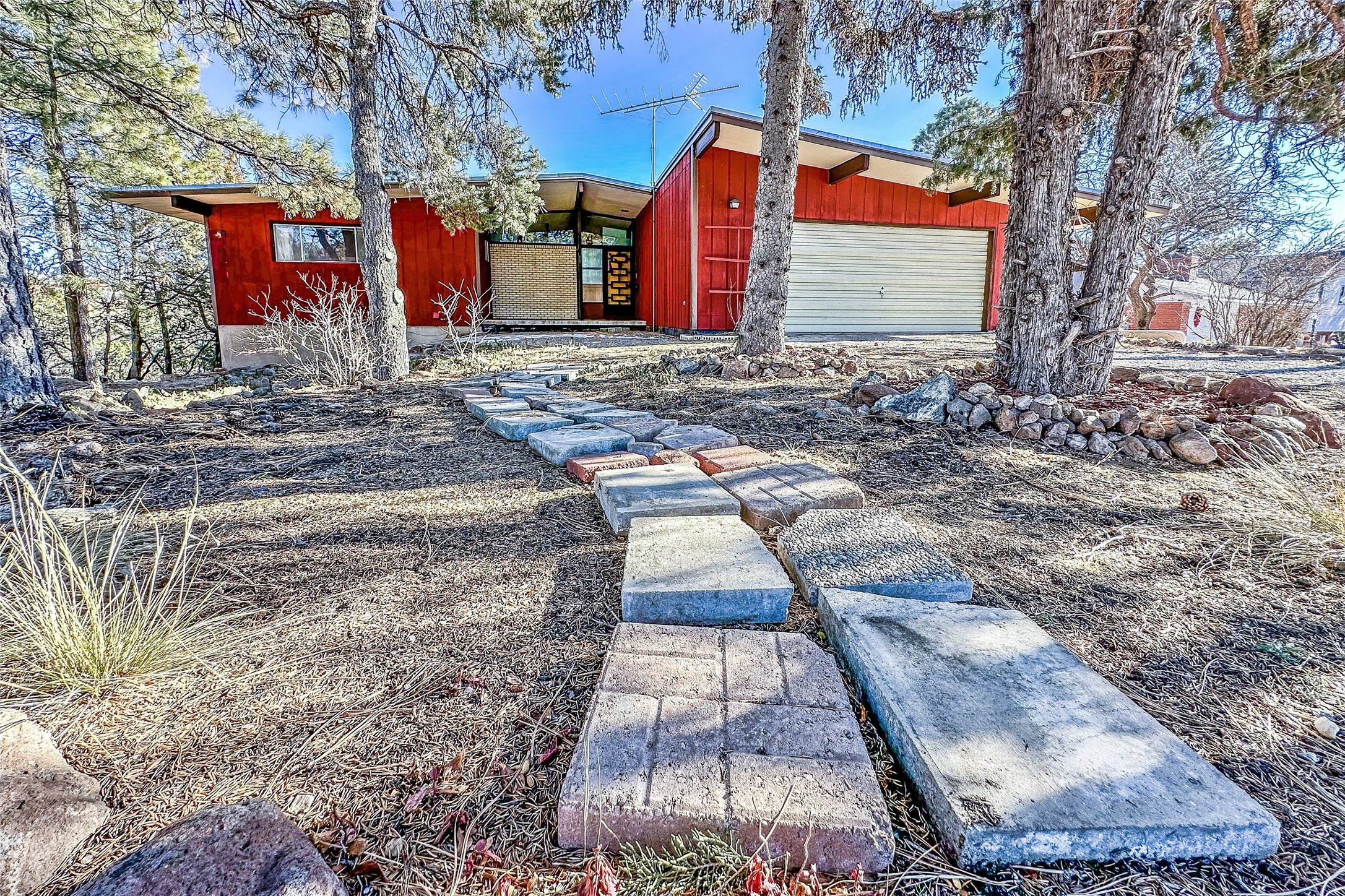 Experience the epitome of authentic Mid-Century Architecture on a sprawling .40-acre Canyon Lot in the coveted Barranca Mesa! This expansive 4-bedroom, 3-bathroom residence is nestled amidst a lush landscape adorned with mature pine trees, seamlessly blending with their natural surroundings. Upon entry, immerse yourself in the captivating mid-century ambiance of the spacious Living/Dining room, featuring large picture windows extending into the kitchen and flooding the space with an abundance of natural light. Throughout the main living area, revel in the charm of wood paneling and wood-beamed vaulted ceilings, transitioning seamlessly into a luminous kitchen featuring original wood cabinetry, a peninsula island, and versatile desk space. The main floor hosts a generous primary bedroom with dual closets and an en suite bathroom, an additional bedroom, and a separate full bathroom. Descend to the lower level to discover a vast, open-concept basement area enhanced by a charming brick fireplace, ideal for creating a secondary living room, an entertainment haven, or a sizable game room. Two additional guest bedrooms, another full bathroom, a spacious laundry room, and a sizeable workshop complete the lower level. Generous storage space is a hallmark throughout the entire home, garage, workshop, and pantry areas. Additionally, the living space extends to a patio and backyard area, offering ample room to envision your perfect outdoor entertaining oasis! Enjoy exceptional views overlooking the nearby canyon, with direct canyon and hiking access at the rear of the property. This residence is more than a home - it's a must-see authentic mid-century canvas awaiting your creative touches and vision to transform it into your own personal masterpiece! Seize the opportunity to explore this unique property today!