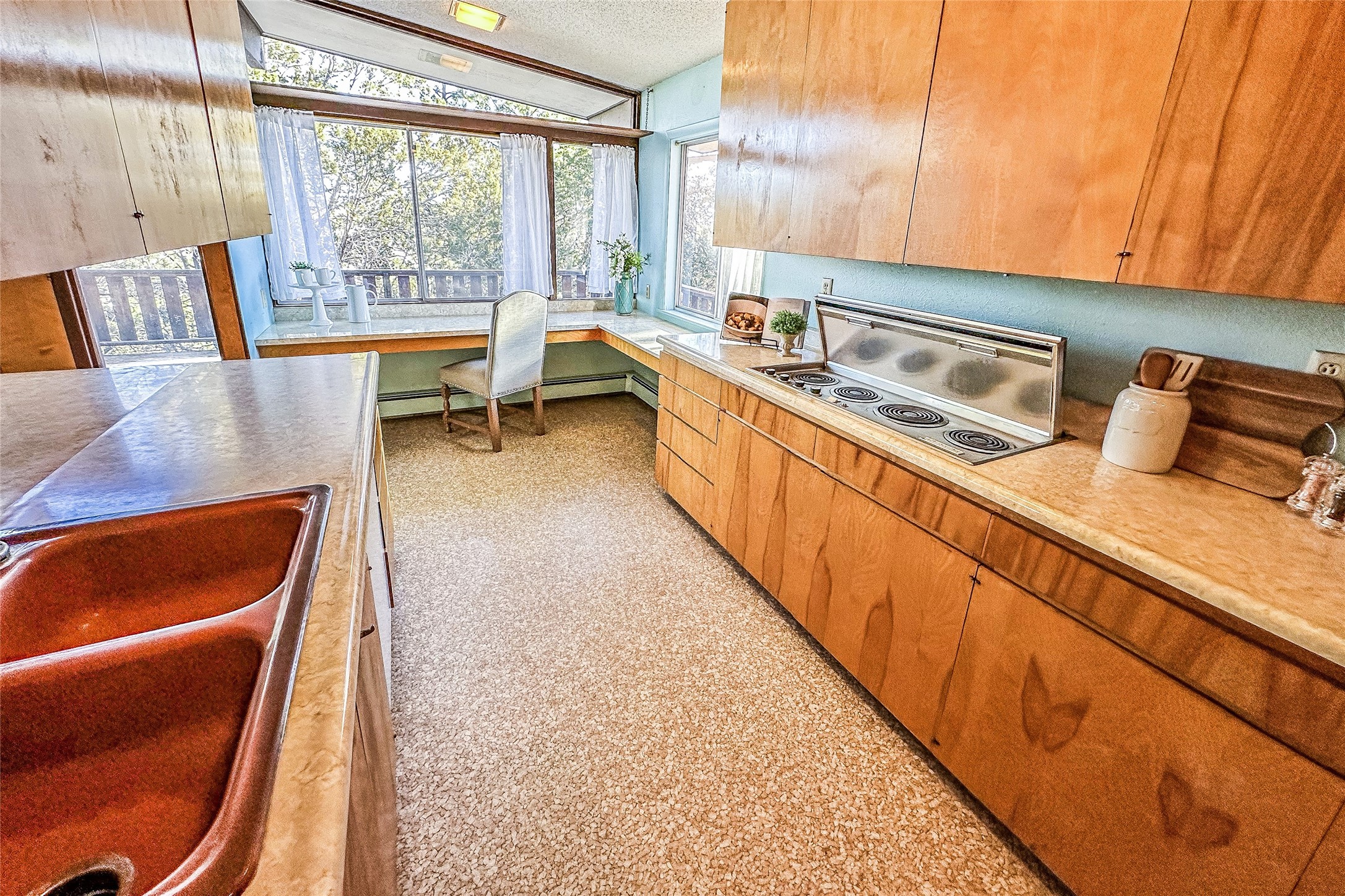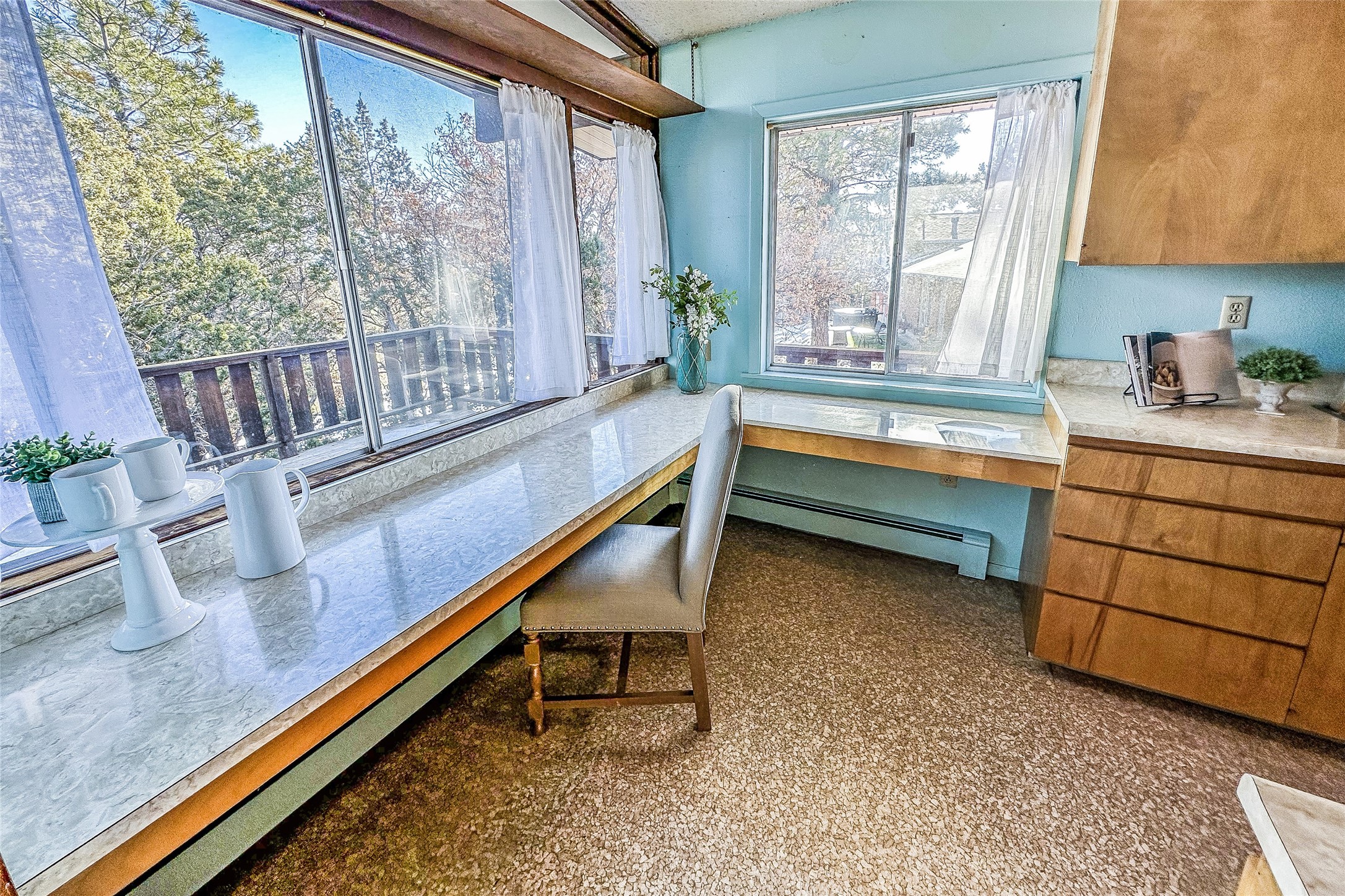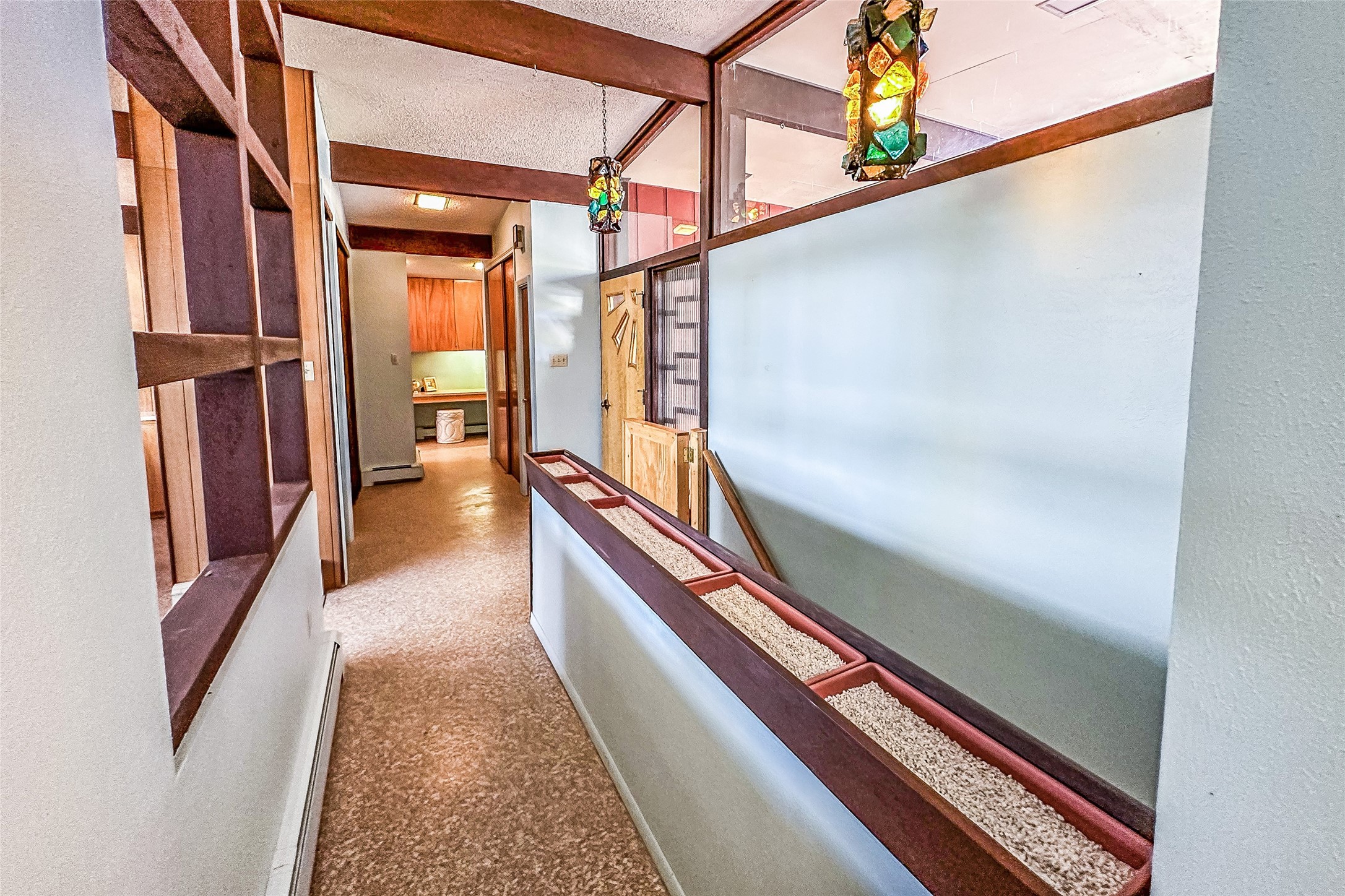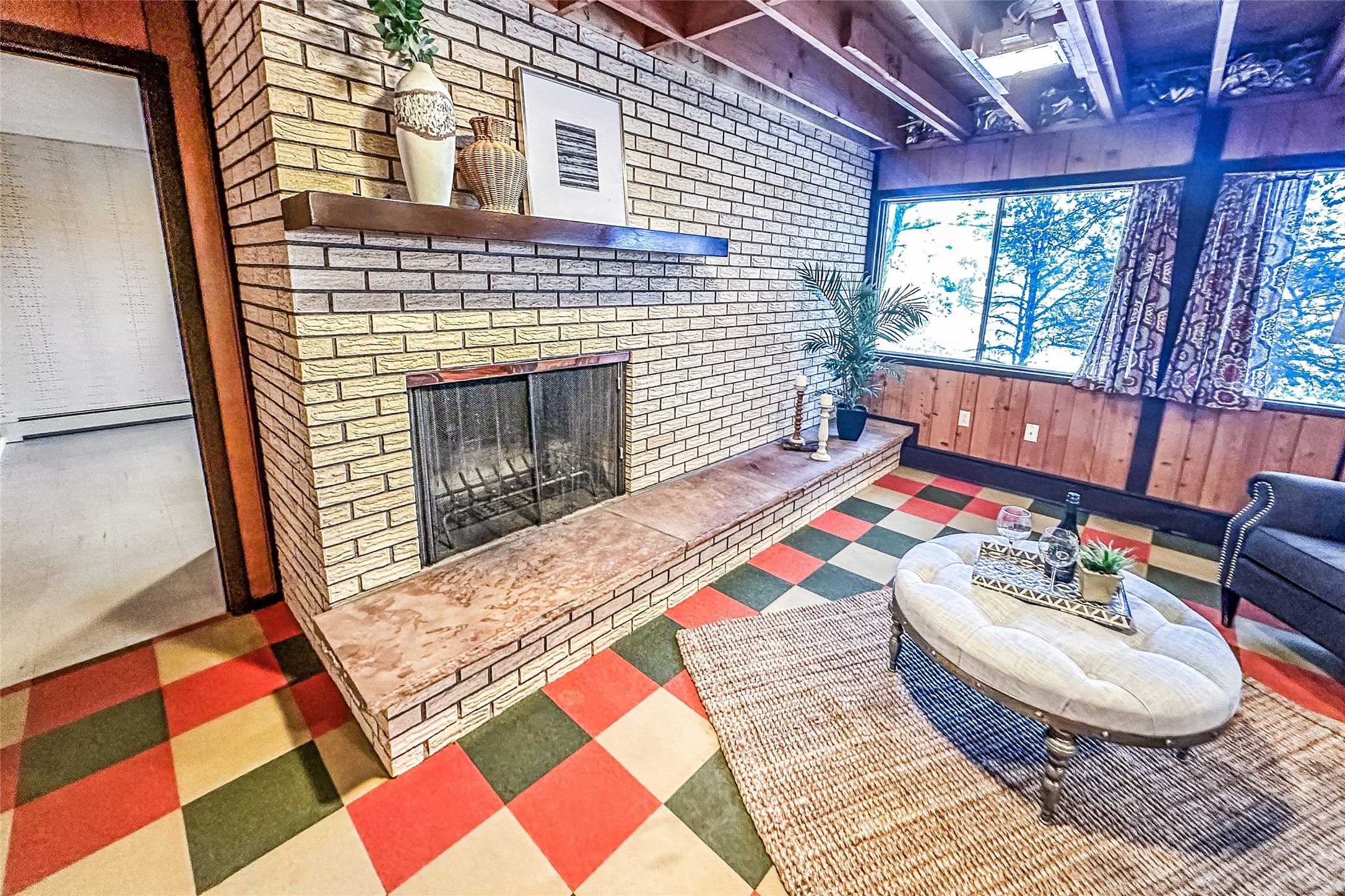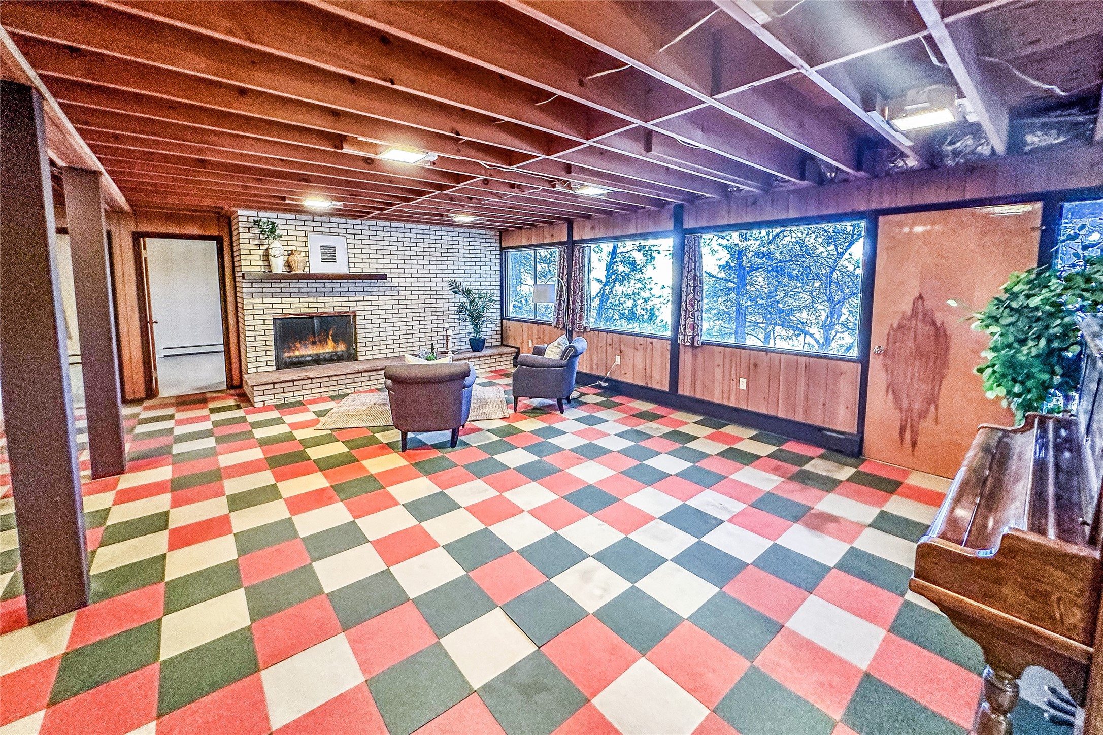 Experience the epitome of authentic Mid-Century Architecture on a sprawling .40-acre Canyon Lot in the coveted Barranca Mesa! This expansive 4-bedroom, 3-bathroom residence is nestled amidst a lush landscape adorned with mature pine trees, seamlessly blending with their natural surroundings. Upon entry, immerse yourself in the captivating mid-century ambiance of the spacious Living/Dining room, featuring large picture windows extending into the kitchen and flooding the space with an abundance of natural light. Throughout the main living area, revel in the charm of wood paneling and wood-beamed vaulted ceilings, transitioning seamlessly into a luminous kitchen featuring original wood cabinetry, a peninsula island, and versatile desk space. The main floor hosts a generous primary bedroom with dual closets and an en suite bathroom, an additional bedroom, and a separate full bathroom. Descend to the lower level to discover a vast, open-concept basement area enhanced by a charming brick fireplace, ideal for creating a secondary living room, an entertainment haven, or a sizable game room. Two additional guest bedrooms, another full bathroom, a spacious laundry room, and a sizeable workshop complete the lower level. Generous storage space is a hallmark throughout the entire home, garage, workshop, and pantry areas. Additionally, the living space extends to a patio and backyard area, offering ample room to envision your perfect outdoor entertaining oasis! Enjoy exceptional views overlooking the nearby canyon, with direct canyon and hiking access at the rear of the property. This residence is more than a home - it's a must-see authentic mid-century canvas awaiting your creative touches and vision to transform it into your own personal masterpiece! Seize the opportunity to explore this unique property today!