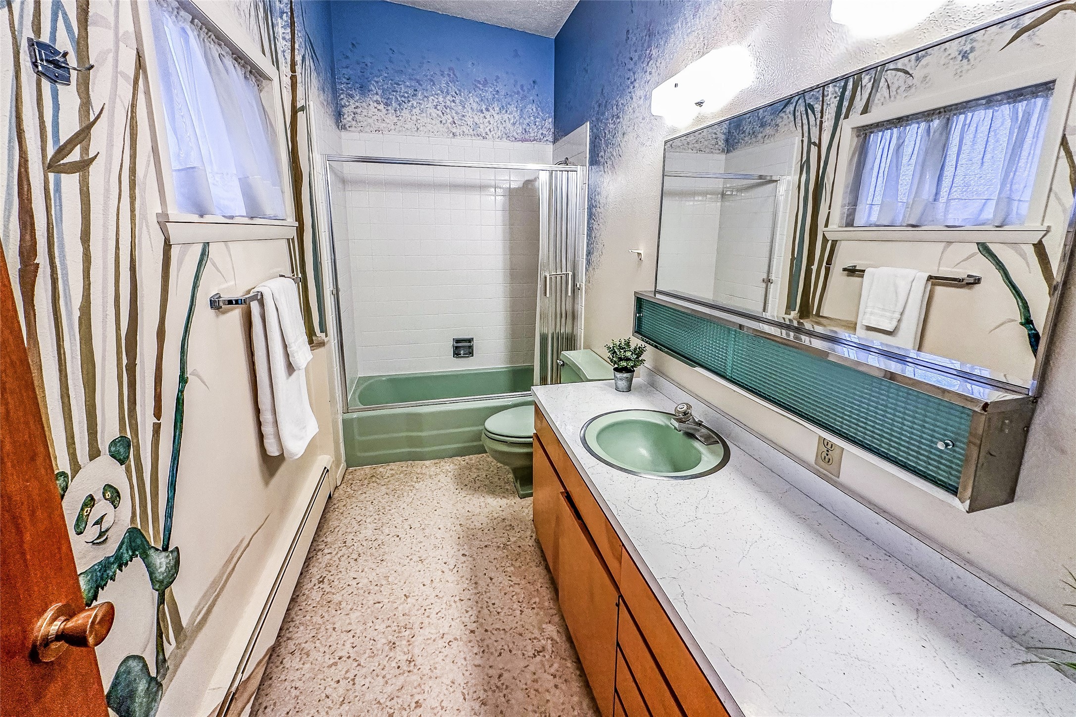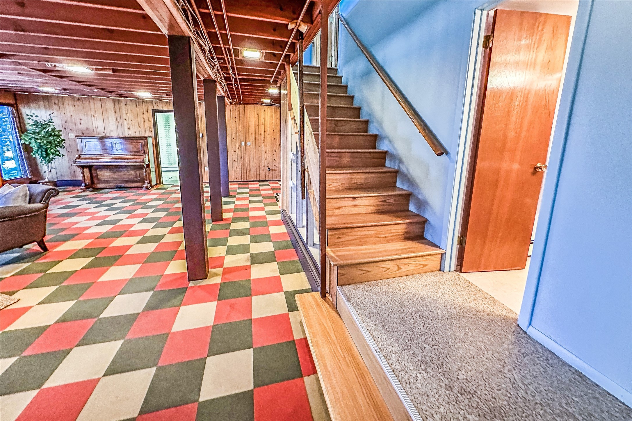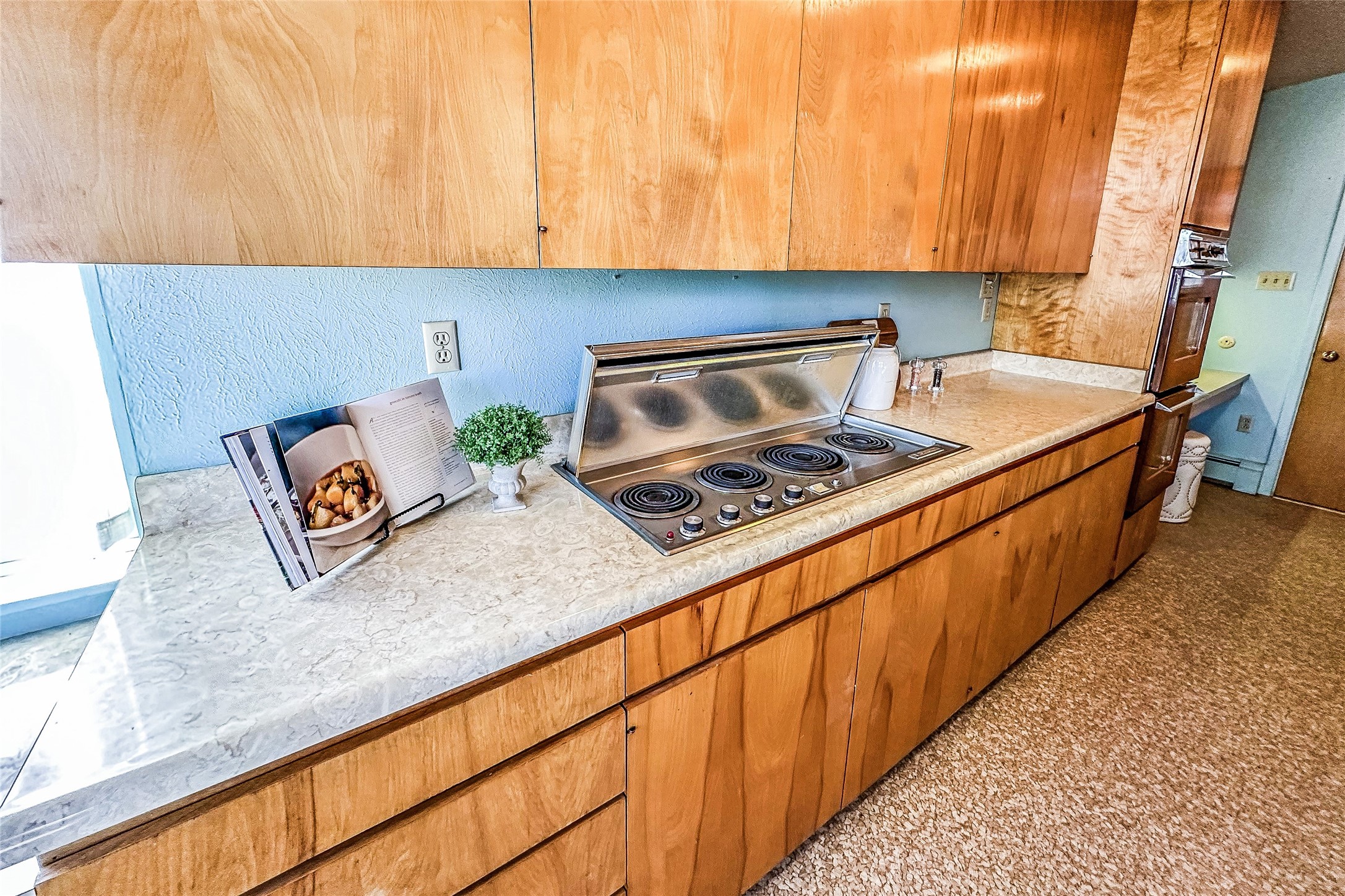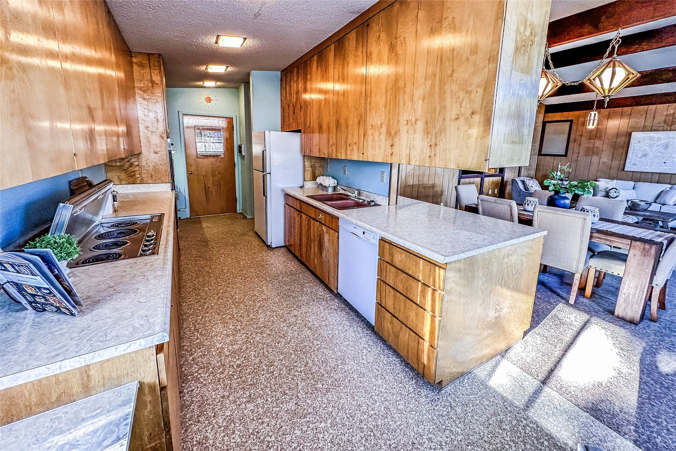 Experience the epitome of authentic Mid-Century Architecture on a sprawling .40-acre Canyon Lot in the coveted Barranca Mesa! This expansive 4-bedroom, 3-bathroom residence is nestled amidst a lush landscape adorned with mature pine trees, seamlessly blending with their natural surroundings. Upon entry, immerse yourself in the captivating mid-century ambiance of the spacious Living/Dining room, featuring large picture windows extending into the kitchen and flooding the space with an abundance of natural light. Throughout the main living area, revel in the charm of wood paneling and wood-beamed vaulted ceilings, transitioning seamlessly into a luminous kitchen featuring original wood cabinetry, a peninsula island, and versatile desk space. The main floor hosts a generous primary bedroom with dual closets and an en suite bathroom, an additional bedroom, and a separate full bathroom. Descend to the lower level to discover a vast, open-concept basement area enhanced by a charming brick fireplace, ideal for creating a secondary living room, an entertainment haven, or a sizable game room. Two additional guest bedrooms, another full bathroom, a spacious laundry room, and a sizeable workshop complete the lower level. Generous storage space is a hallmark throughout the entire home, garage, workshop, and pantry areas. Additionally, the living space extends to a patio and backyard area, offering ample room to envision your perfect outdoor entertaining oasis! Enjoy exceptional views overlooking the nearby canyon, with direct canyon and hiking access at the rear of the property. This residence is more than a home - it's a must-see authentic mid-century canvas awaiting your creative touches and vision to transform it into your own personal masterpiece! Seize the opportunity to explore this unique property today!