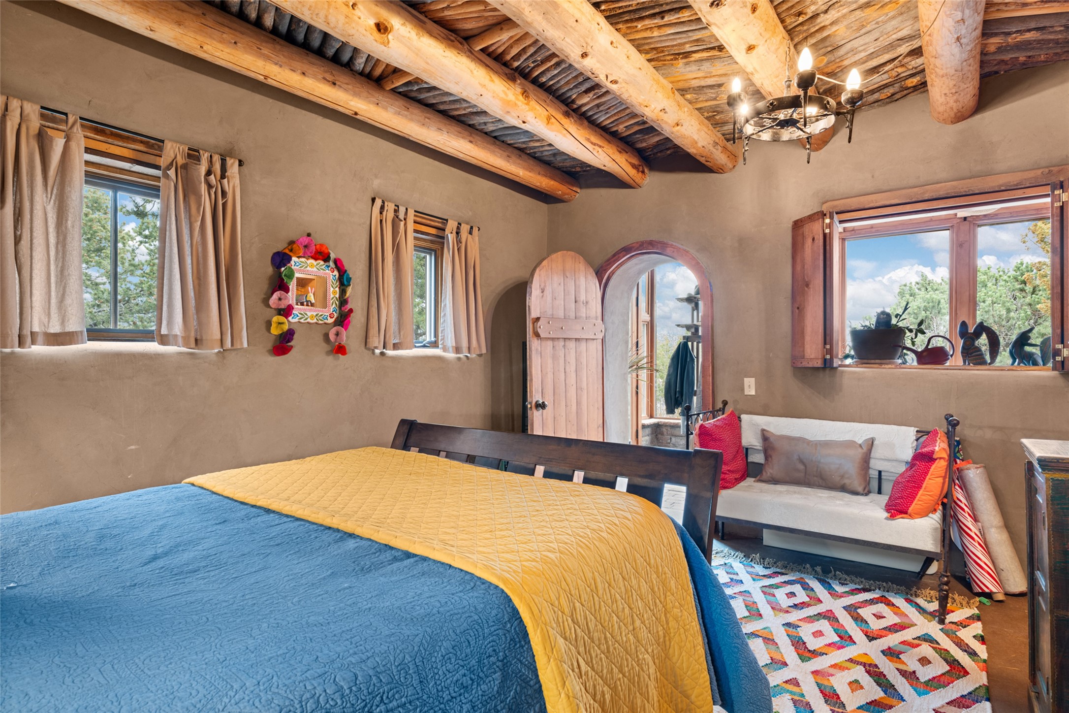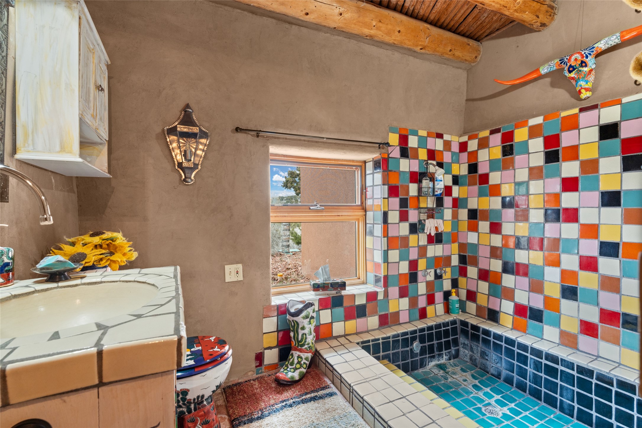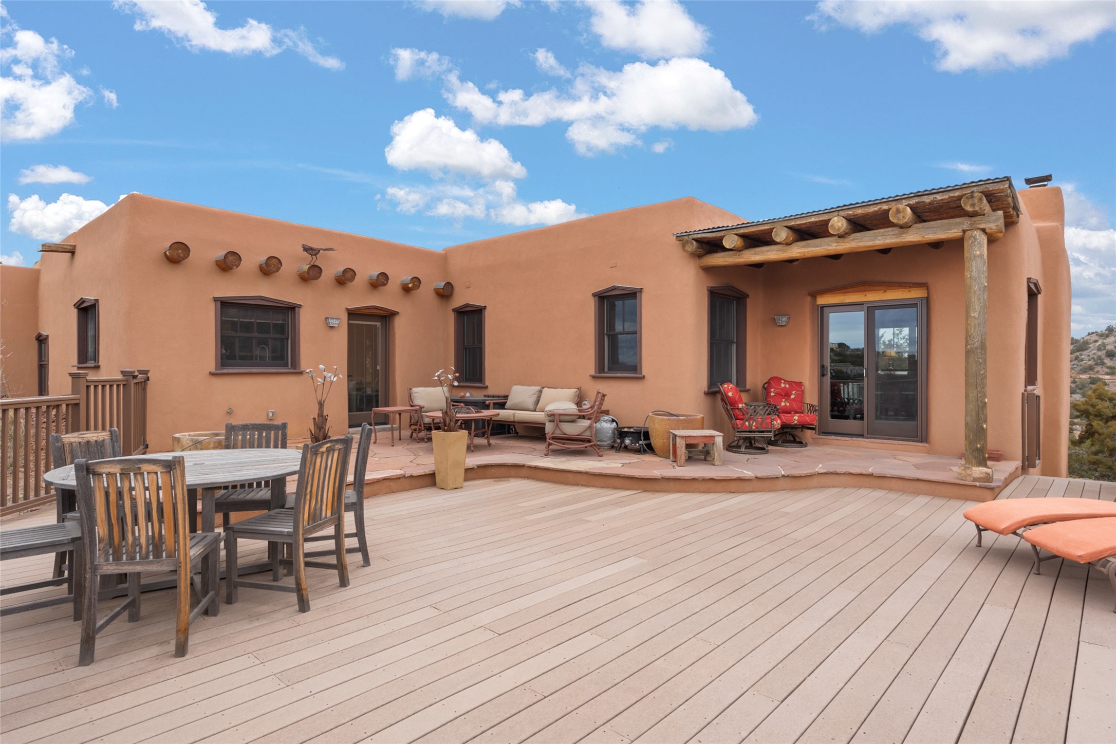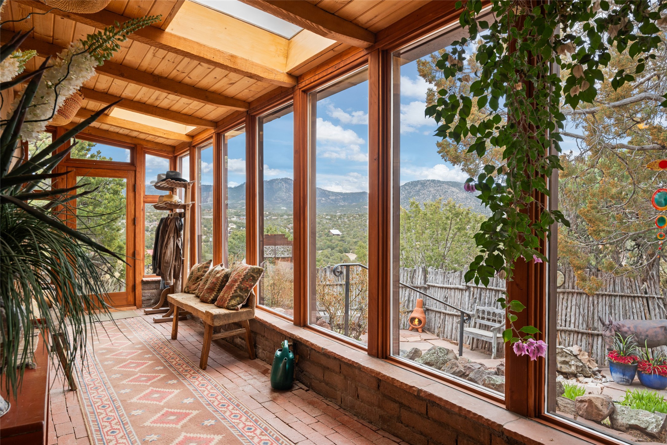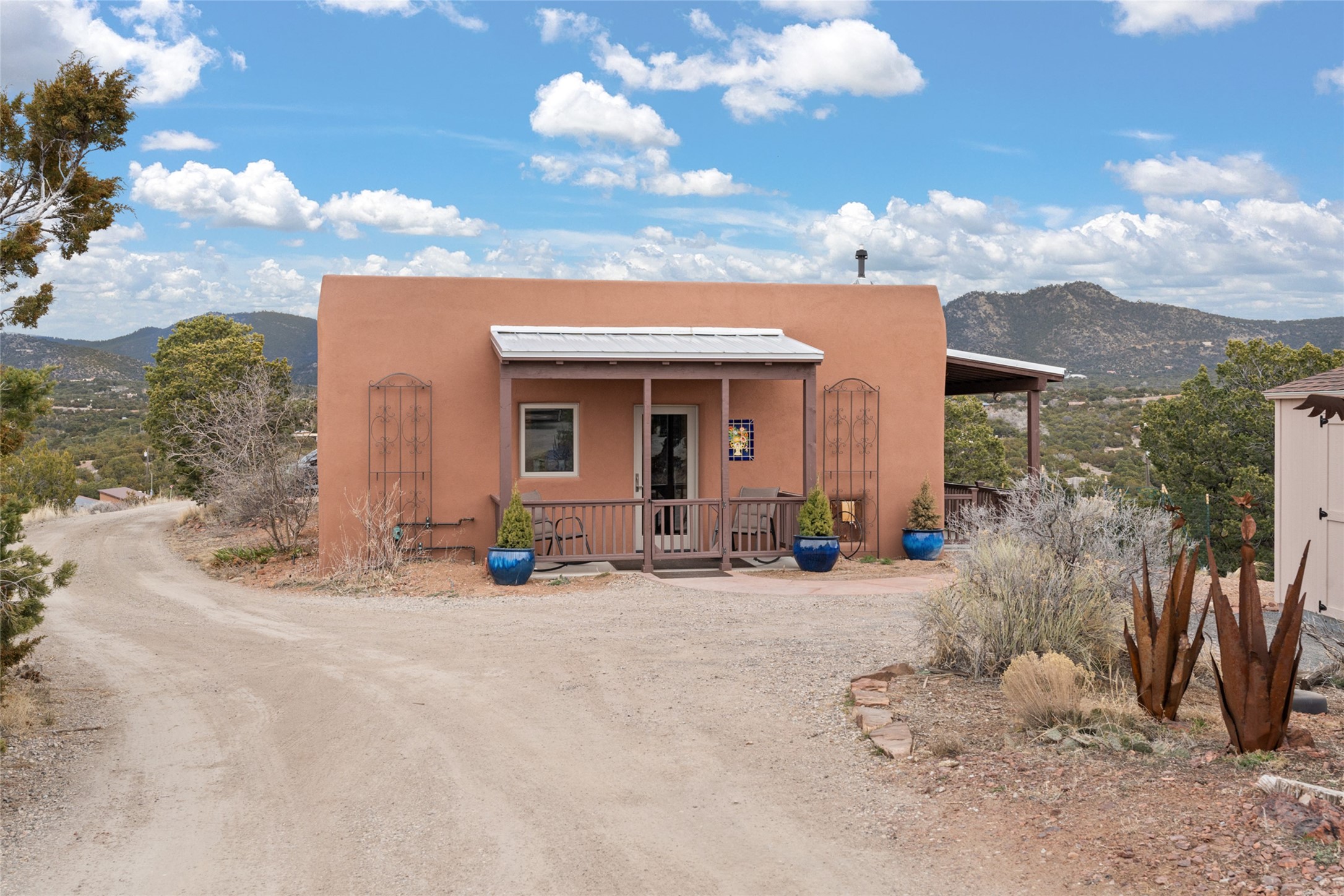 Welcome to your dream home located at 17 Sunlit Dr West. This charming and elegant adobe house, built in 1976, offers a quiet and peaceful environment. The house boasts old-world Santa Fe charm with vigas and latillas on the ceiling of every room. The efficient galley kitchen comes with a walk-in pantry, and the living room skylight is decorated with a beautiful star design in the latillas. The house features three bathrooms, all with unique Mexican Talavera tiles. The master bathroom is a luxurious retreat with dual sinks, a Jacuzzi tub, and a walk-in shower. Enjoy the warmth of two wood-burning fireplaces and a wood stove, along with a radiant heat system throughout the entire home. The spacious living room and dining area are perfect for family gatherings. This house has undergone several upgrades and improvements, including the addition of a giant deck with recycled plastic "Trex" type decking in 2009. The main waterline was replaced to 20" deep in 2010, and the boilers in the house and casita were replaced with on-demand water heaters for radiant heating in 2010. The roof and stucco of the main house were updated in 2014, and the northeast sitting area of the house was relandscaped with flagstone and a drip system in 2016. The casita underwent a complete remodel in 2023, including a new roof, stucco, screened porch, drip system, fenced pollinator garden, and a Tuff Shed was installed in 2023. Don't miss this opportunity to own your dream home with all the features and upgrades you could ever want. Make this house your forever home, and enjoy the peace and tranquility that it has to offer.