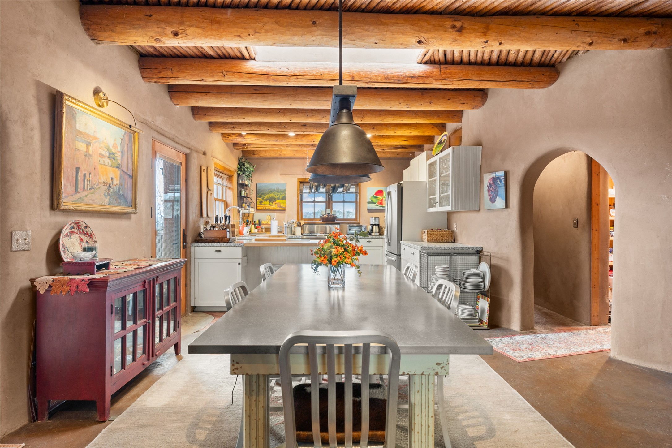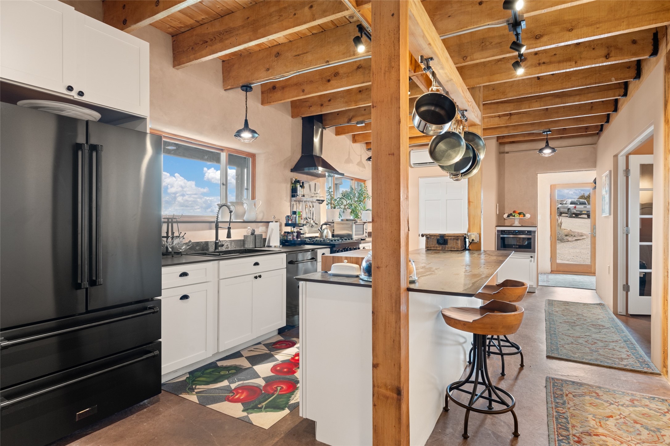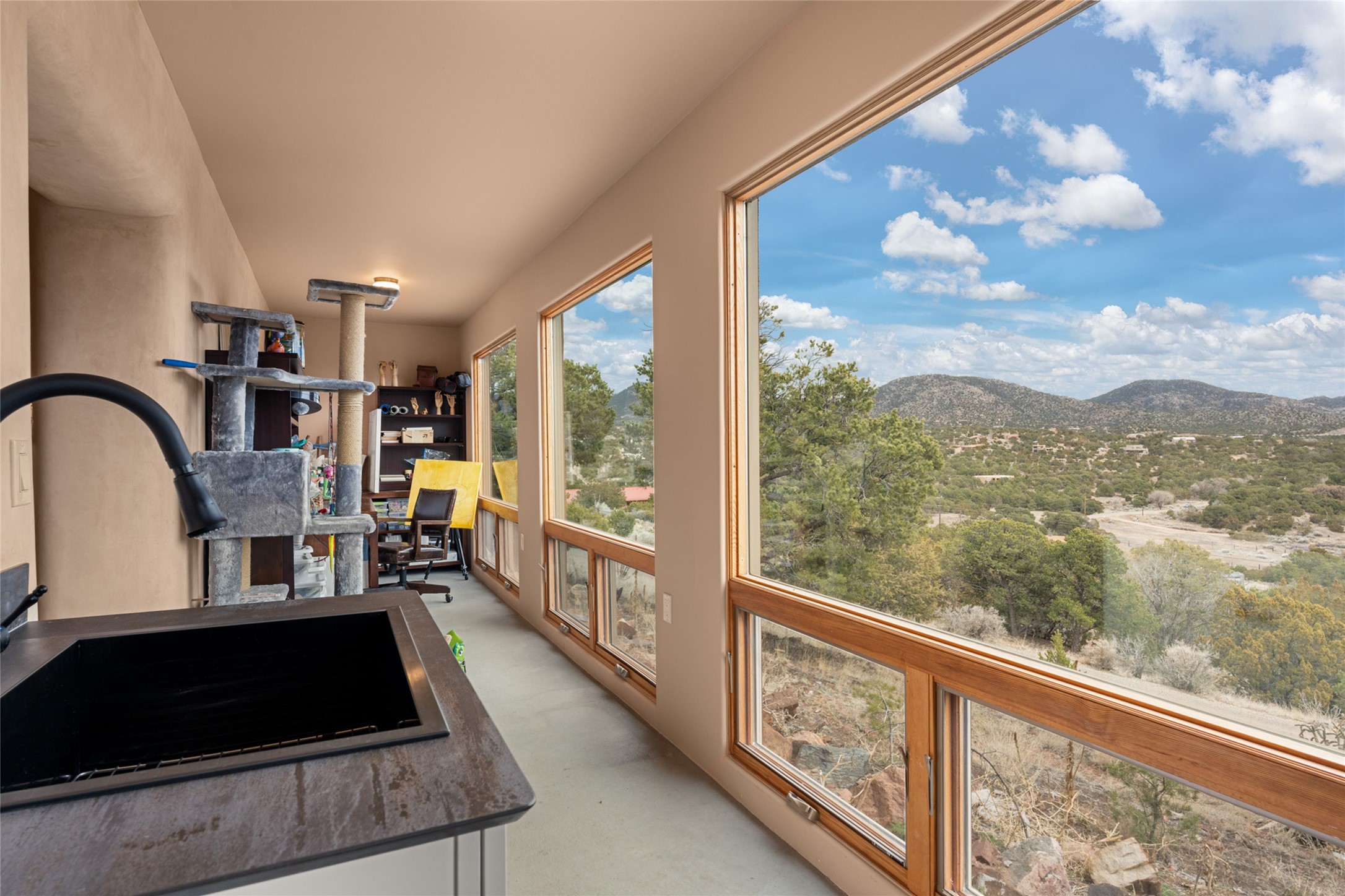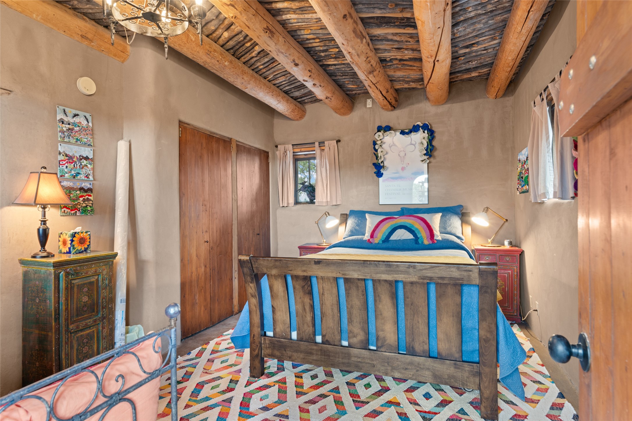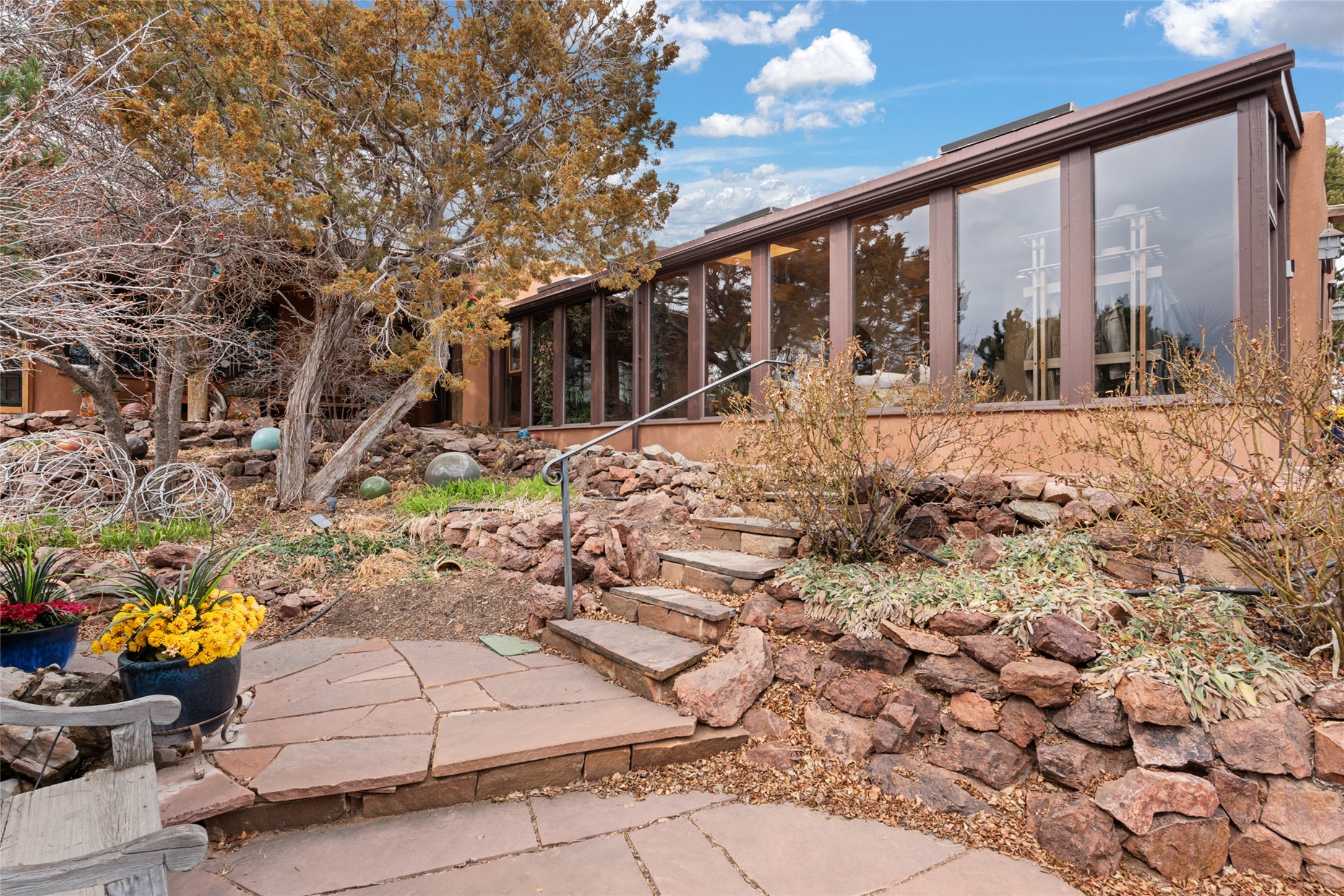 Welcome to your dream home located at 17 Sunlit Dr West. This charming and elegant adobe house, built in 1976, offers a quiet and peaceful environment. The house boasts old-world Santa Fe charm with vigas and latillas on the ceiling of every room. The efficient galley kitchen comes with a walk-in pantry, and the living room skylight is decorated with a beautiful star design in the latillas. The house features three bathrooms, all with unique Mexican Talavera tiles. The master bathroom is a luxurious retreat with dual sinks, a Jacuzzi tub, and a walk-in shower. Enjoy the warmth of two wood-burning fireplaces and a wood stove, along with a radiant heat system throughout the entire home. The spacious living room and dining area are perfect for family gatherings. This house has undergone several upgrades and improvements, including the addition of a giant deck with recycled plastic "Trex" type decking in 2009. The main waterline was replaced to 20" deep in 2010, and the boilers in the house and casita were replaced with on-demand water heaters for radiant heating in 2010. The roof and stucco of the main house were updated in 2014, and the northeast sitting area of the house was relandscaped with flagstone and a drip system in 2016. The casita underwent a complete remodel in 2023, including a new roof, stucco, screened porch, drip system, fenced pollinator garden, and a Tuff Shed was installed in 2023. Don't miss this opportunity to own your dream home with all the features and upgrades you could ever want. Make this house your forever home, and enjoy the peace and tranquility that it has to offer.
