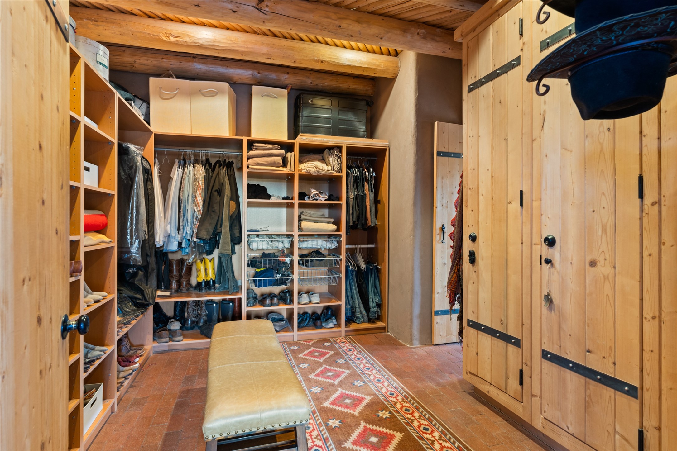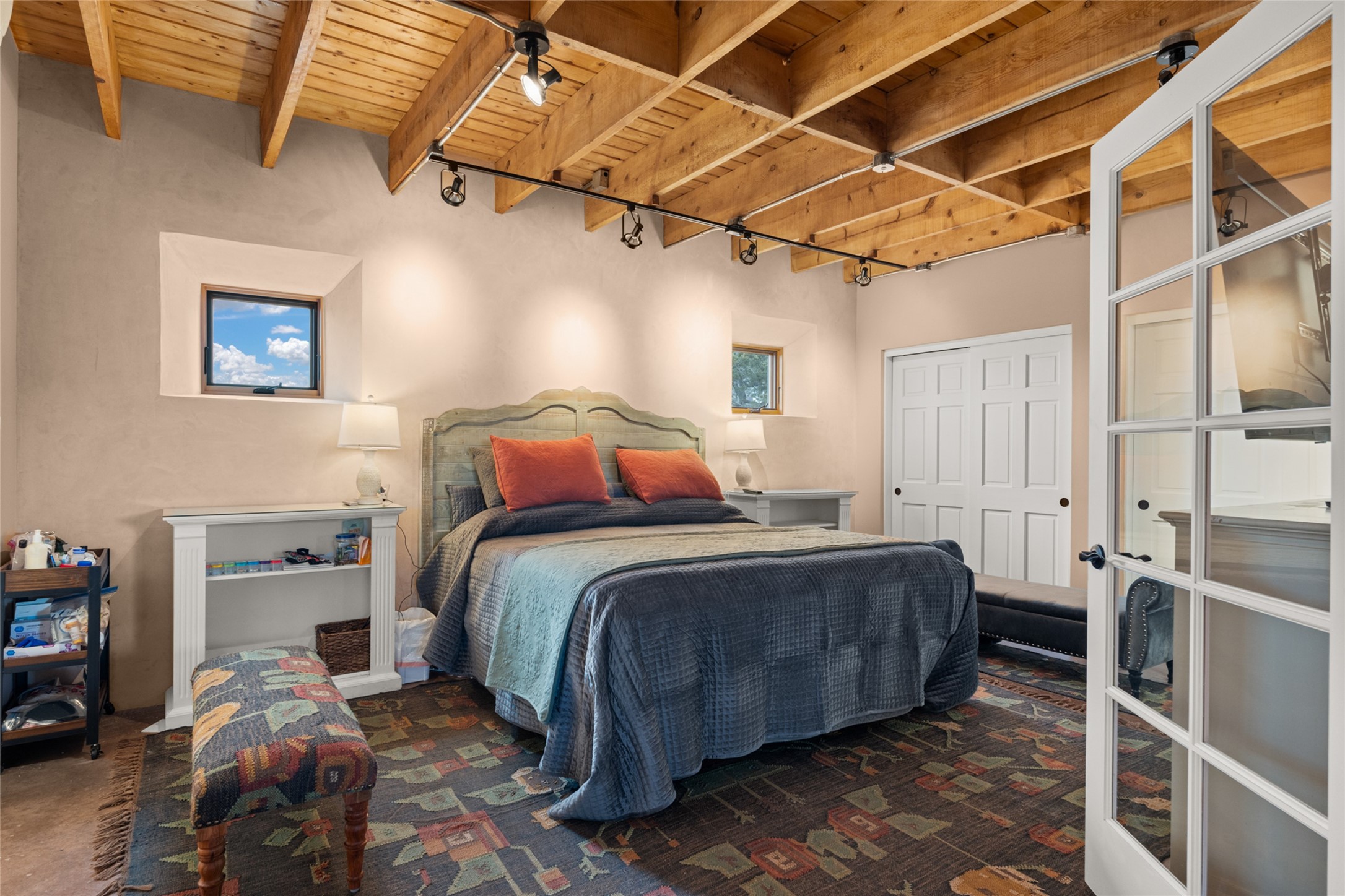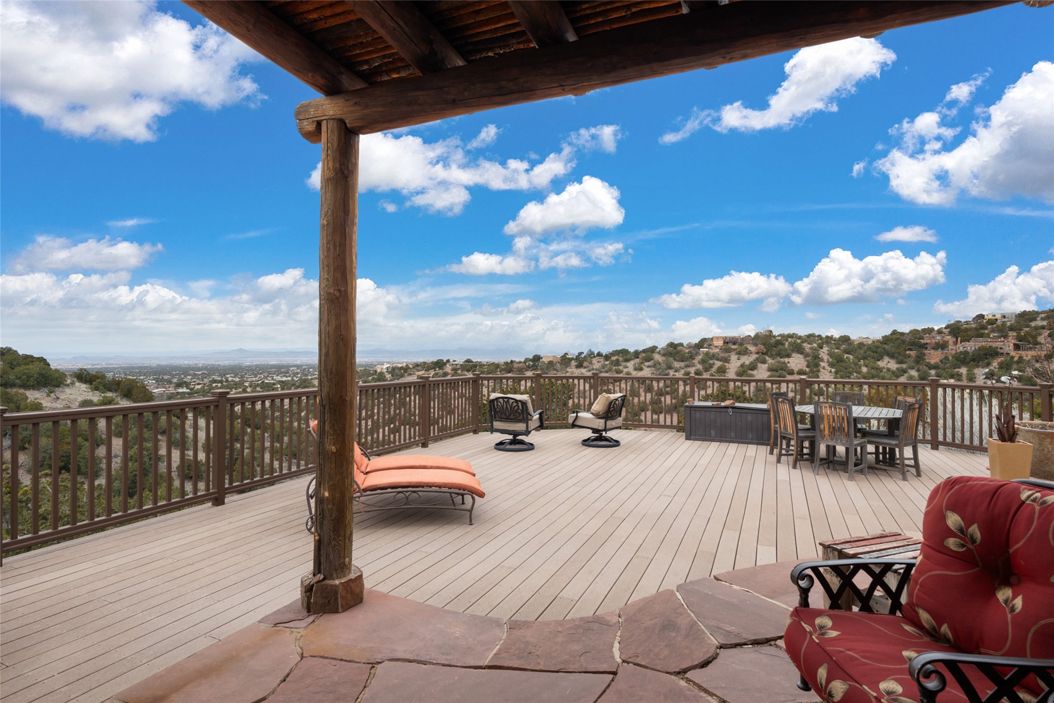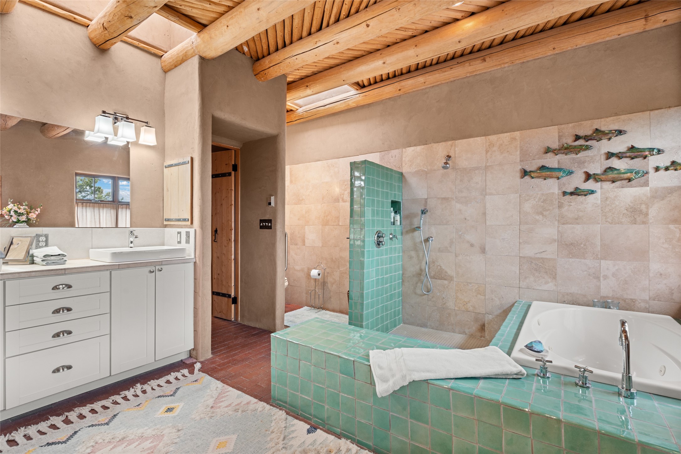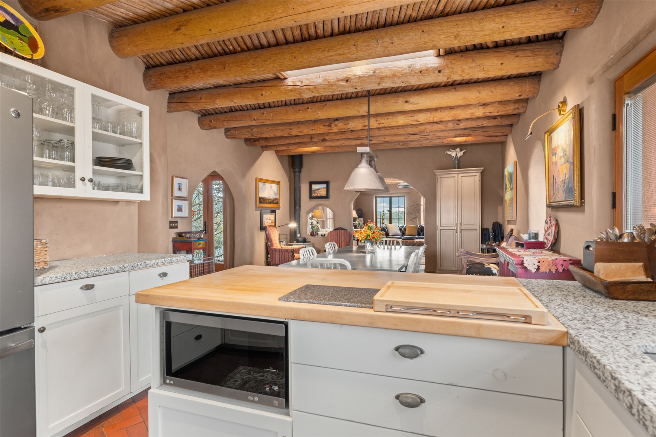 Welcome to your dream home located at 17 Sunlit Dr West. This charming and elegant adobe house, built in 1976, offers a quiet and peaceful environment. The house boasts old-world Santa Fe charm with vigas and latillas on the ceiling of every room. The efficient galley kitchen comes with a walk-in pantry, and the living room skylight is decorated with a beautiful star design in the latillas. The house features three bathrooms, all with unique Mexican Talavera tiles. The master bathroom is a luxurious retreat with dual sinks, a Jacuzzi tub, and a walk-in shower. Enjoy the warmth of two wood-burning fireplaces and a wood stove, along with a radiant heat system throughout the entire home. The spacious living room and dining area are perfect for family gatherings. This house has undergone several upgrades and improvements, including the addition of a giant deck with recycled plastic "Trex" type decking in 2009. The main waterline was replaced to 20" deep in 2010, and the boilers in the house and casita were replaced with on-demand water heaters for radiant heating in 2010. The roof and stucco of the main house were updated in 2014, and the northeast sitting area of the house was relandscaped with flagstone and a drip system in 2016. The casita underwent a complete remodel in 2023, including a new roof, stucco, screened porch, drip system, fenced pollinator garden, and a Tuff Shed was installed in 2023. Don't miss this opportunity to own your dream home with all the features and upgrades you could ever want. Make this house your forever home, and enjoy the peace and tranquility that it has to offer.