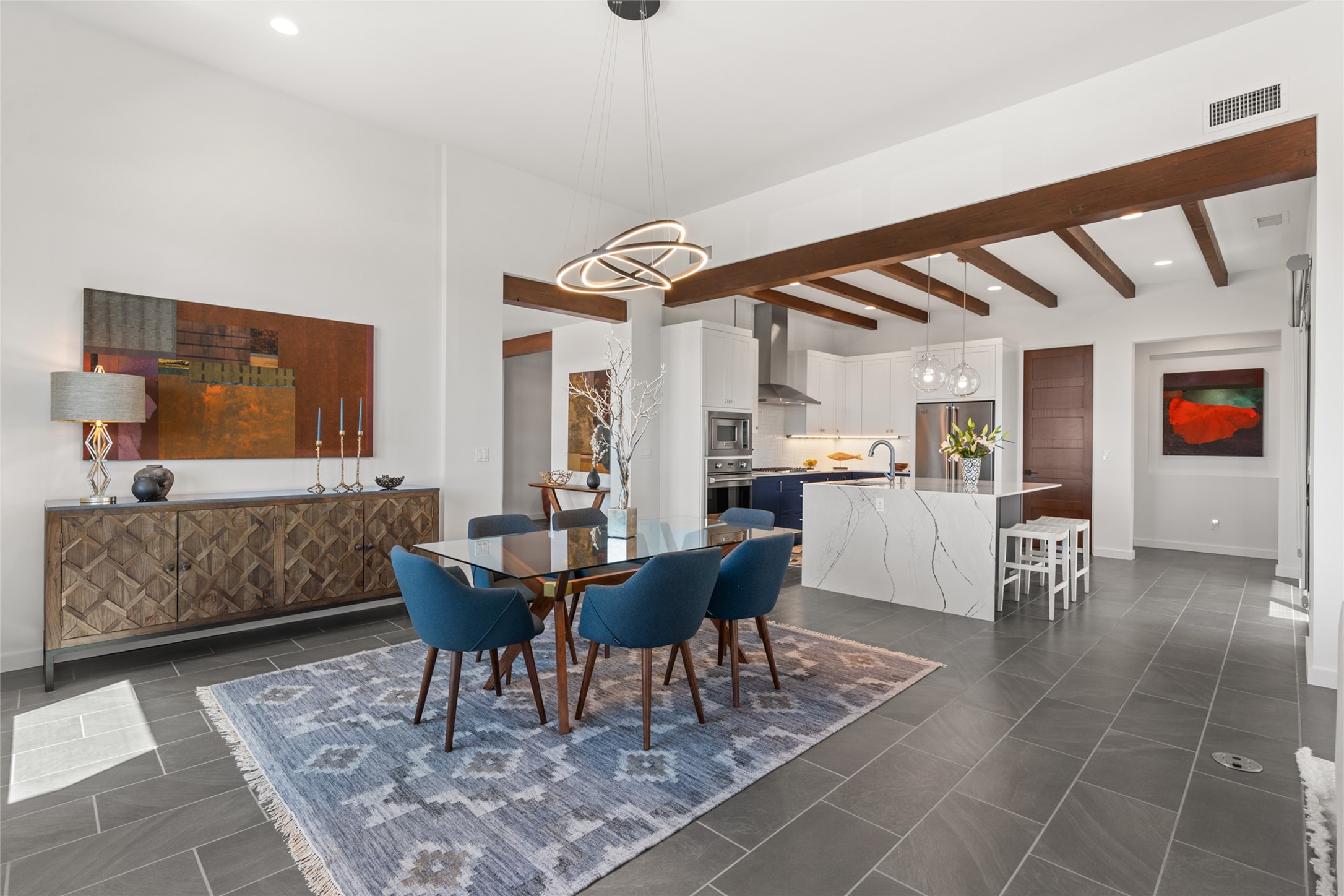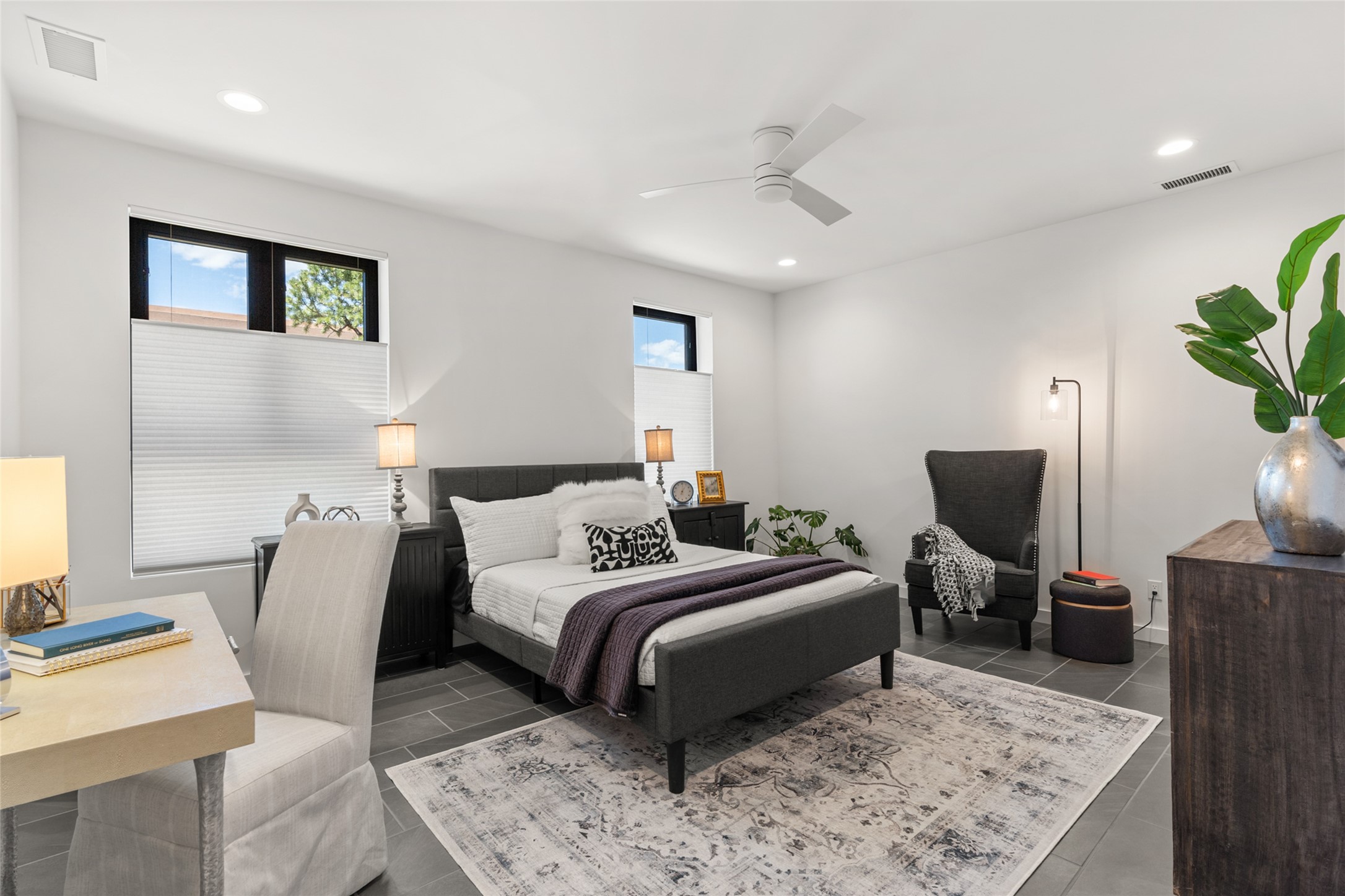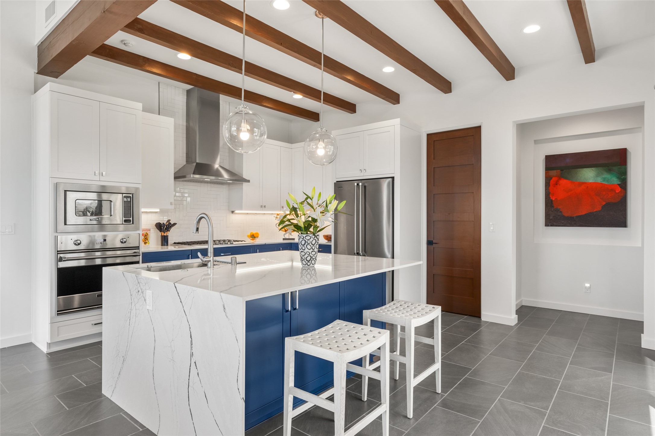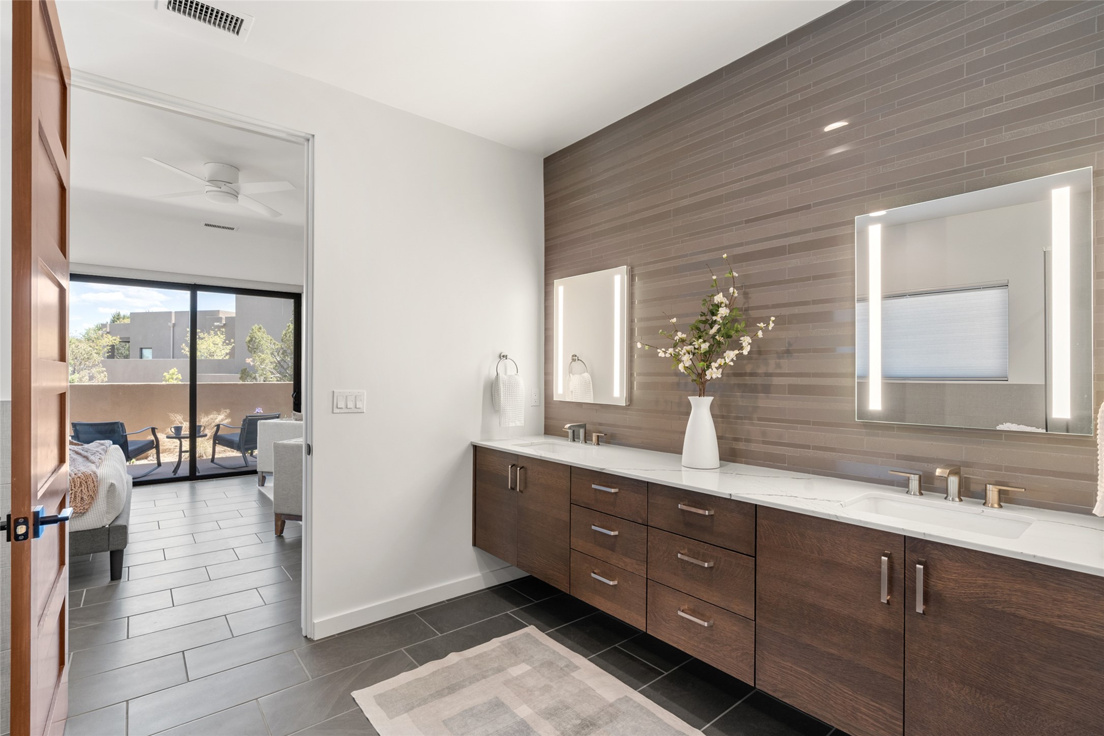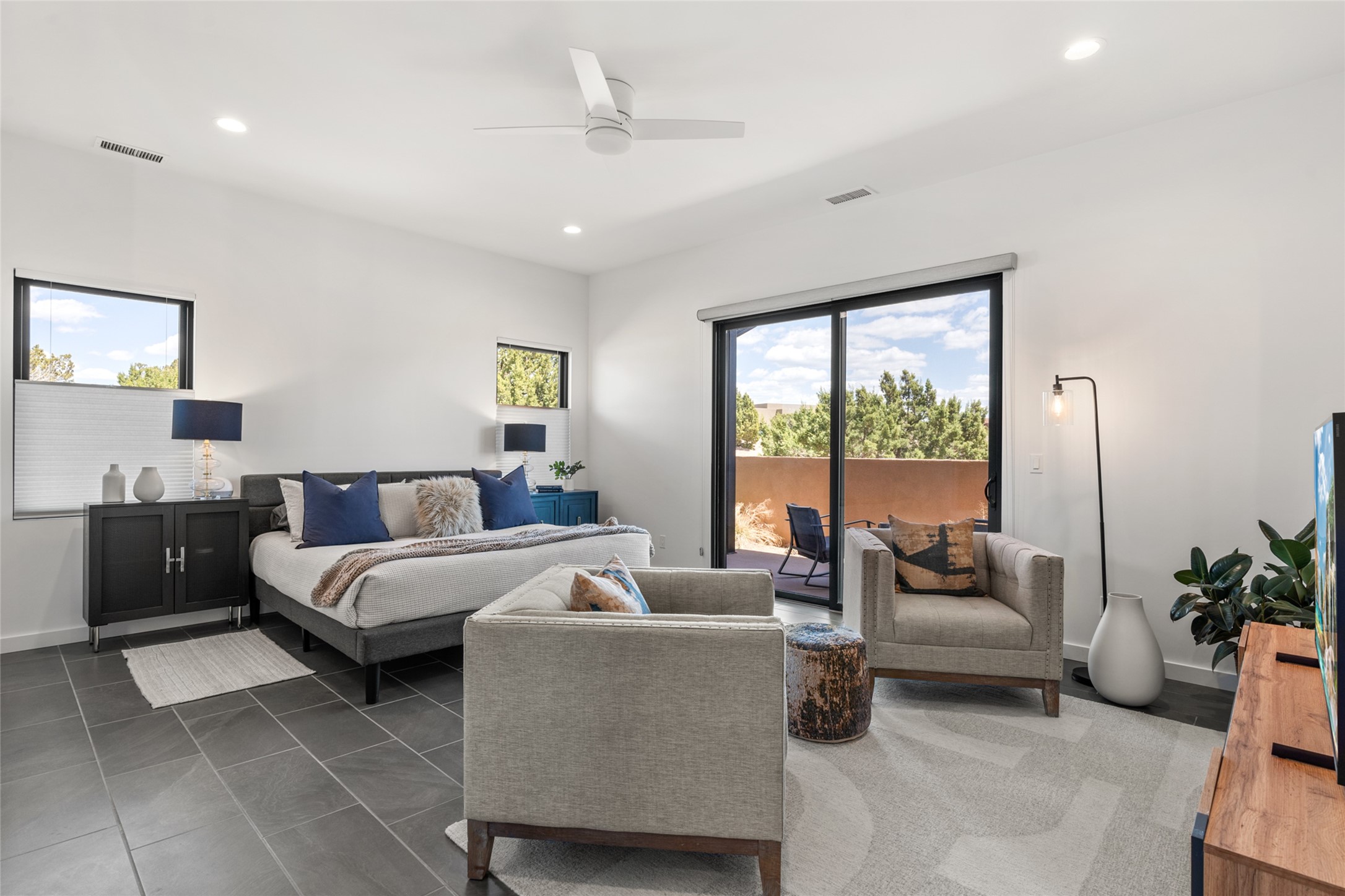 Welcome to a sanctuary of easy elegance sited on the high side of a cul-de-sac in the Valverde community of Las Campanas. This recently constructed haven evokes a sense of airy serenity and spaciousness, complete with modern upgrades for day-to-day convenience. Accented by large windows and a gas fireplace with stone surround, this single-level, open concept floor plan invites gatherings large and small and features adjacent patios for an easy flow between interior and exterior spaces. The stylish kitchen is a chef's delight, with a central island, Viking stainless steel appliances, quartz countertops and ample pantry. The award winning owner's suite is an oasis with its private portal, spa-like bathroom with curbless shower, freestanding tub, dual vanity and capacious walk-in closet which connects to the laundry room. Beyond the main living area is a separate wing offering a large guest suite and a flex-room which can be used as an office, den, or third bedroom. The oversized garage completes the package in this sustainable, low-maintenance, thoughtfully designed home built by the award-winning Arete Homes of Santa Fe.