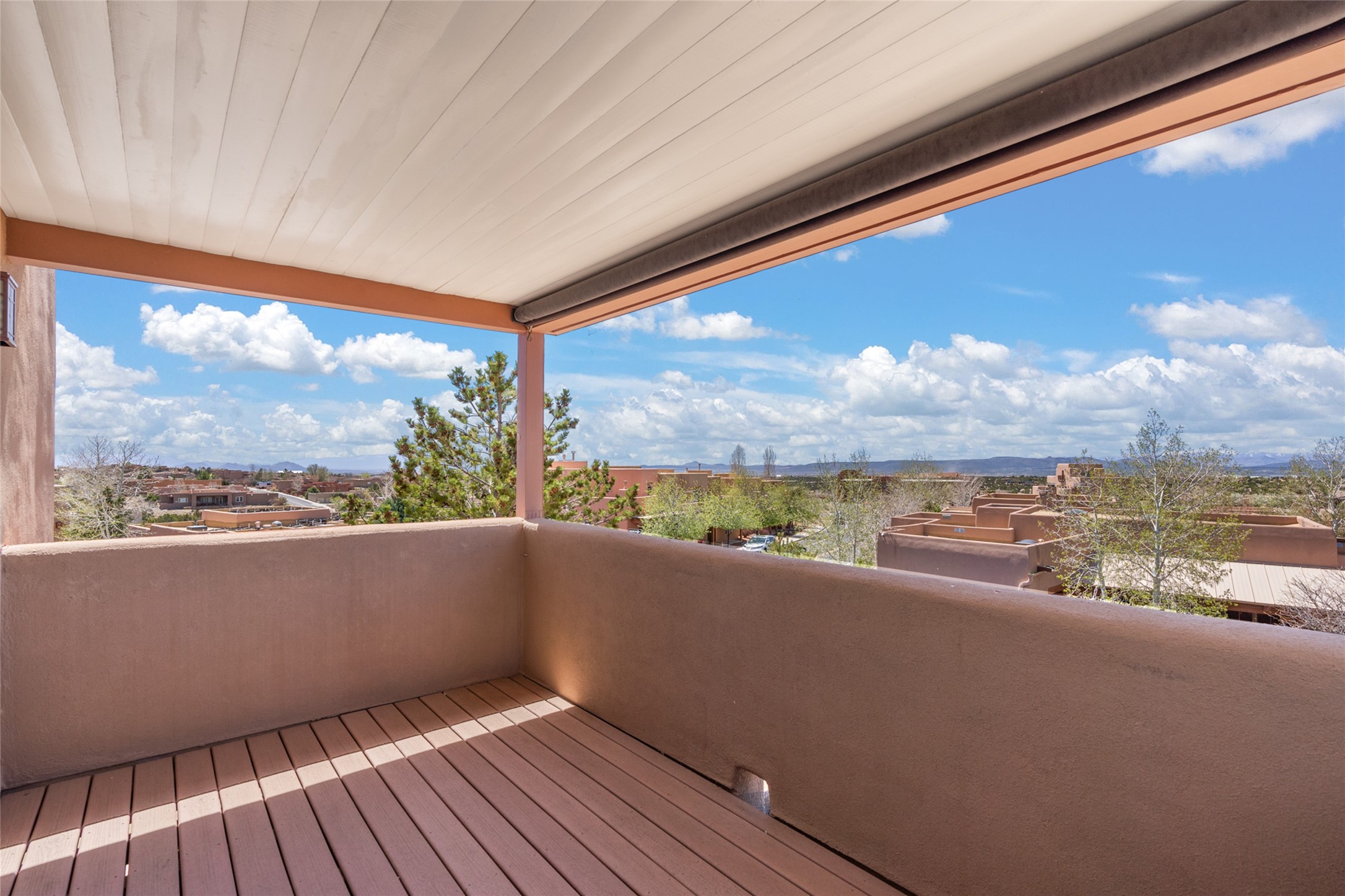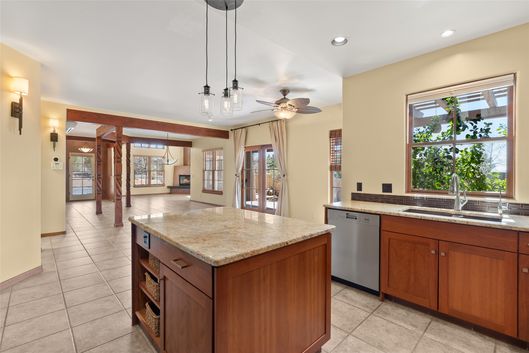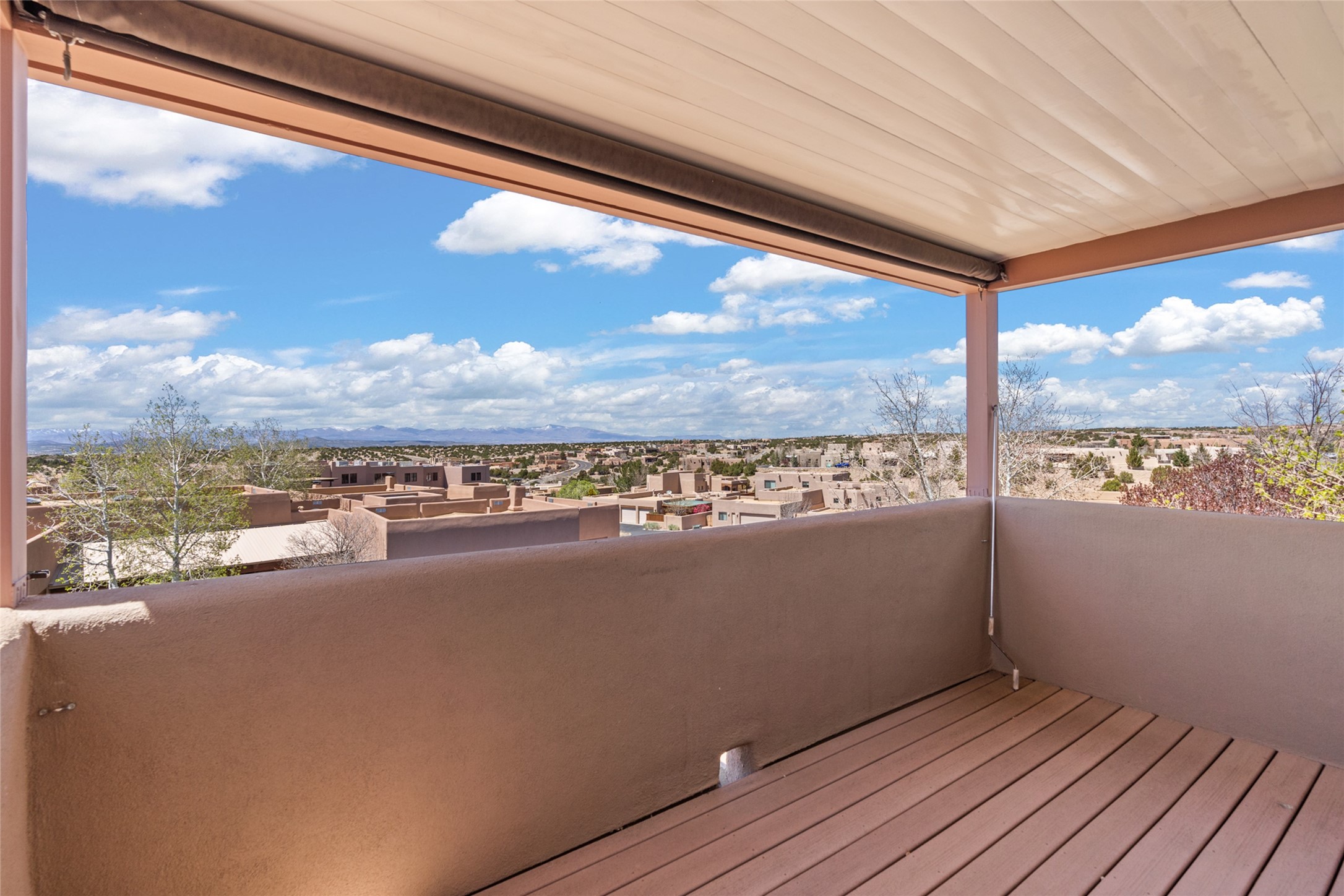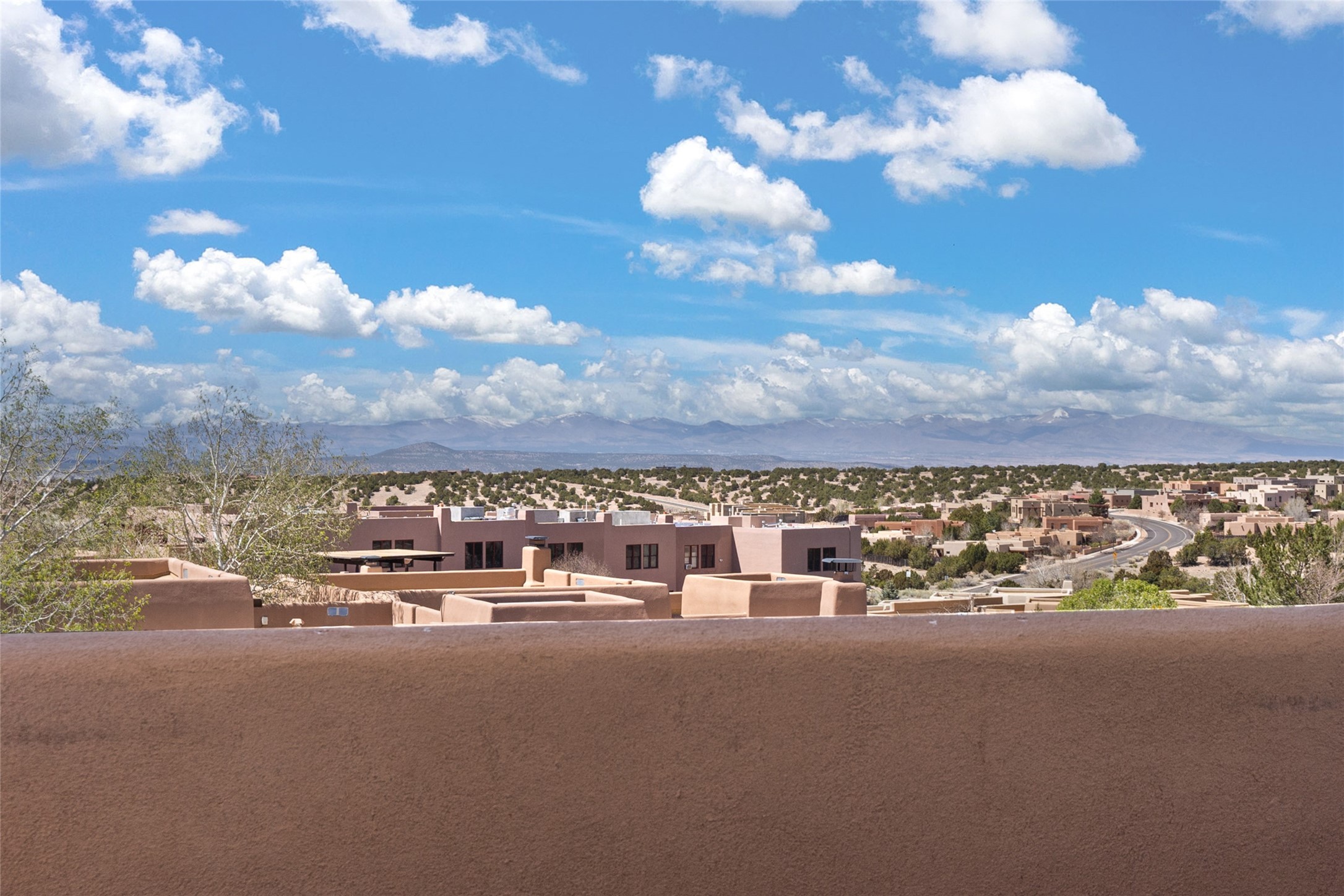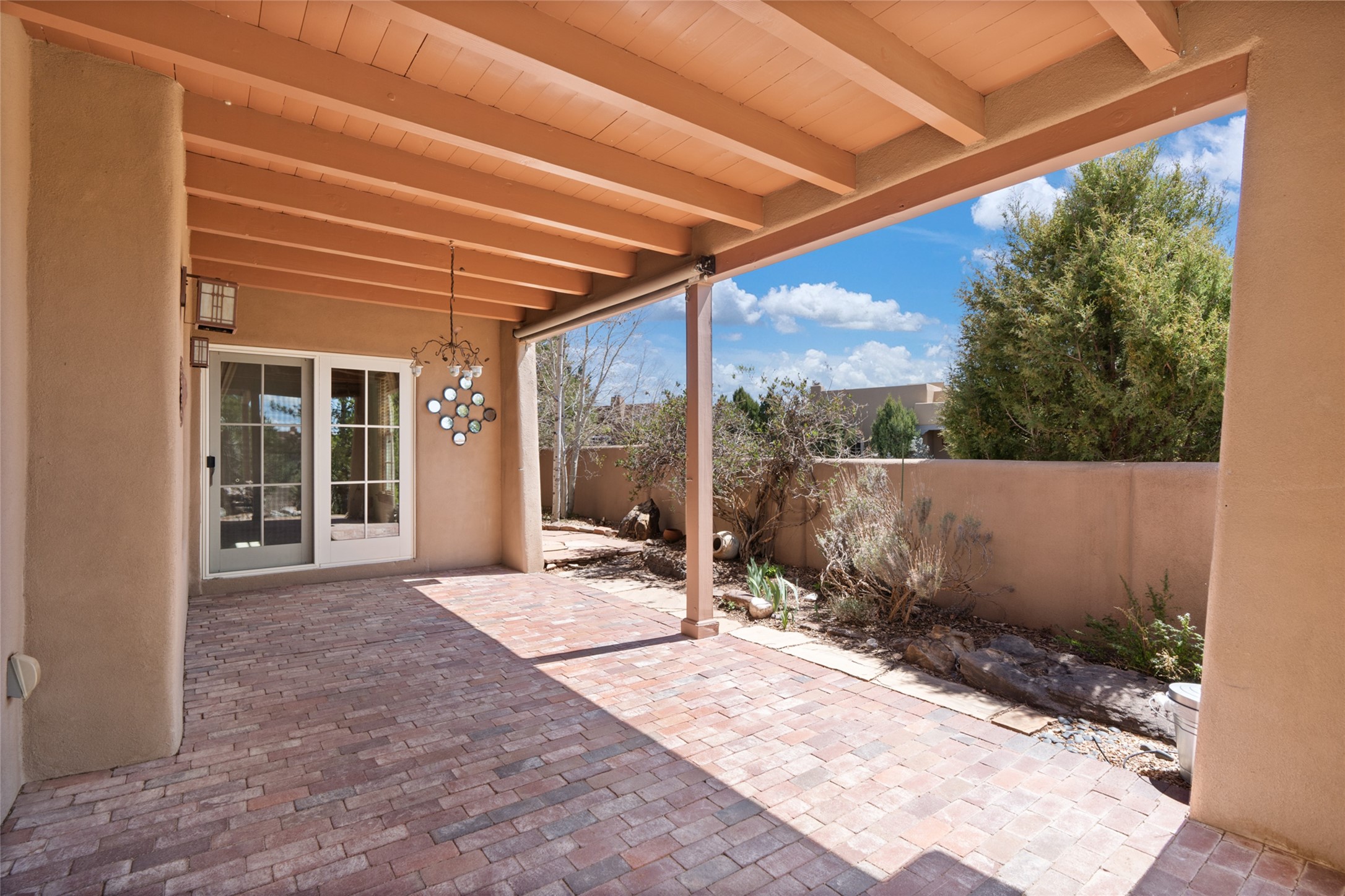 Are you looking for the ideal second home or retire in Santa Fe? If so, look at this 3-bedroom, 3-bath home in Aldea, just minutes from the Santa Fe Plaza and close to the Santa Fe Opera. This beautiful Bruce Thompson home was featured on HGTV, Dreaming in the Desert, Season 22, Episode 11. This home is lovely for entertaining with an open Living, Dining, and Kitchen floor plan. Gorgeous, easy-care yard with a year-round waterfall pond next to a large outdoor covered portal to enjoy your dinner with friends or the day. The beautiful primary suite upstairs has a sitting/office area, an ensuite bathroom with a walk-in shower, a custom walk-in closet, and a covered Veranda to view the Jemez Mountain range and the sunsets. A guest room and full bath are adjacent. The third guest bedroom/office is on the main level with a 3/4 bathroom. A double-car garage is spacious, with storage and a workbench. The recent upgrades are mini-splits for air conditioning/heat, a tankless water heater, and a Bosh refrigerator. The Aldea neighborhood features trails for walking, running, and pickleball courts.