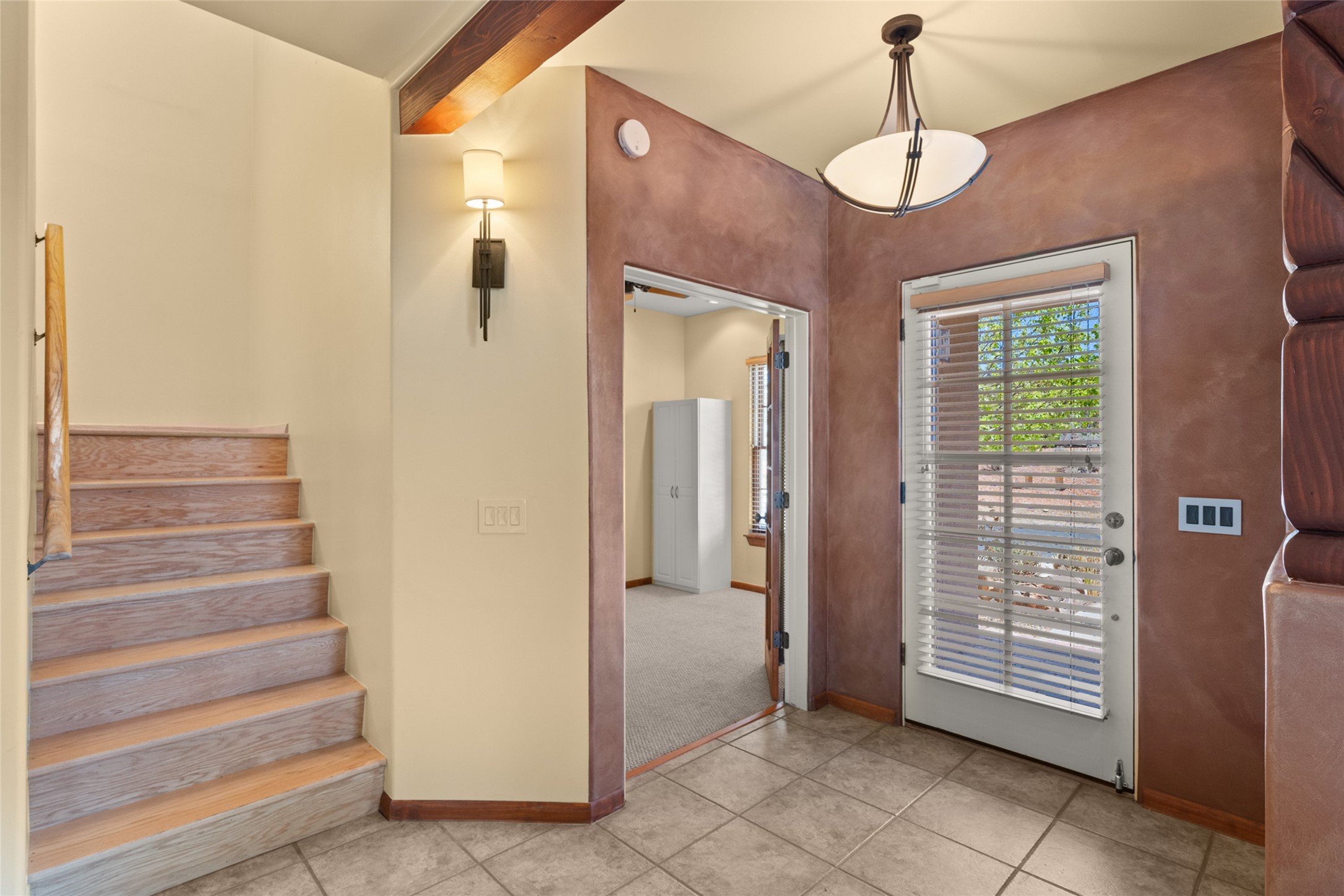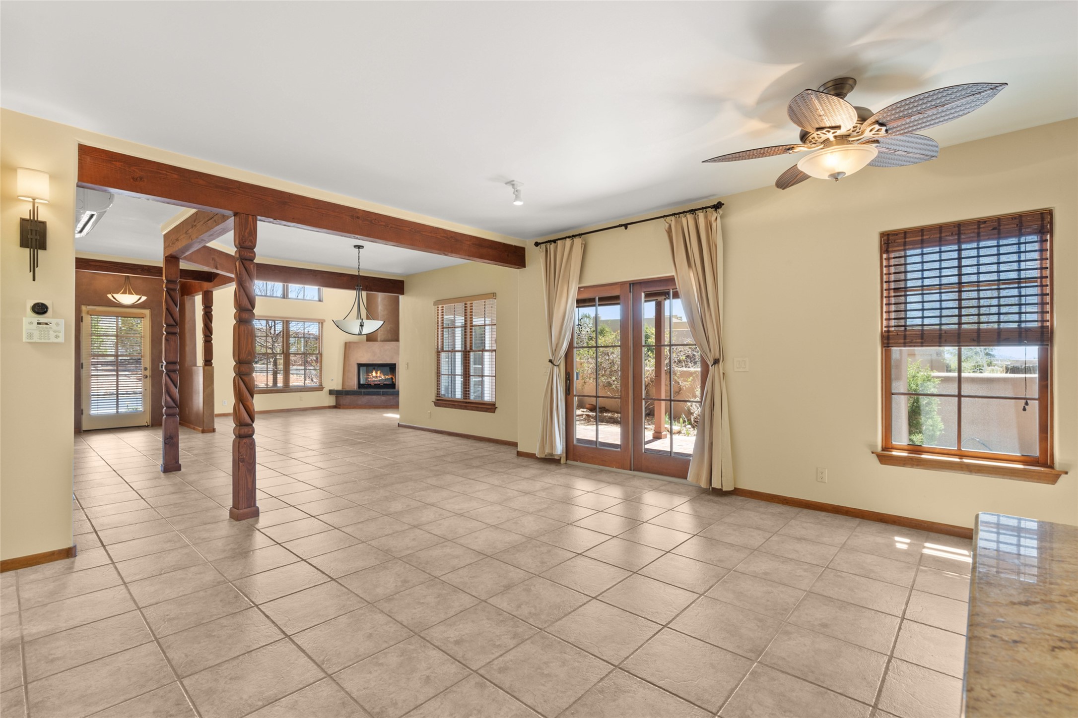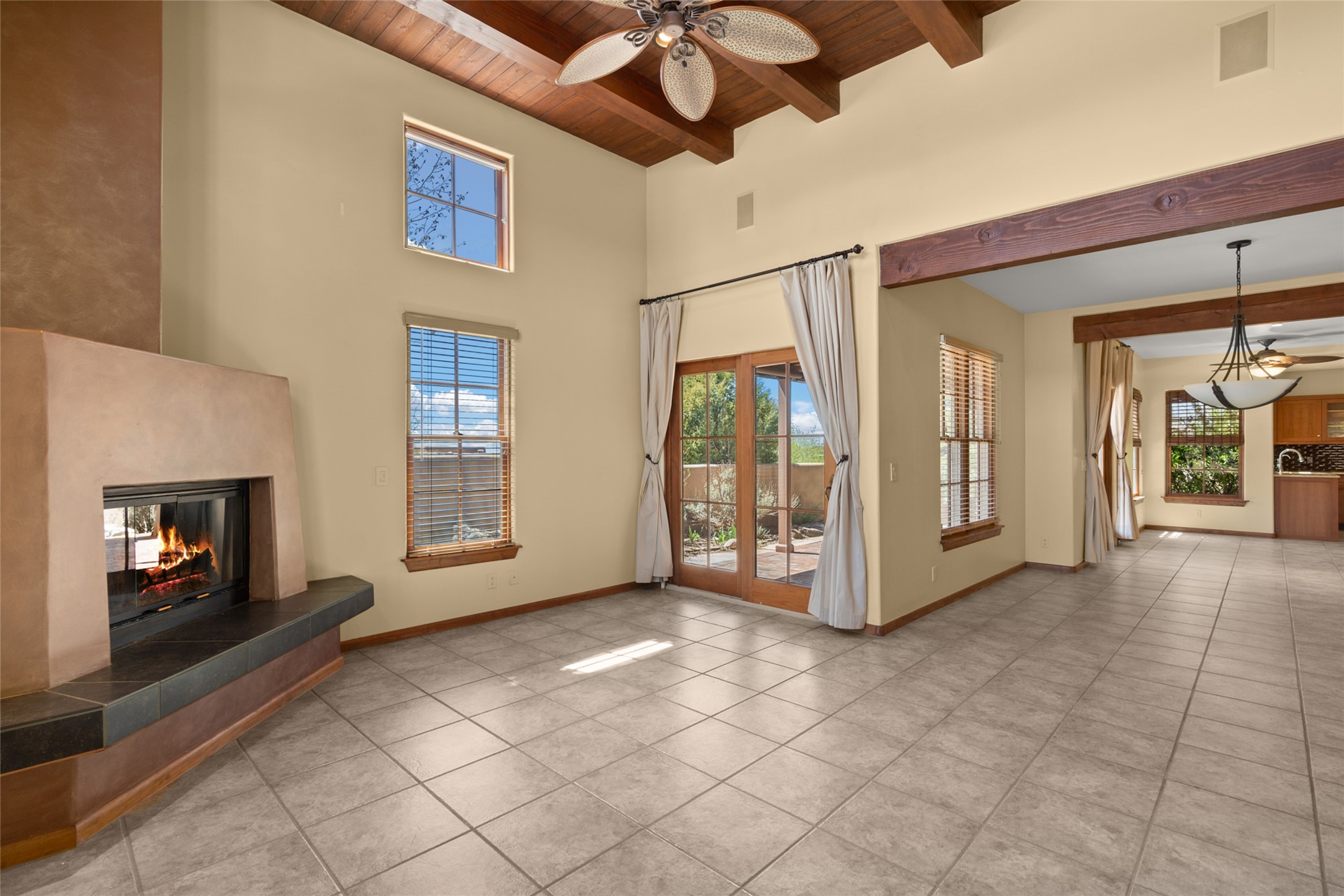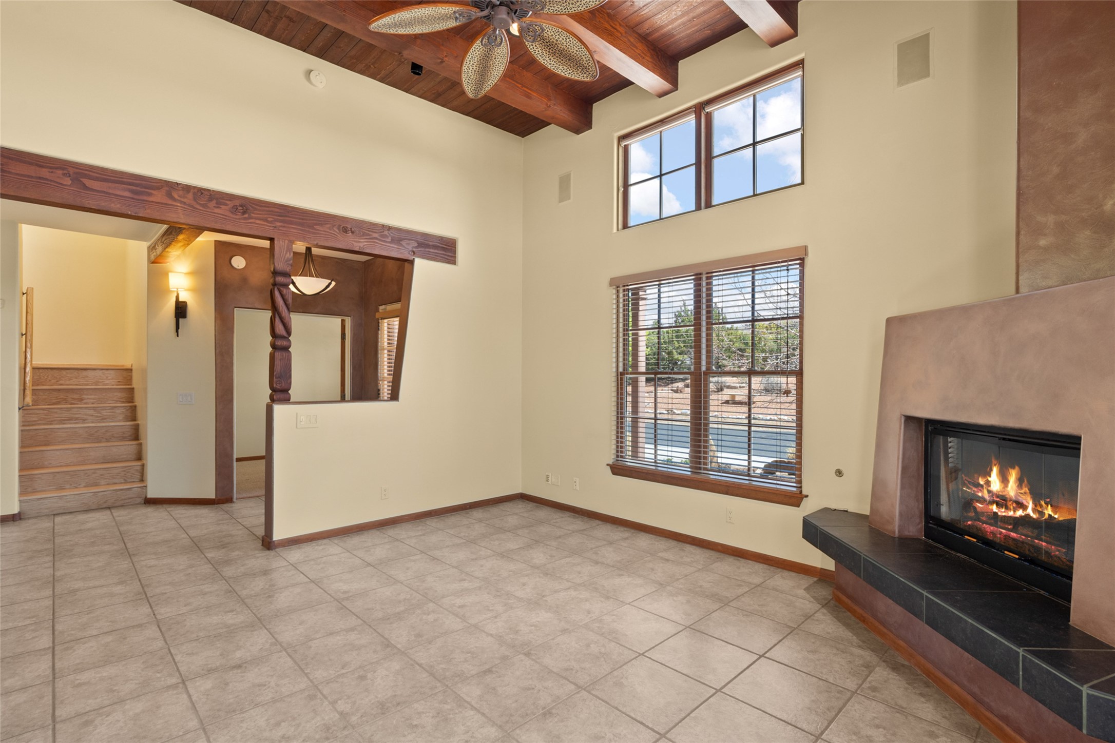 Are you looking for the ideal second home or retire in Santa Fe? If so, look at this 3-bedroom, 3-bath home in Aldea, just minutes from the Santa Fe Plaza and close to the Santa Fe Opera. This beautiful Bruce Thompson home was featured on HGTV, Dreaming in the Desert, Season 22, Episode 11. This home is lovely for entertaining with an open Living, Dining, and Kitchen floor plan. Gorgeous, easy-care yard with a year-round waterfall pond next to a large outdoor covered portal to enjoy your dinner with friends or the day. The beautiful primary suite upstairs has a sitting/office area, an ensuite bathroom with a walk-in shower, a custom walk-in closet, and a covered Veranda to view the Jemez Mountain range and the sunsets. A guest room and full bath are adjacent. The third guest bedroom/office is on the main level with a 3/4 bathroom. A double-car garage is spacious, with storage and a workbench. The recent upgrades are mini-splits for air conditioning/heat, a tankless water heater, and a Bosh refrigerator. The Aldea neighborhood features trails for walking, running, and pickleball courts.