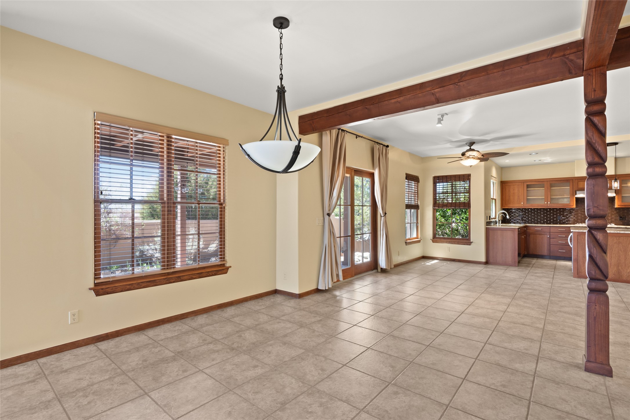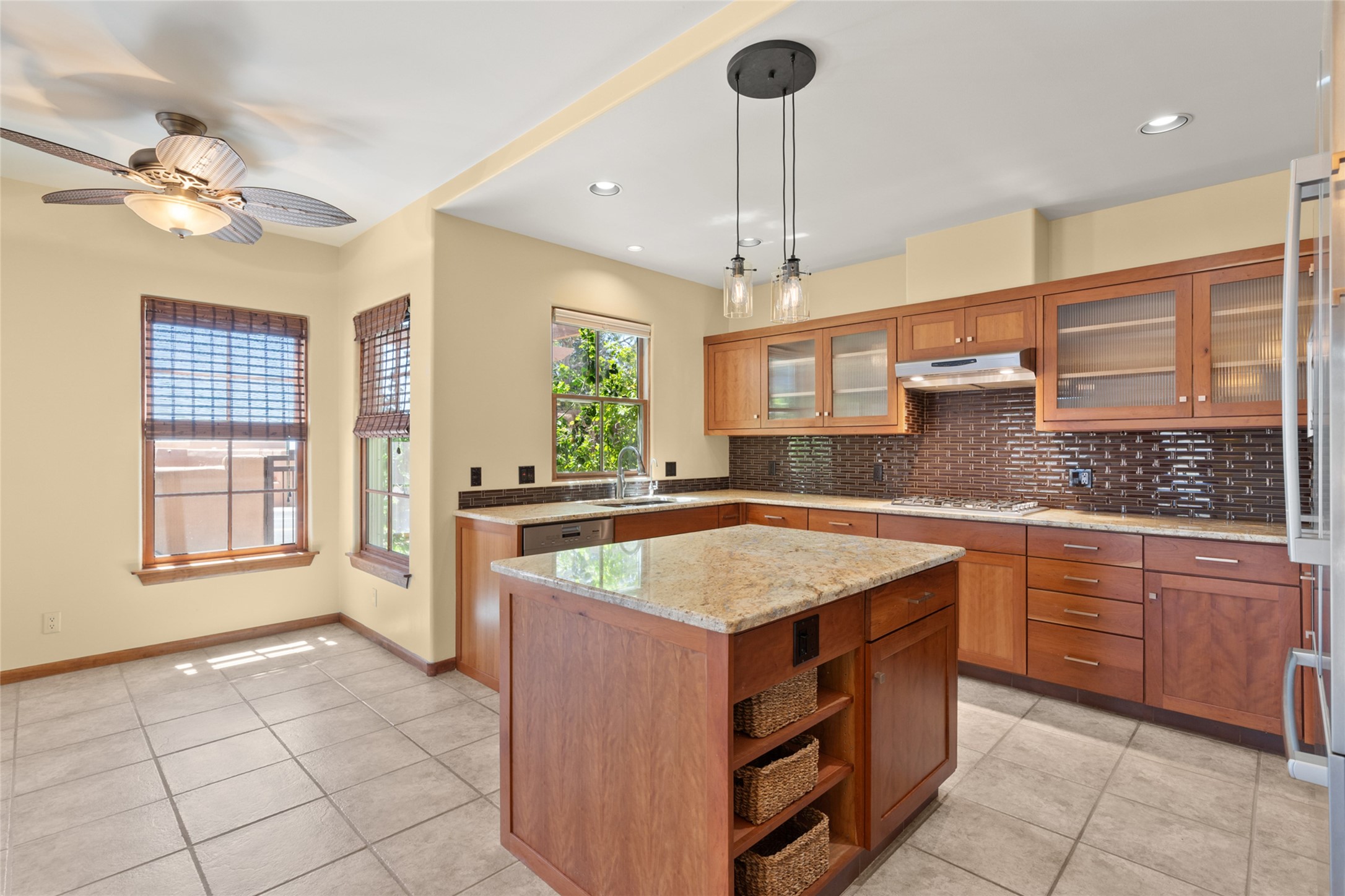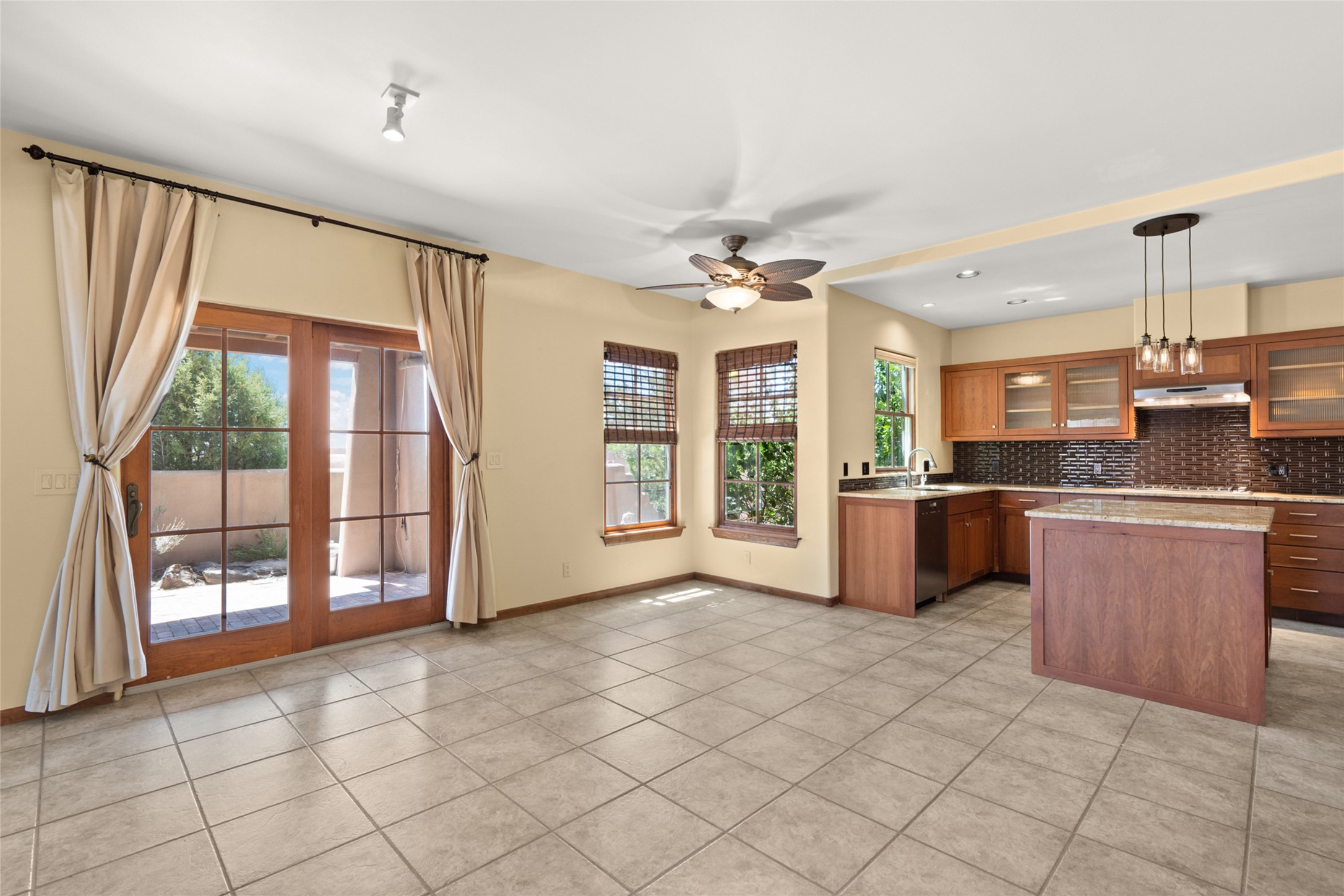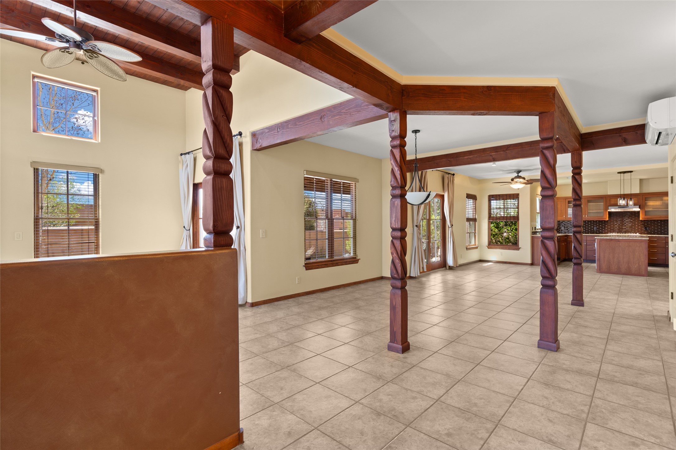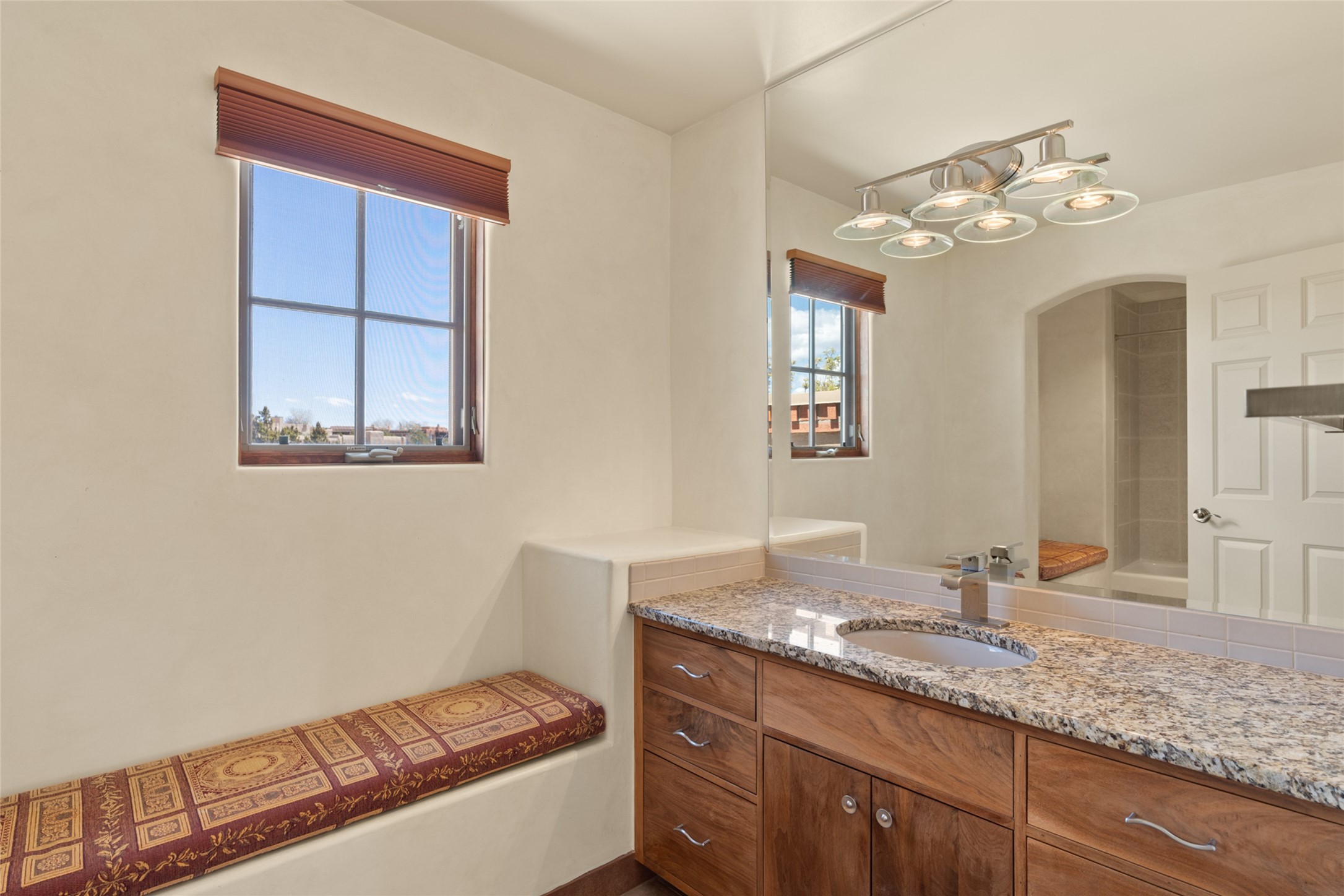 Are you looking for the ideal second home or retire in Santa Fe? If so, look at this 3-bedroom, 3-bath home in Aldea, just minutes from the Santa Fe Plaza and close to the Santa Fe Opera. This beautiful Bruce Thompson home was featured on HGTV, Dreaming in the Desert, Season 22, Episode 11. This home is lovely for entertaining with an open Living, Dining, and Kitchen floor plan. Gorgeous, easy-care yard with a year-round waterfall pond next to a large outdoor covered portal to enjoy your dinner with friends or the day. The beautiful primary suite upstairs has a sitting/office area, an ensuite bathroom with a walk-in shower, a custom walk-in closet, and a covered Veranda to view the Jemez Mountain range and the sunsets. A guest room and full bath are adjacent. The third guest bedroom/office is on the main level with a 3/4 bathroom. A double-car garage is spacious, with storage and a workbench. The recent upgrades are mini-splits for air conditioning/heat, a tankless water heater, and a Bosh refrigerator. The Aldea neighborhood features trails for walking, running, and pickleball courts.