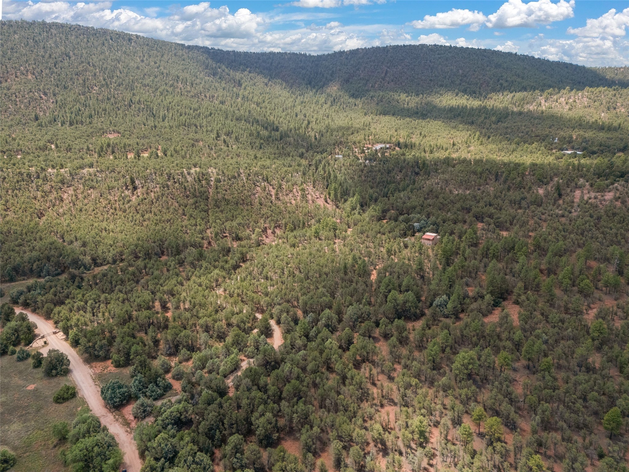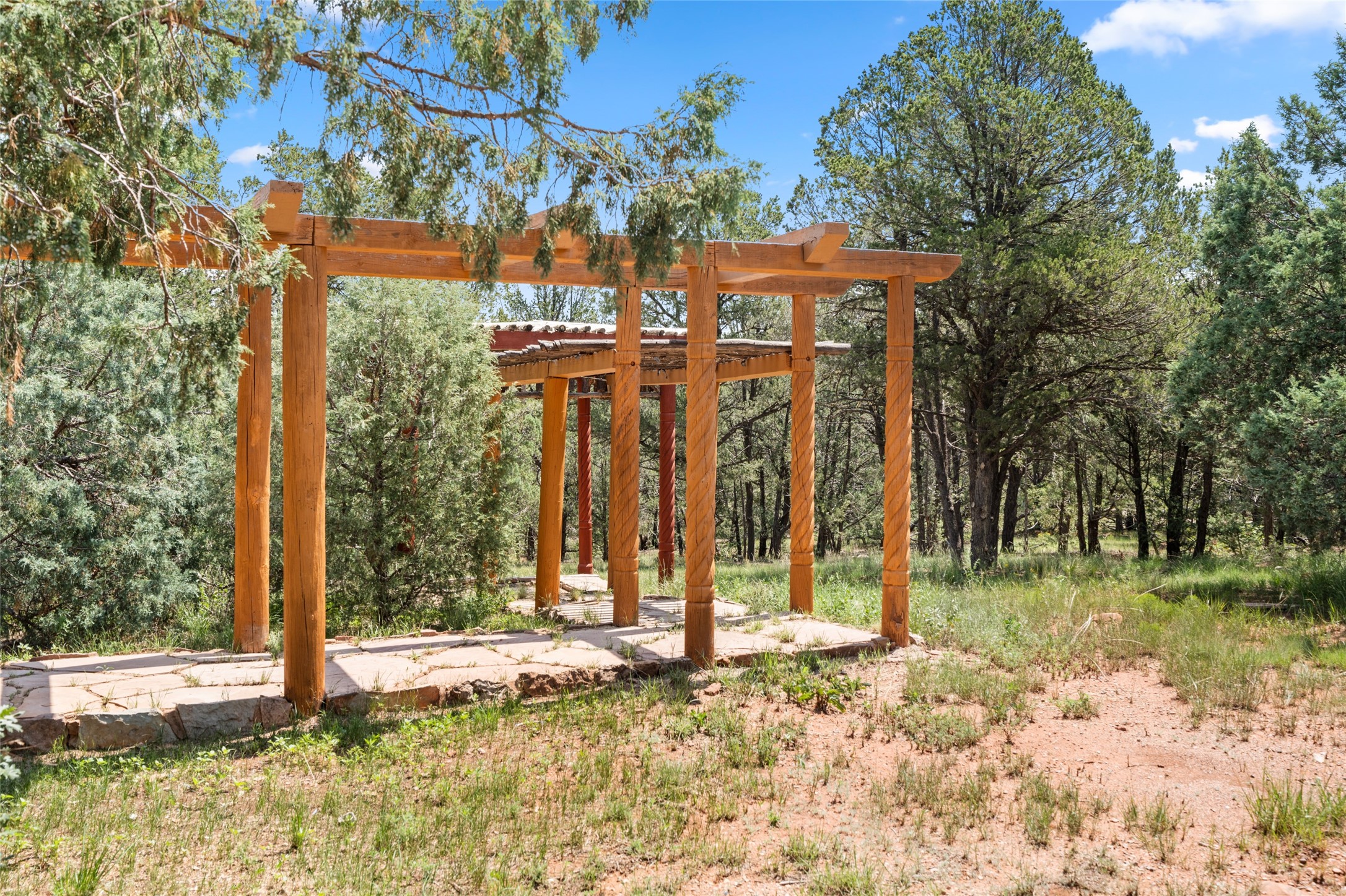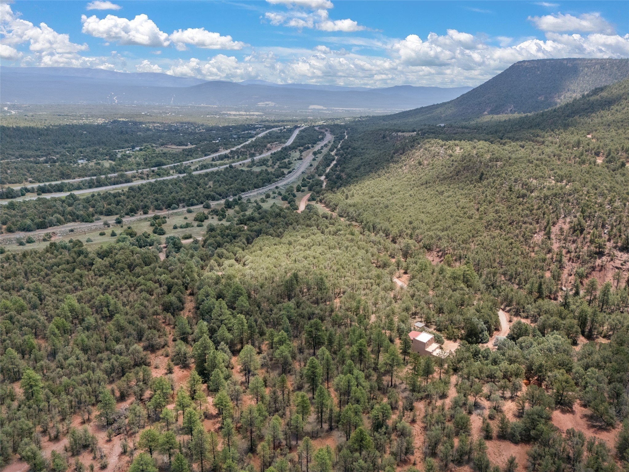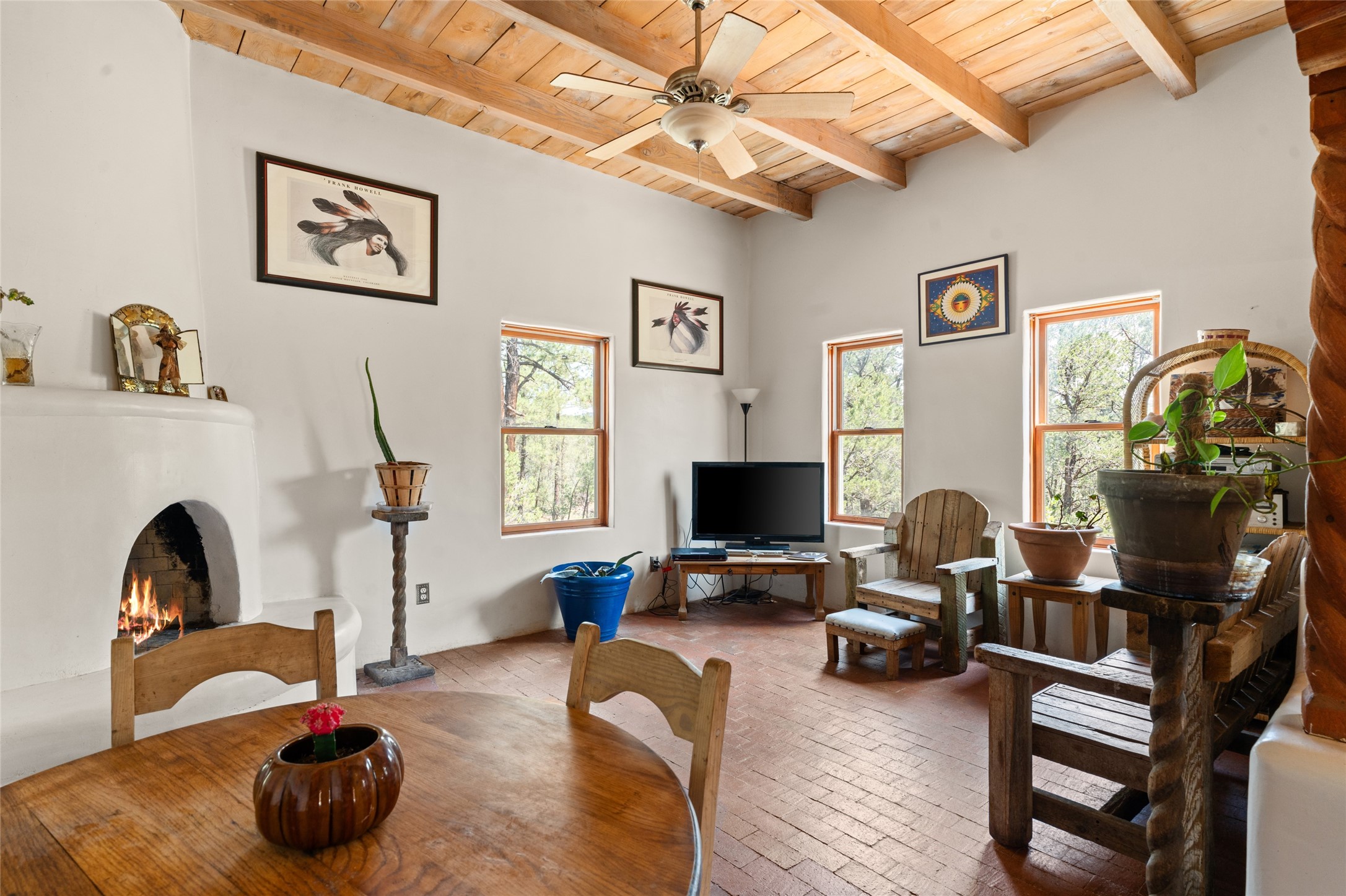 Combining the best of nature and comfort while providing ample space and privacy. This remarkable 2 bedroom and 2 bathroom home on 14.374 beautiful acres of serene wooded land can be your personal oasis away from the city. At the same time, it is a short drive to Santa Fe and the endearing small town of Pecos which is proximal to the gorgeous Pecos River with trout fishing. With no HOA or CCR's, this expansive land offers endless possibilities! Traditional features of this home include: wood beamed ceilings, a cozy wood-burning kiva fireplace, a private well, beautiful brick floors throughout, radiant heating, attached 2 car garage, an updated roof (roof was redone and has a transferrable 10 year warranty), a storage shed, and is gated for added privacy. Additionally, this gem of a home includes a residential kitchen with stainless steel appliances and a separate spacious commercial kitchen ideal for culinary enthusiasts! On the first level you have a lovely bedroom, bathroom, office and two kitchens (one residential and one commercial). On the second level, the largest bedroom/bathroom was thoughtfully placed to enjoy the breath taking New Mexico sunrise. Moreover, the upstairs deck provides stunning views of the surrounding mountains, perfect for entertaining or relaxing under the stars. Come see this wonderful property today!